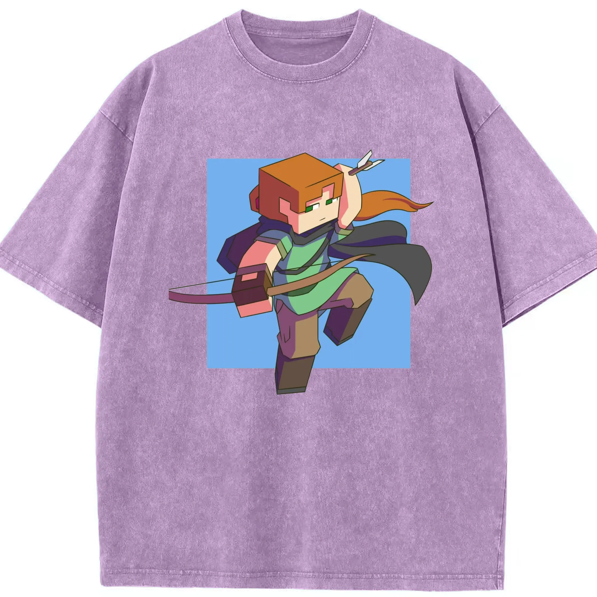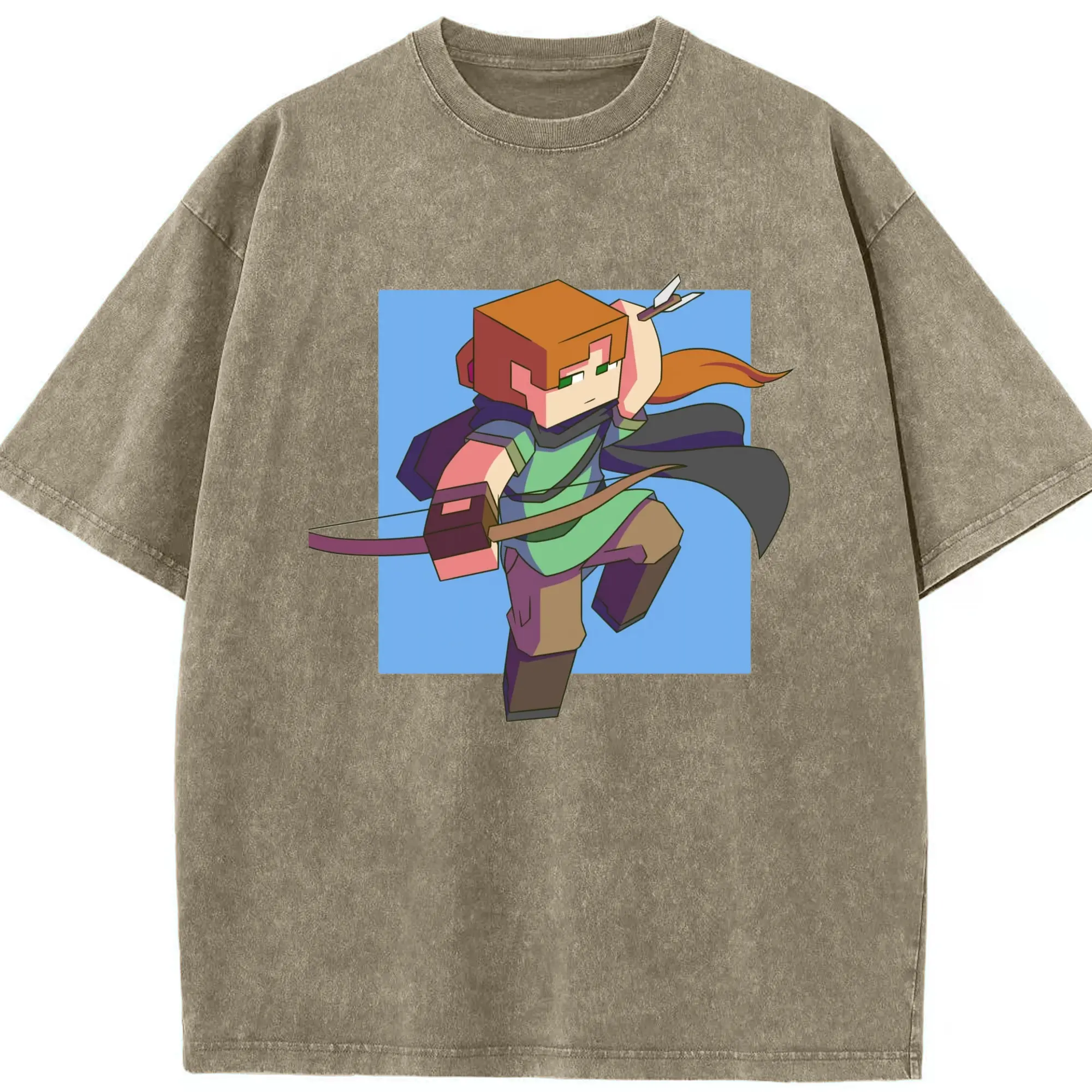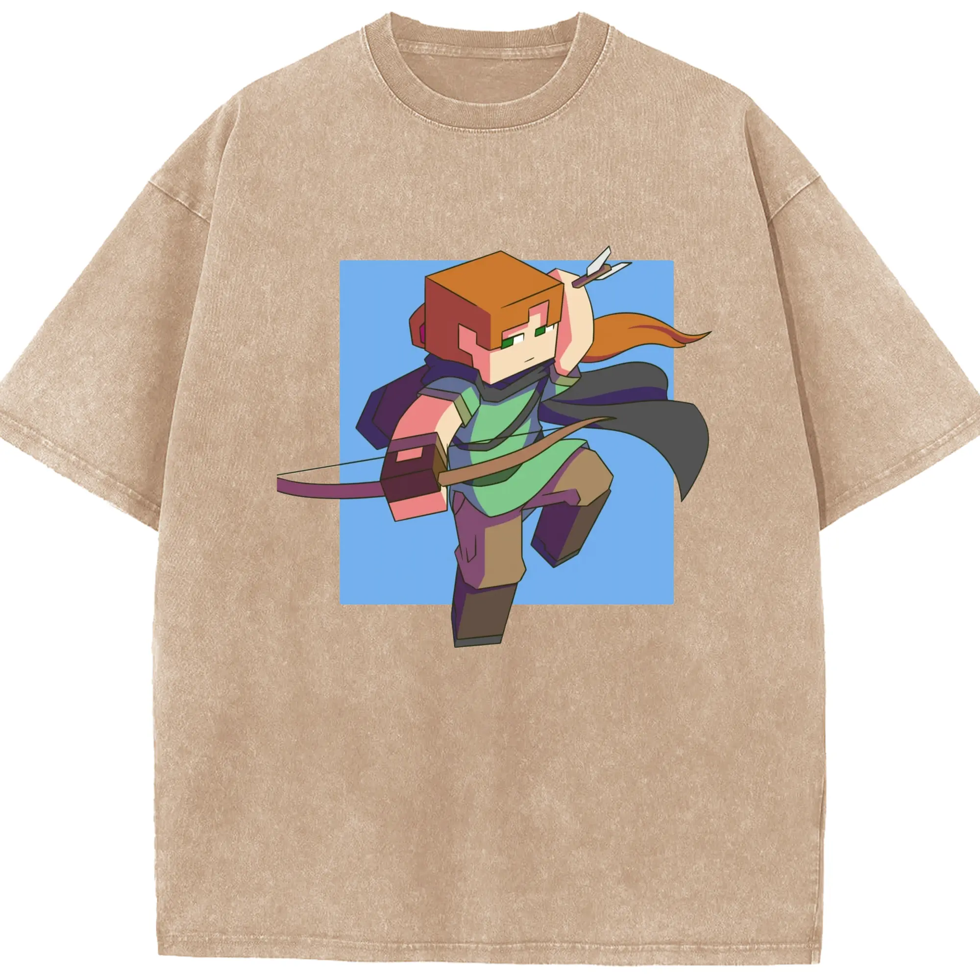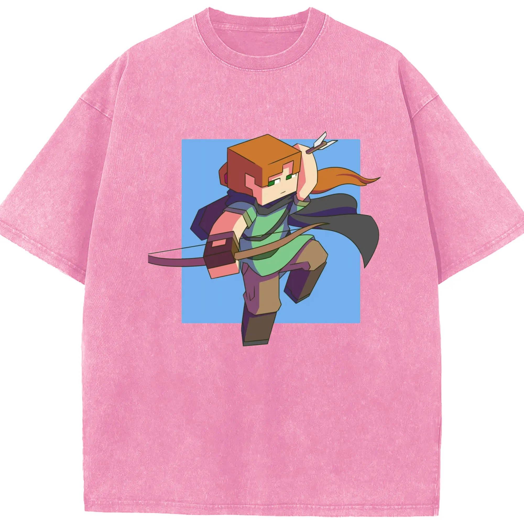 Minecraft alex tee - Washed Vintage Look 230g Cotton Oversized T-Shirt With Front Heat Transfer Print – Soft, Lightweight, Stylish Fit – Comfortable Casual Wear For Sports & Everyday Use