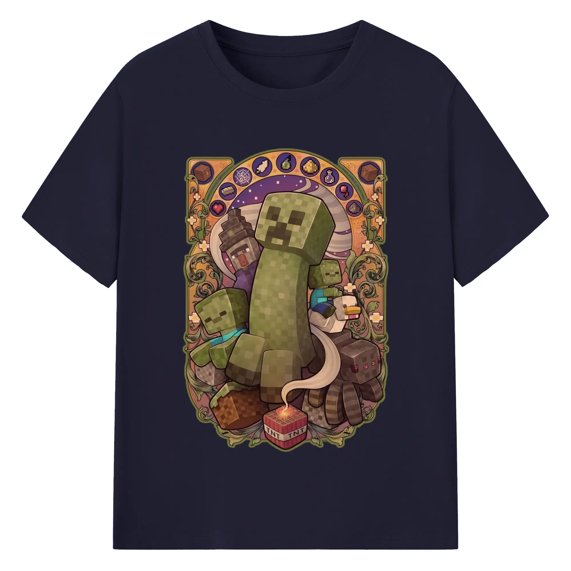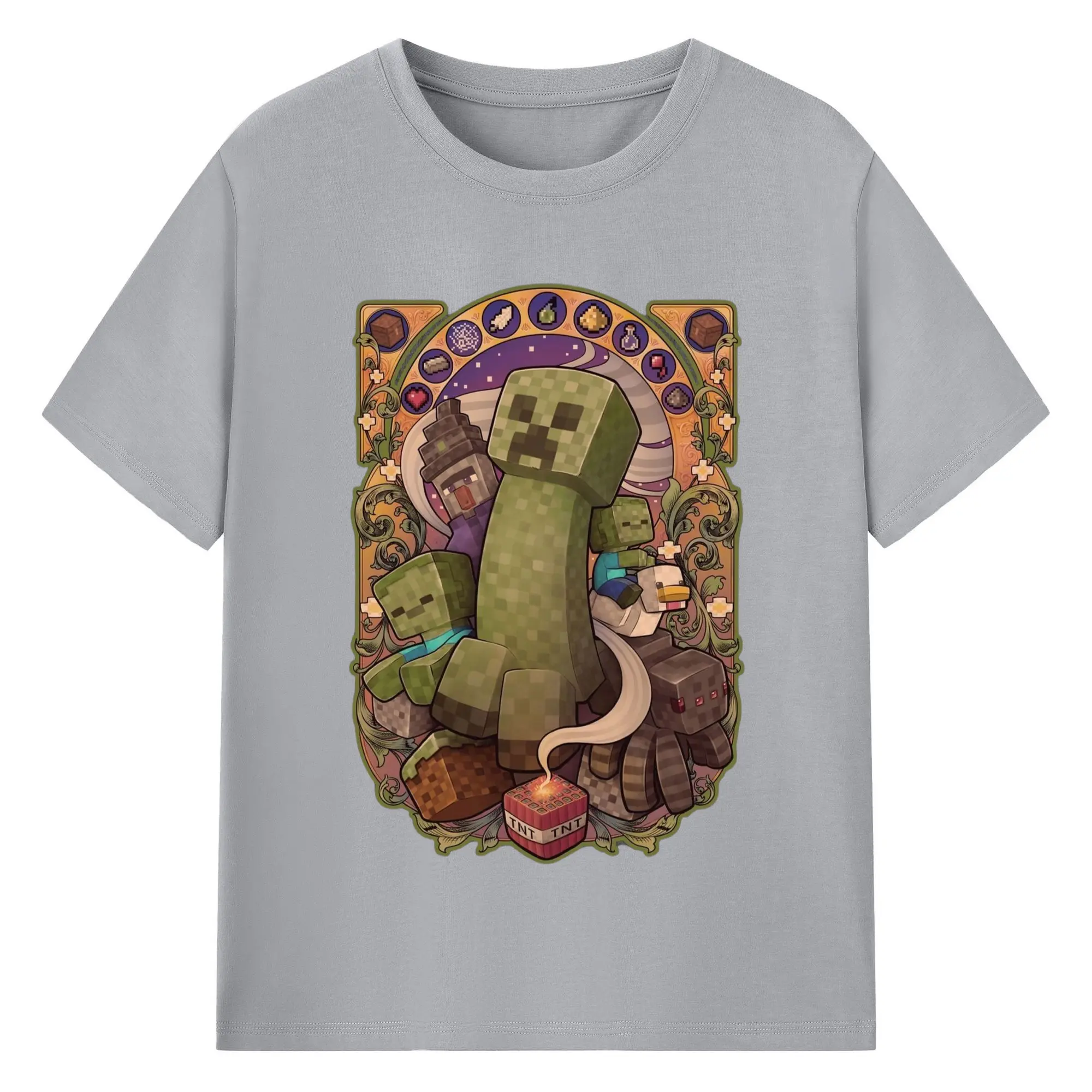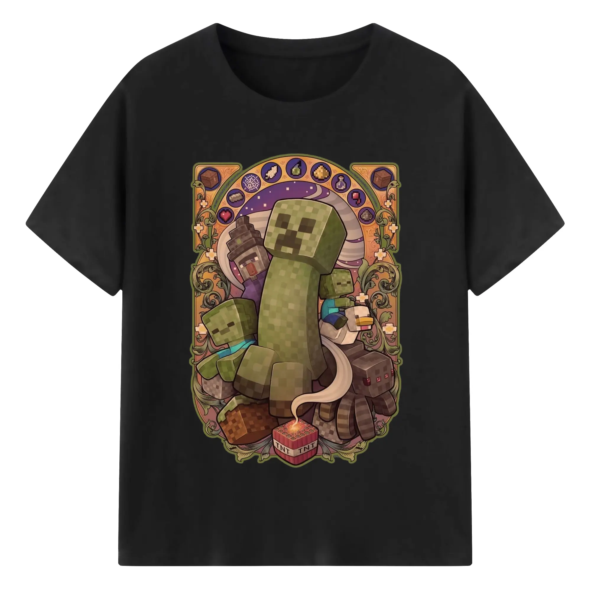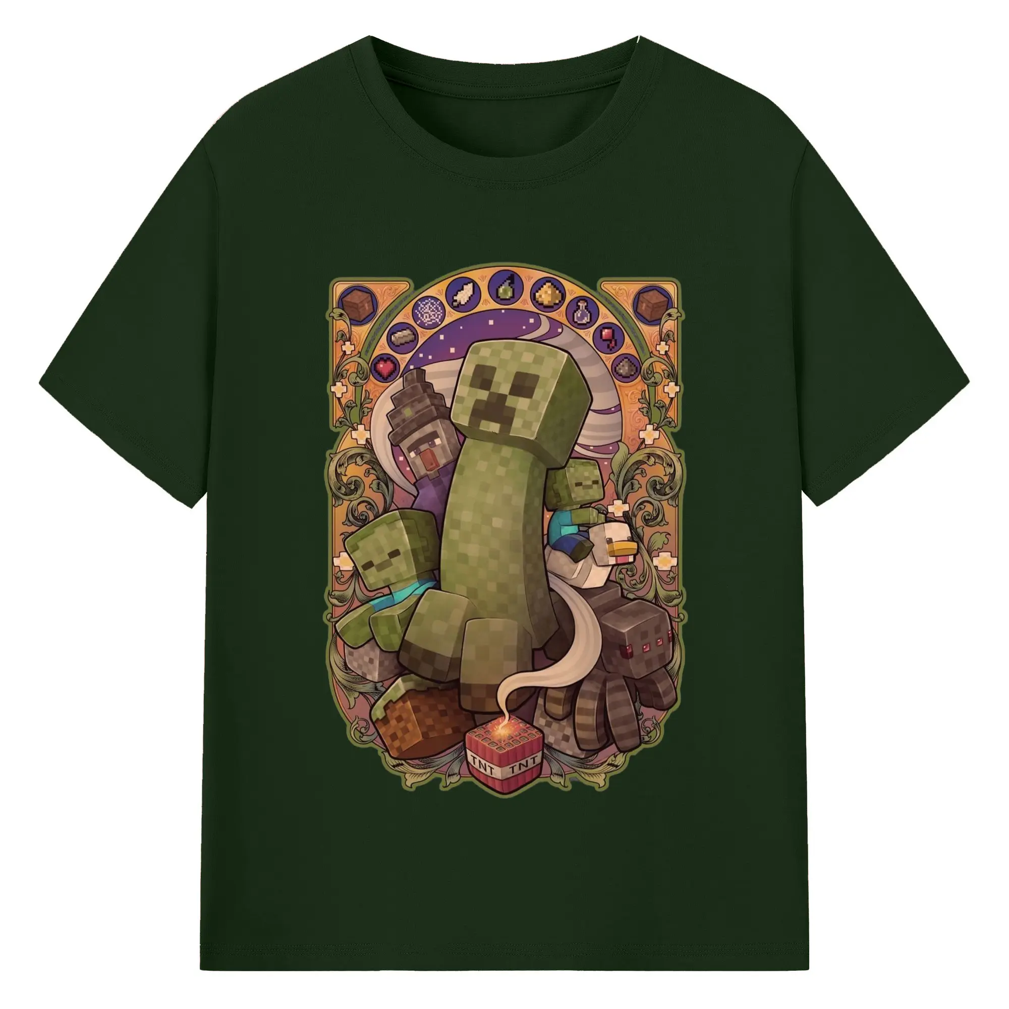 Minecraft Creeper art T-Shirt - 180g Cotton T-Shirt With Front Heat Transfer Print – Soft, Lightweight, Fitted Design – Comfortable Casual Wear For Sports & Everyday Use