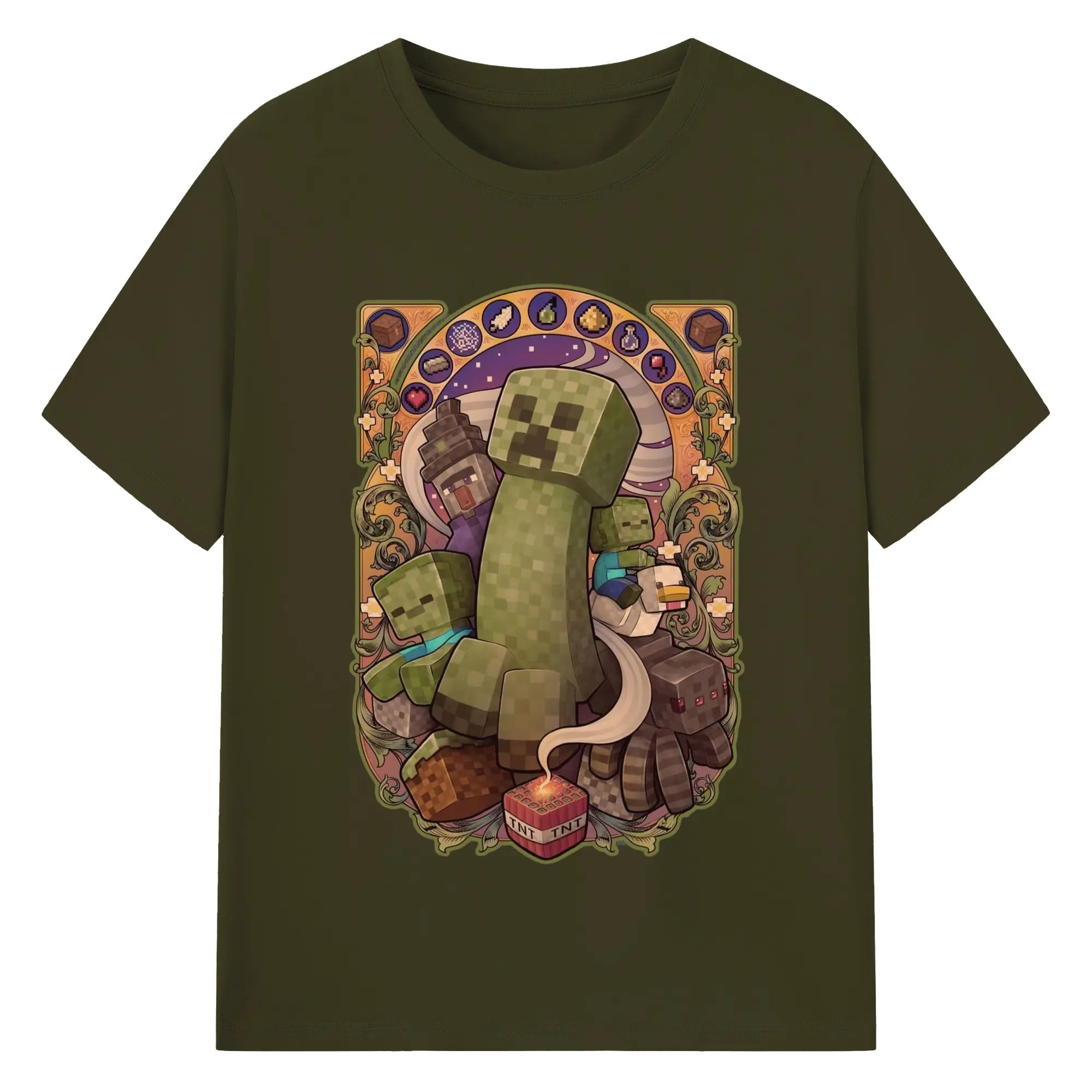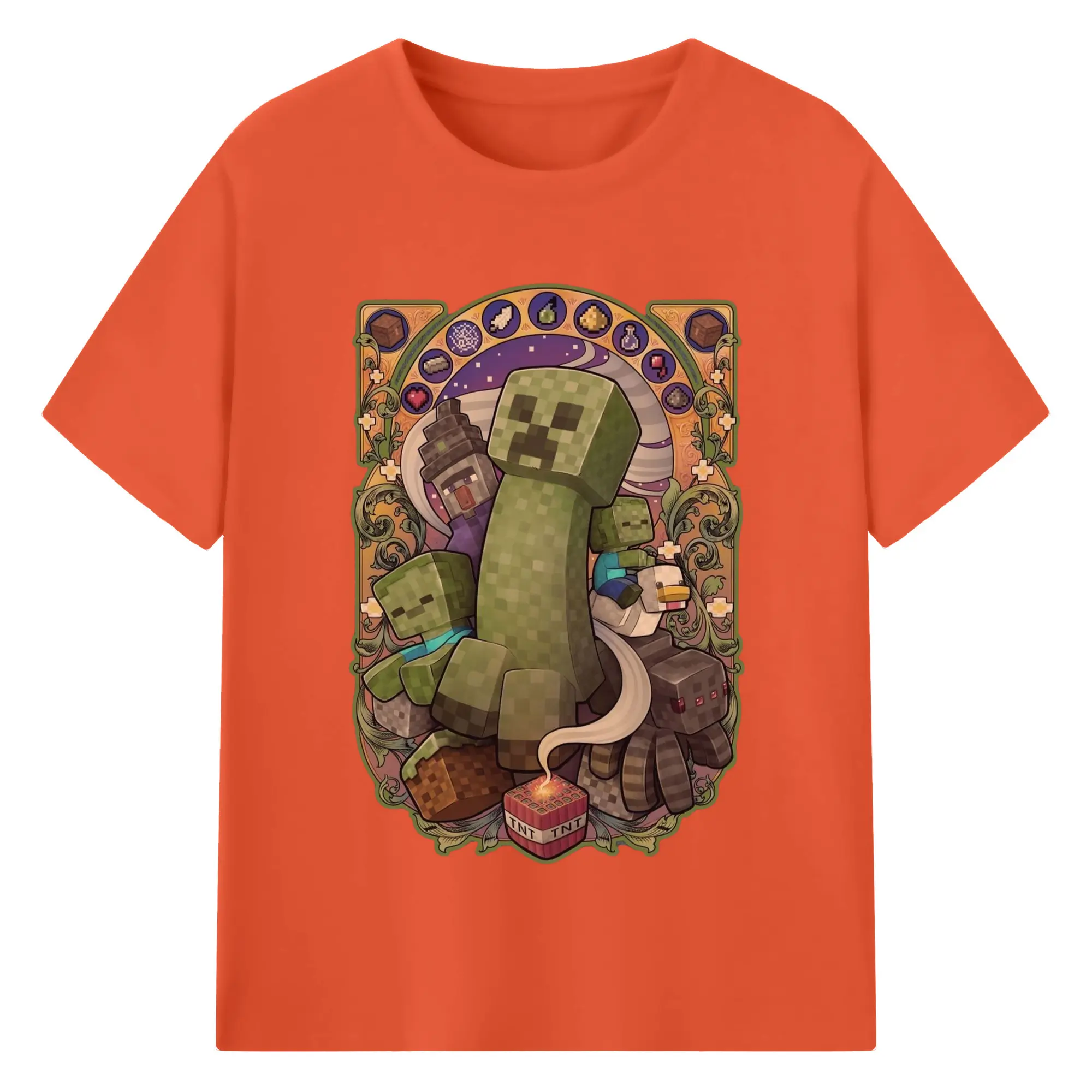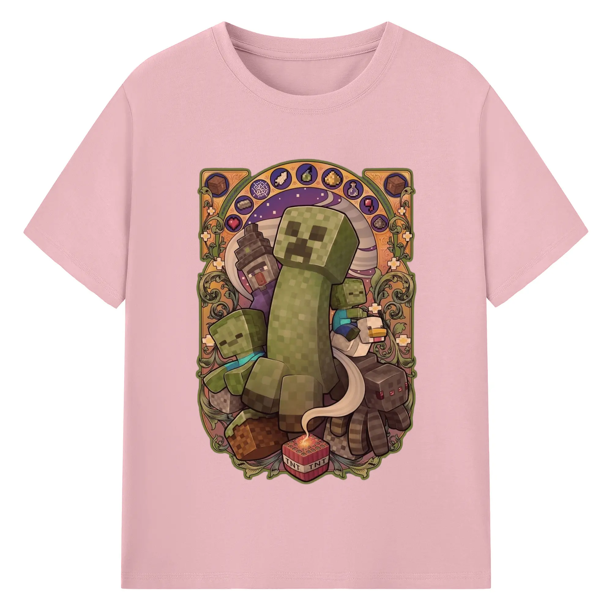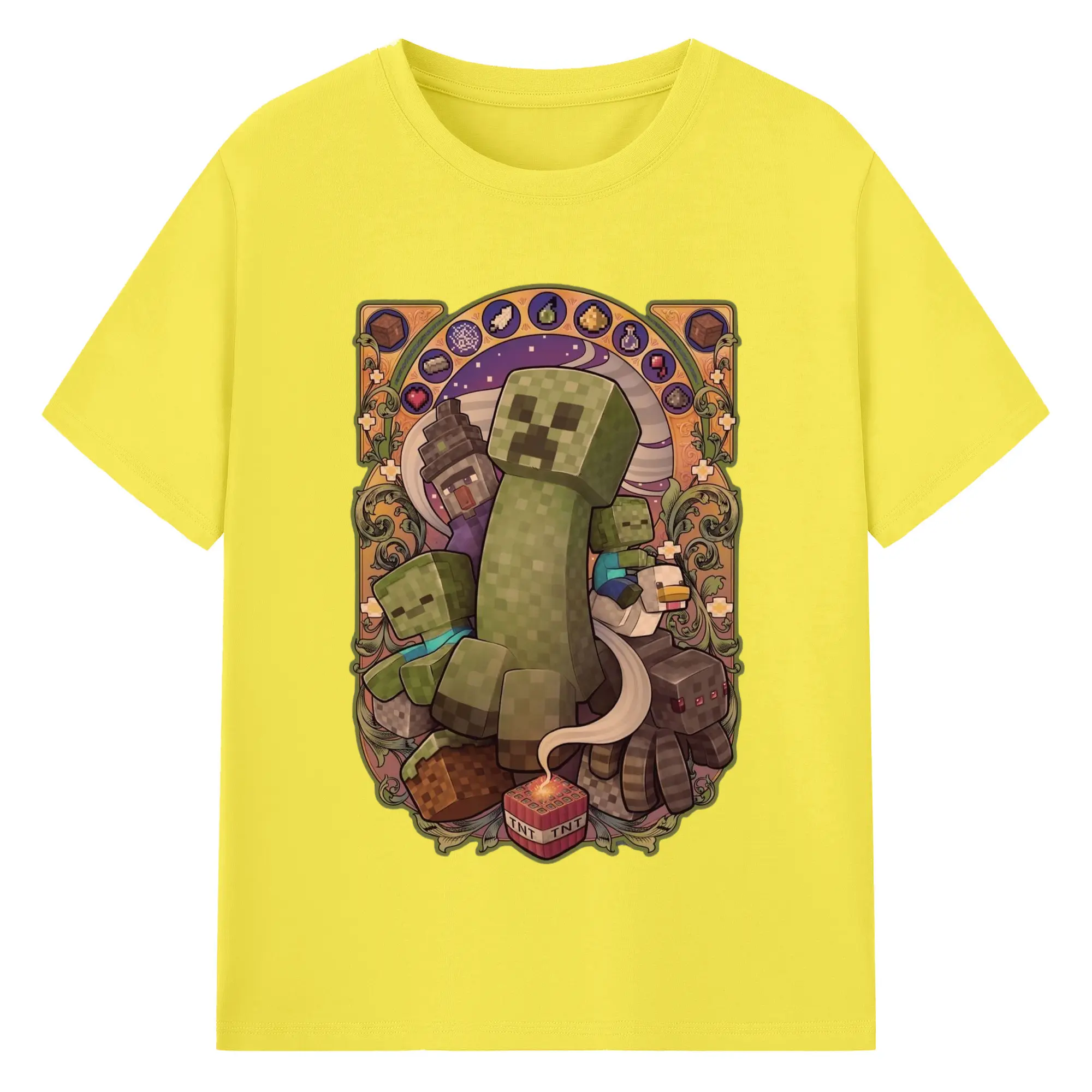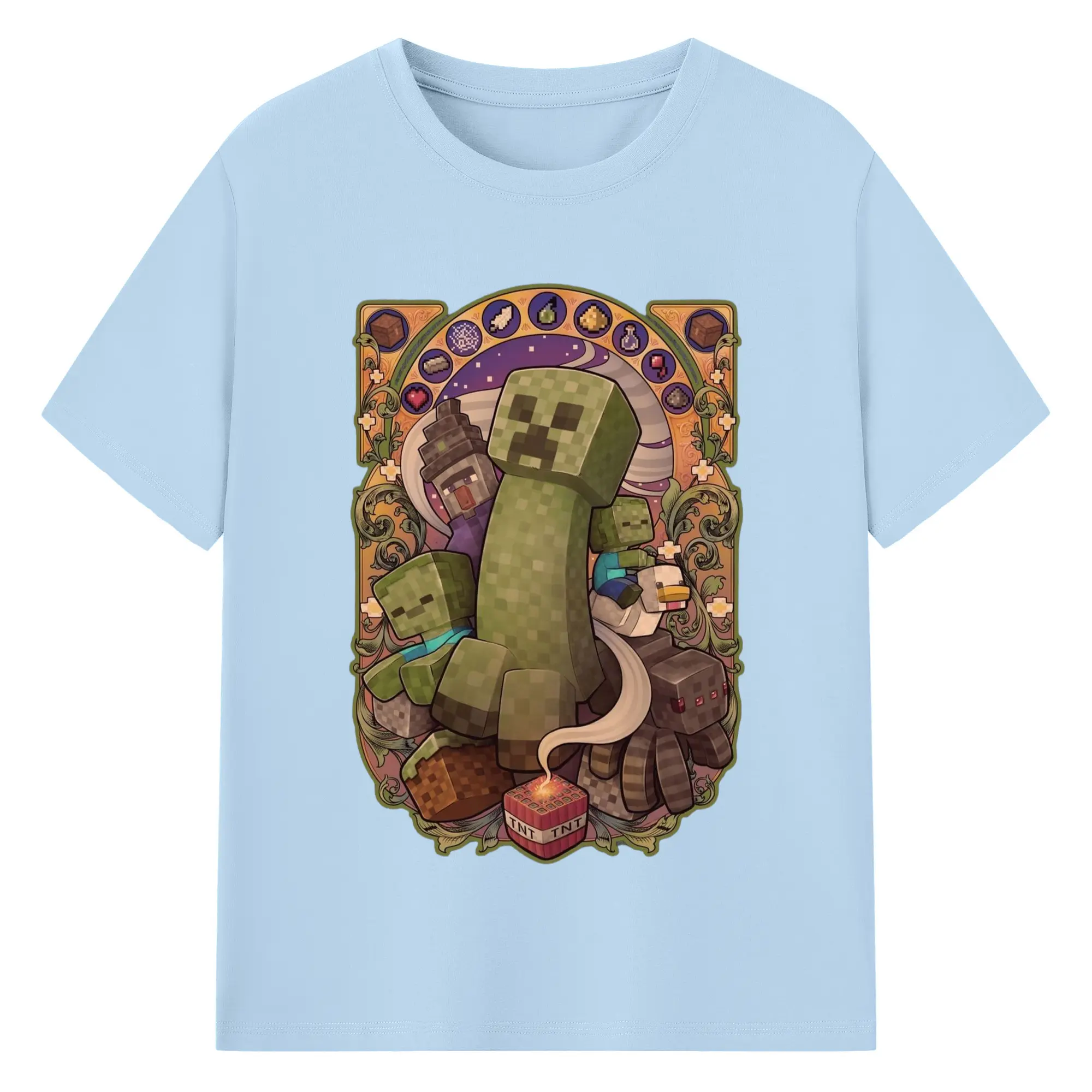 Minecraft Creeper art T-Shirt - 180g Cotton T-Shirt With Front Heat Transfer Print – Soft, Lightweight, Fitted Design – Comfortable Casual Wear For Sports & Everyday Use