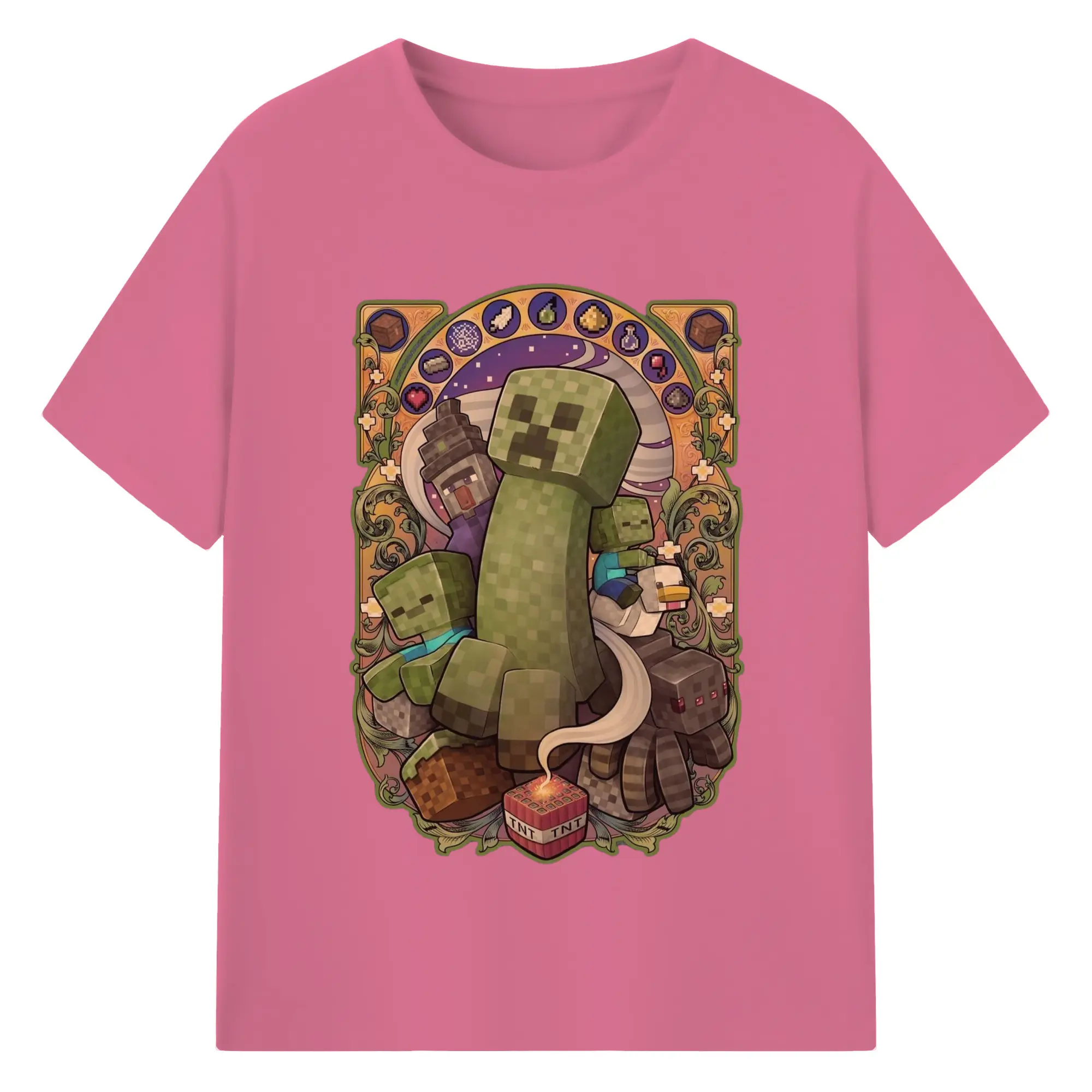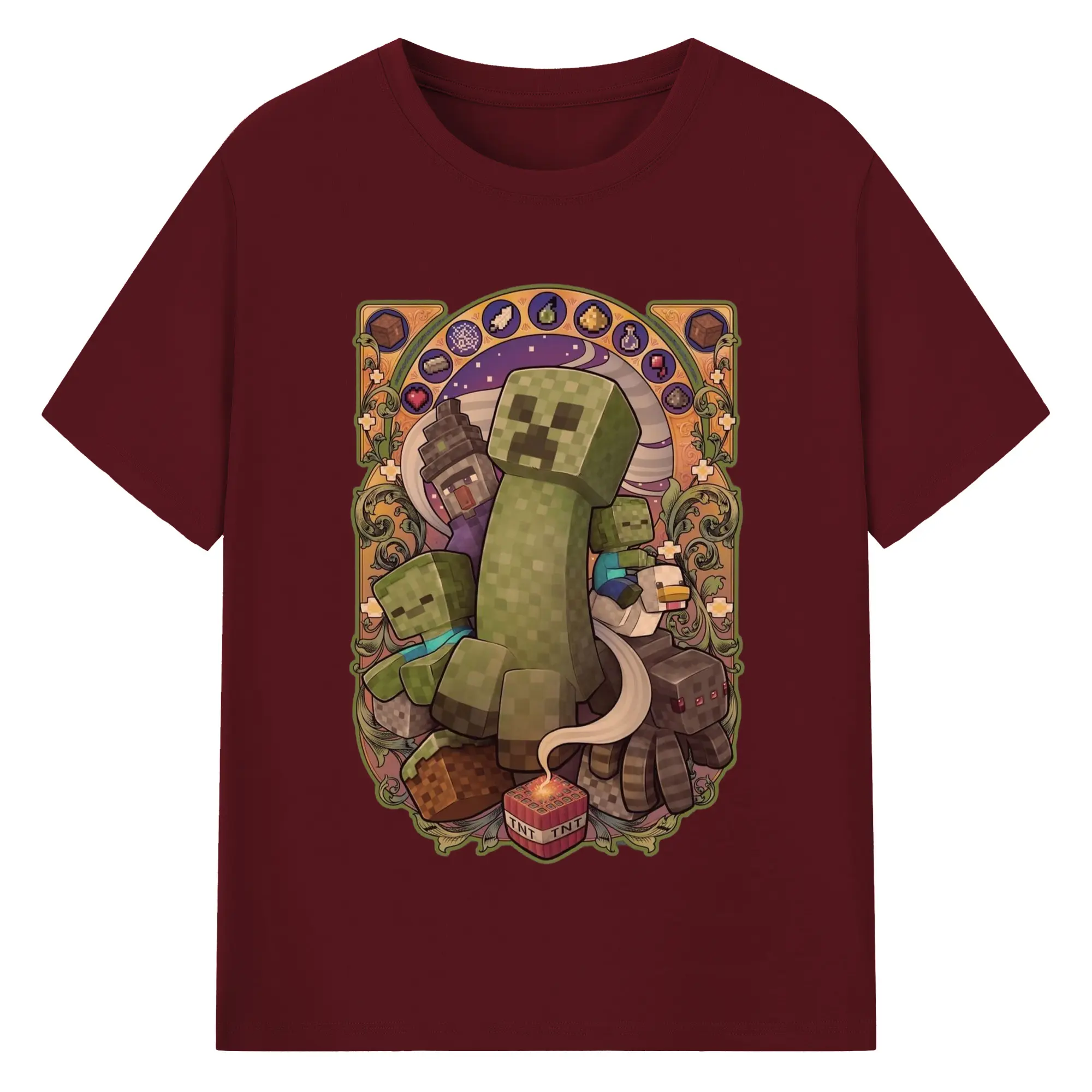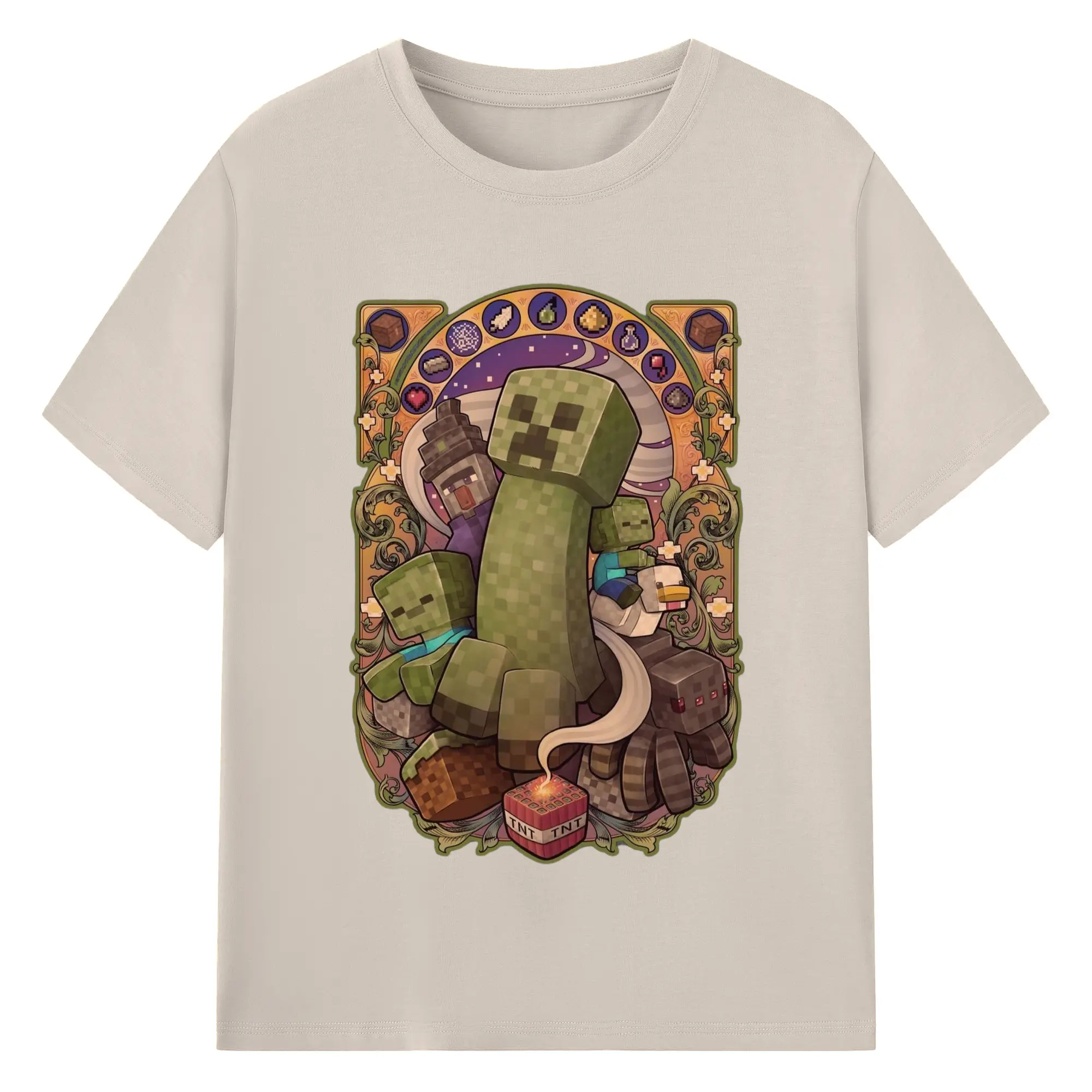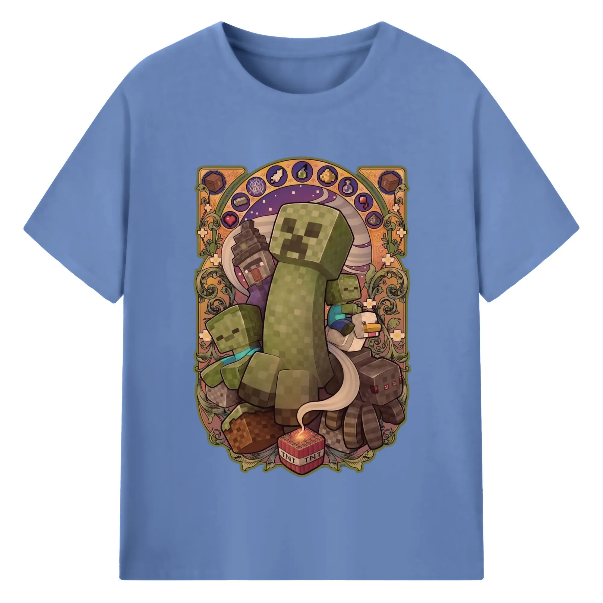 Minecraft Creeper art T-Shirt - 180g Cotton T-Shirt With Front Heat Transfer Print – Soft, Lightweight, Fitted Design – Comfortable Casual Wear For Sports & Everyday Use