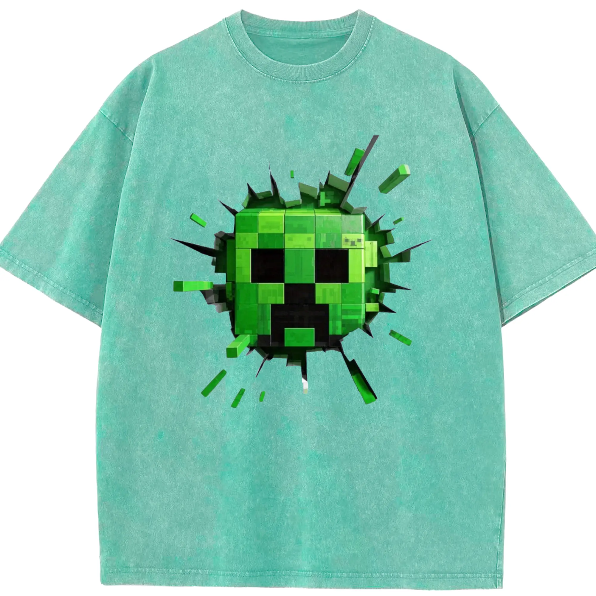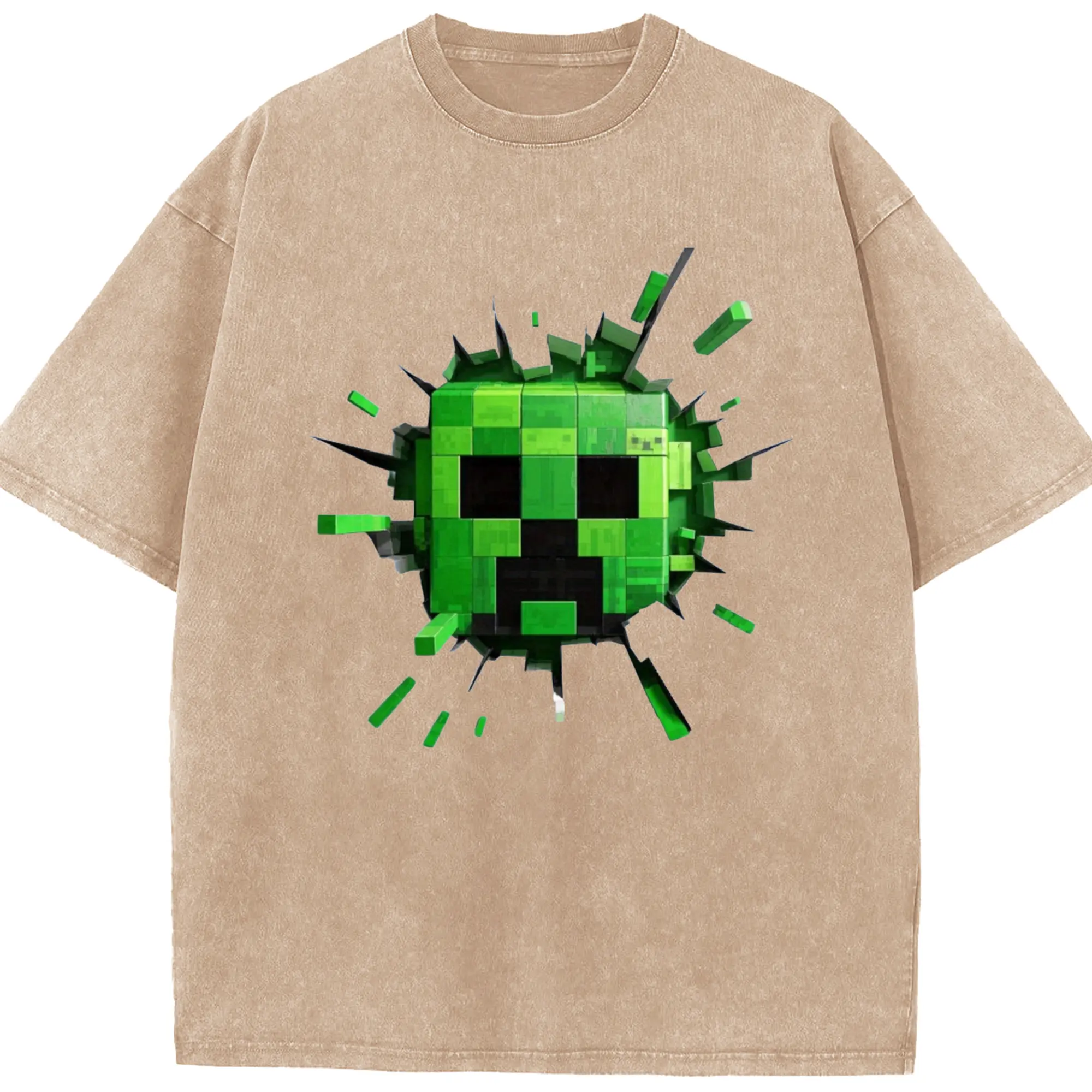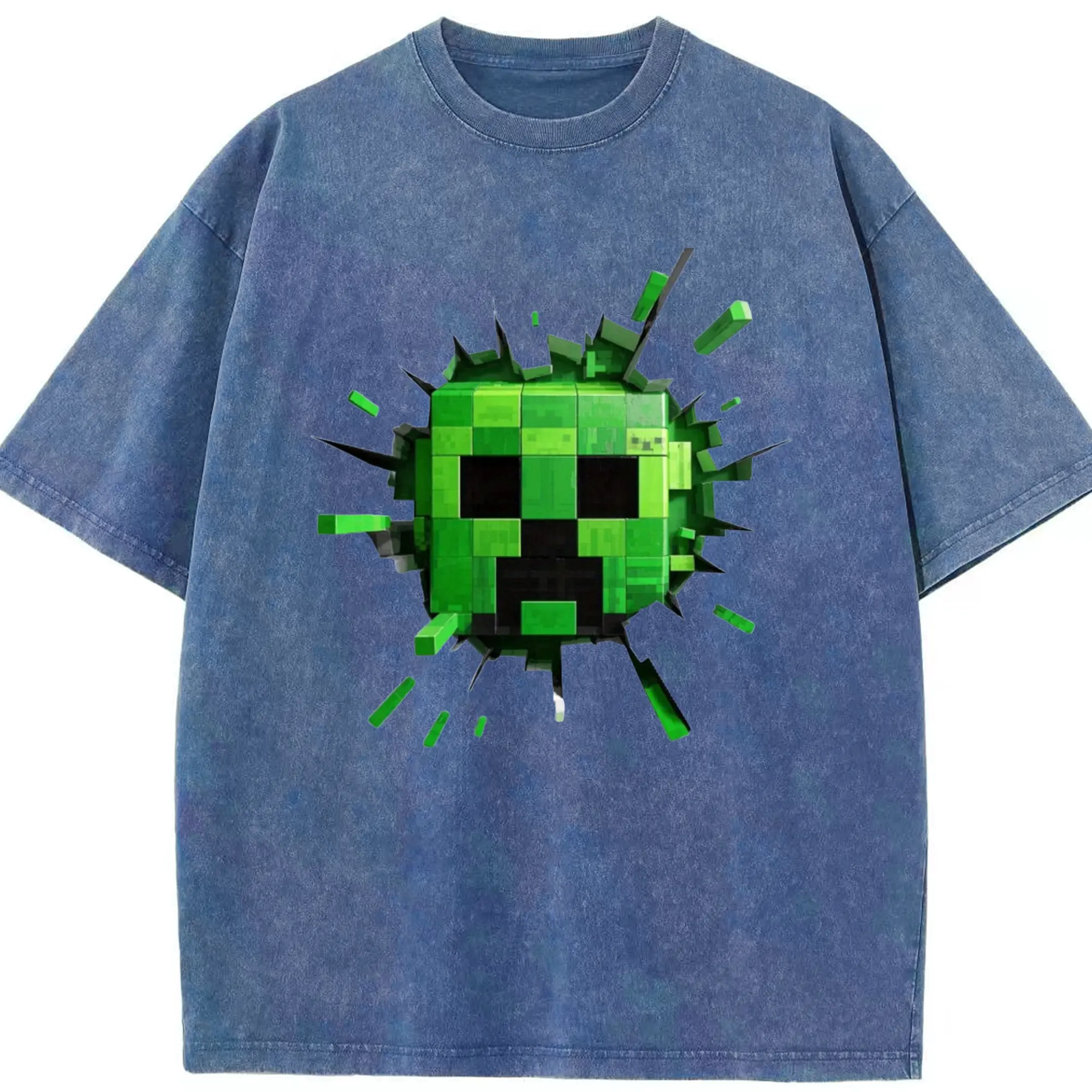 Minecraft Creeper Classic T-Shirt - Washed Vintage Look 230g Cotton Oversized T-Shirt With Front Heat Transfer Print – Soft, Lightweight, Stylish Fit – Comfortable Casual Wear For Sports & Everyday Use