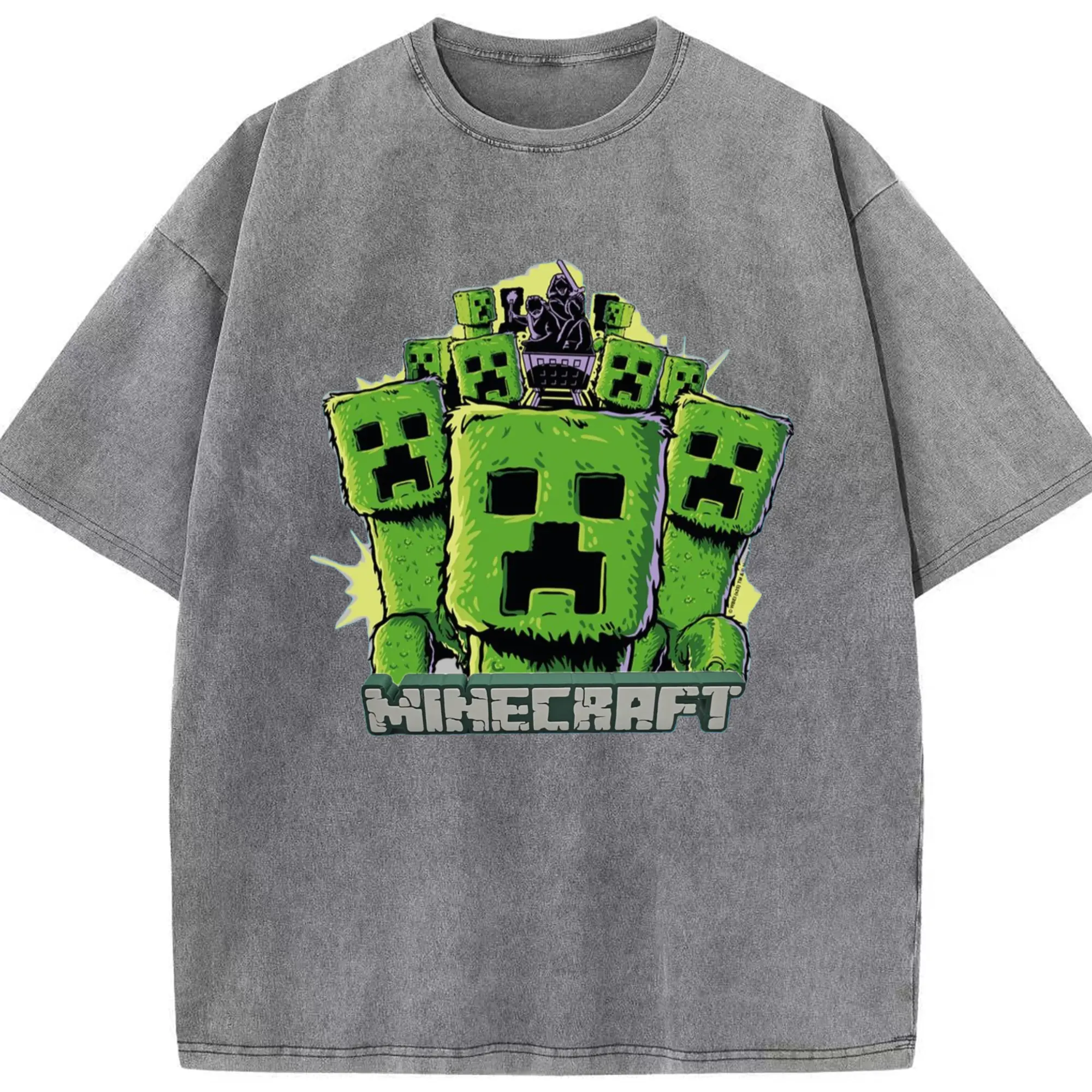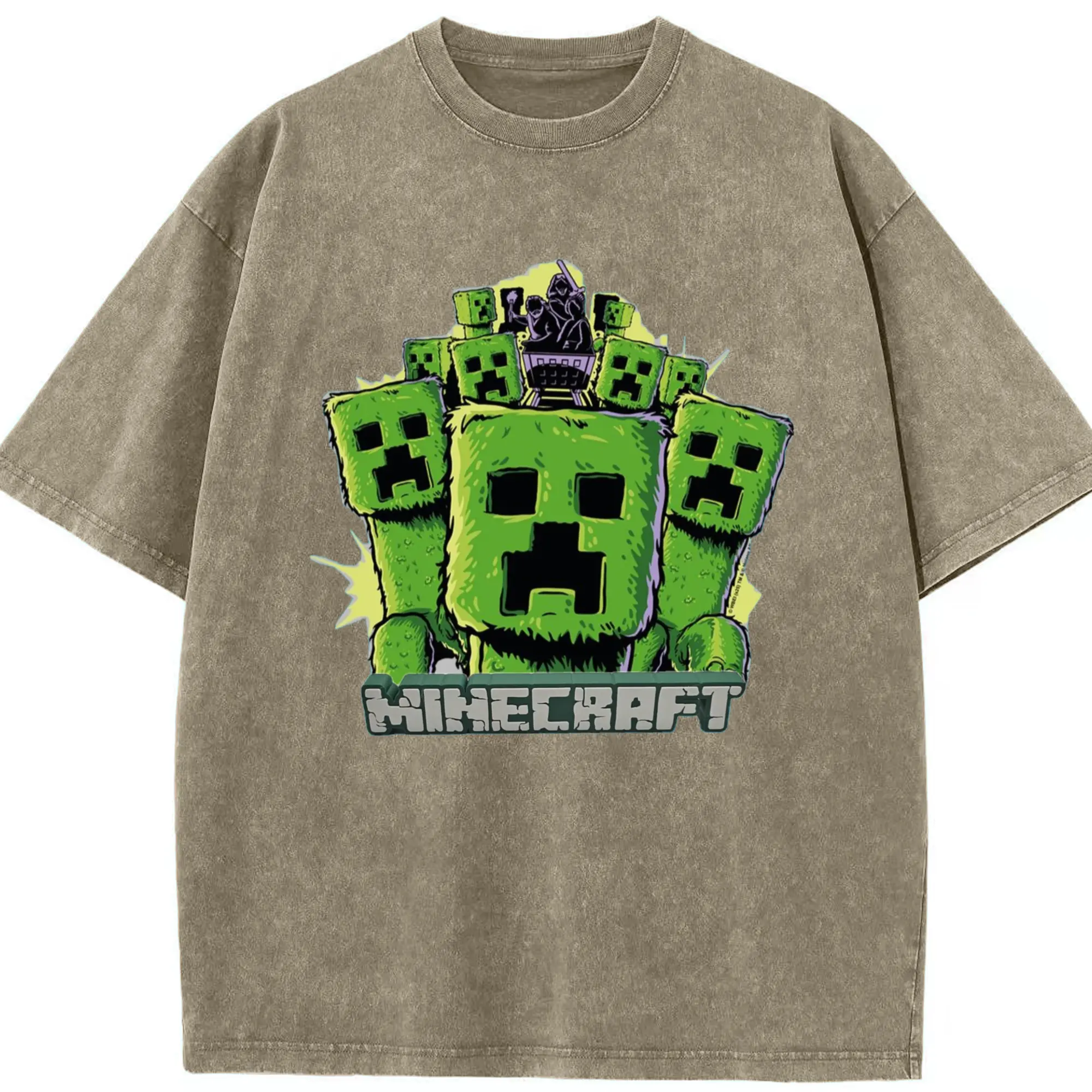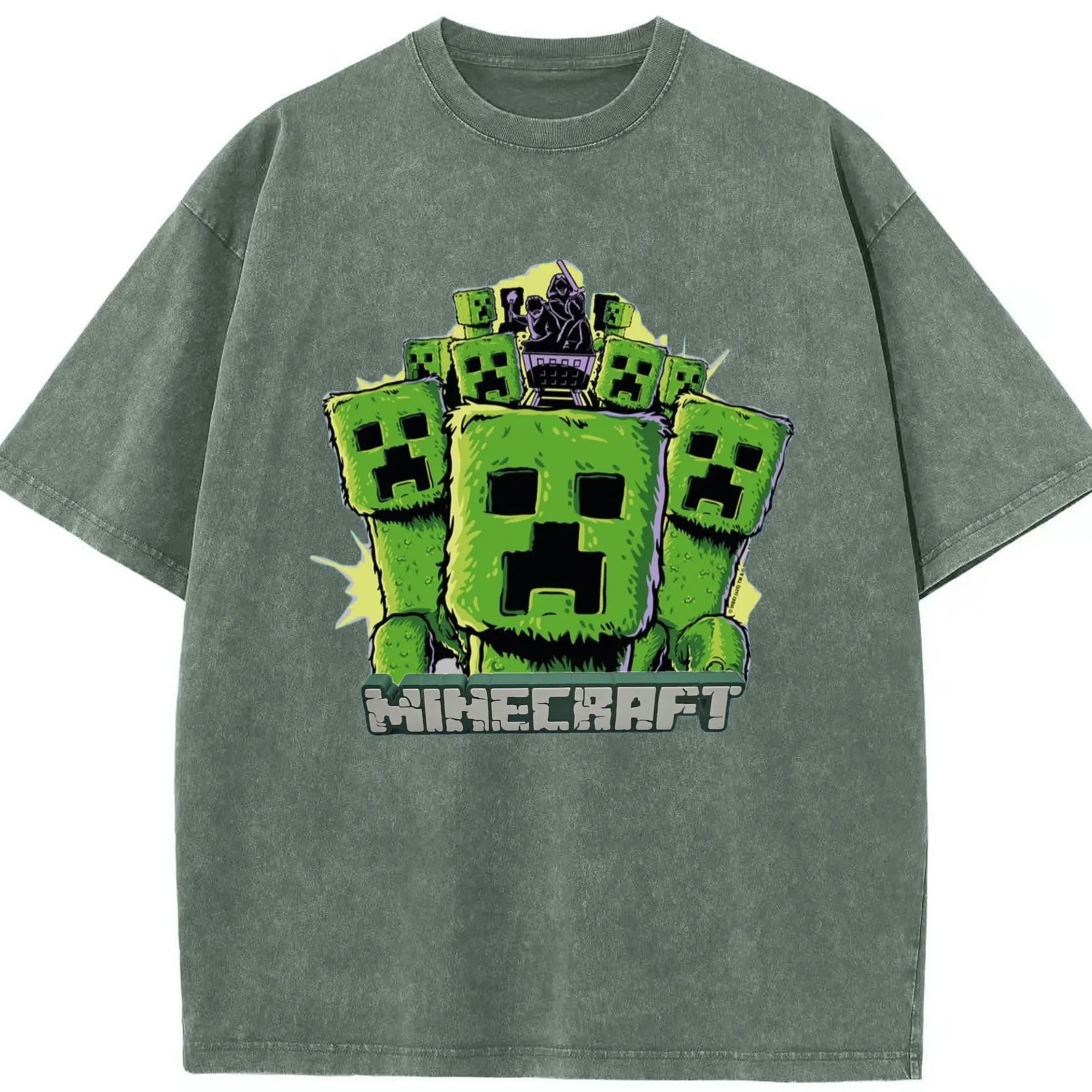 Minecraft Creeper graphic T-Shirt - Washed Vintage Look 230g Cotton Oversized T-Shirt With Front Heat Transfer Print – Soft, Lightweight, Stylish Fit – Comfortable Casual Wear For Sports & Everyday Use