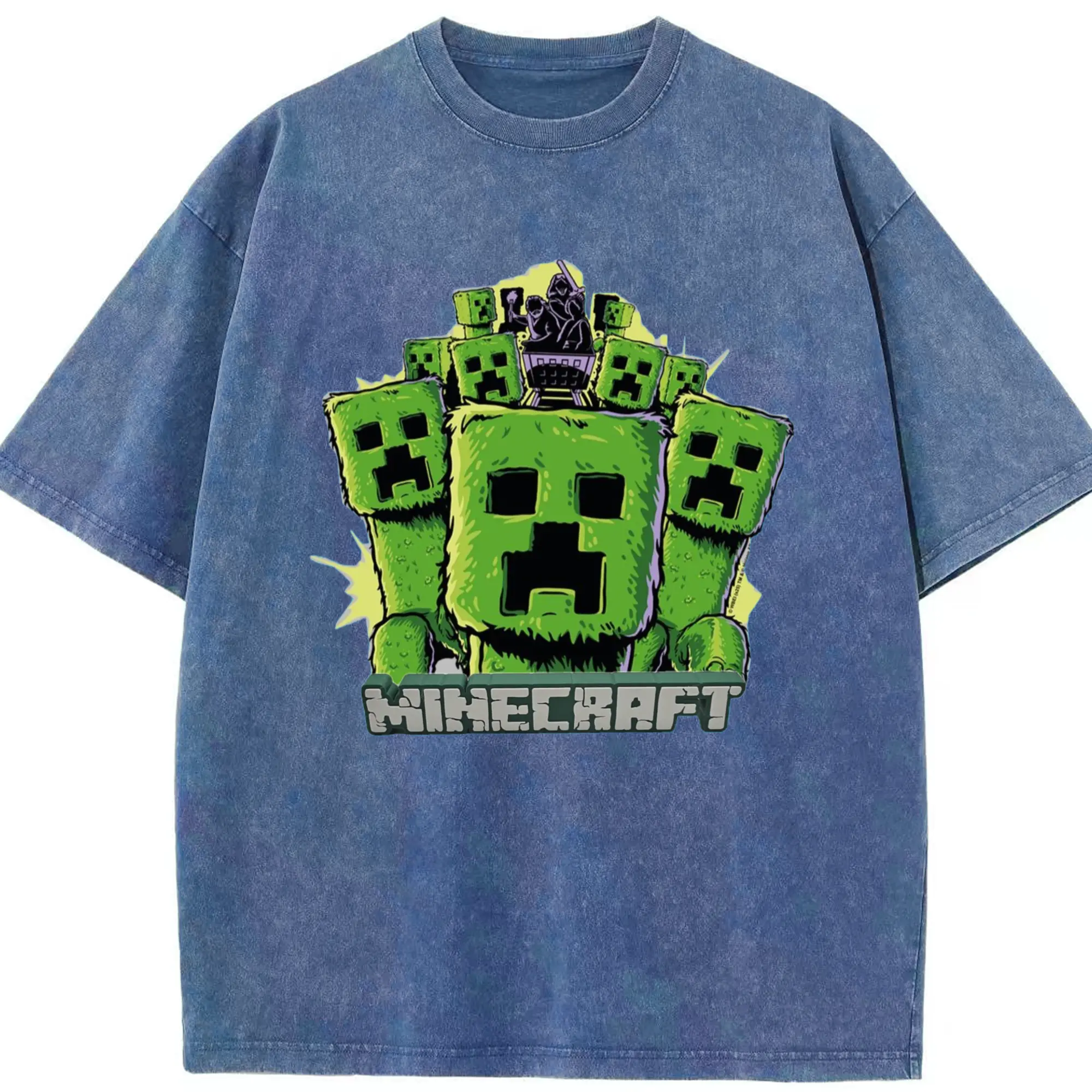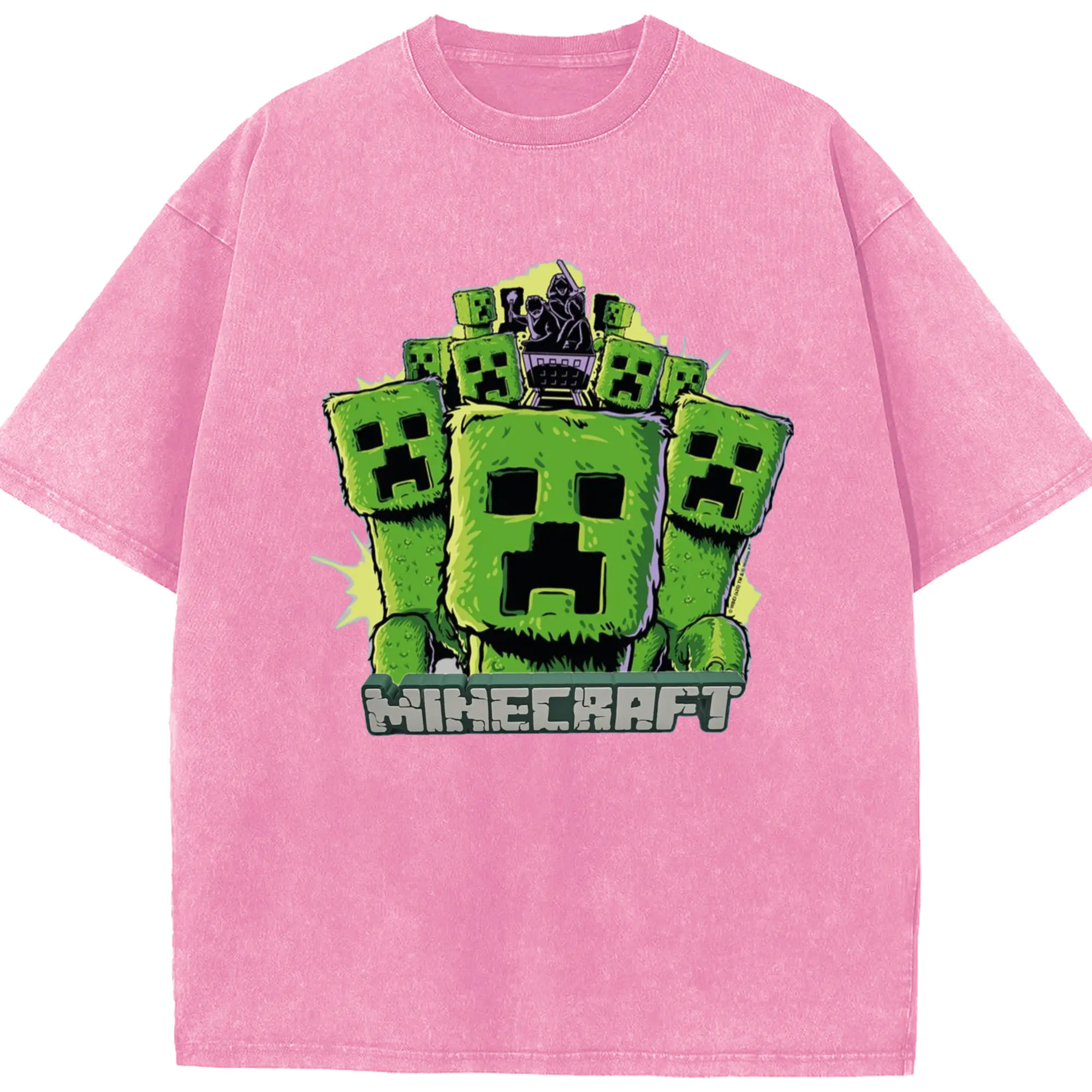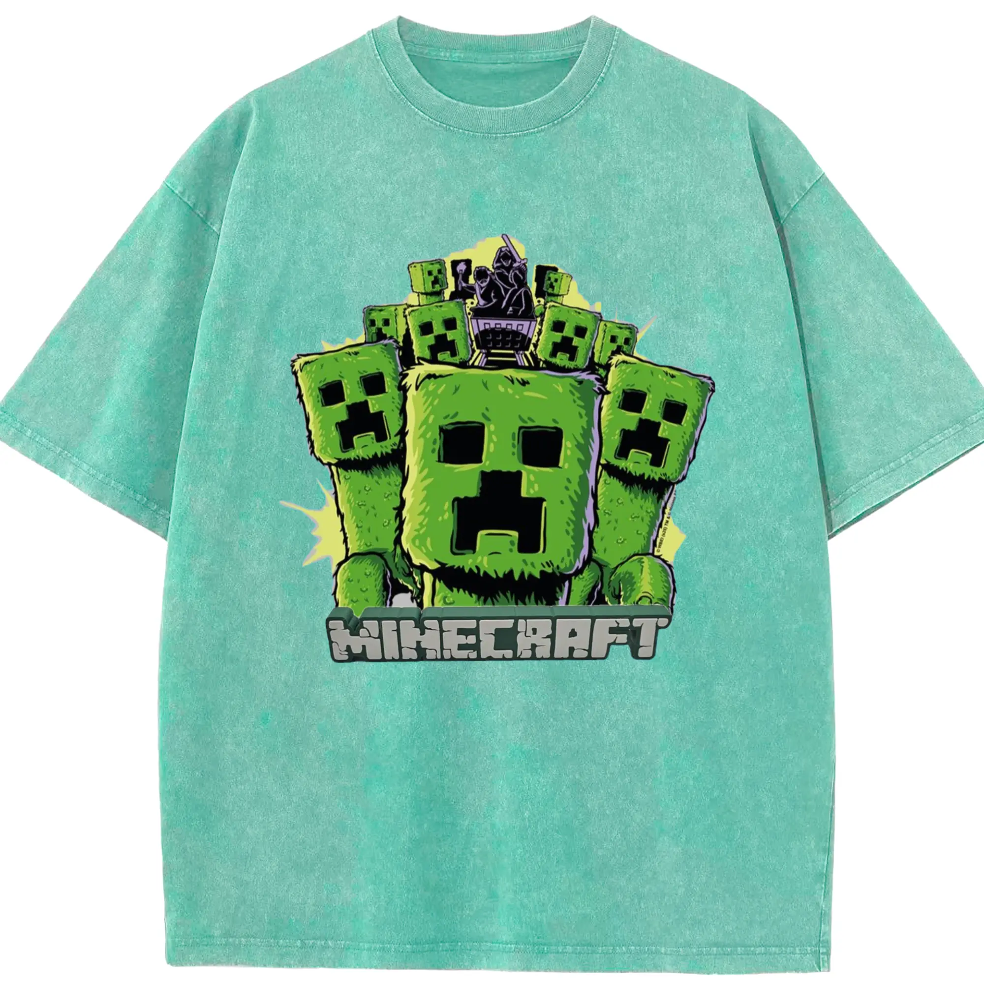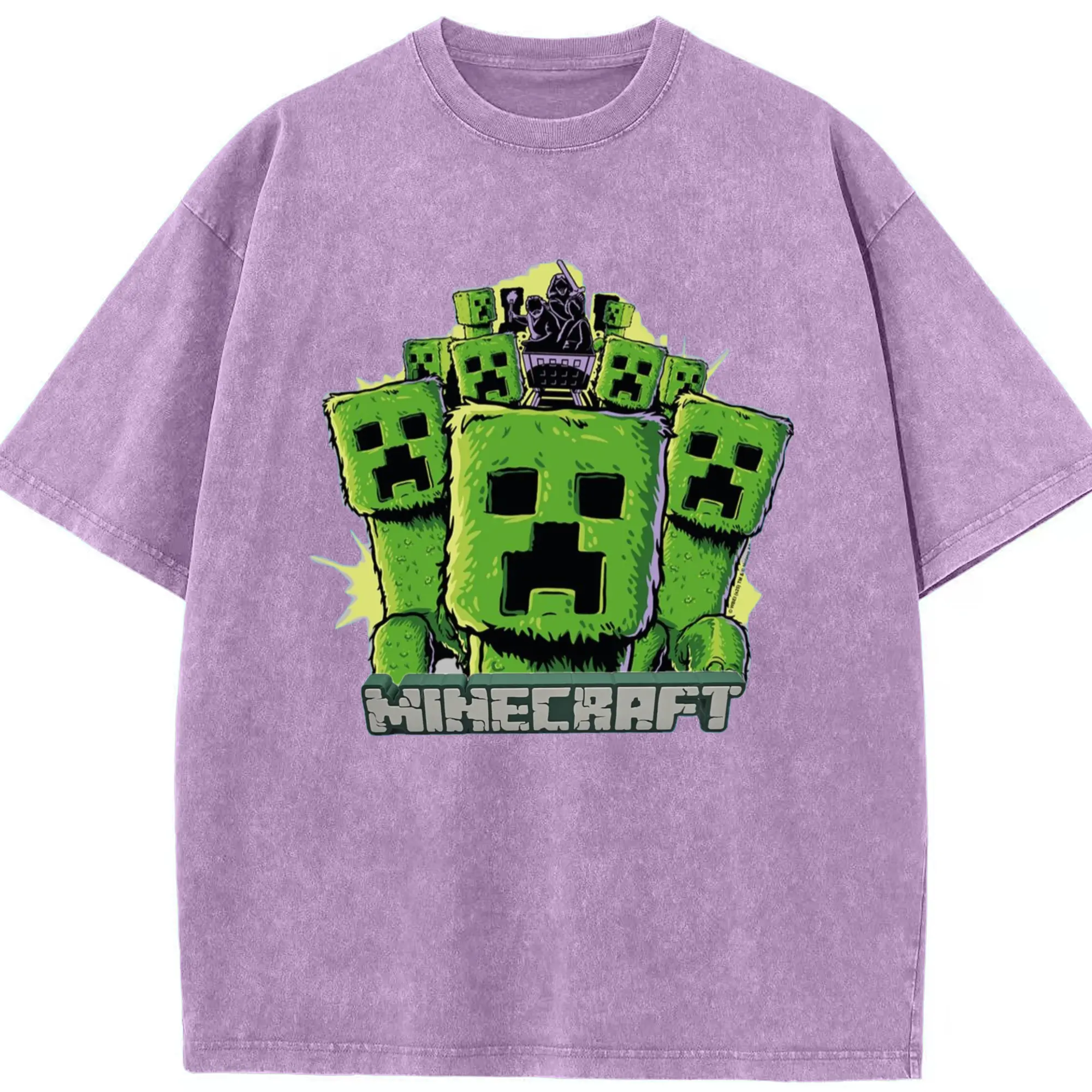 Minecraft Creeper graphic T-Shirt - Washed Vintage Look 230g Cotton Oversized T-Shirt With Front Heat Transfer Print – Soft, Lightweight, Stylish Fit – Comfortable Casual Wear For Sports & Everyday Use
