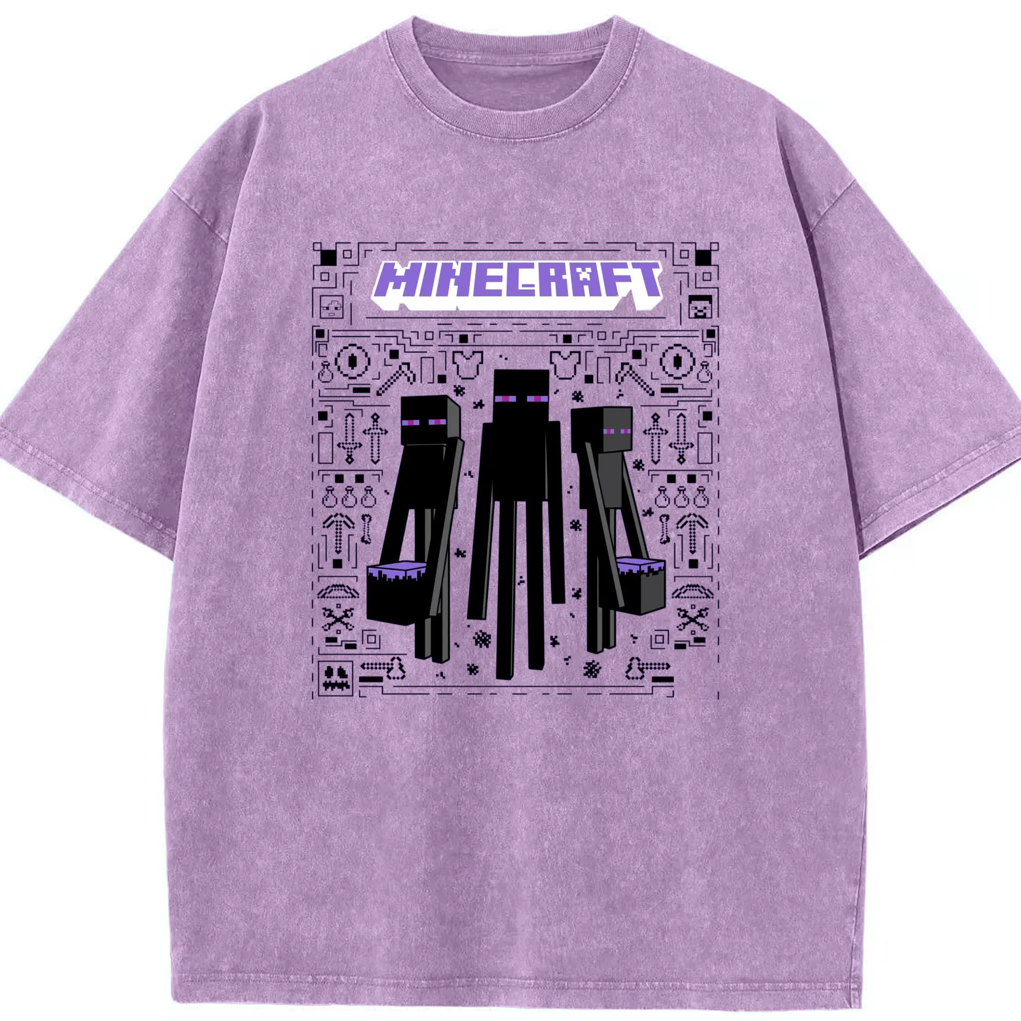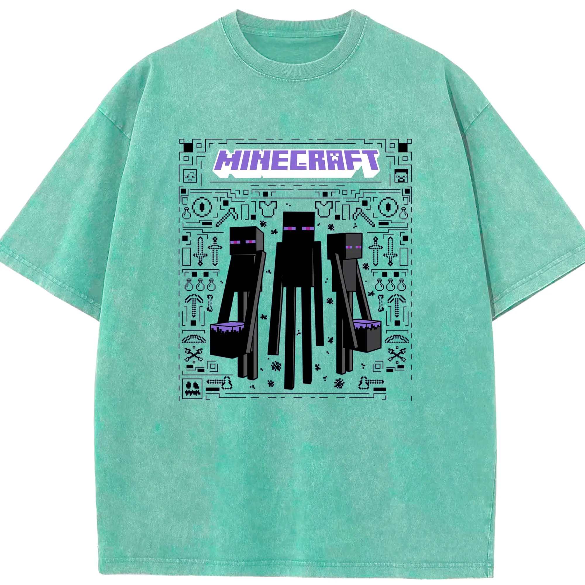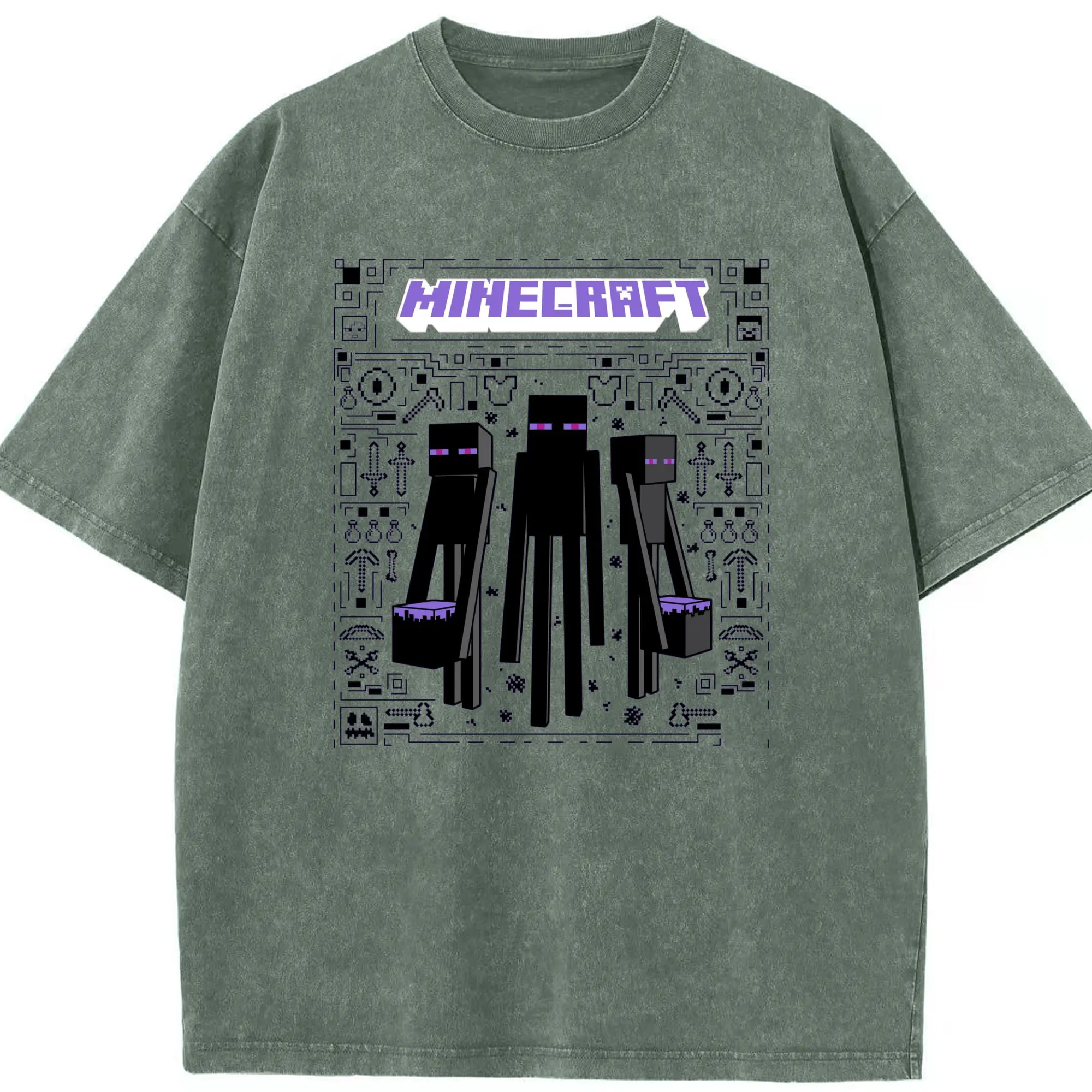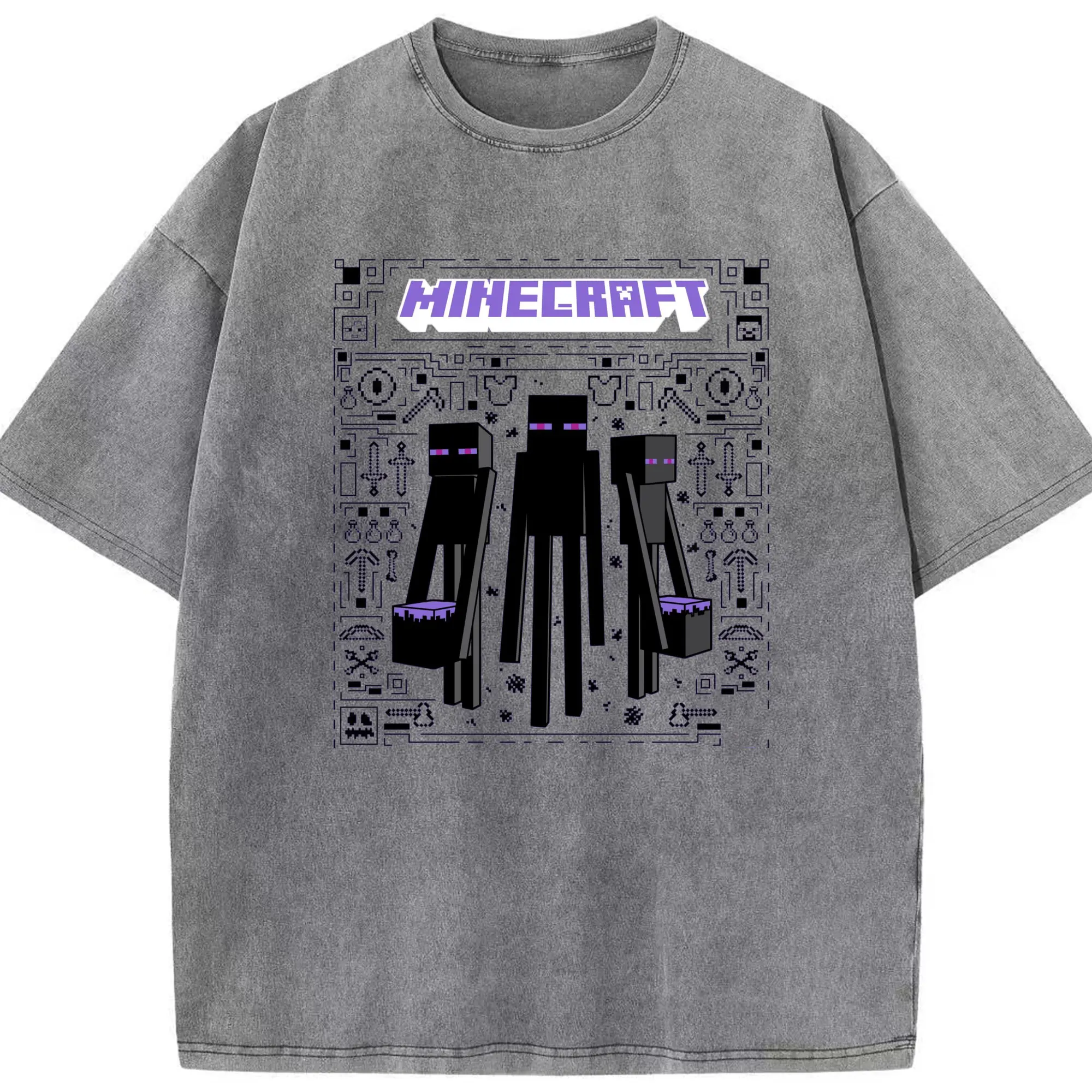 Minecraft enderman graphic shirt​ - Washed Vintage Look 230g Cotton Oversized T-Shirt With Front Heat Transfer Print – Soft, Lightweight, Stylish Fit – Comfortable Casual Wear For Sports & Everyday Use