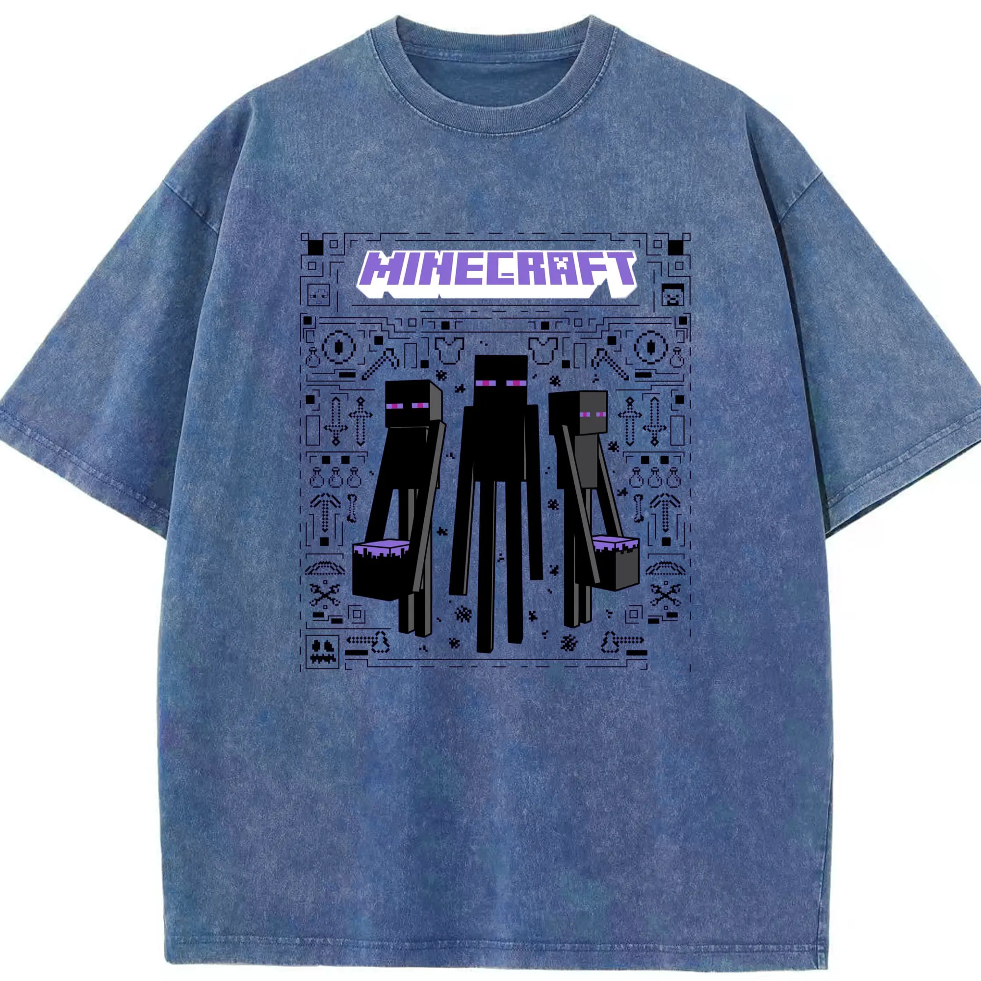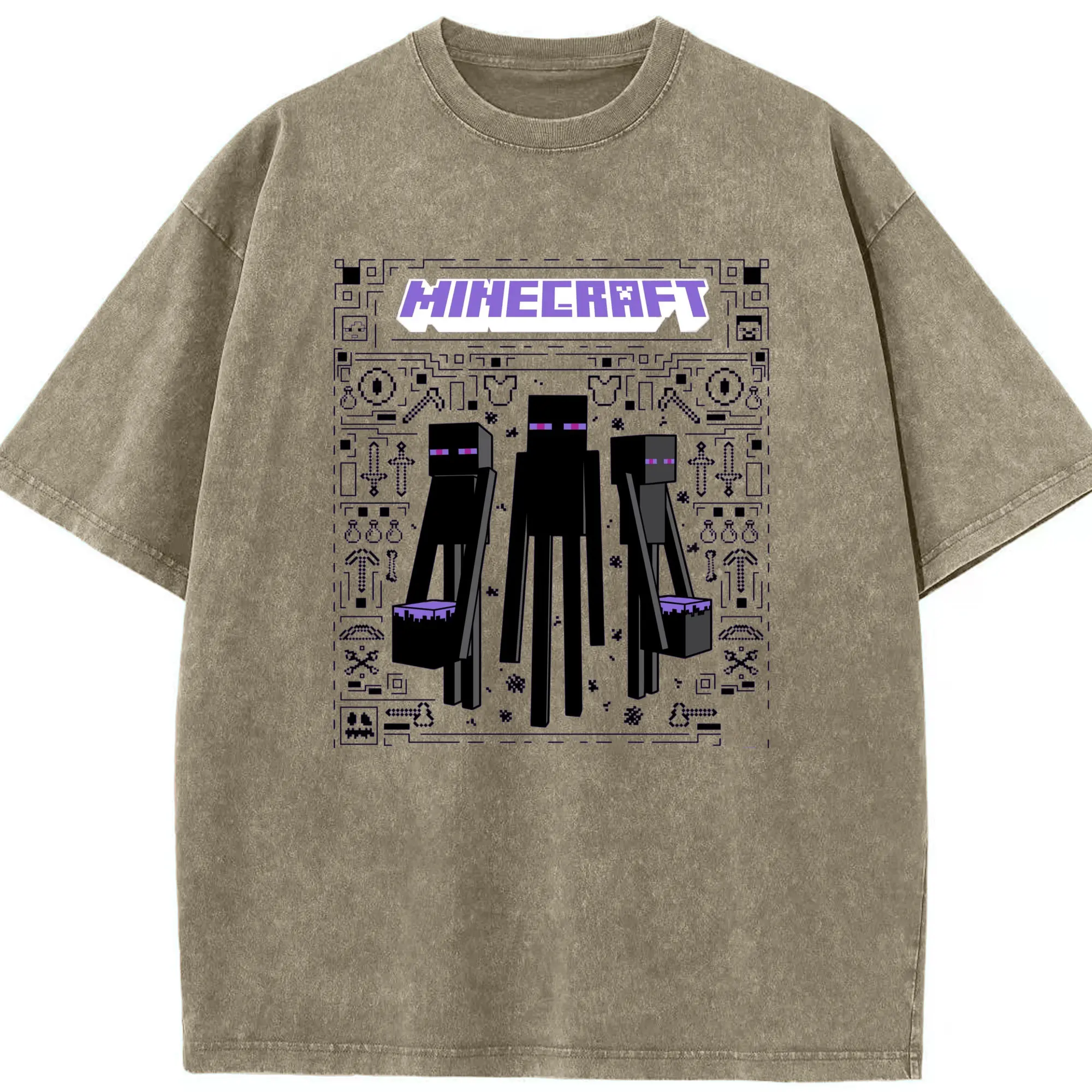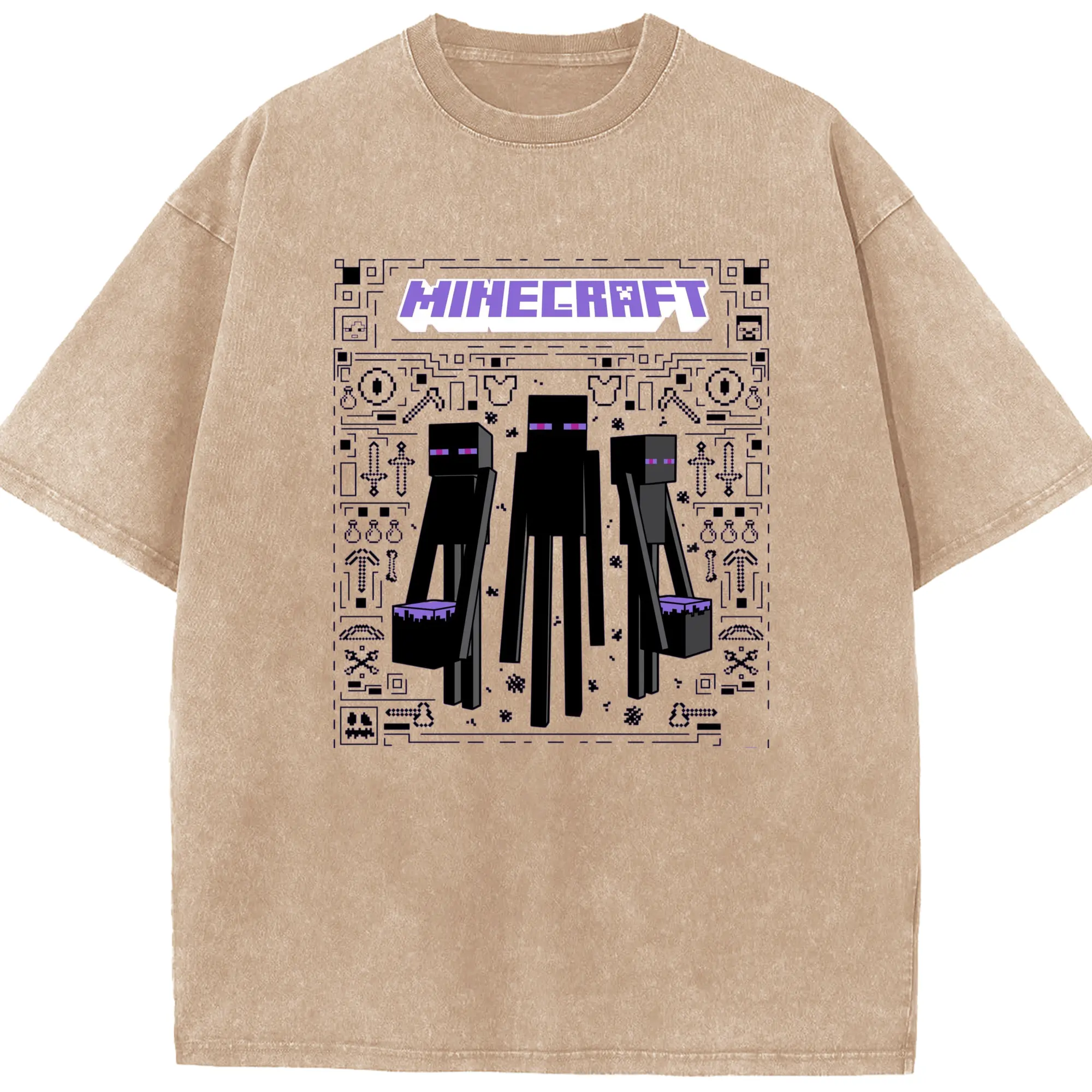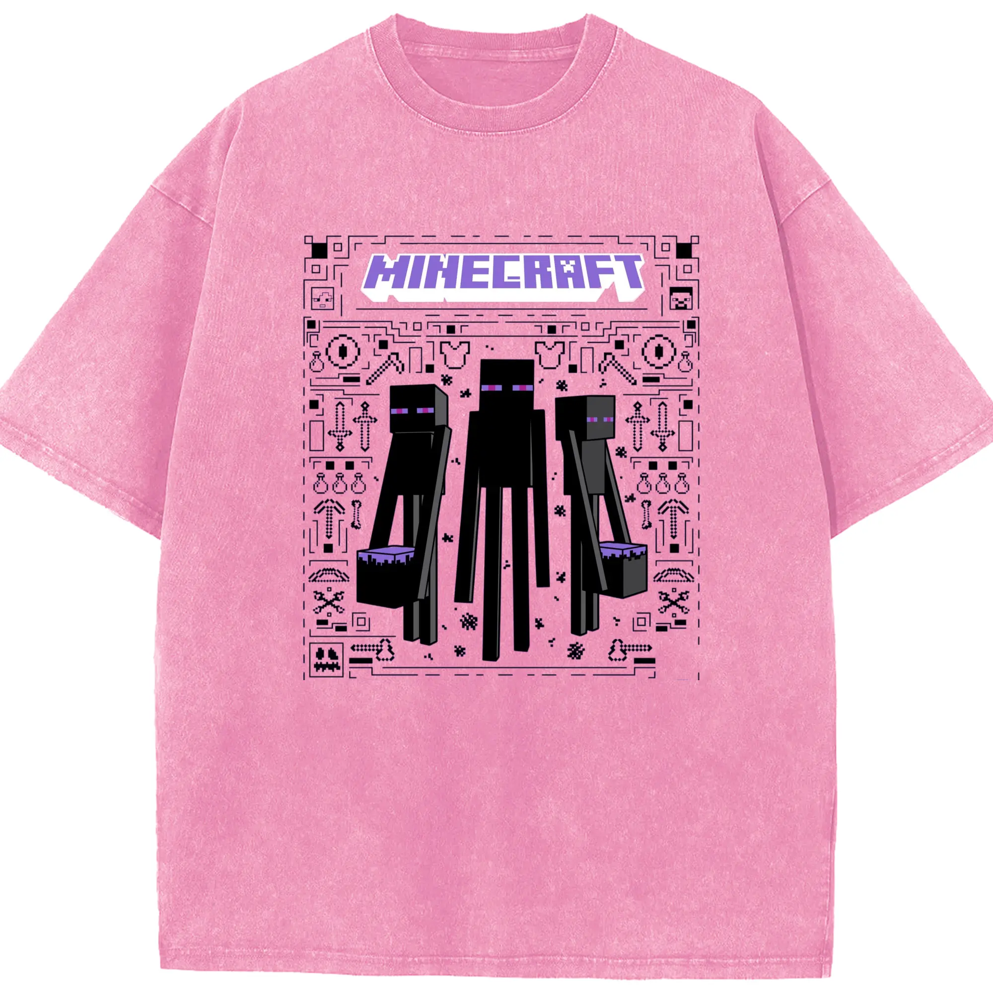 Minecraft enderman graphic shirt​ - Washed Vintage Look 230g Cotton Oversized T-Shirt With Front Heat Transfer Print – Soft, Lightweight, Stylish Fit – Comfortable Casual Wear For Sports & Everyday Use