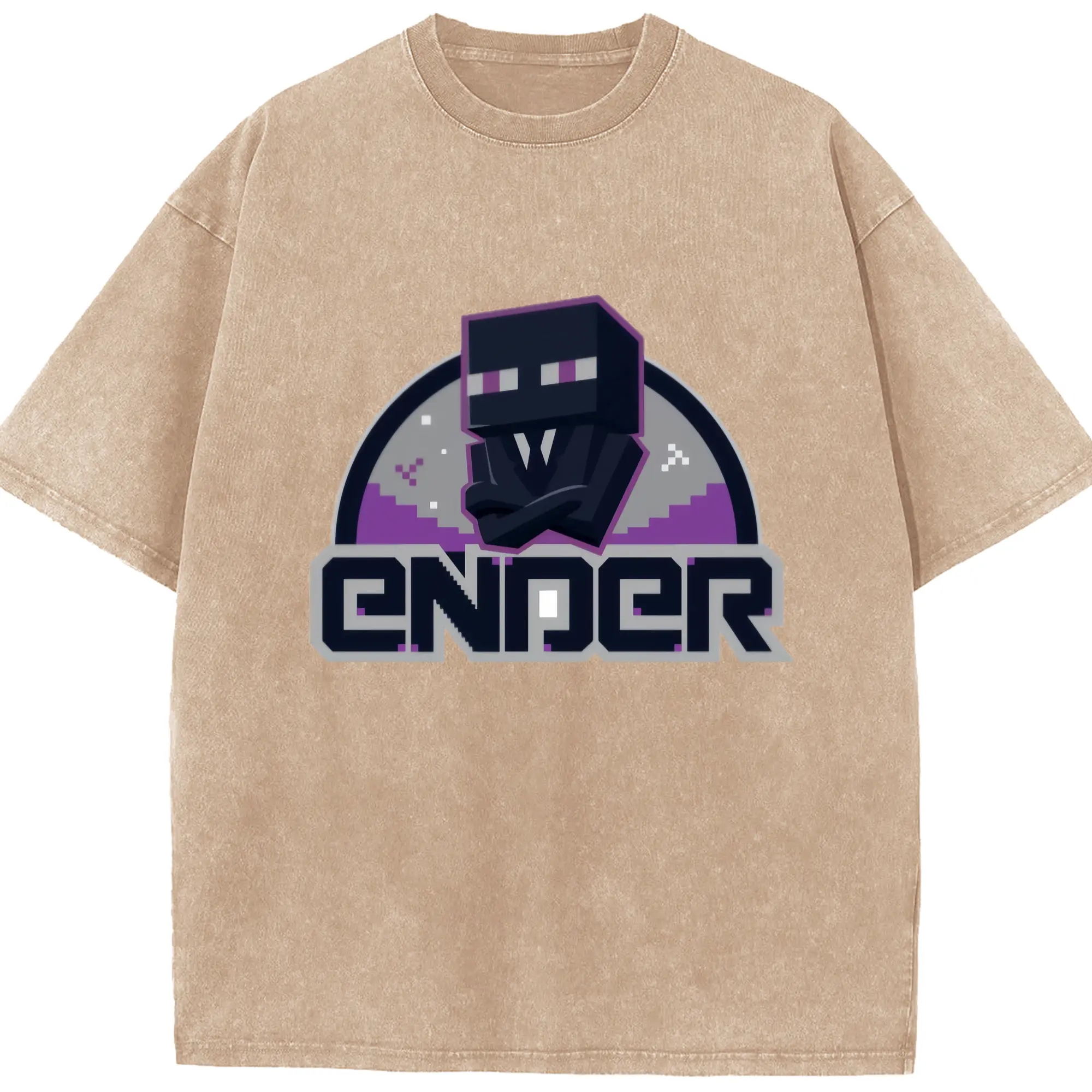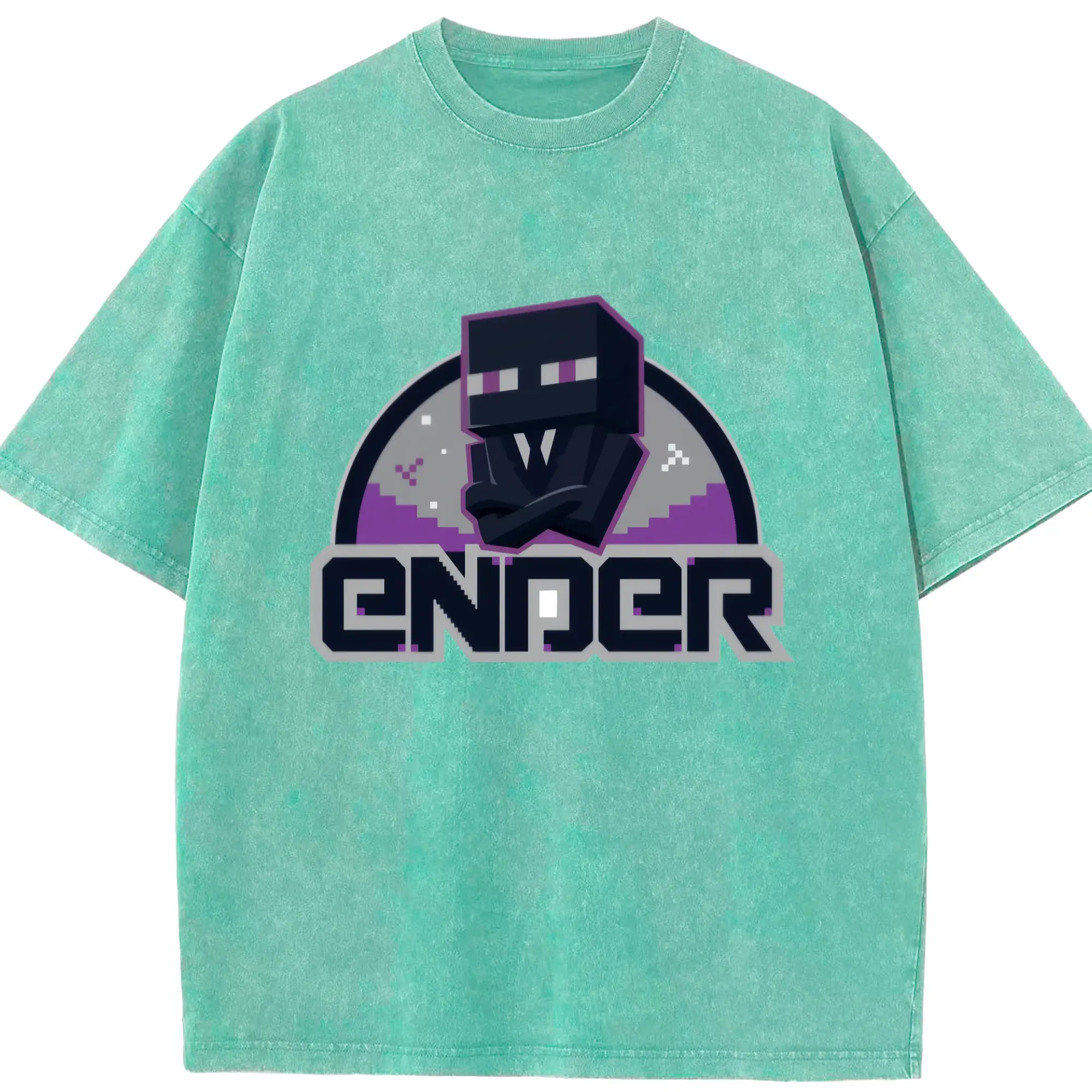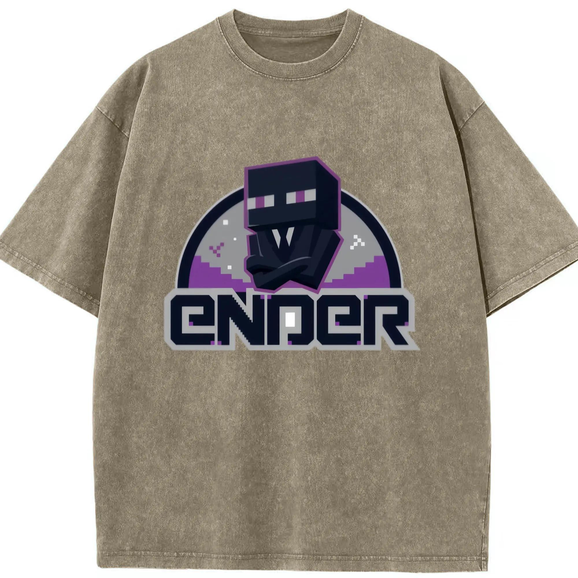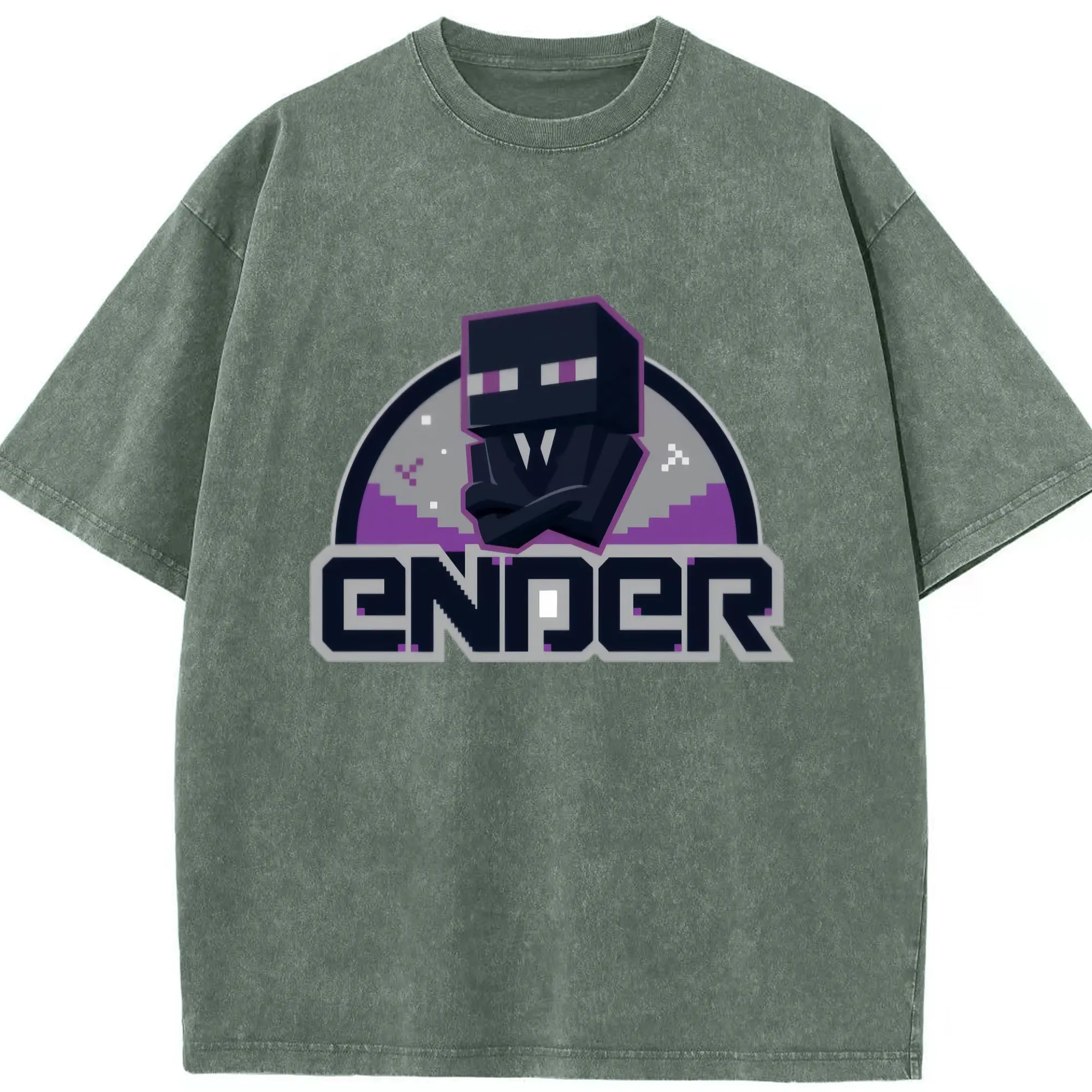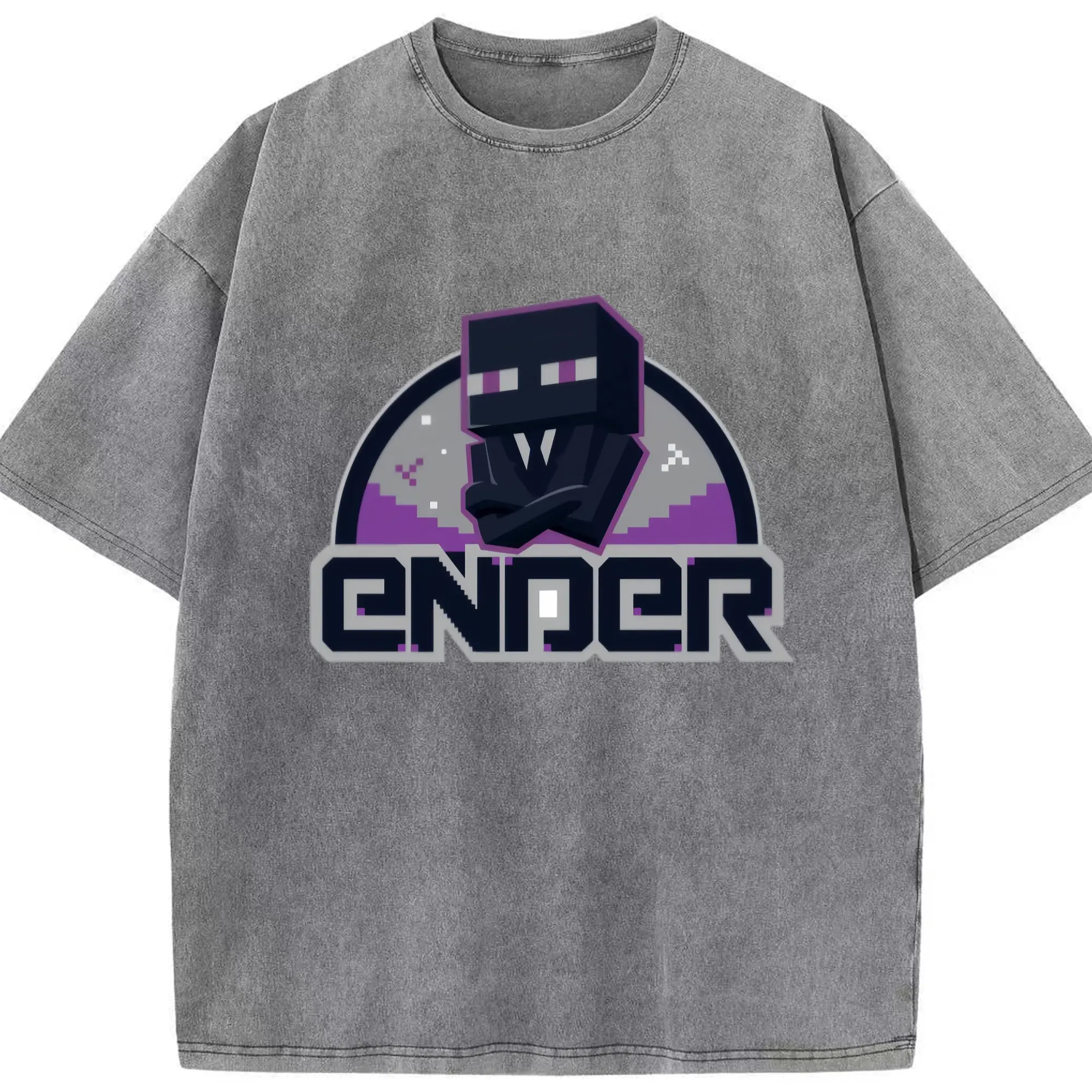 Minecraft Enderman shirt - Washed Vintage Look 230g Cotton Oversized T-Shirt With Front Heat Transfer Print – Soft, Lightweight, Stylish Fit – Comfortable Casual Wear For Sports & Everyday Use