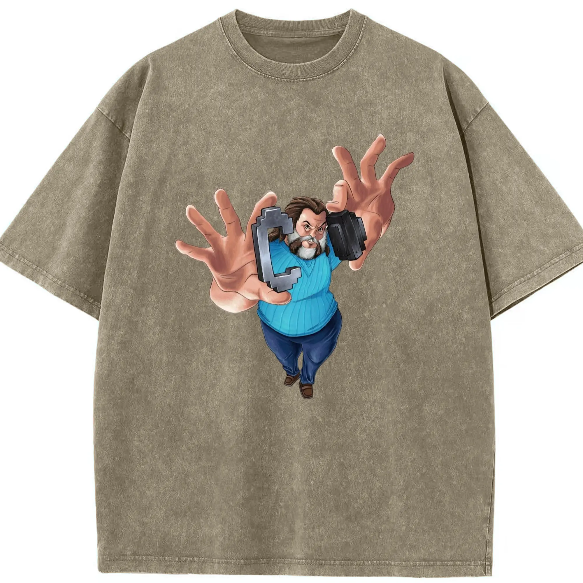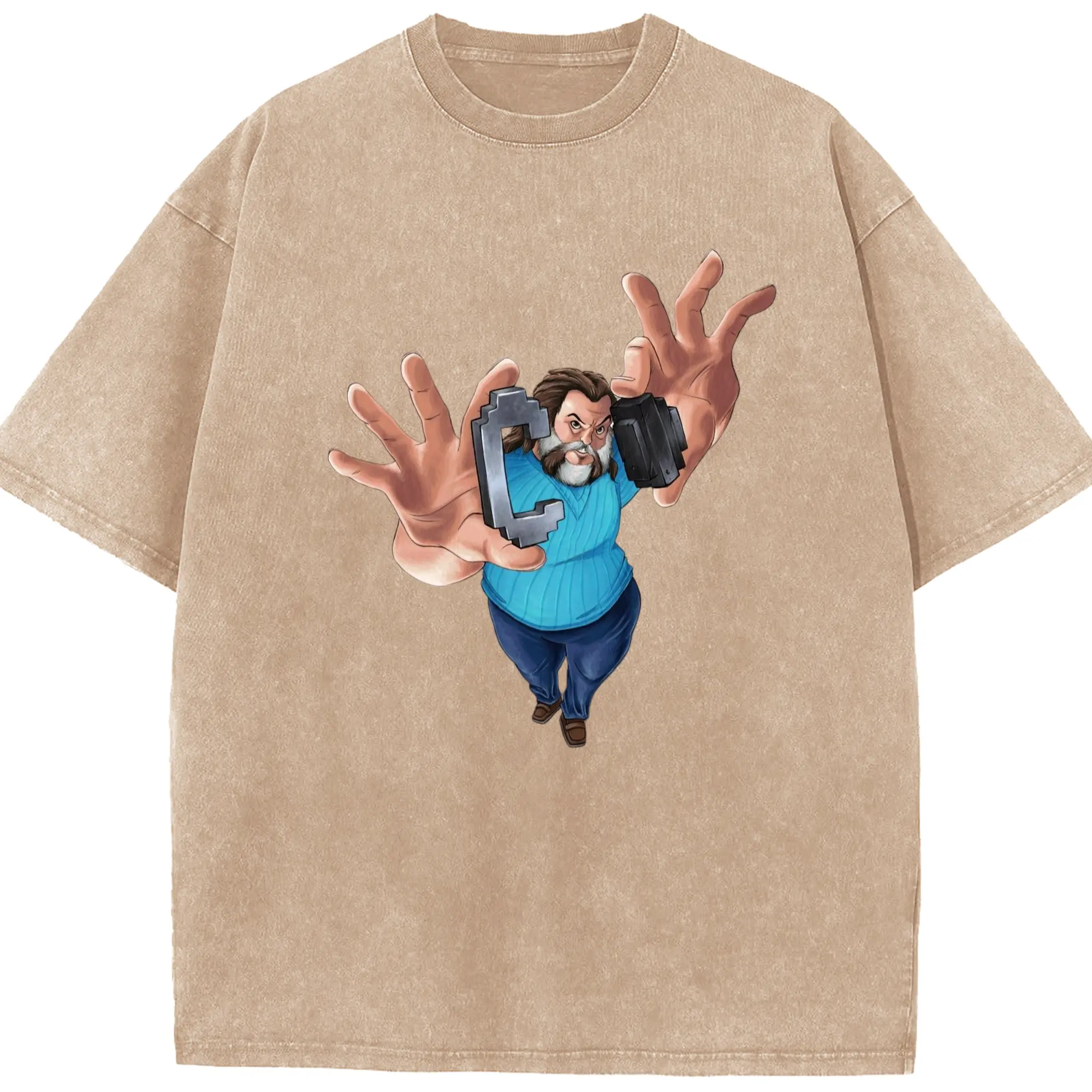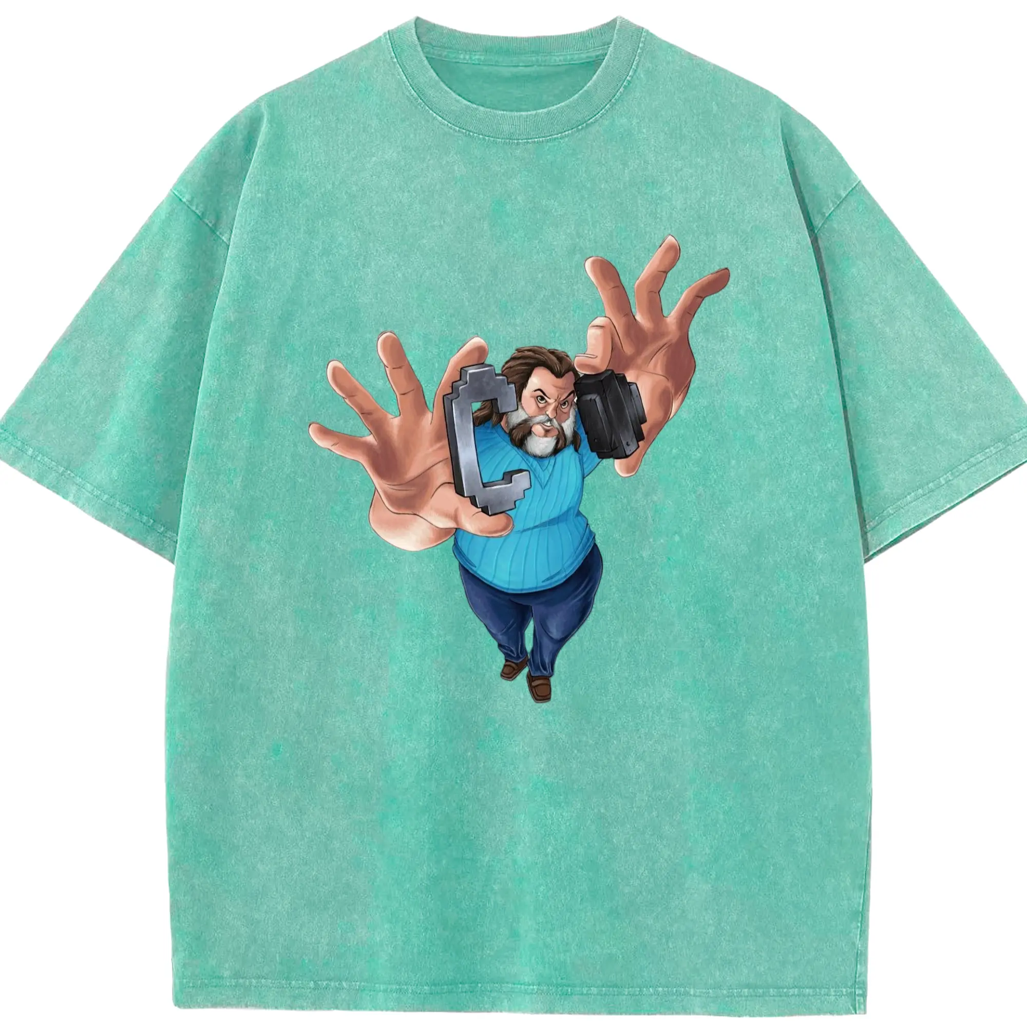 Minecraft movie steve shirt​ - Washed Vintage Look 230g Cotton Oversized T-Shirt With Front Heat Transfer Print – Soft, Lightweight, Stylish Fit – Comfortable Casual Wear For Sports & Everyday Use