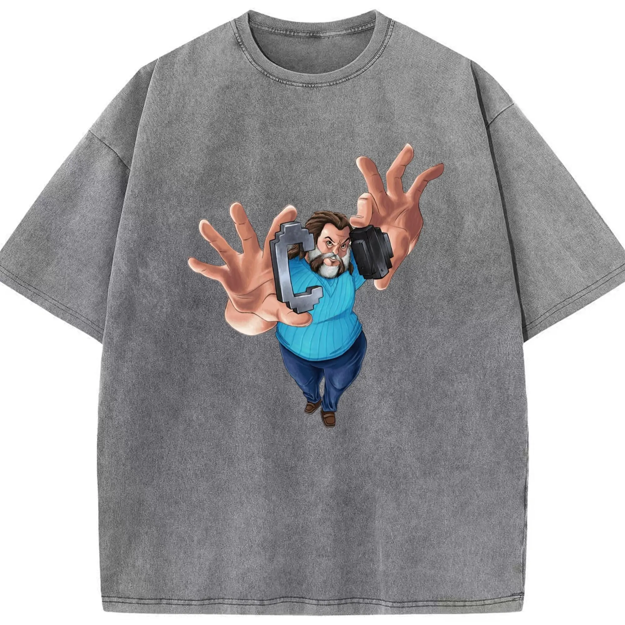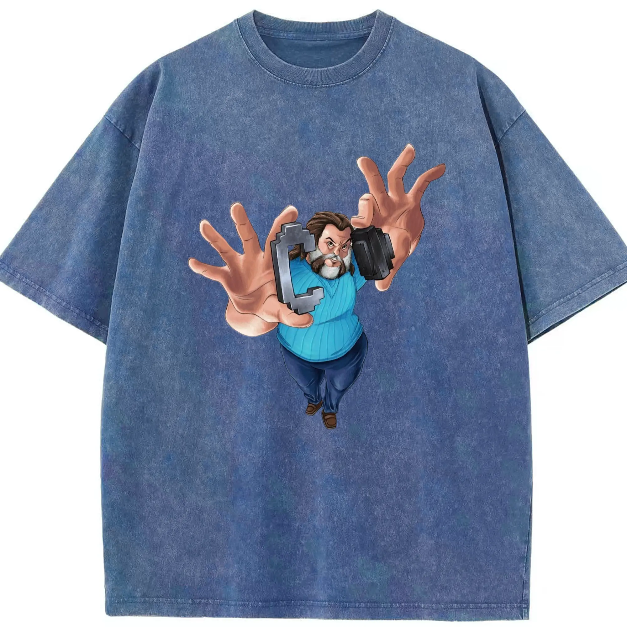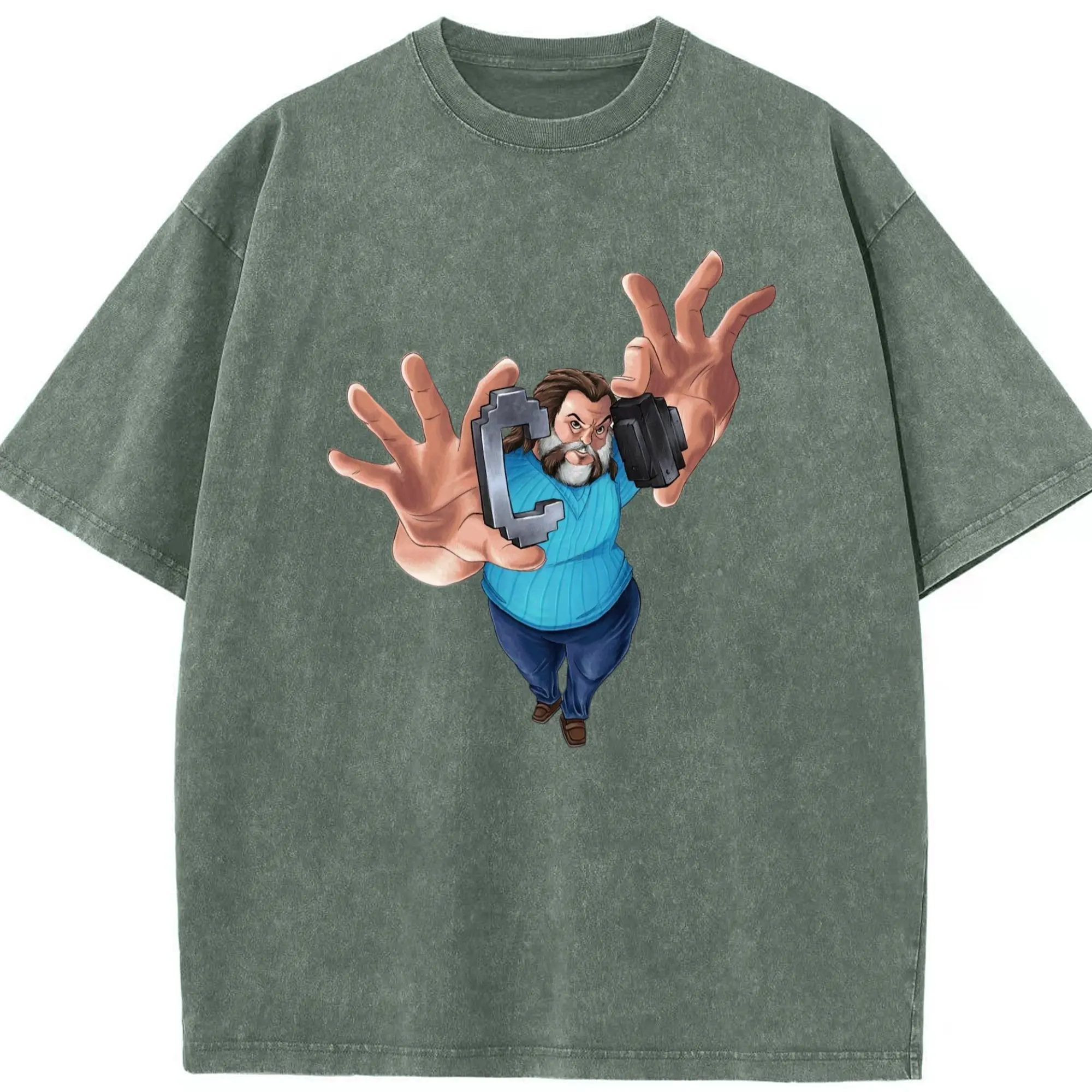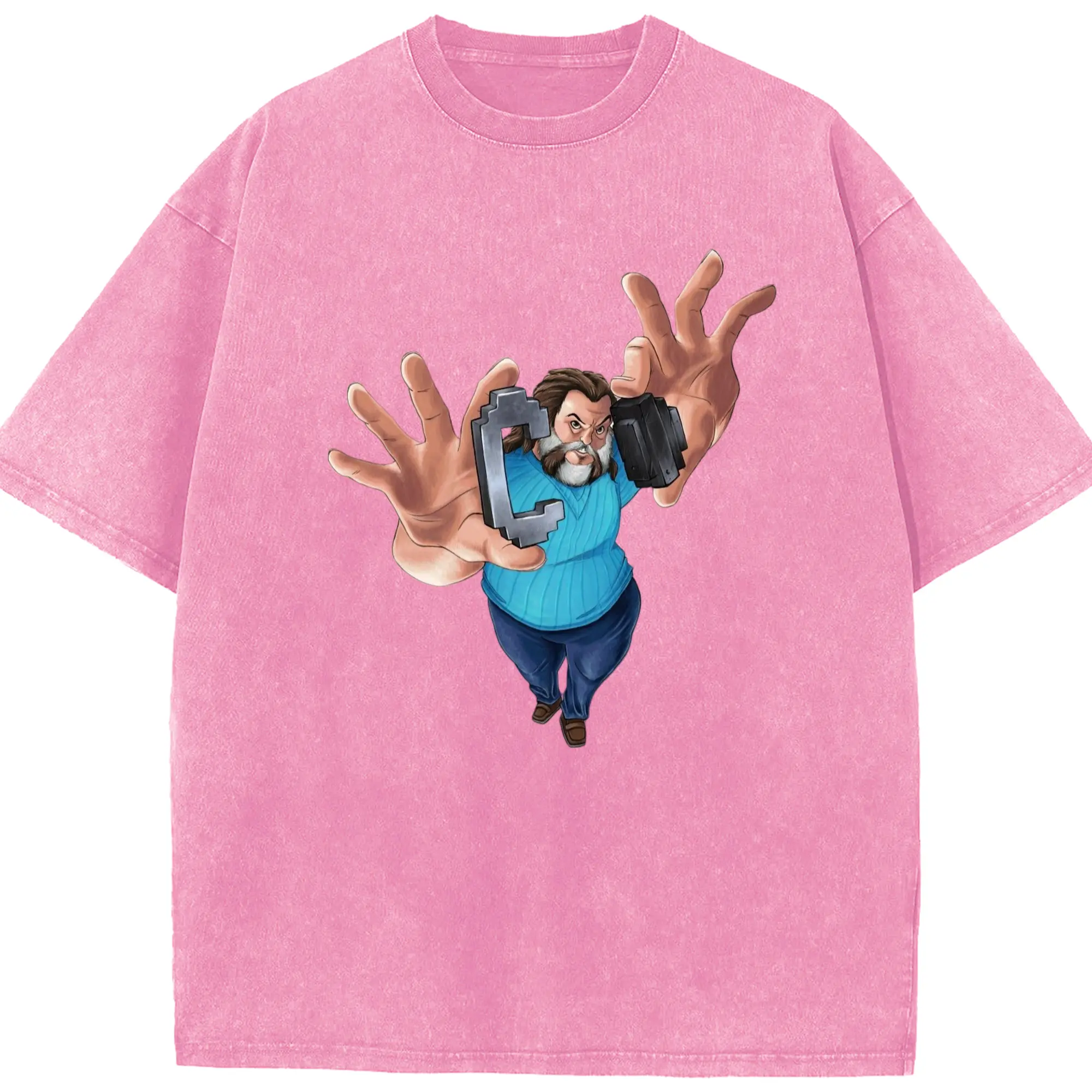 Minecraft movie steve shirt​ - Washed Vintage Look 230g Cotton Oversized T-Shirt With Front Heat Transfer Print – Soft, Lightweight, Stylish Fit – Comfortable Casual Wear For Sports & Everyday Use
