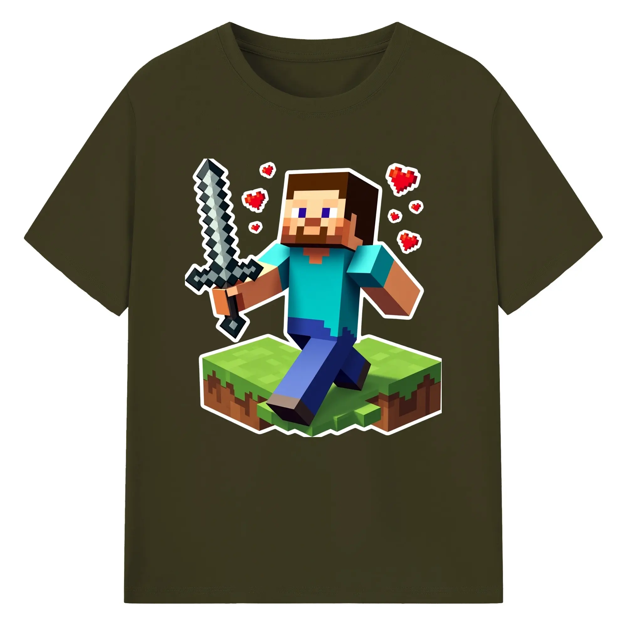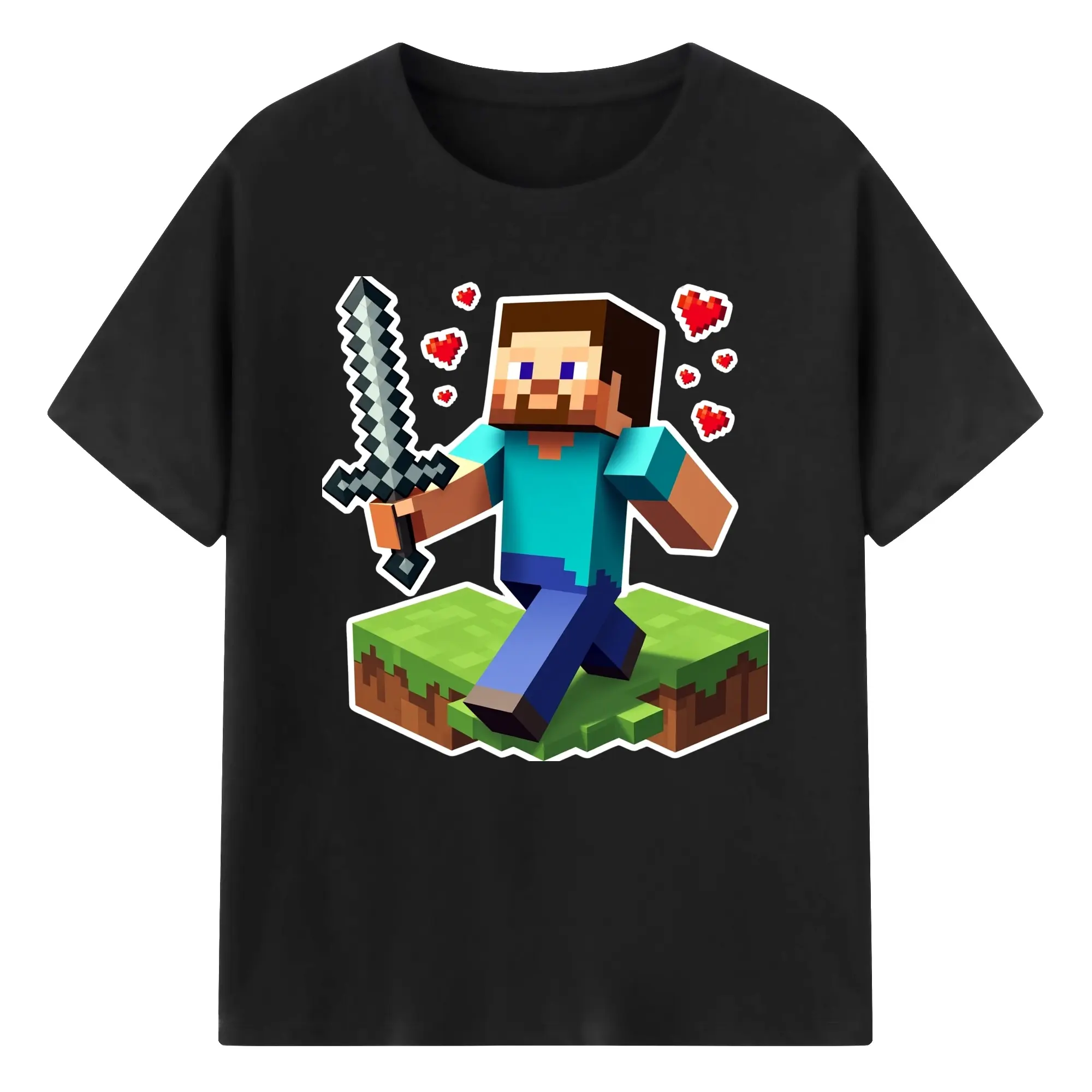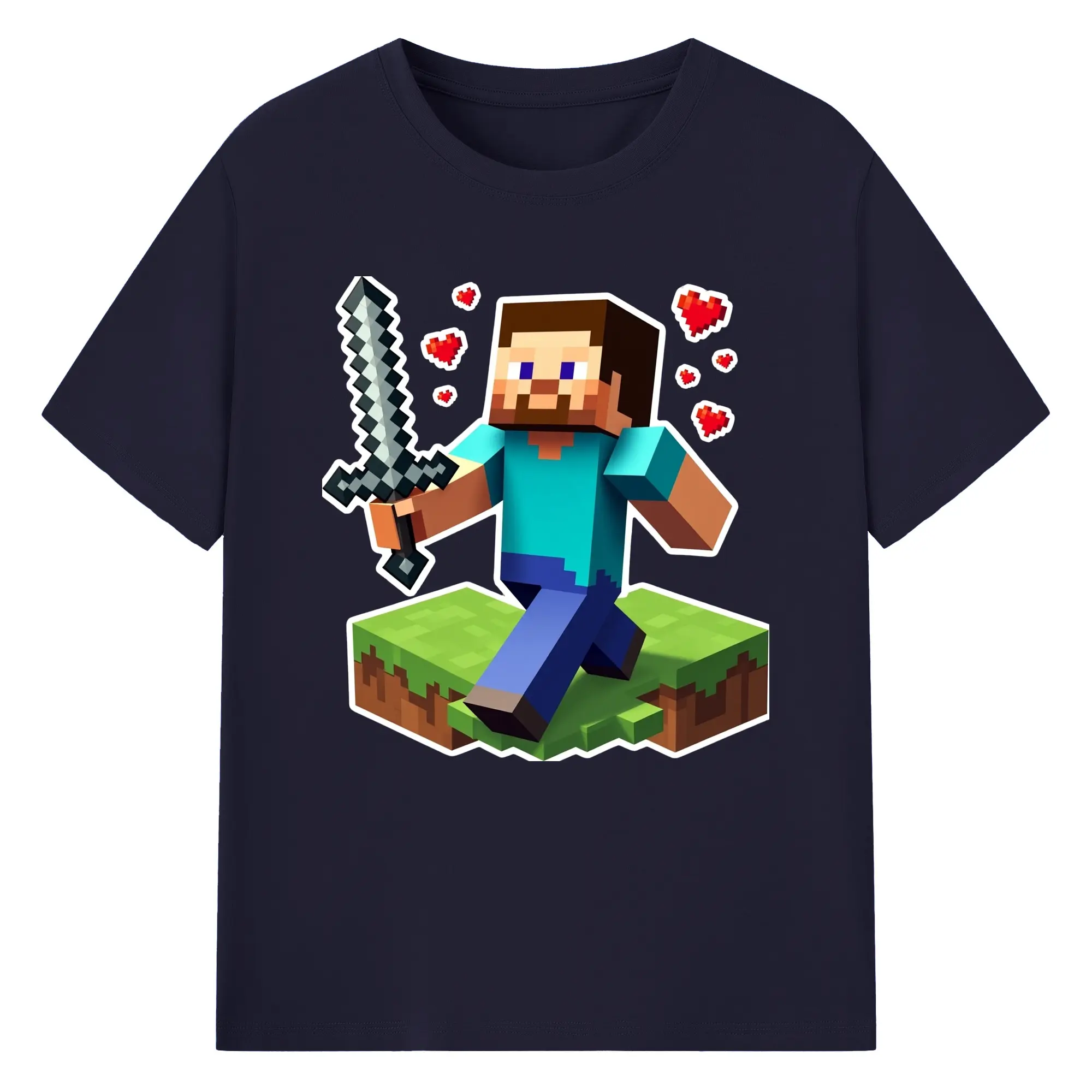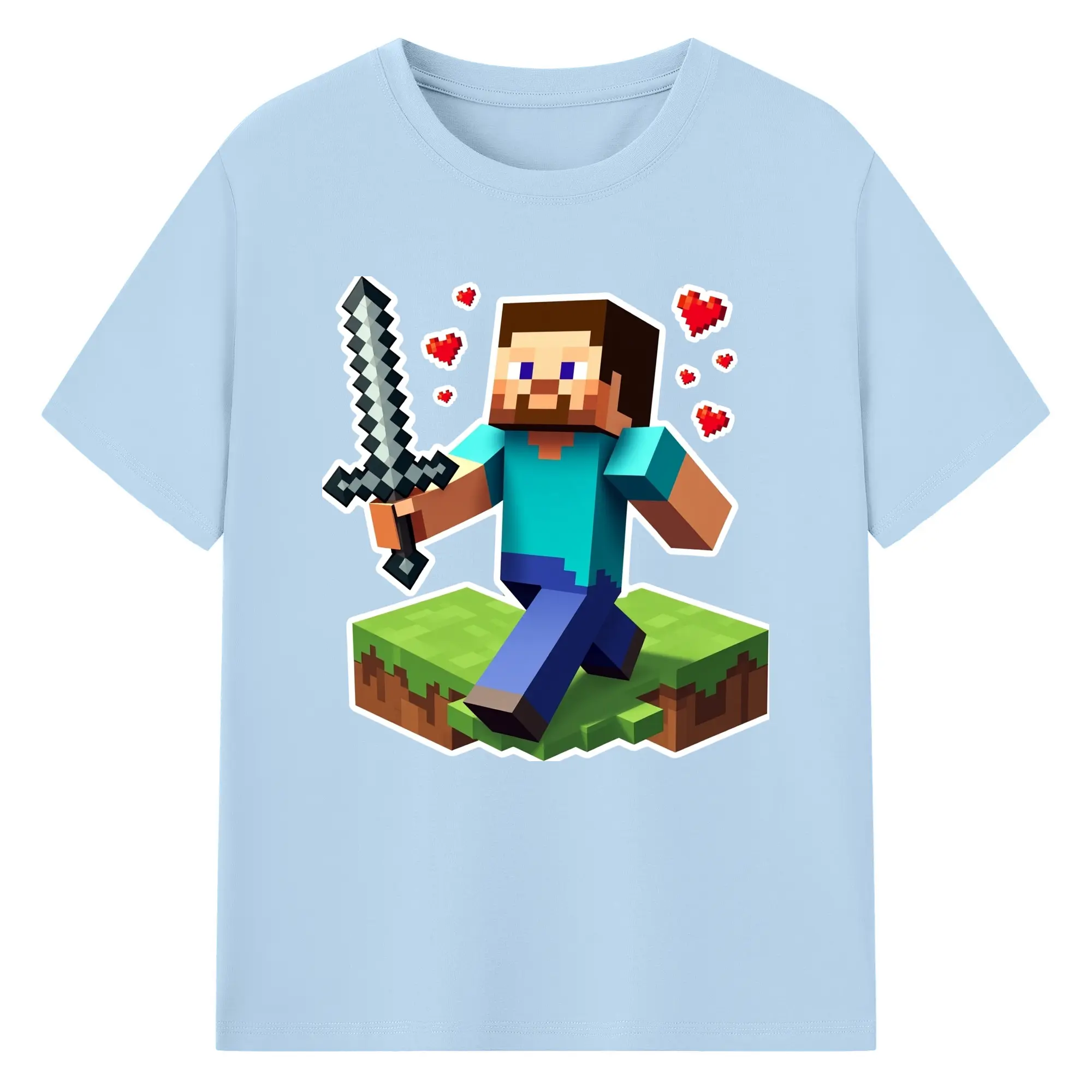 Minecraft steve art shirt - 180g Cotton T-Shirt With Front Heat Transfer Print – Soft, Lightweight, Fitted Design – Comfortable Casual Wear For Sports & Everyday Use