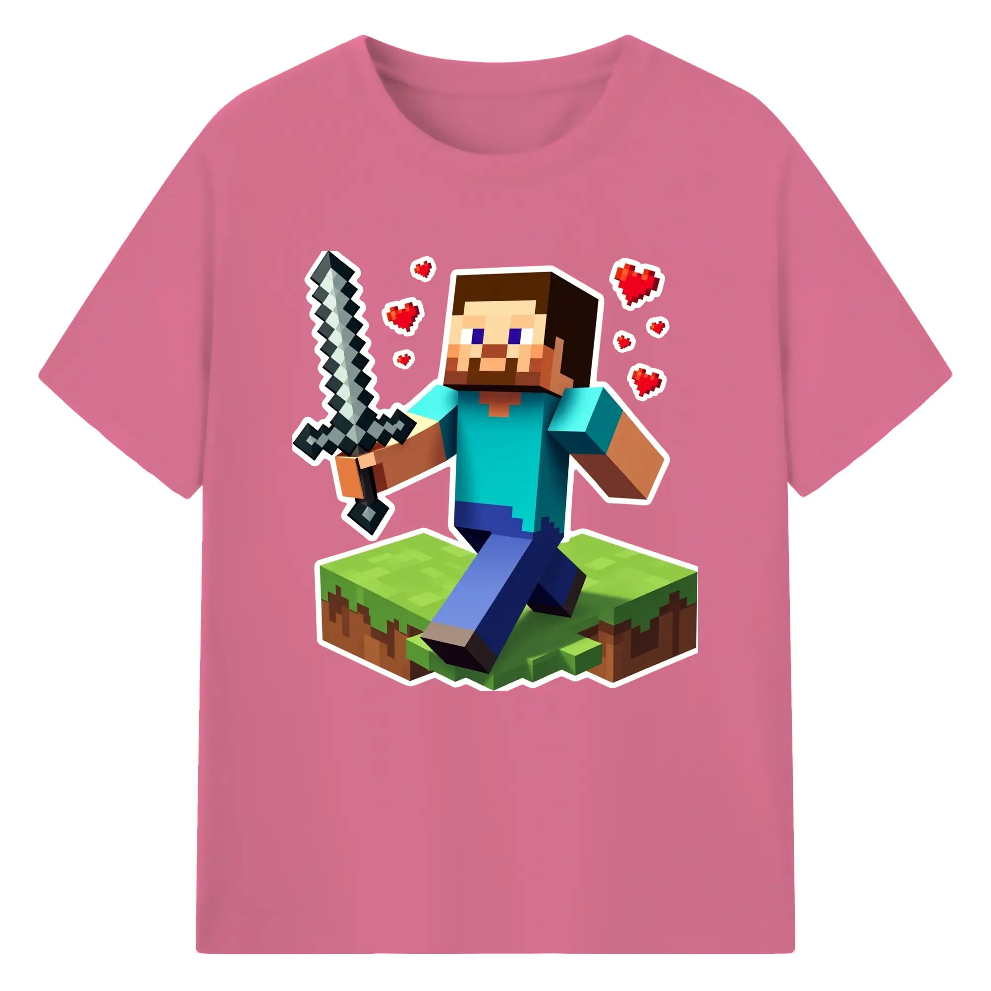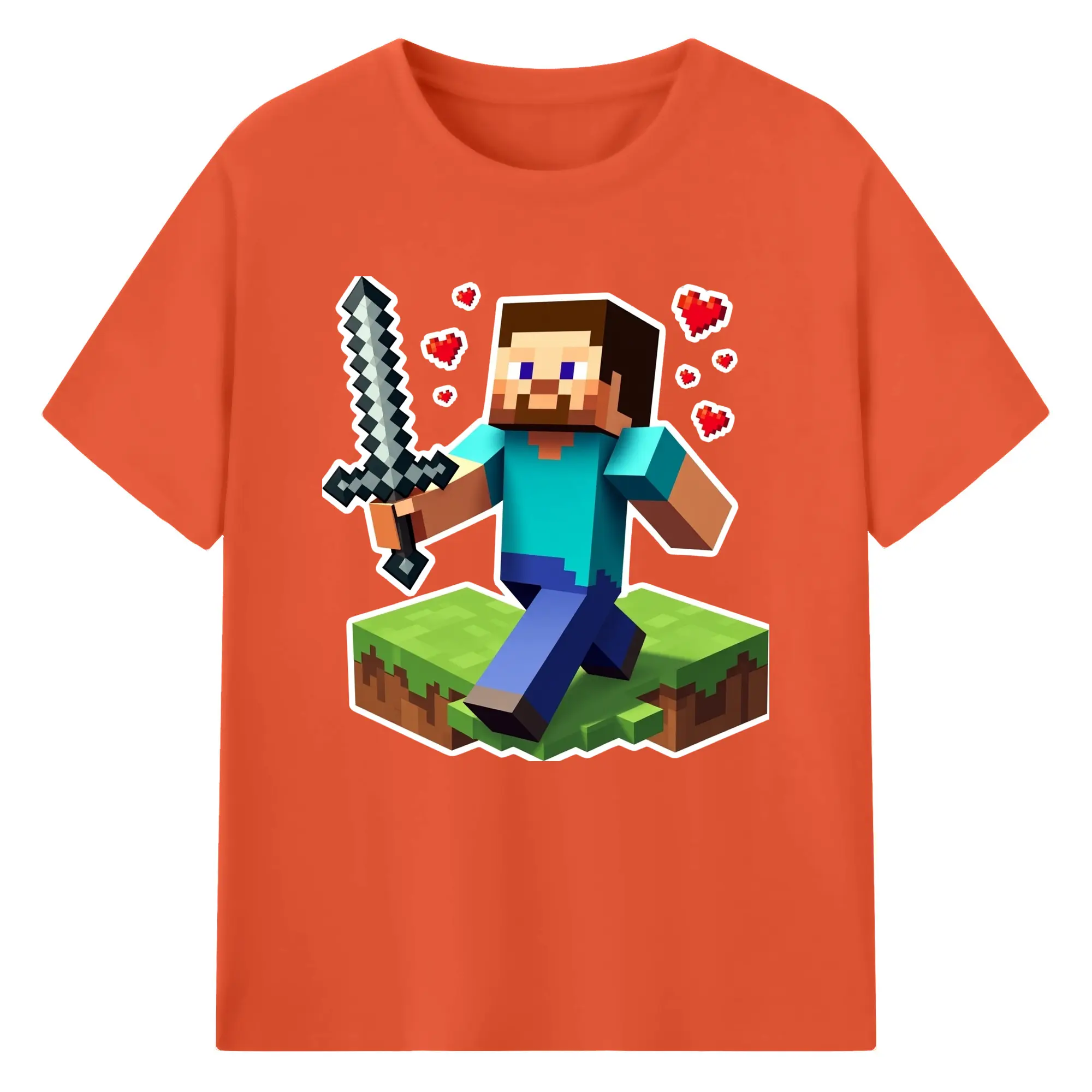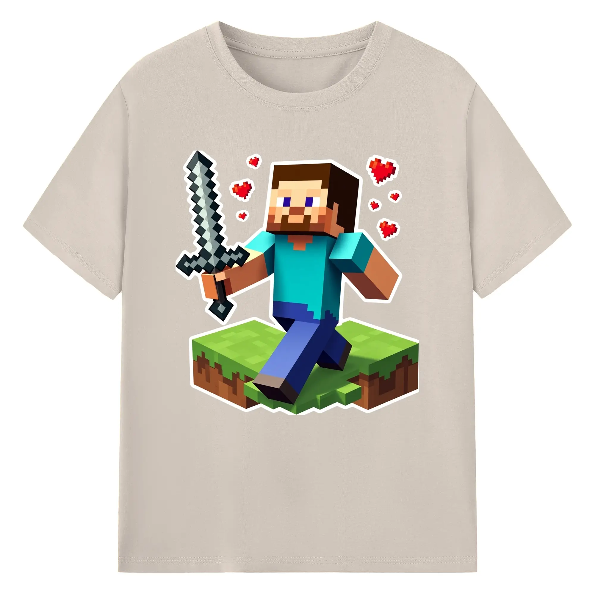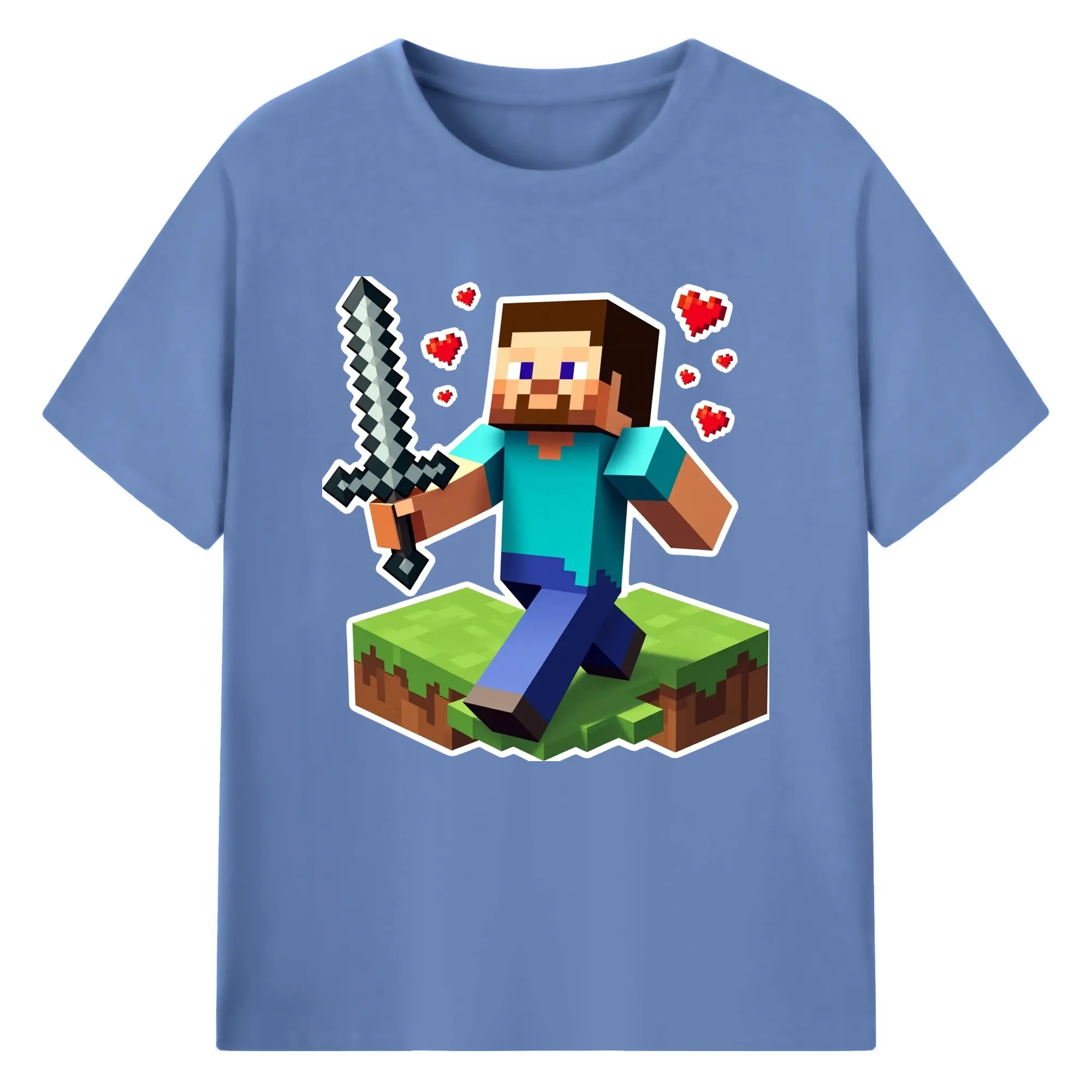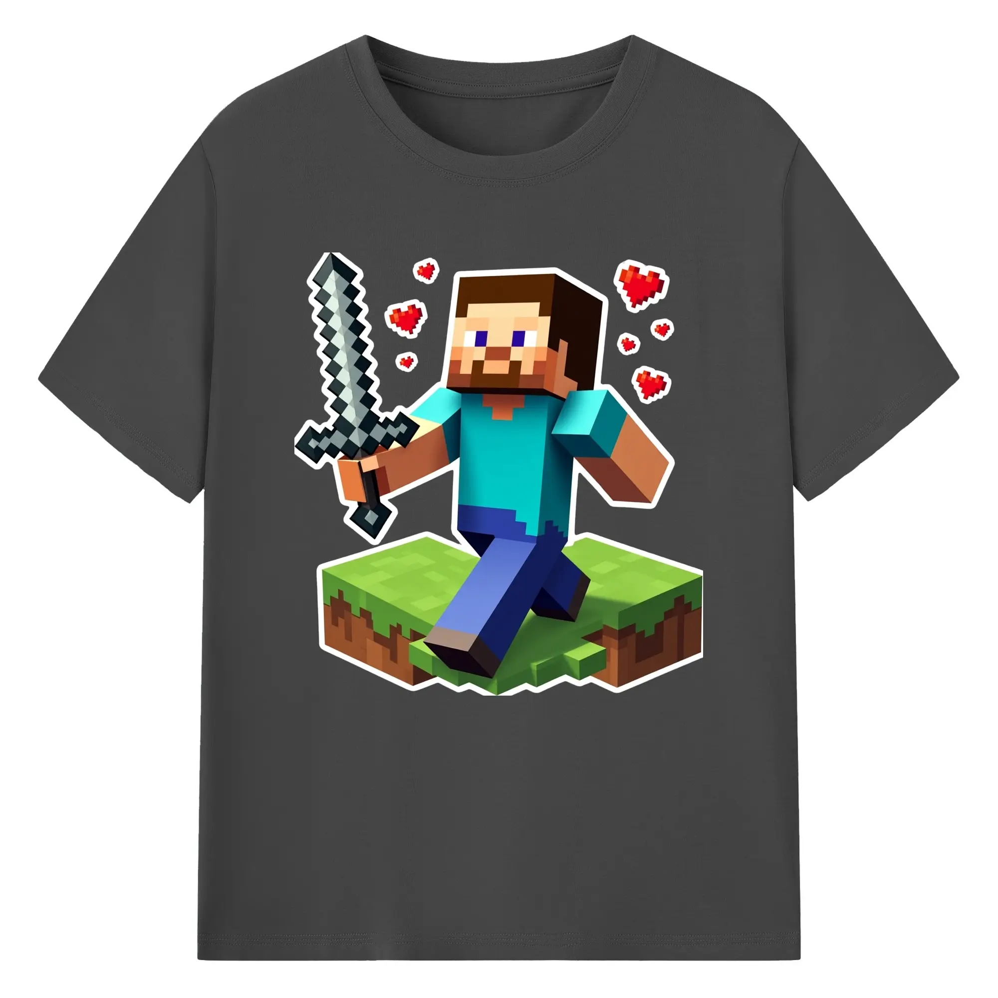 Minecraft steve art shirt - 180g Cotton T-Shirt With Front Heat Transfer Print – Soft, Lightweight, Fitted Design – Comfortable Casual Wear For Sports & Everyday Use