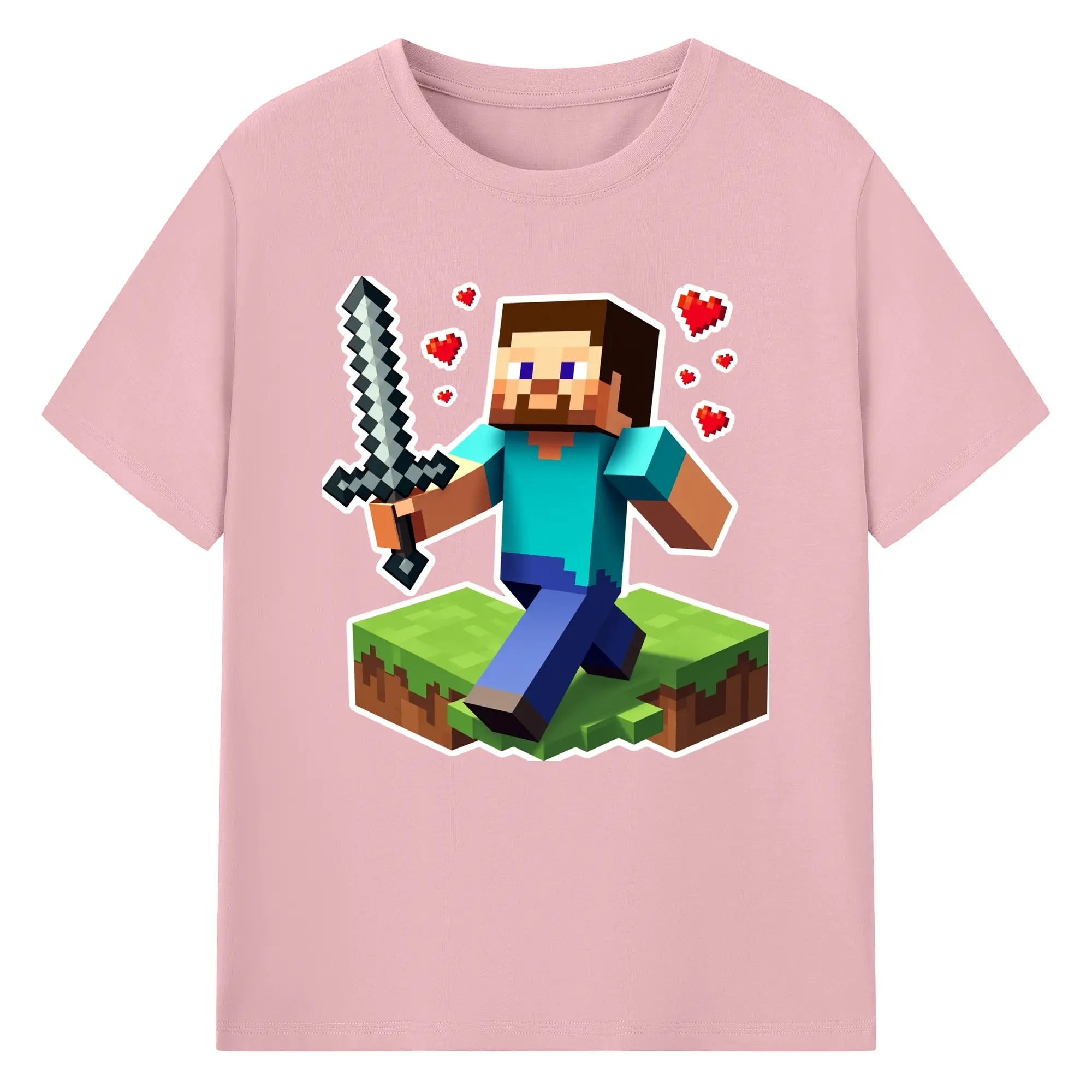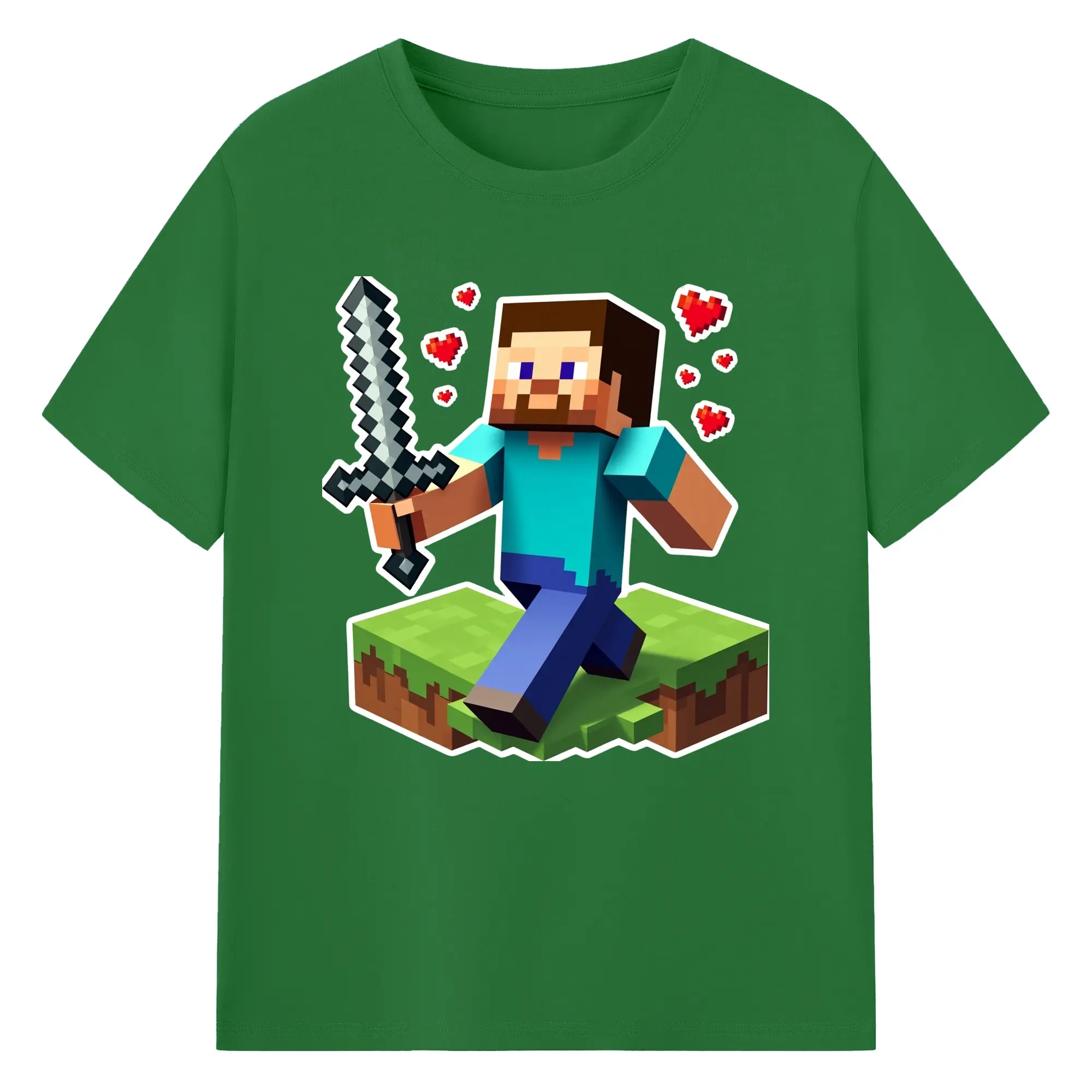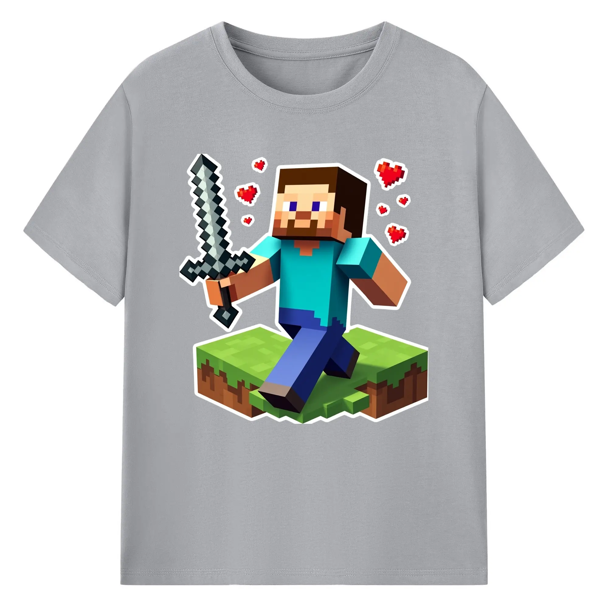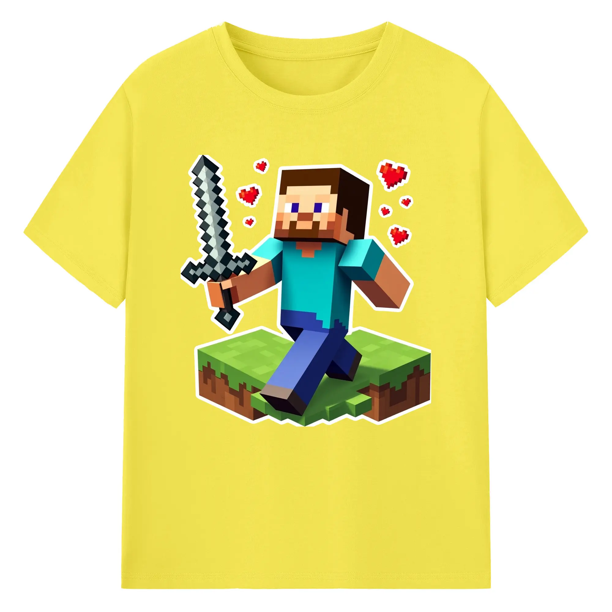 Minecraft steve art shirt - 180g Cotton T-Shirt With Front Heat Transfer Print – Soft, Lightweight, Fitted Design – Comfortable Casual Wear For Sports & Everyday Use