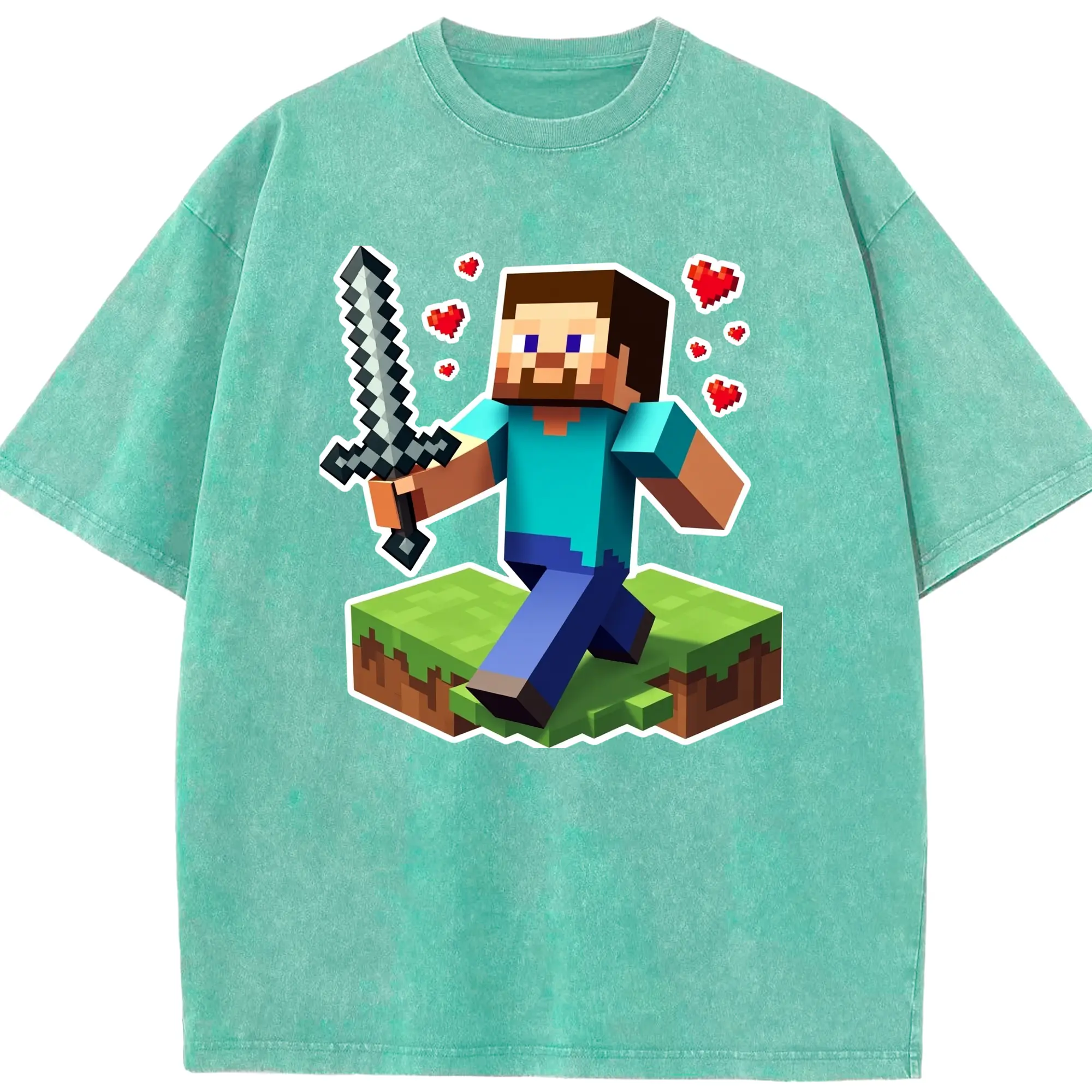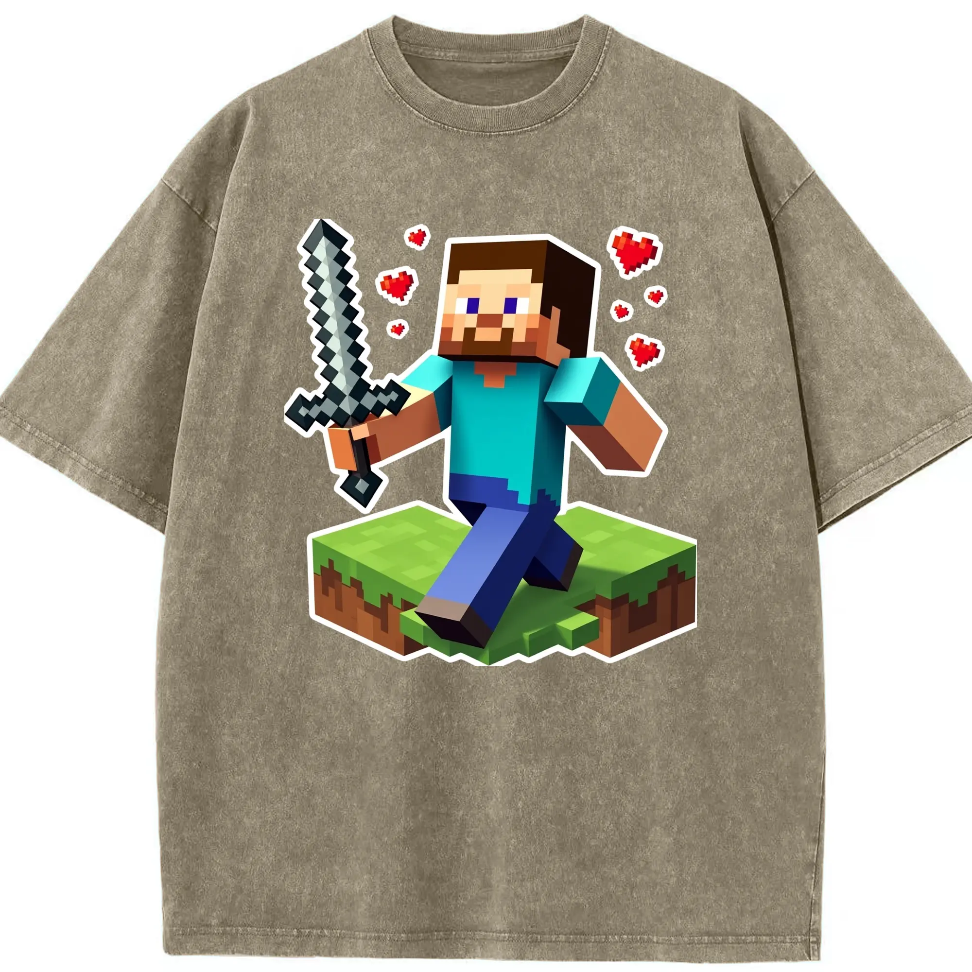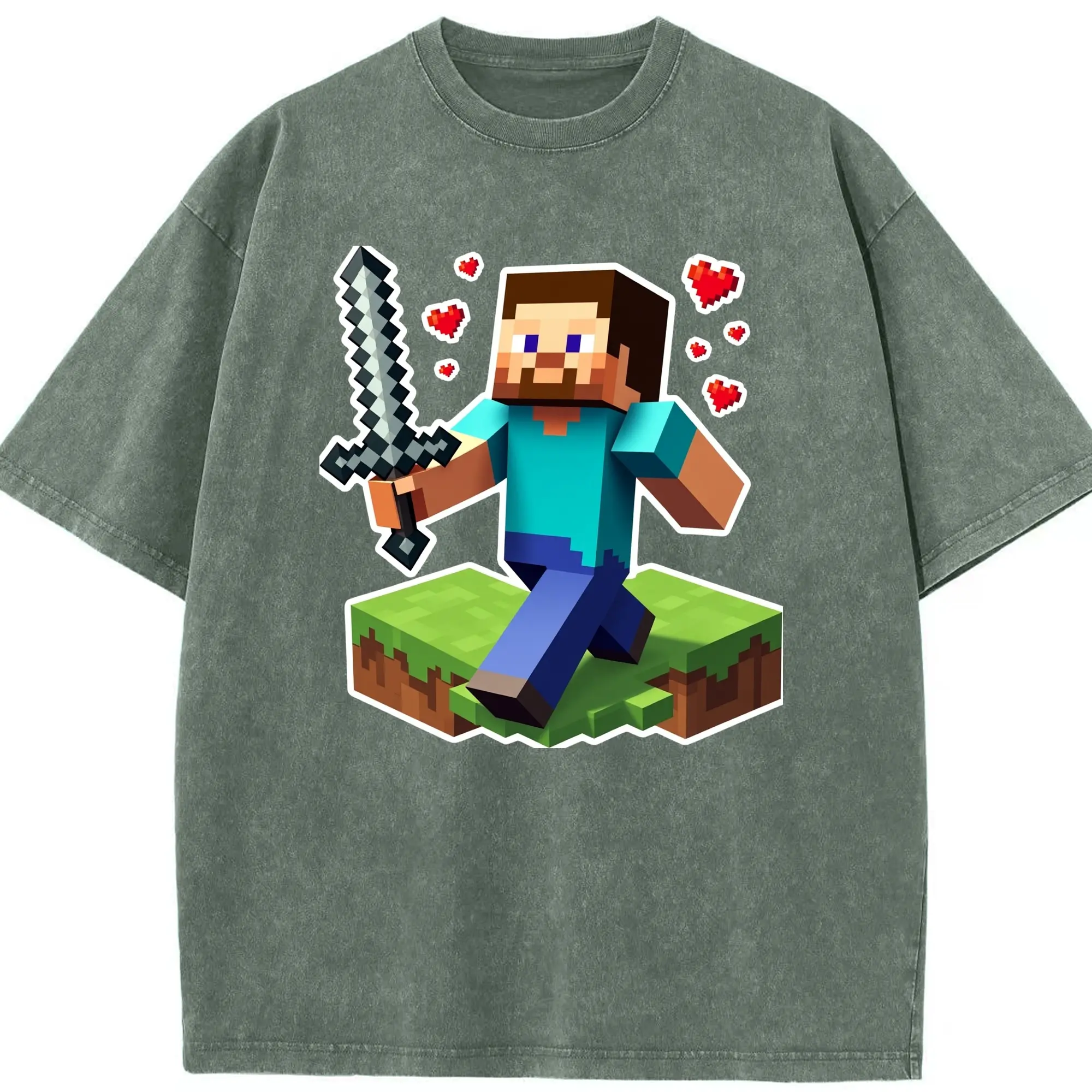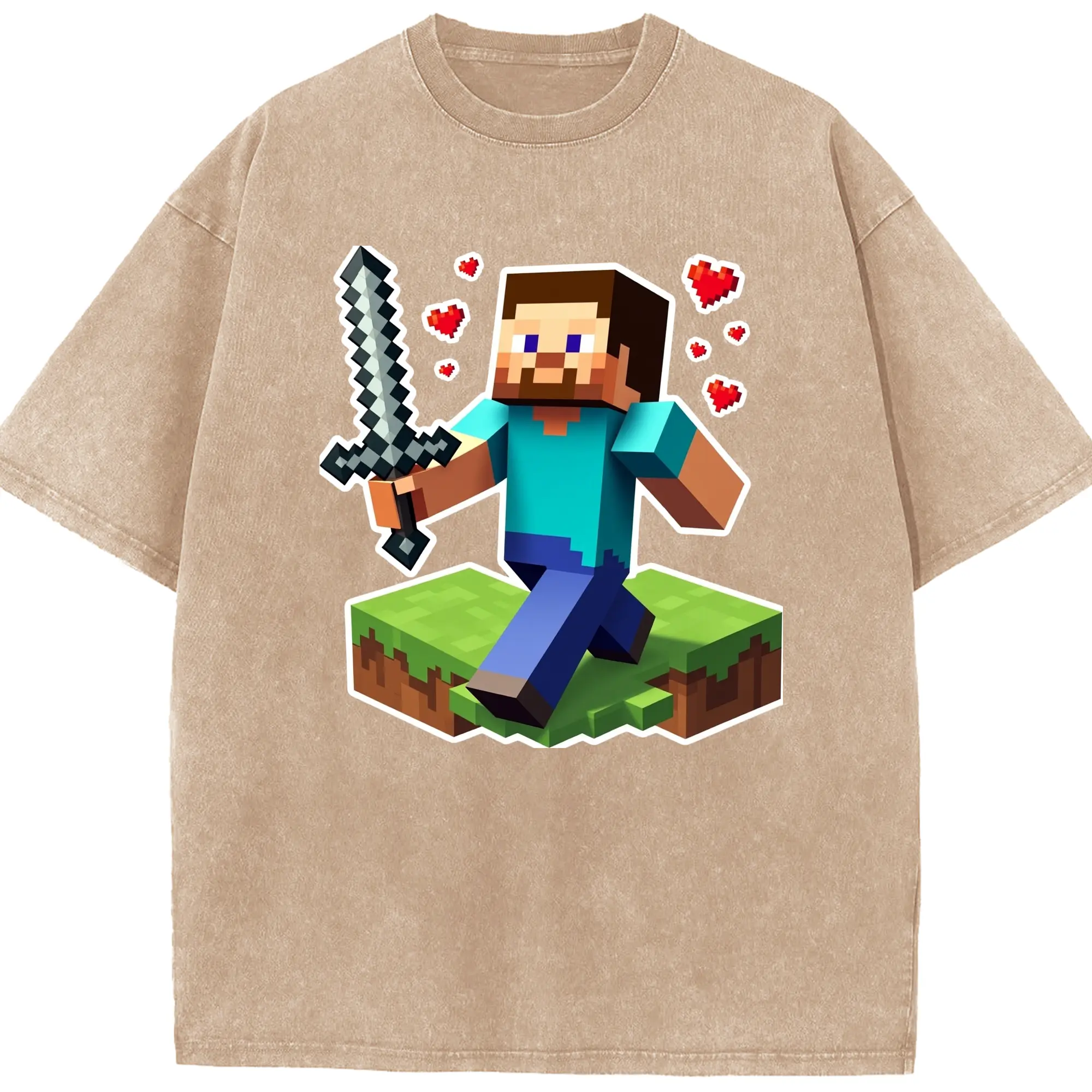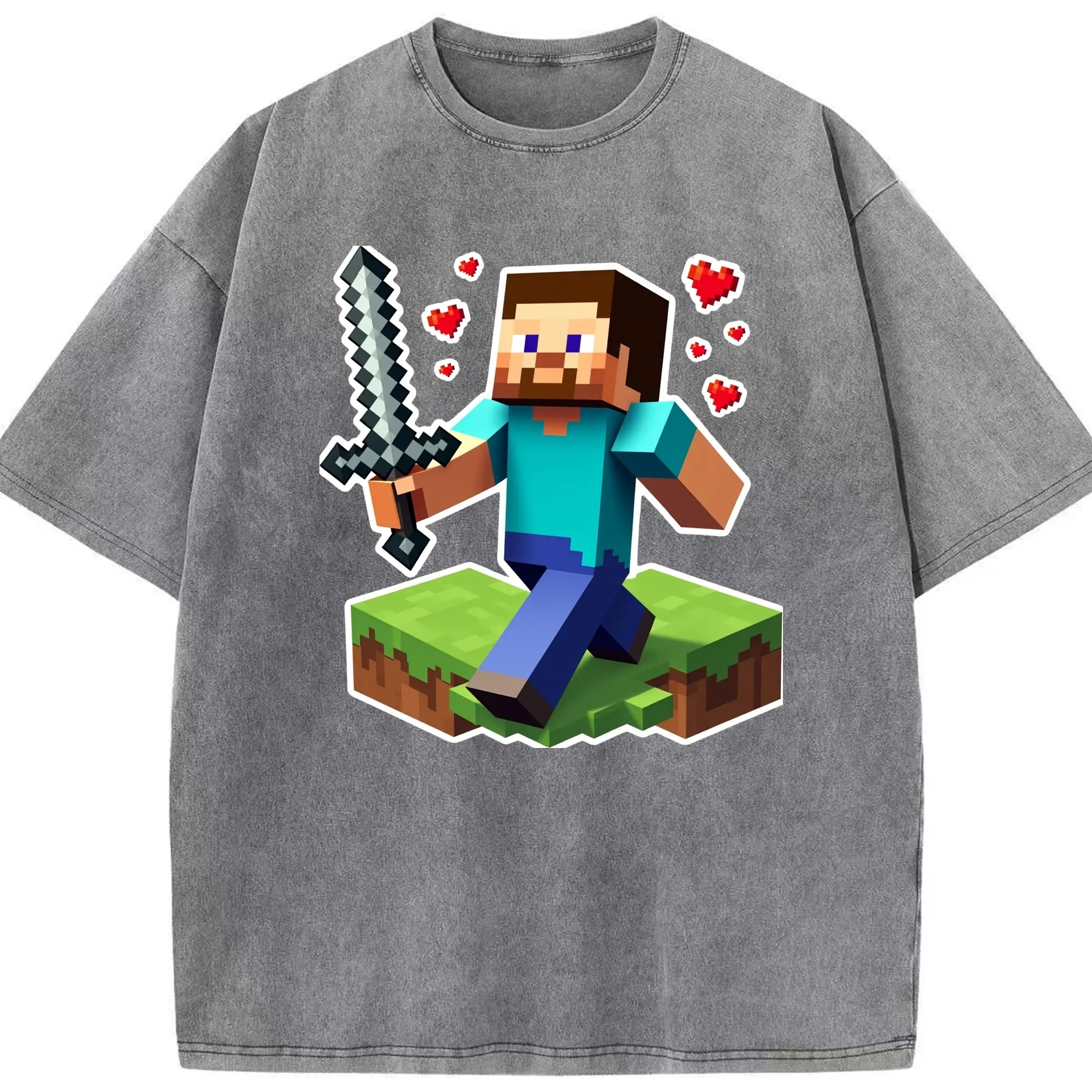 Minecraft steve art shirt - Washed Vintage Look 230g Cotton Oversized T-Shirt With Front Heat Transfer Print – Soft, Lightweight, Stylish Fit – Comfortable Casual Wear For Sports & Everyday Use