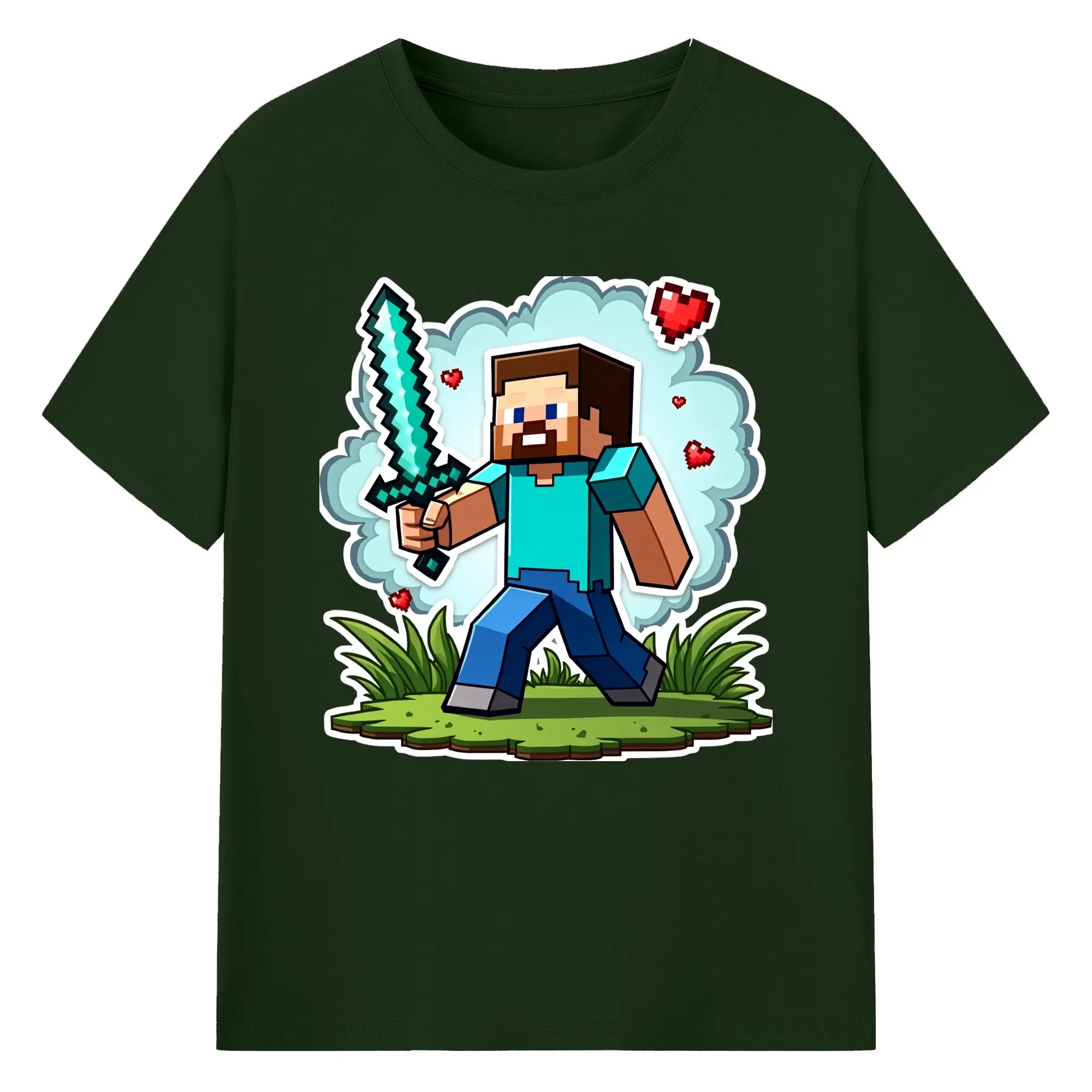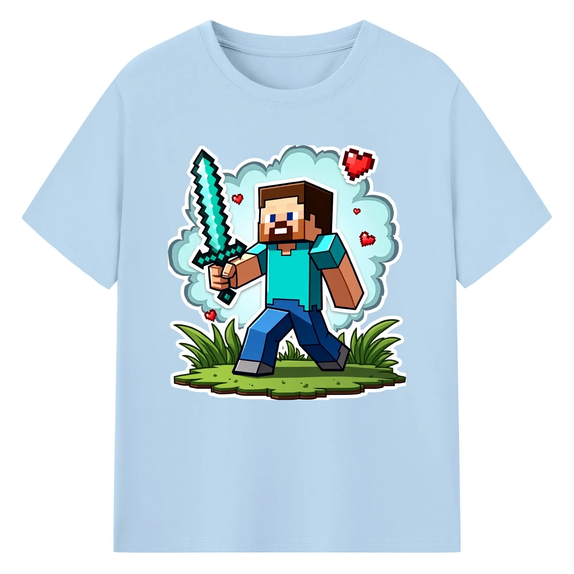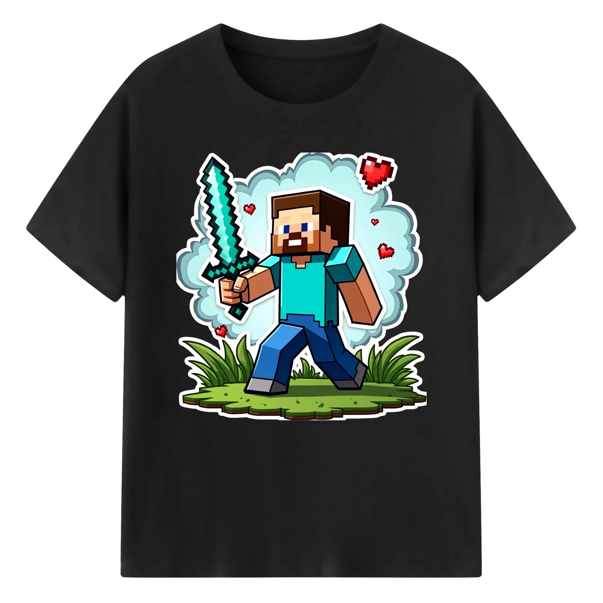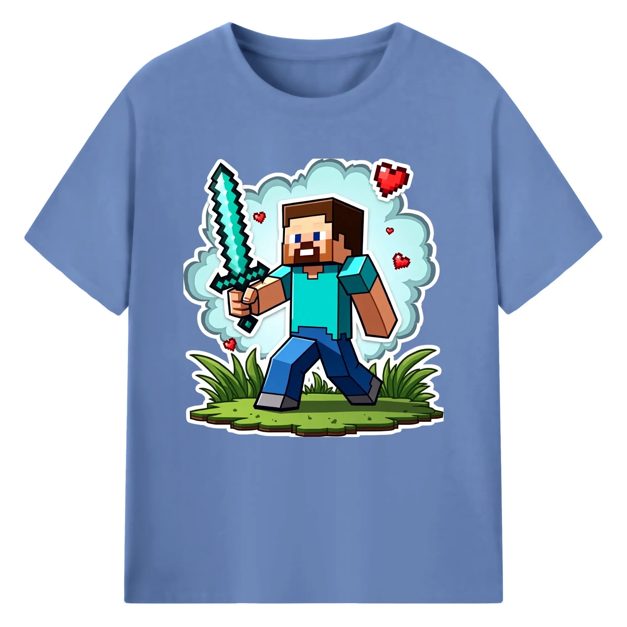 Minecraft steve art t-shirt - 180g Cotton T-Shirt With Front Heat Transfer Print – Soft, Lightweight, Fitted Design – Comfortable Casual Wear For Sports & Everyday Use