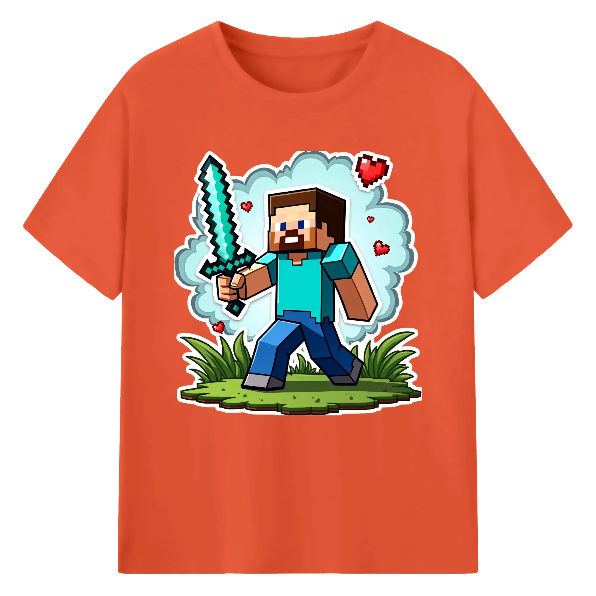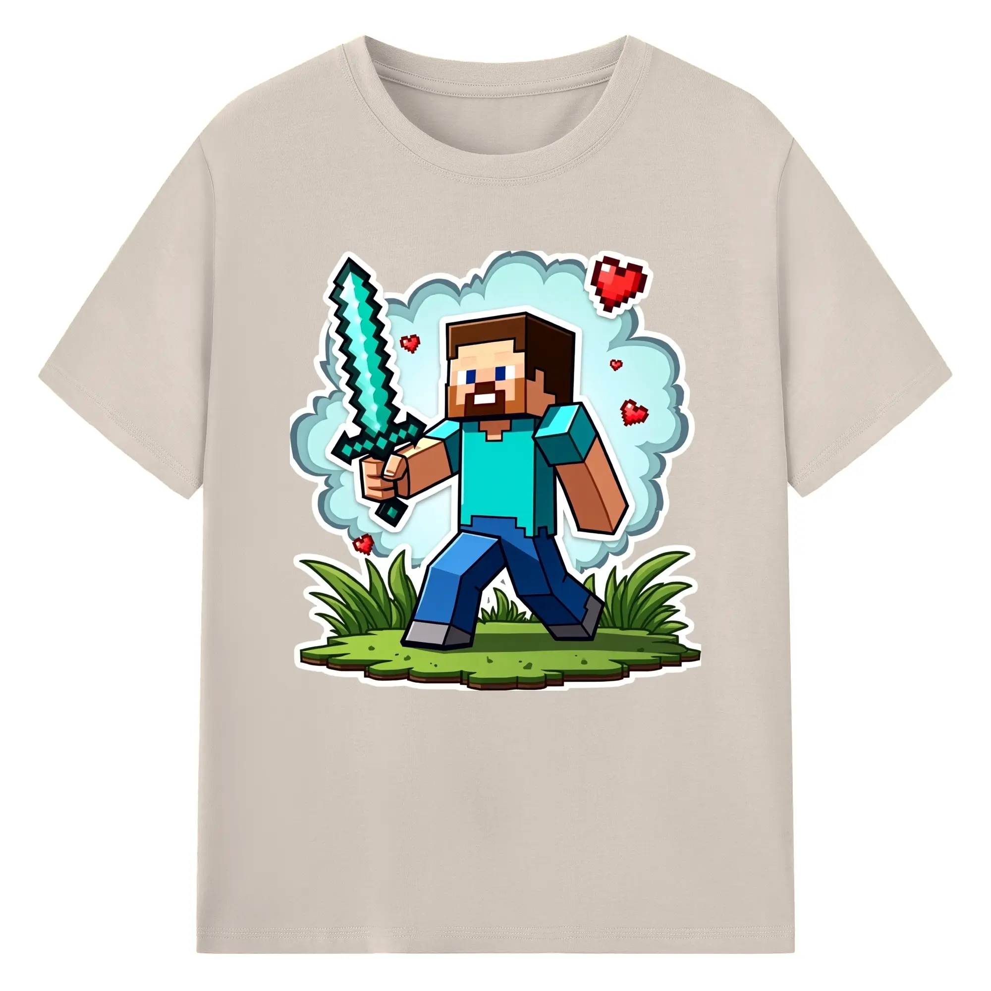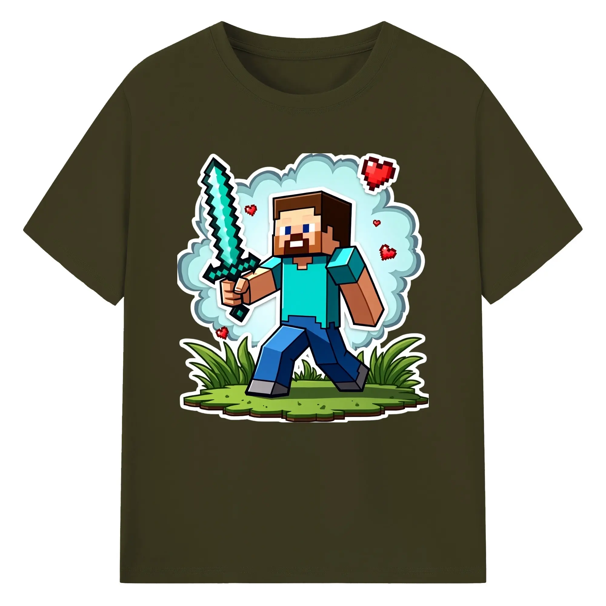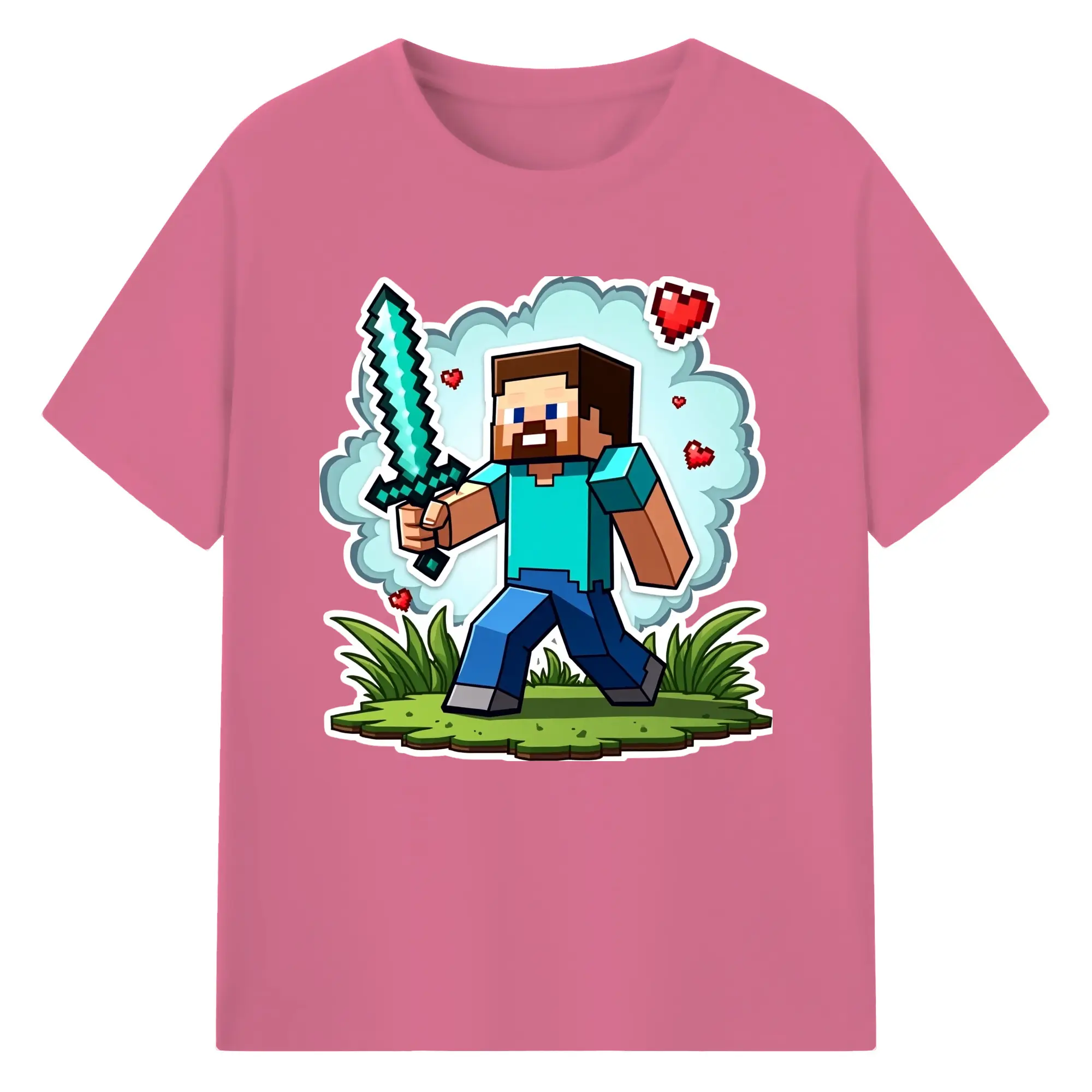 Minecraft steve art t-shirt - 180g Cotton T-Shirt With Front Heat Transfer Print – Soft, Lightweight, Fitted Design – Comfortable Casual Wear For Sports & Everyday Use