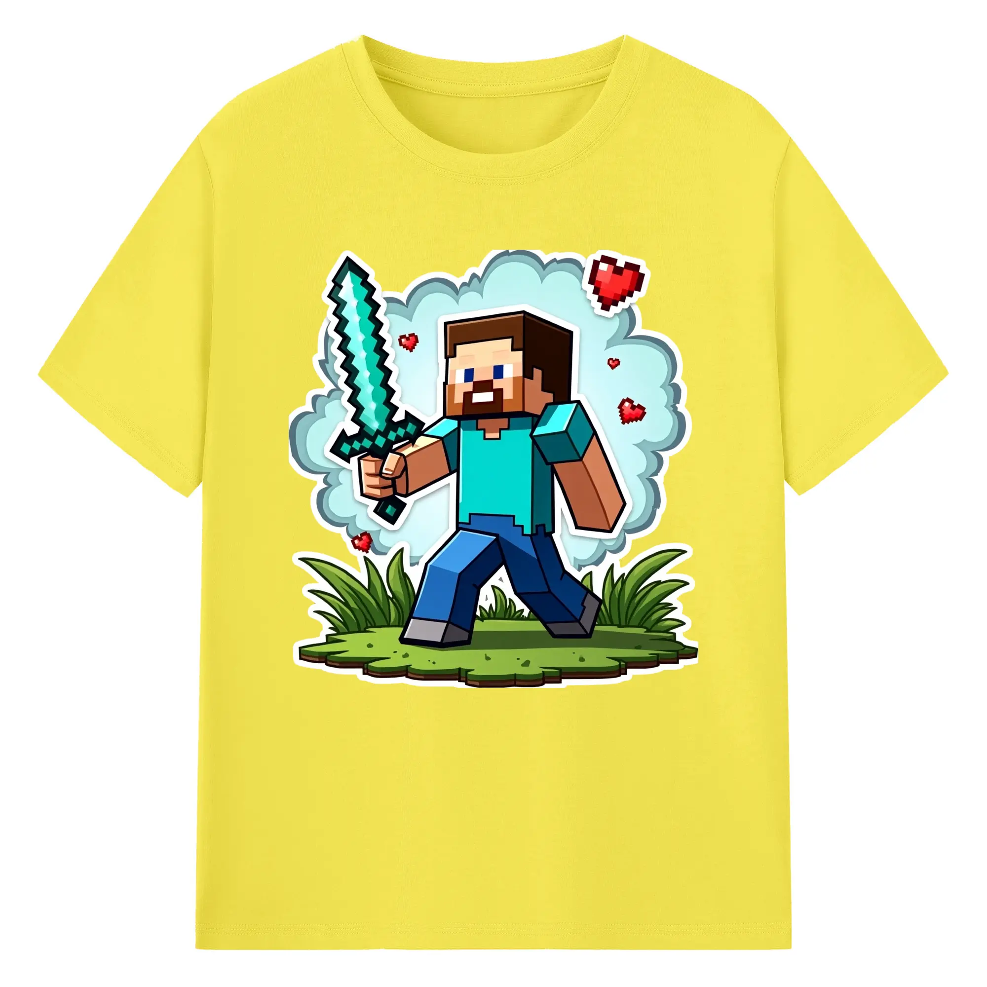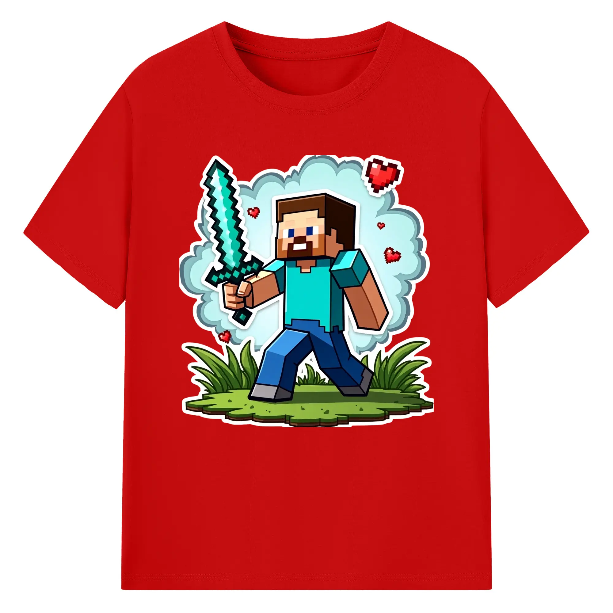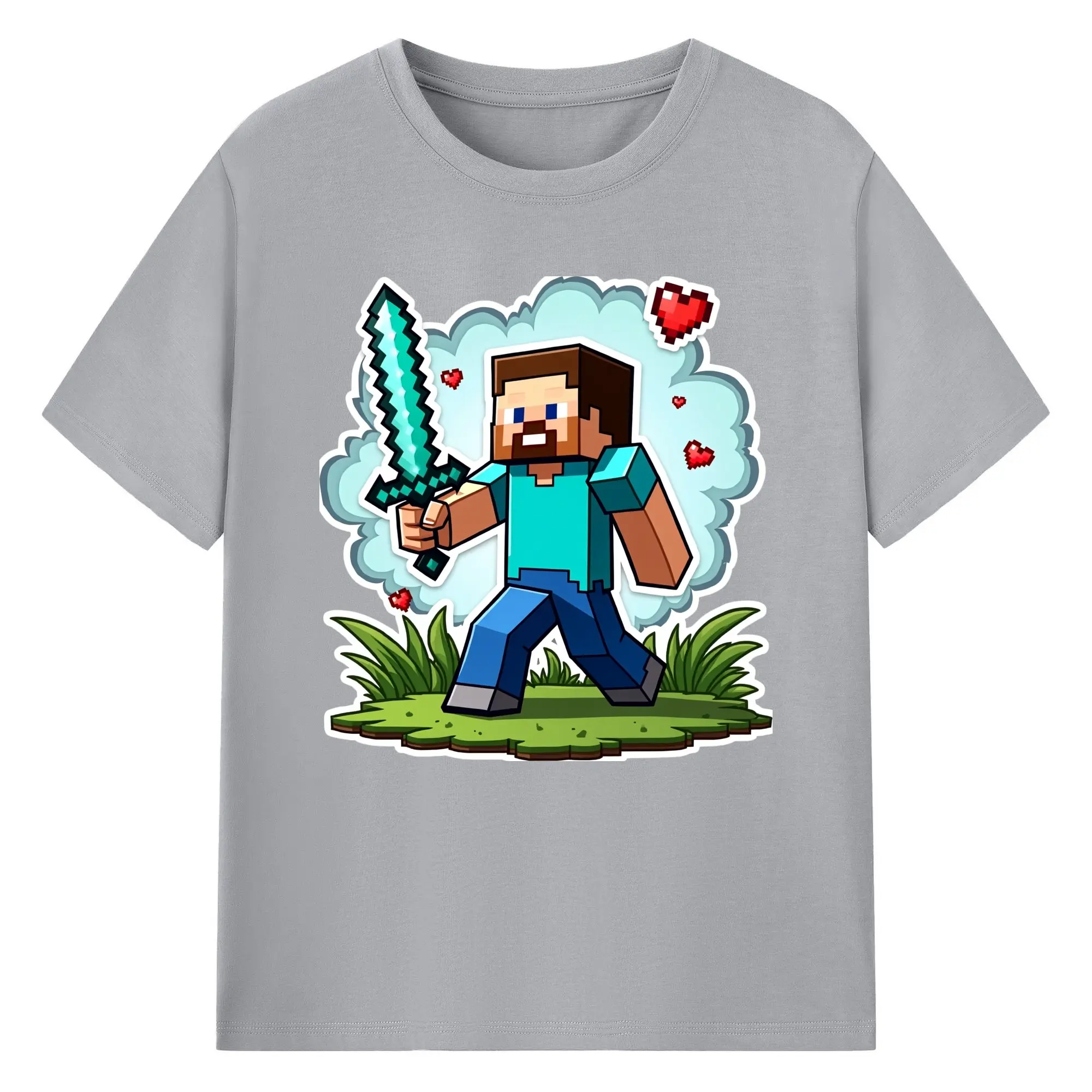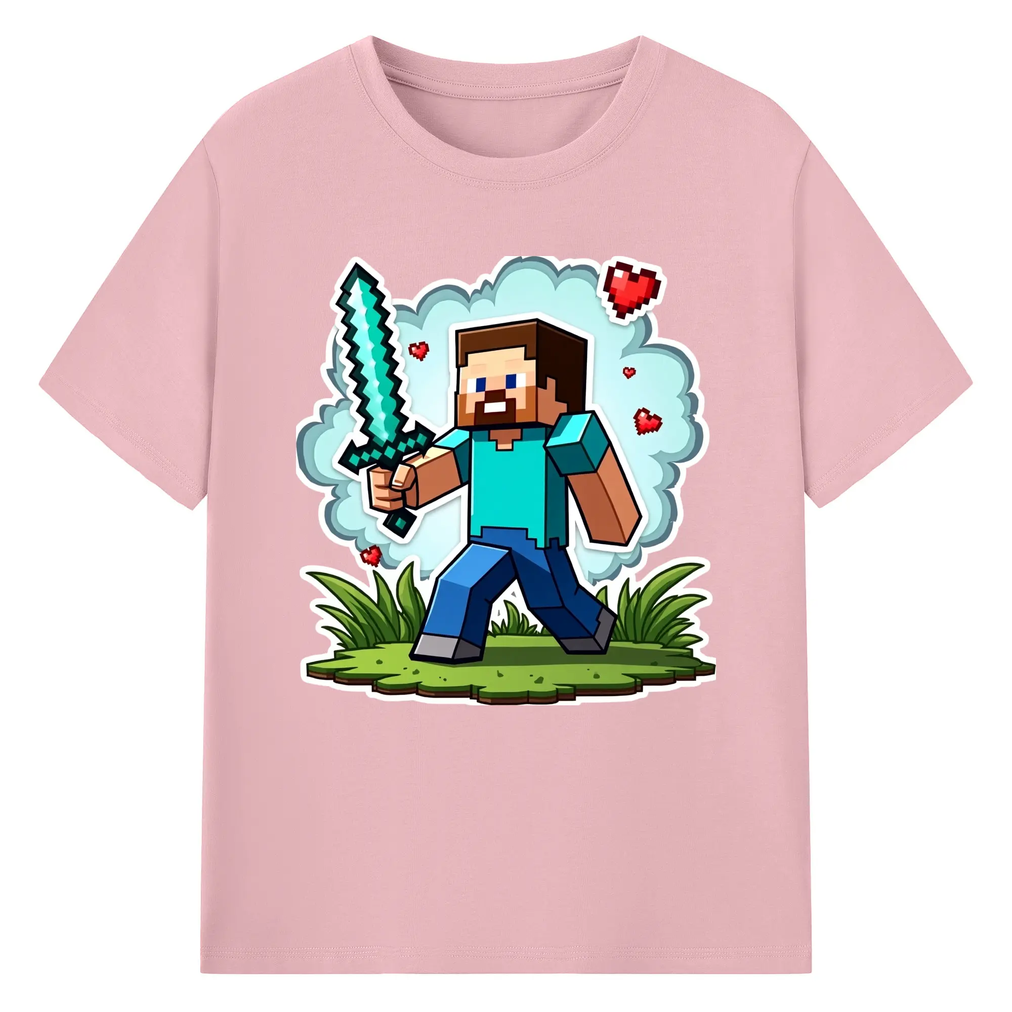 Minecraft steve art t-shirt - 180g Cotton T-Shirt With Front Heat Transfer Print – Soft, Lightweight, Fitted Design – Comfortable Casual Wear For Sports & Everyday Use