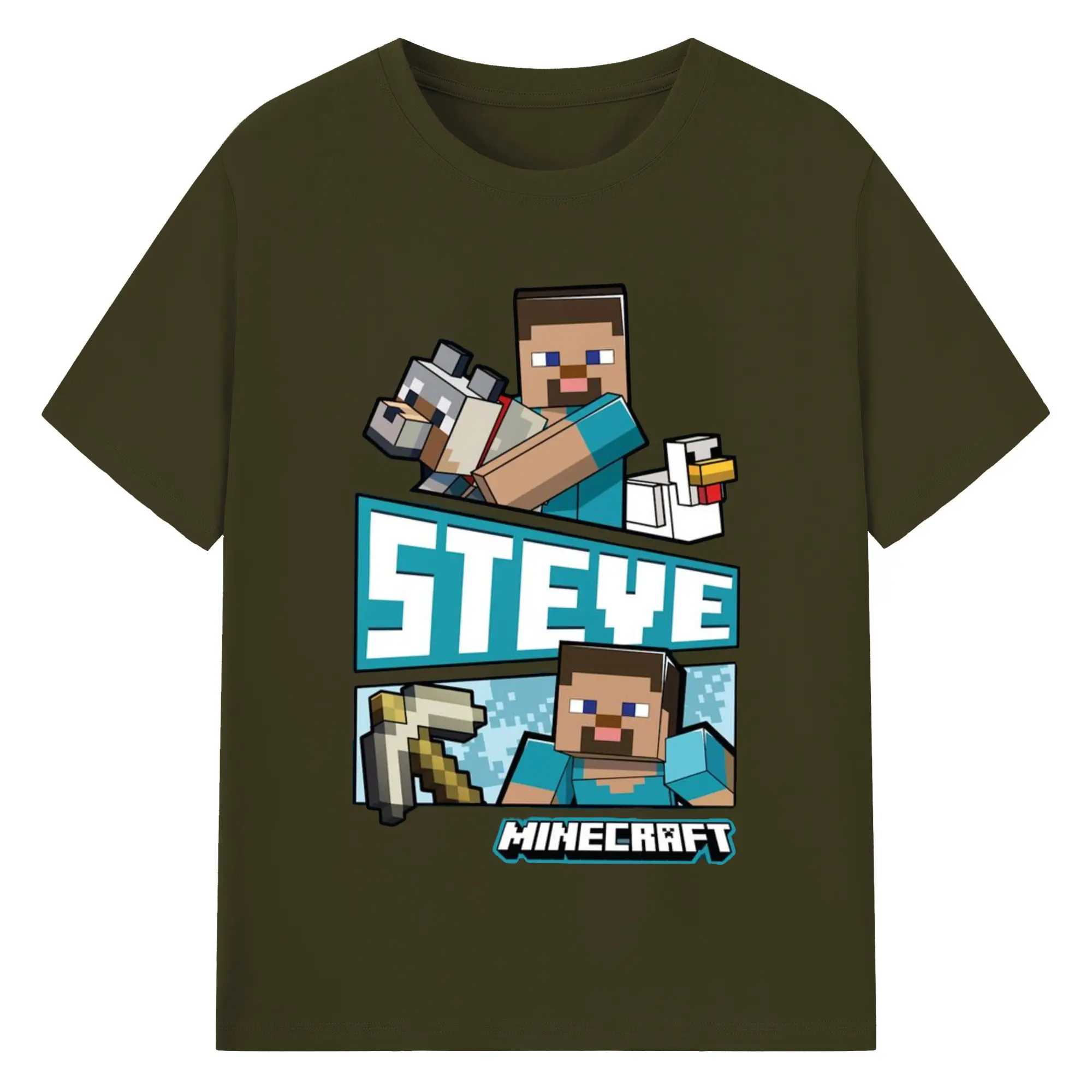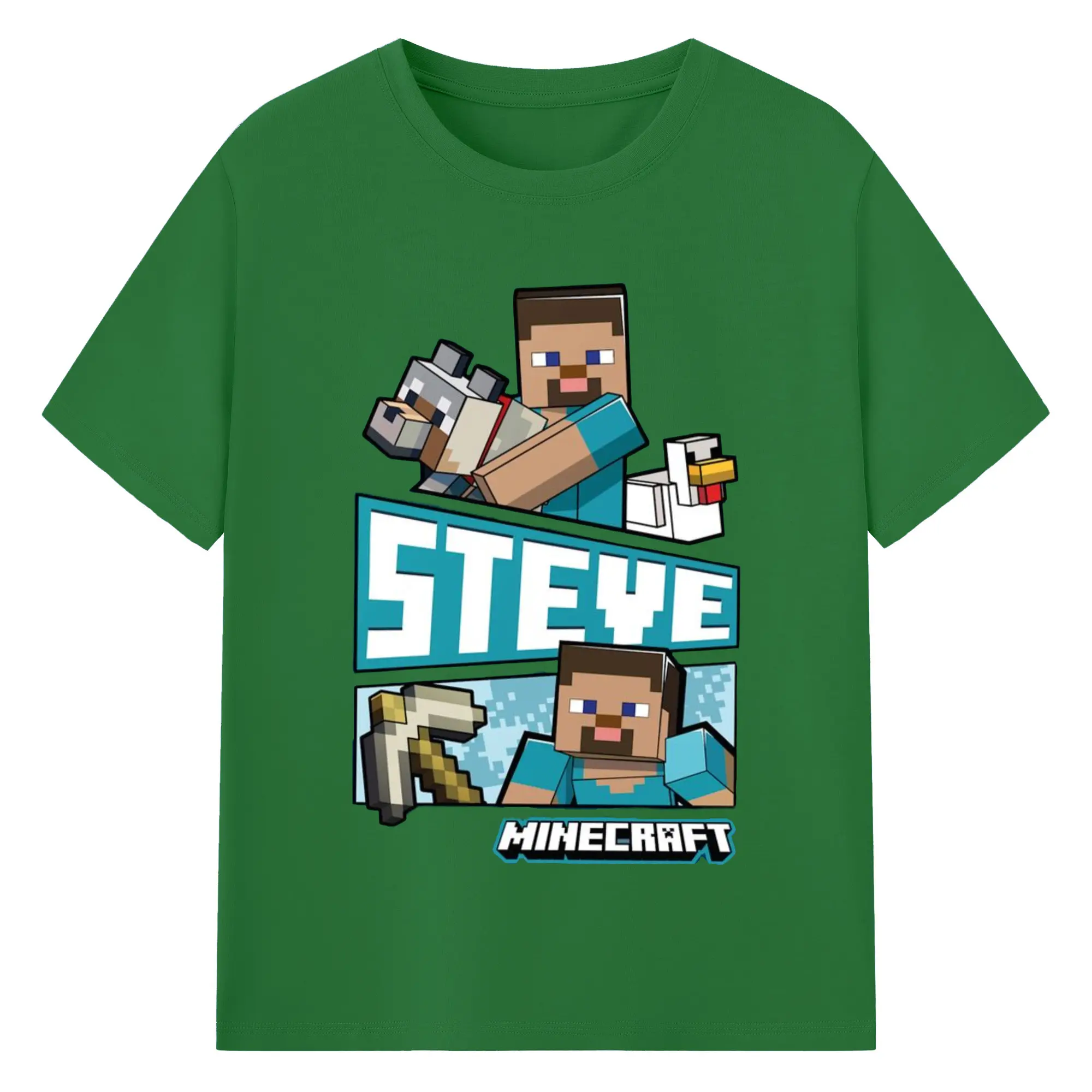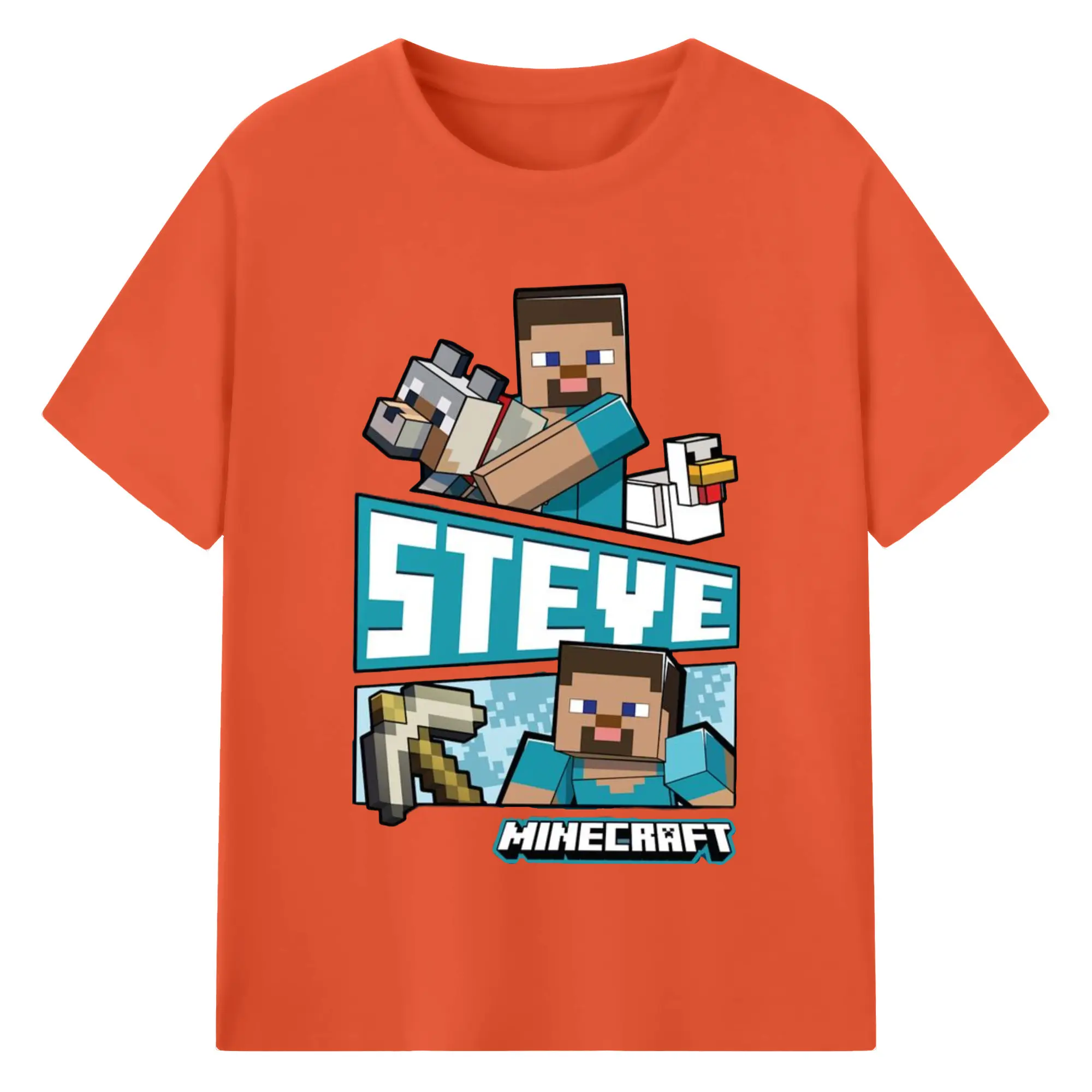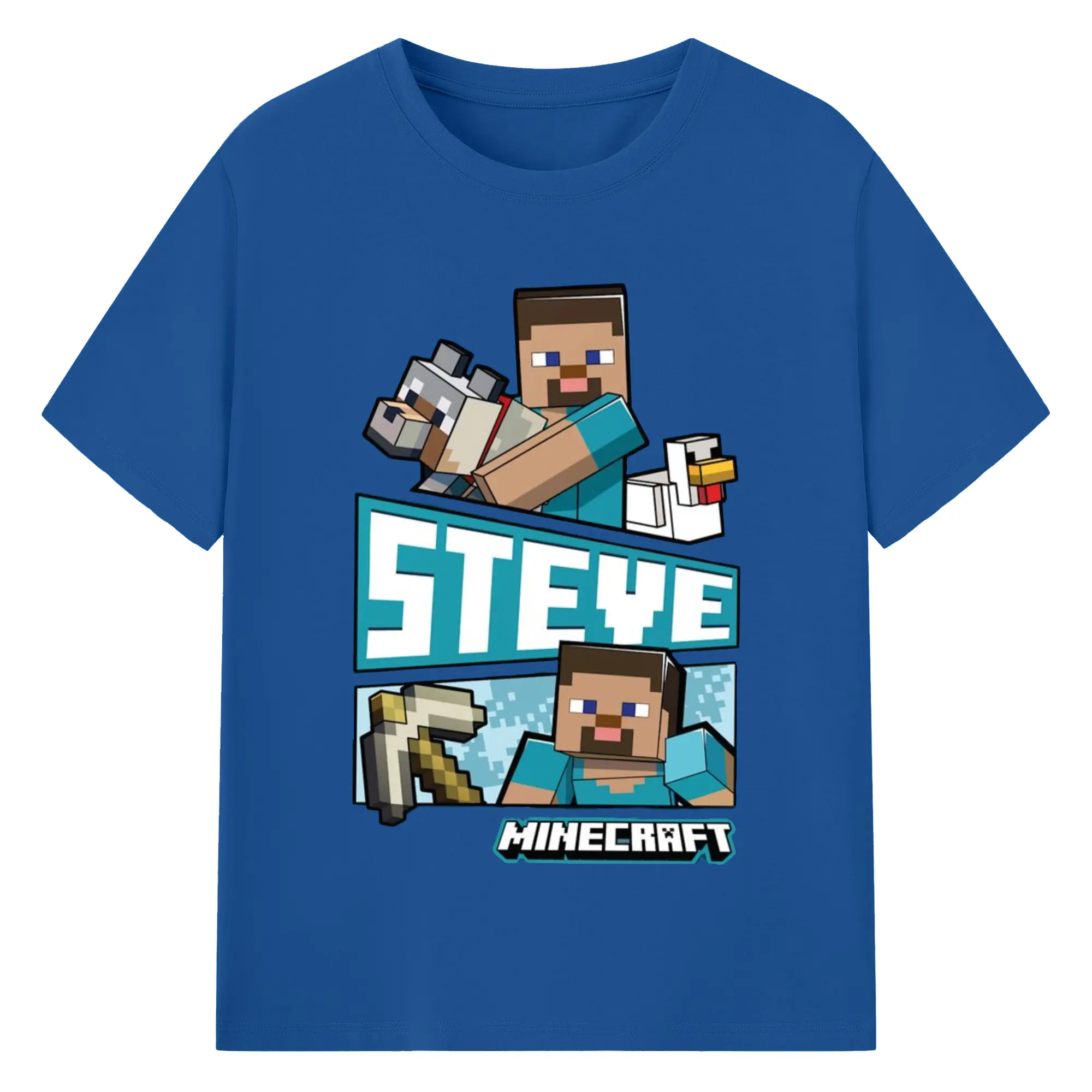 Minecraft steve collage shirt - 180g Cotton T-Shirt With Front Heat Transfer Print – Soft, Lightweight, Fitted Design – Comfortable Casual Wear For Sports & Everyday Use