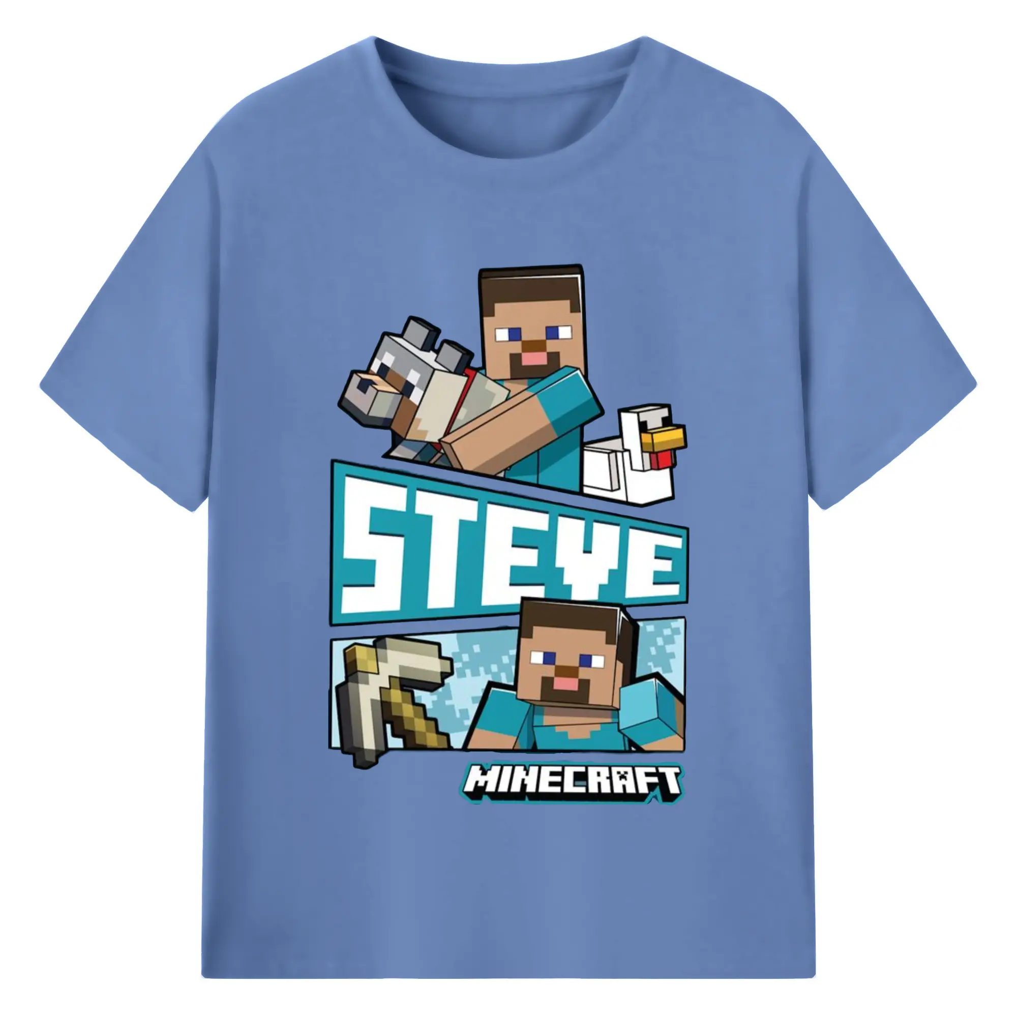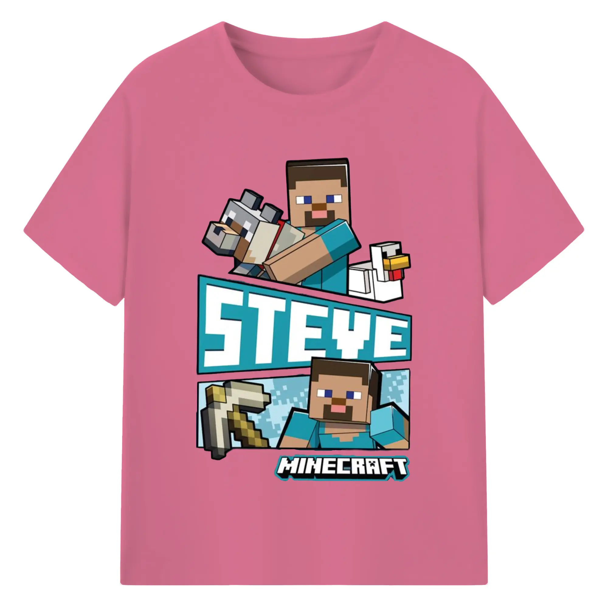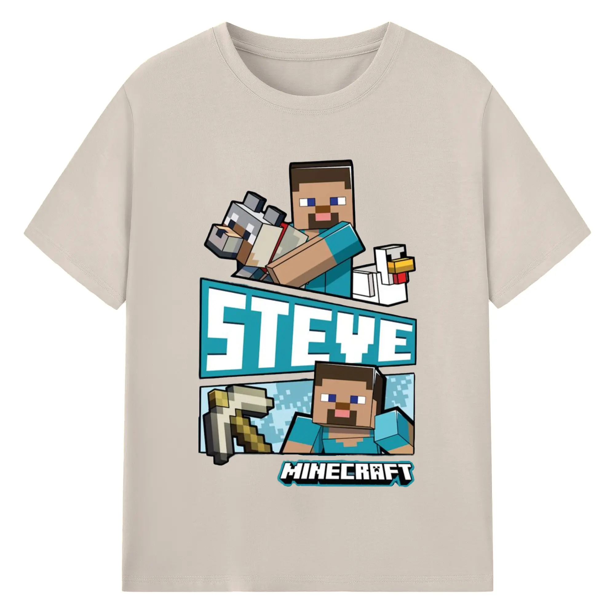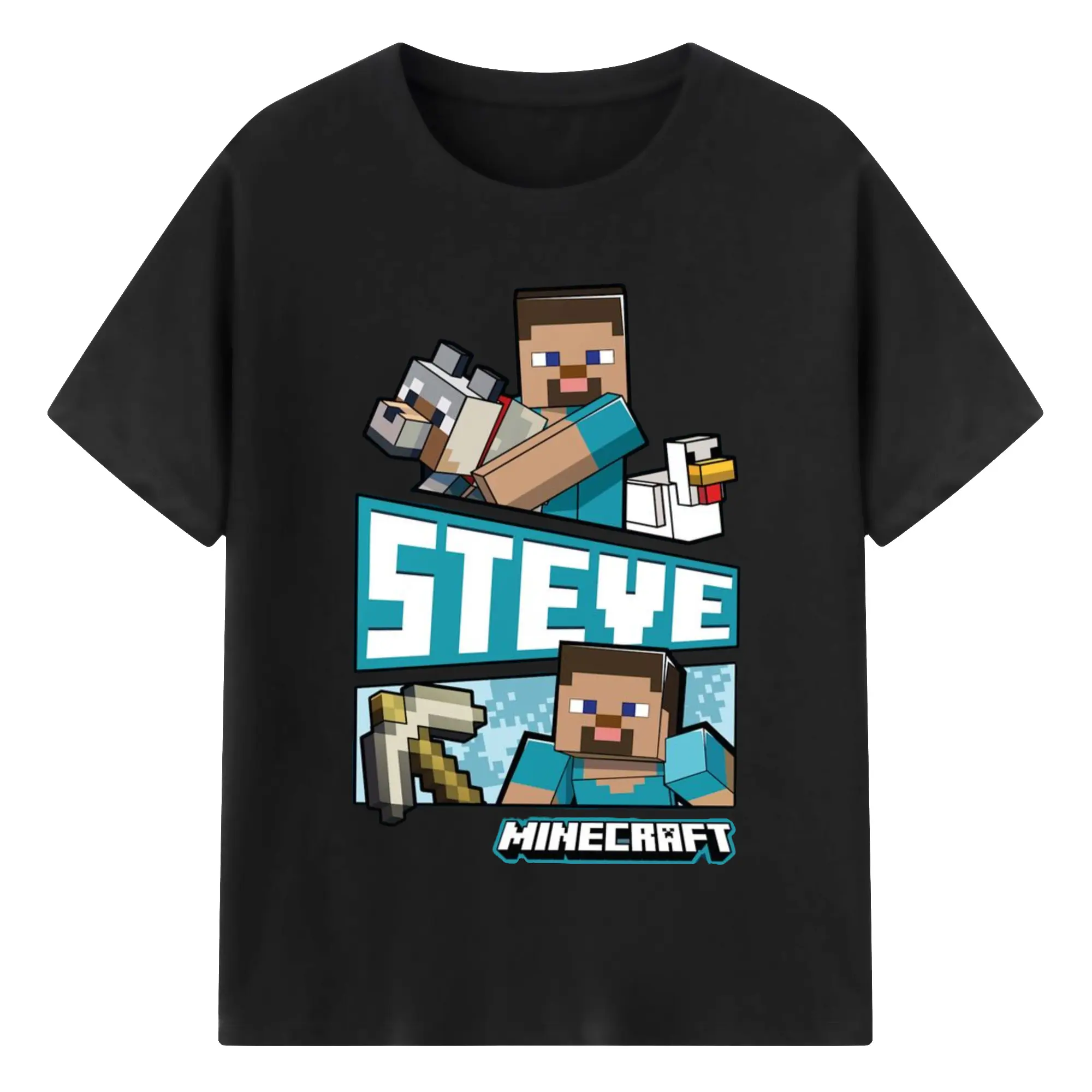 Minecraft steve collage shirt - 180g Cotton T-Shirt With Front Heat Transfer Print – Soft, Lightweight, Fitted Design – Comfortable Casual Wear For Sports & Everyday Use