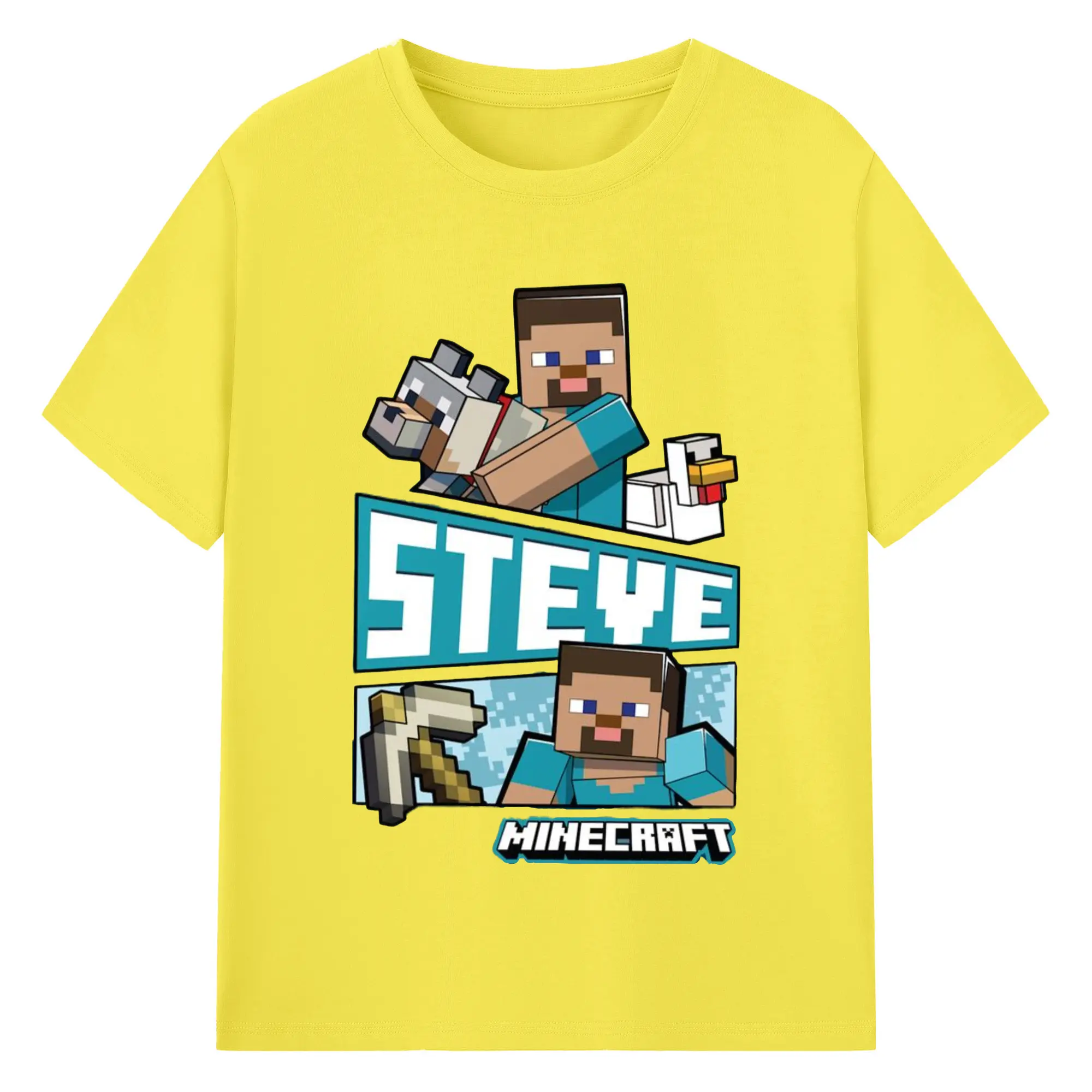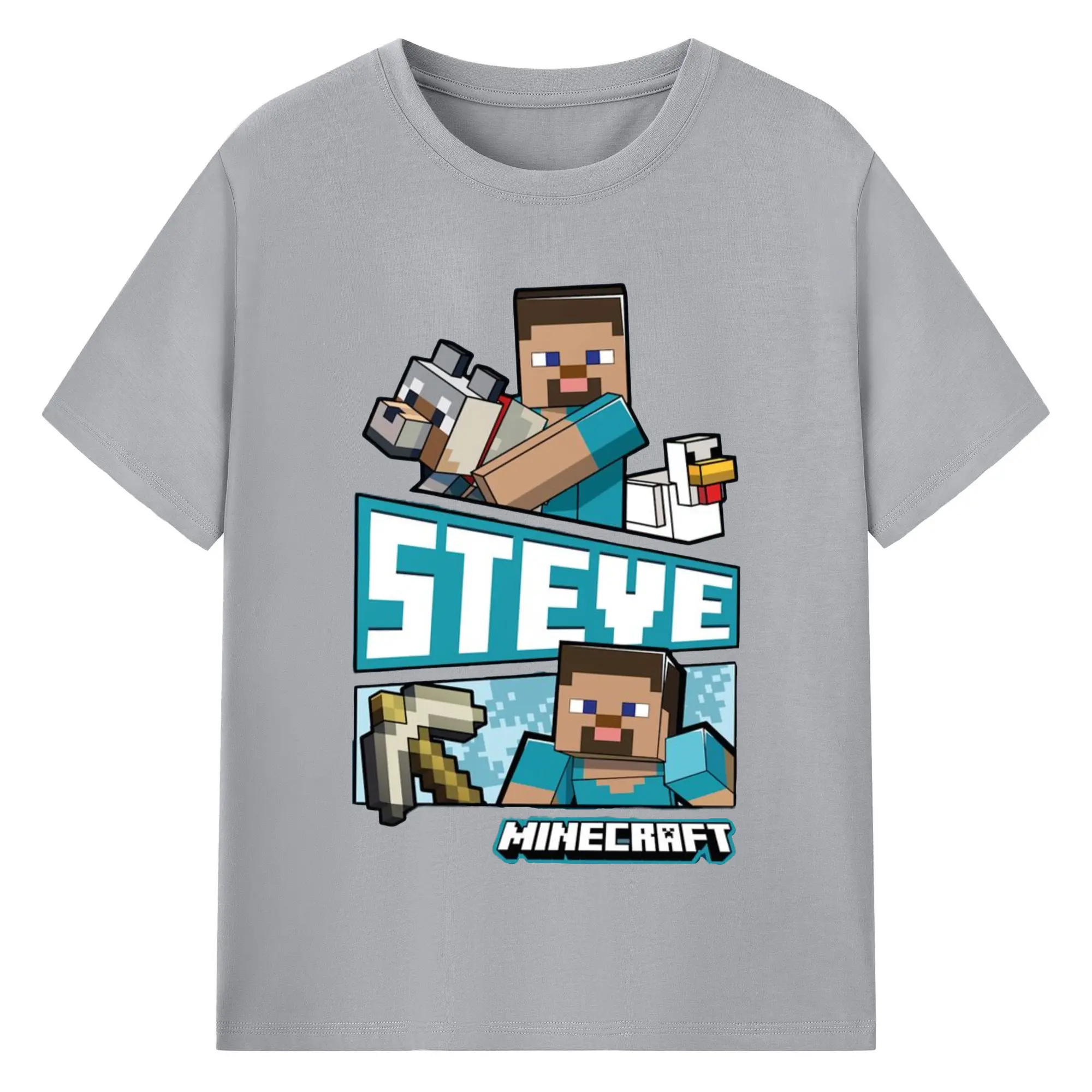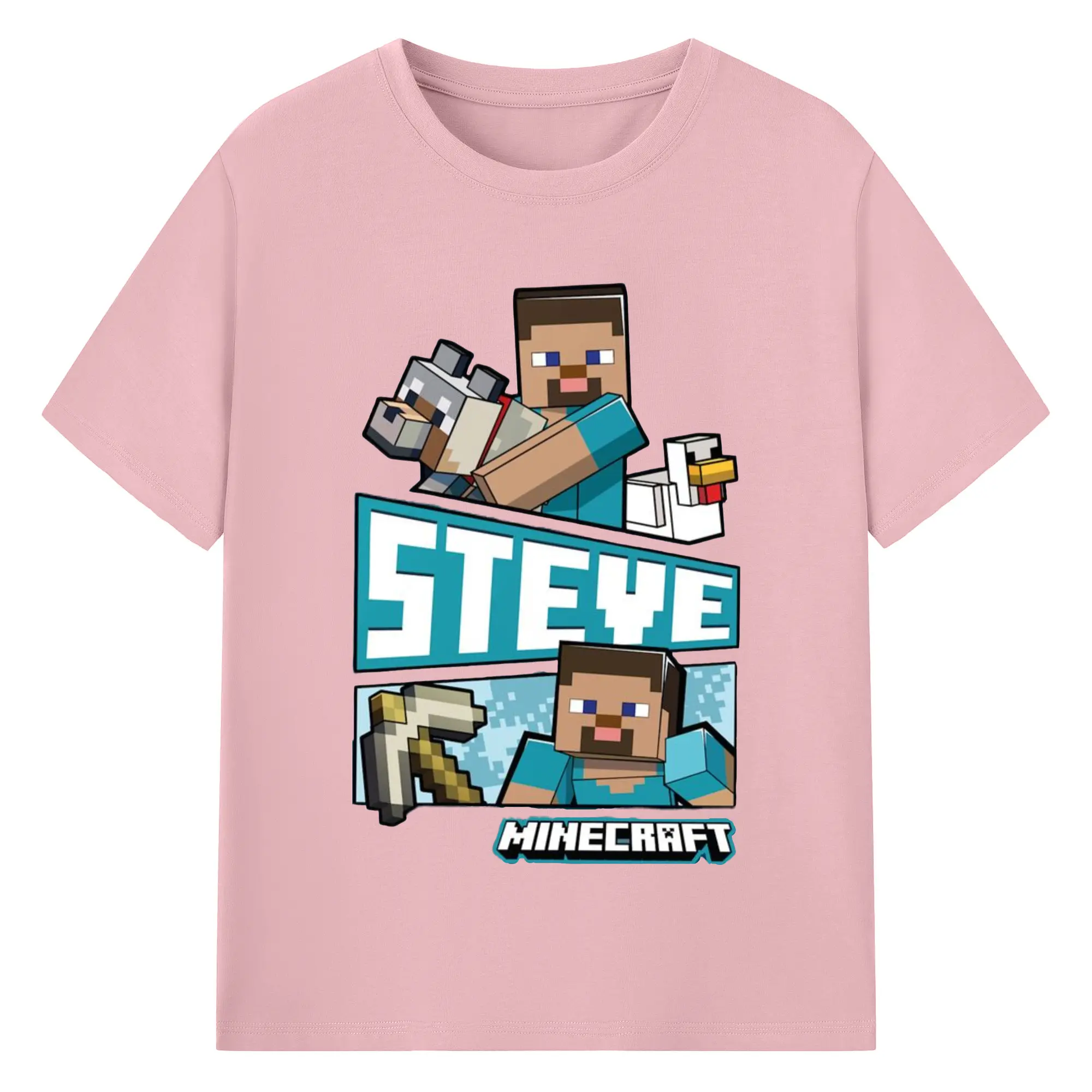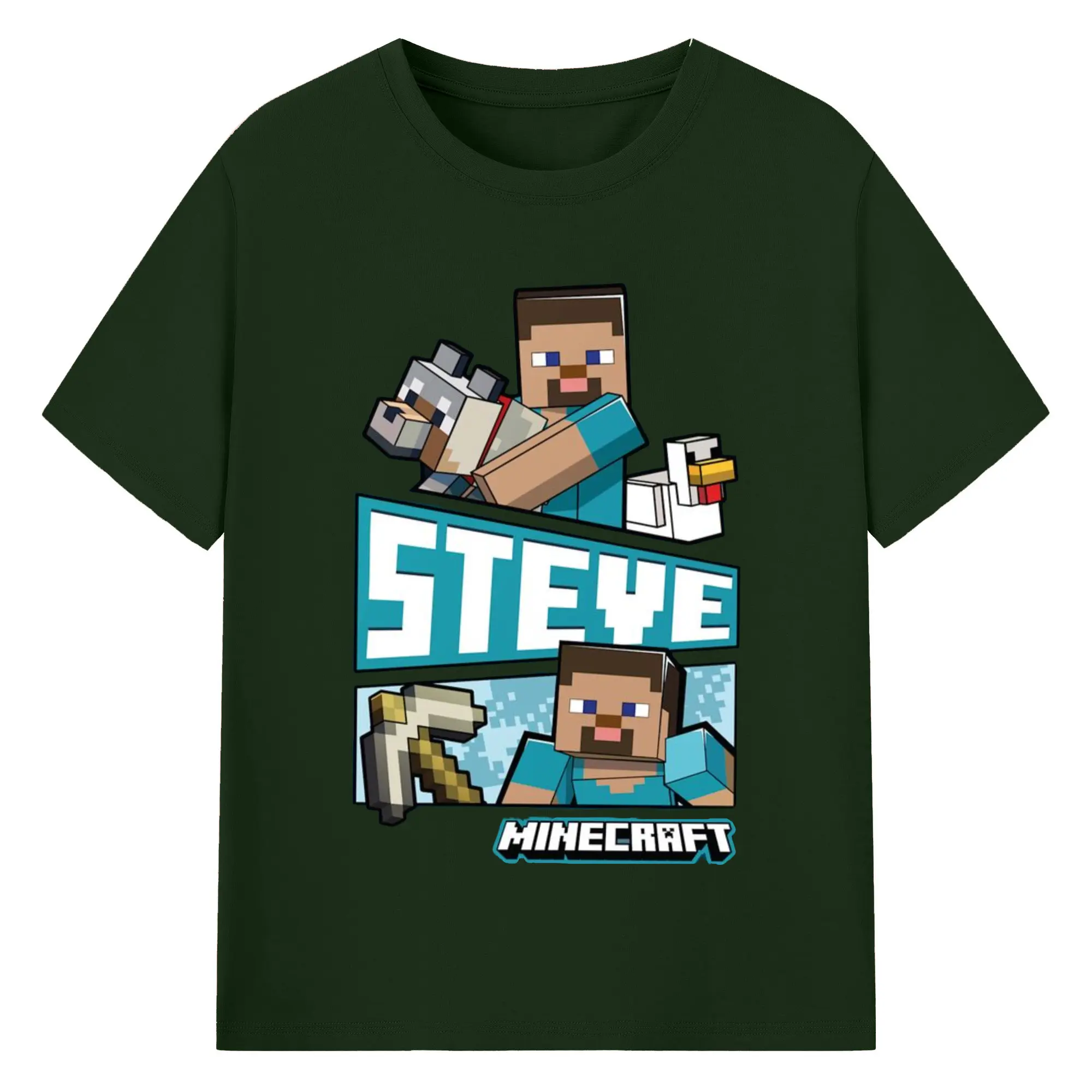 Minecraft steve collage shirt - 180g Cotton T-Shirt With Front Heat Transfer Print – Soft, Lightweight, Fitted Design – Comfortable Casual Wear For Sports & Everyday Use