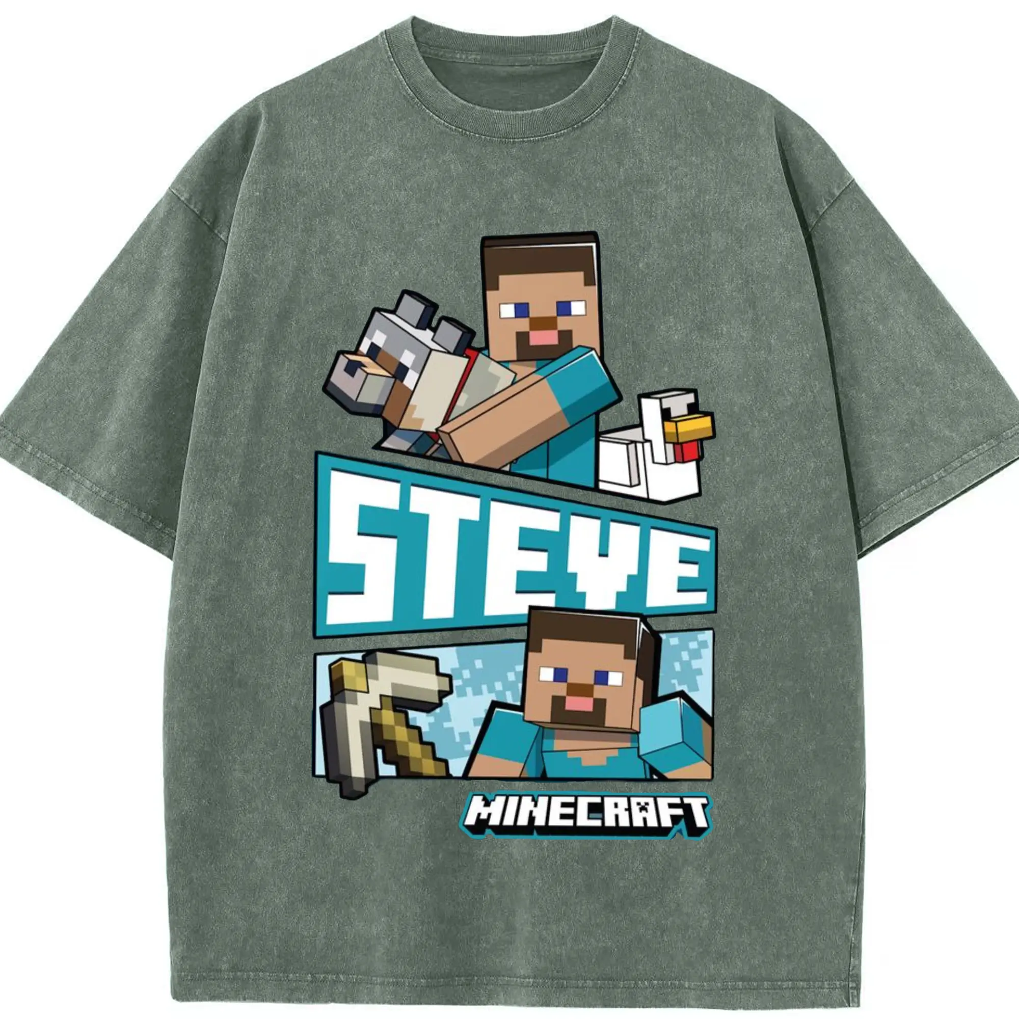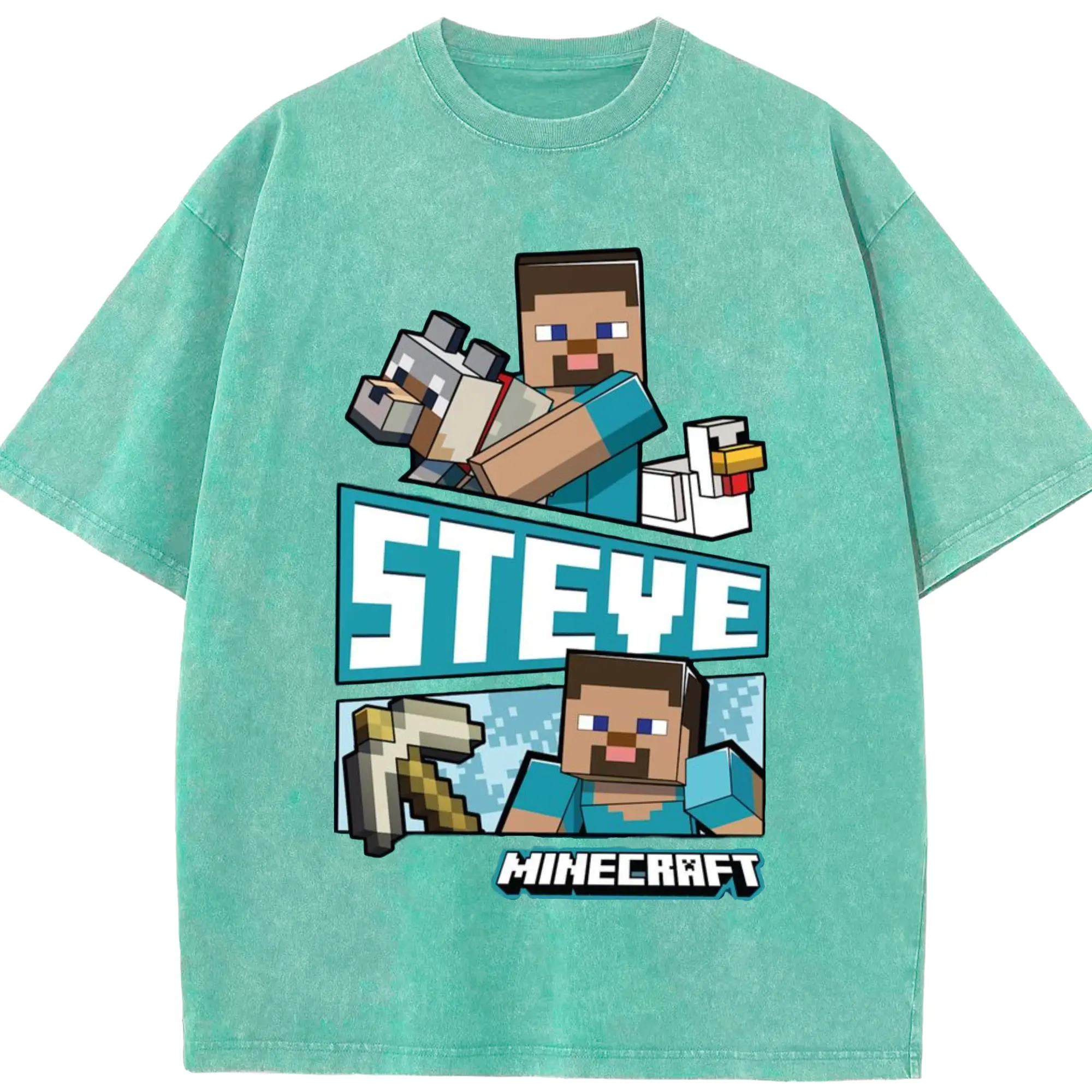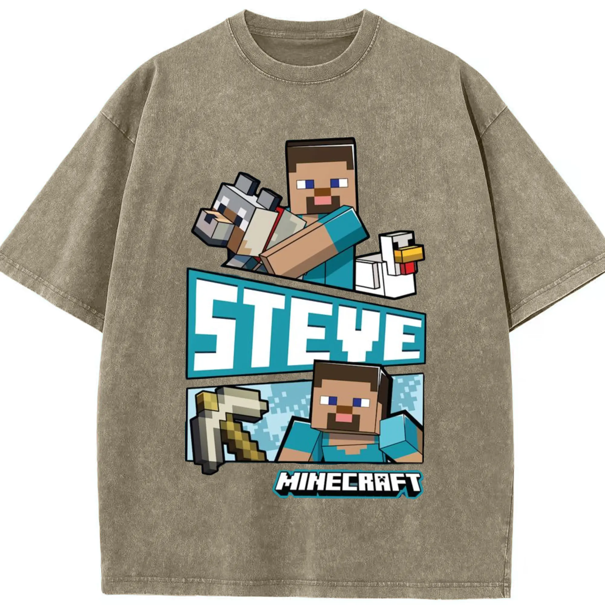 Minecraft steve collage shirt - Washed Vintage Look 230g Cotton Oversized T-Shirt With Front Heat Transfer Print – Soft, Lightweight, Stylish Fit – Comfortable Casual Wear For Sports & Everyday Use