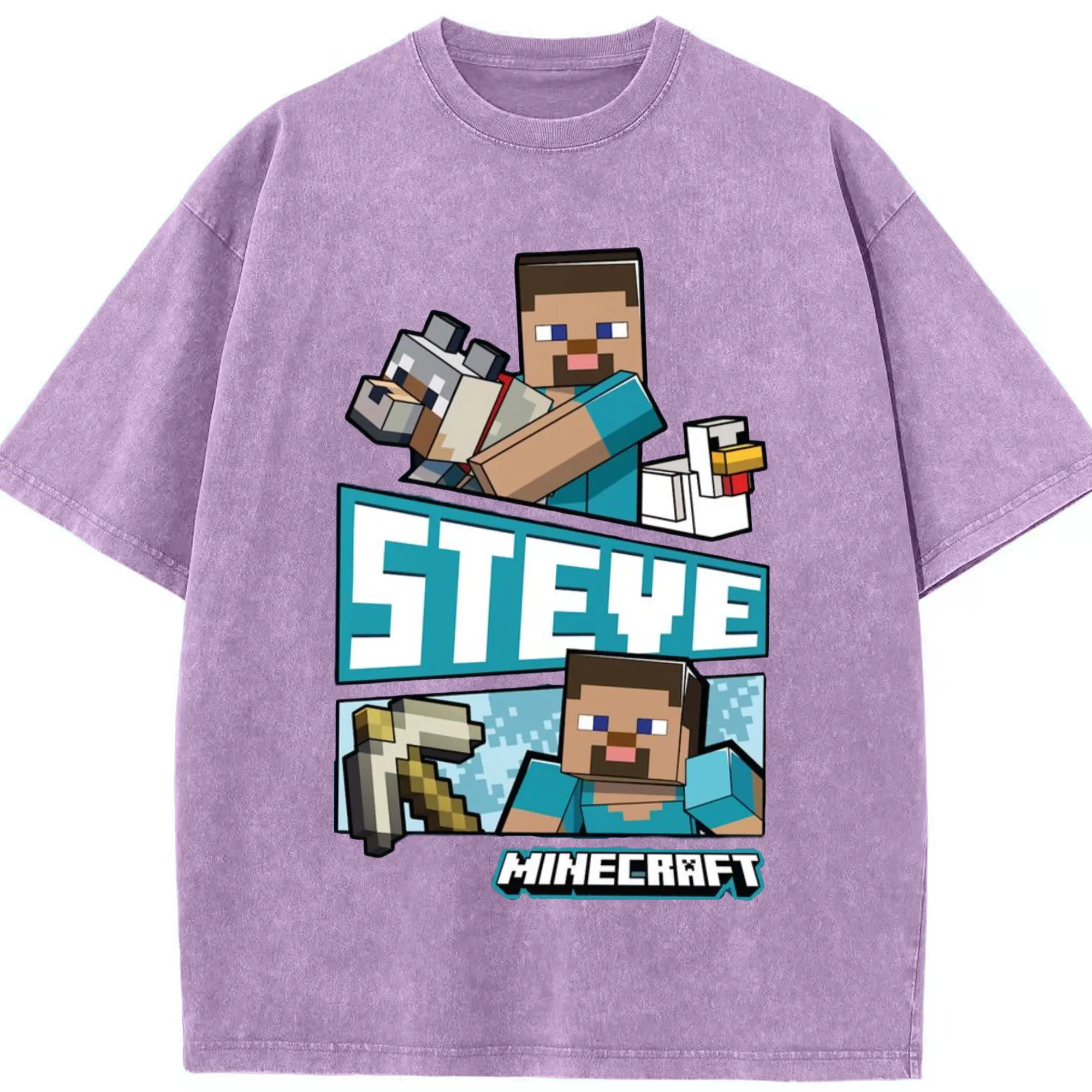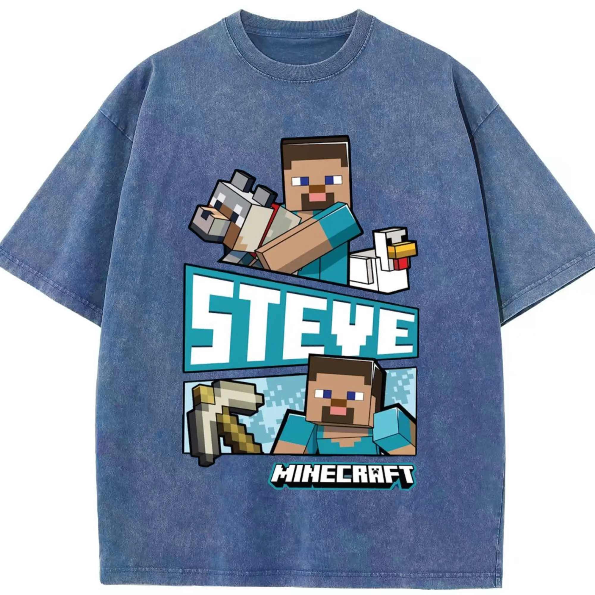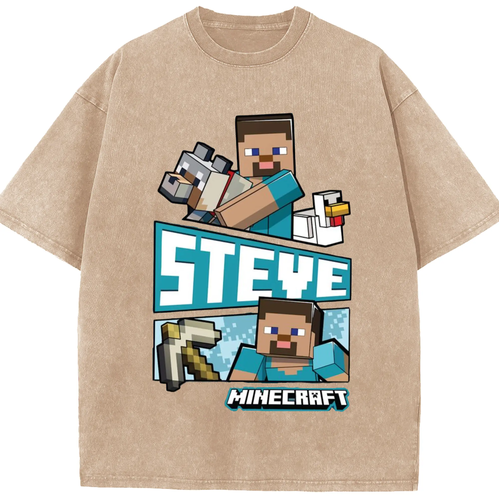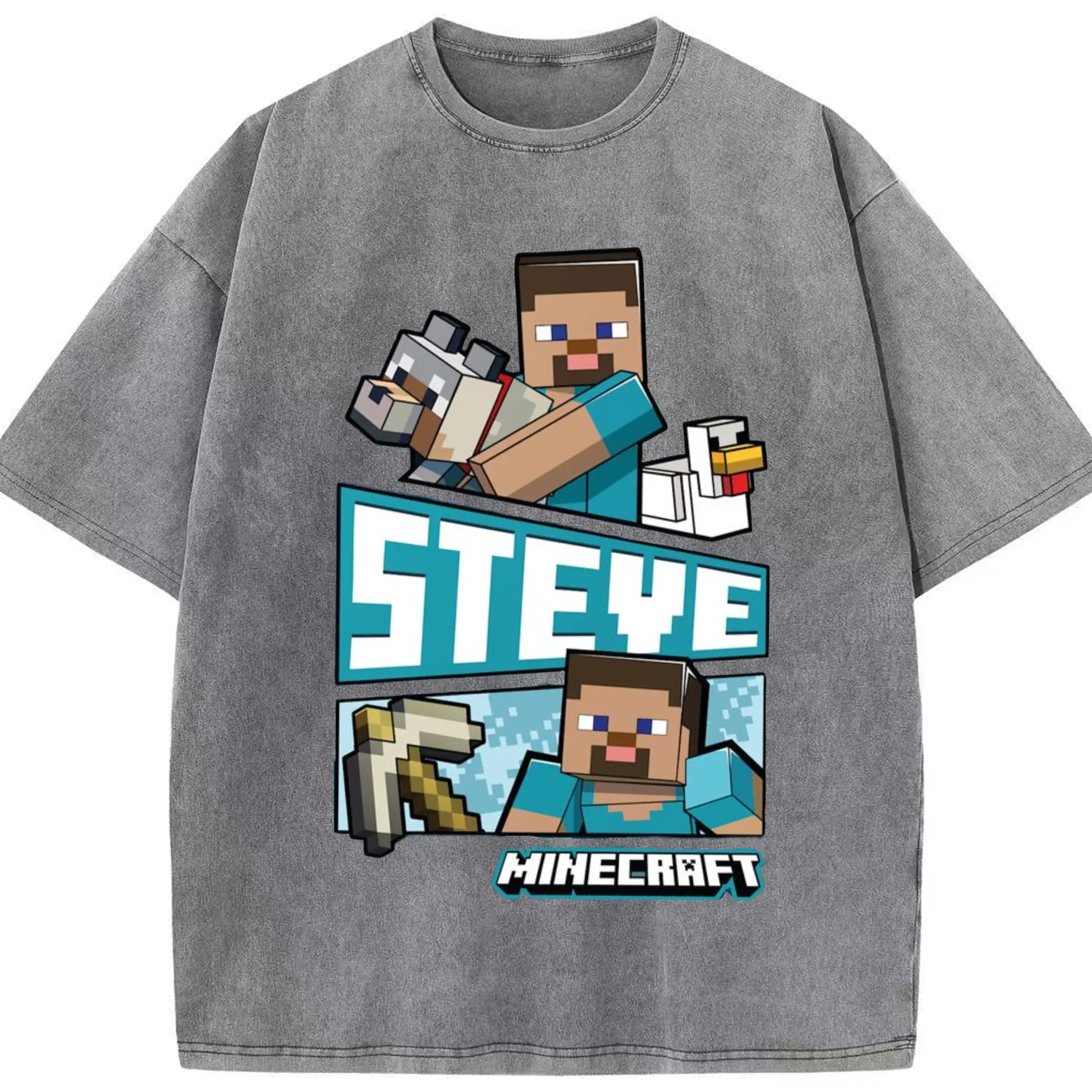 Minecraft steve collage shirt - Washed Vintage Look 230g Cotton Oversized T-Shirt With Front Heat Transfer Print – Soft, Lightweight, Stylish Fit – Comfortable Casual Wear For Sports & Everyday Use