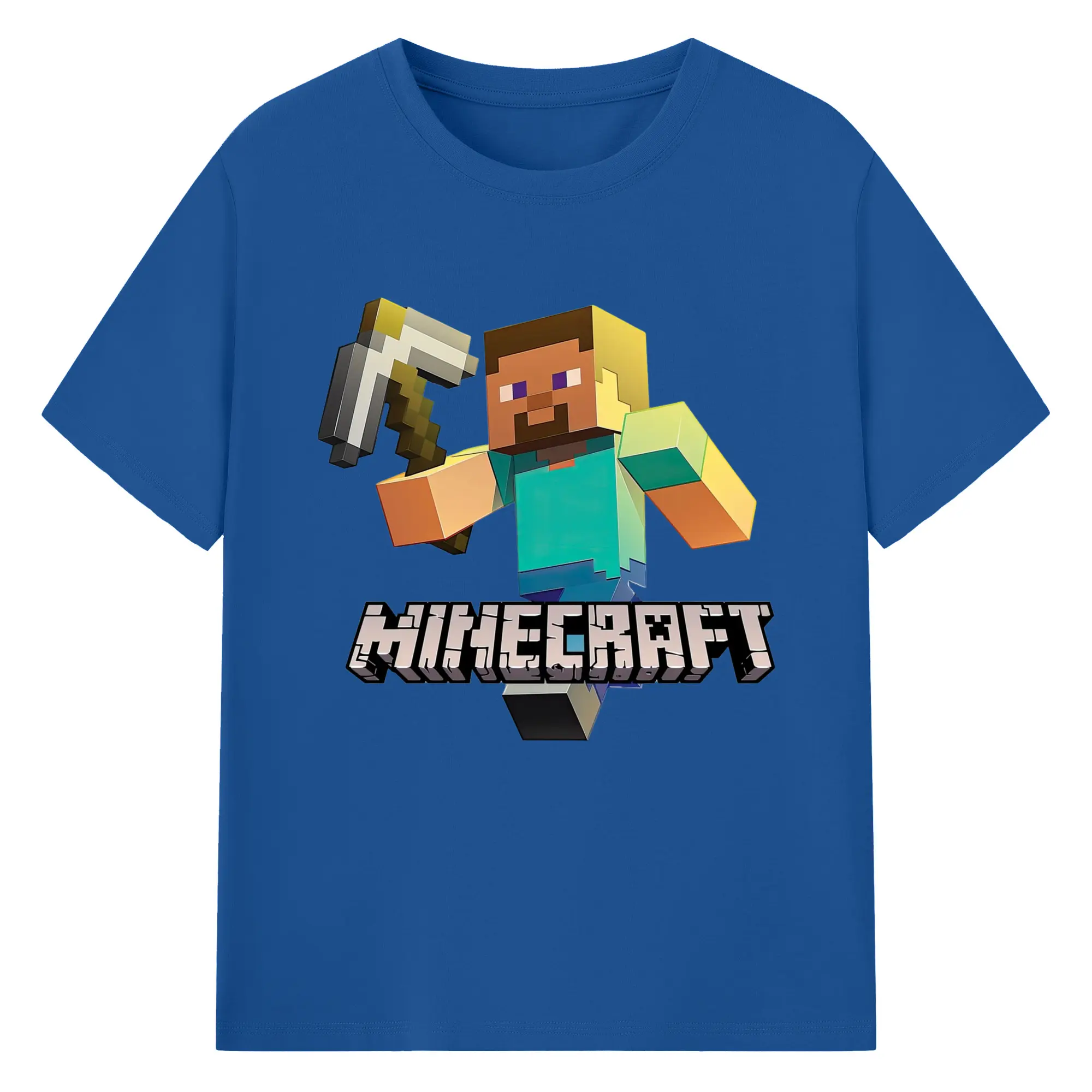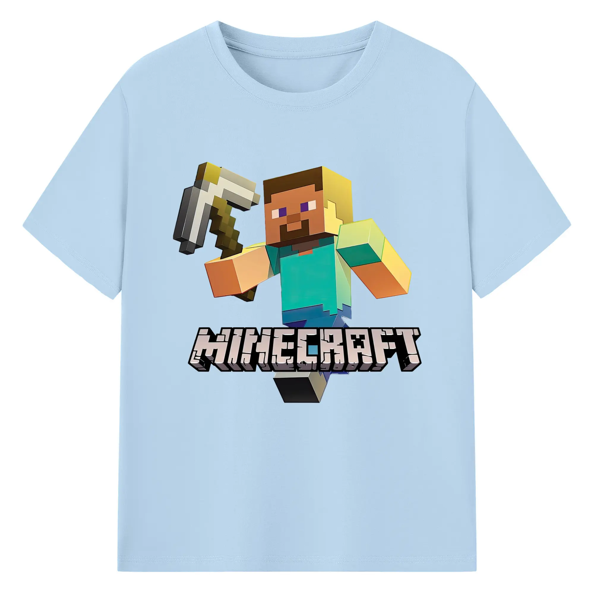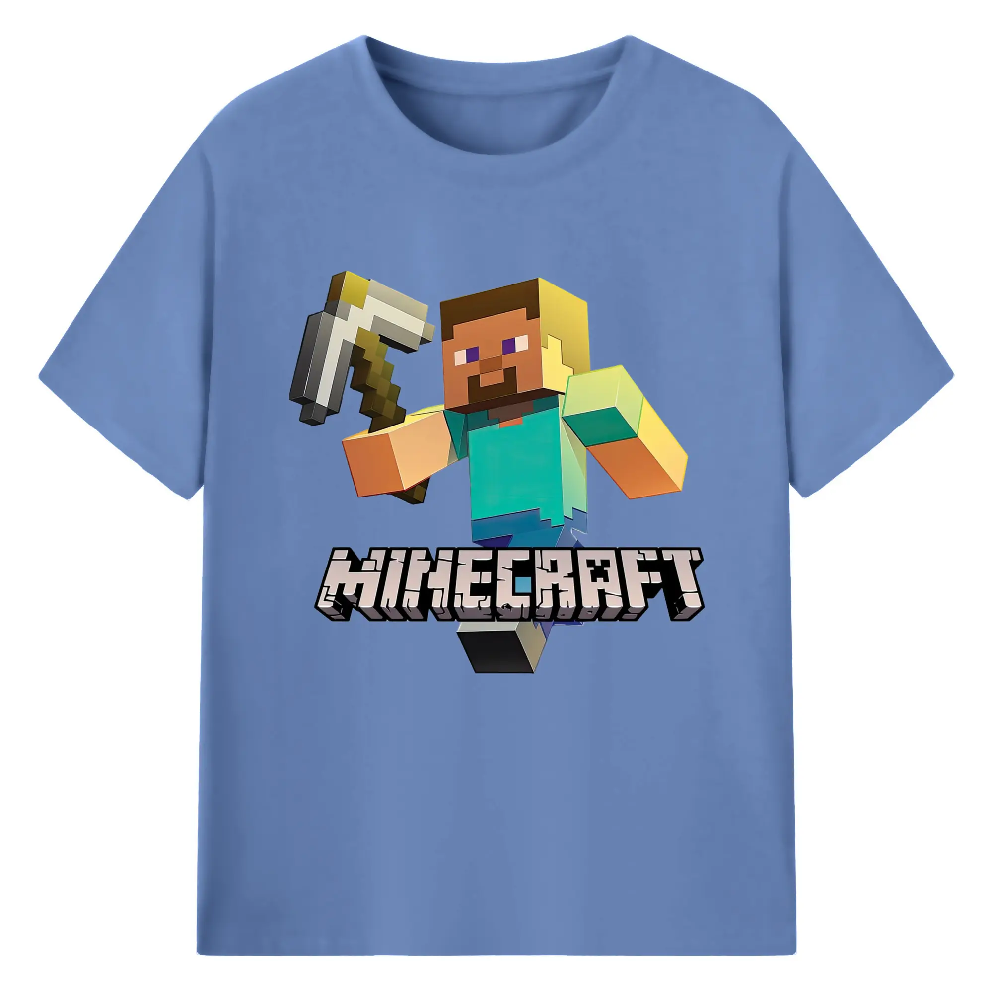 Minecraft steve graphic classic shirt - 180g Cotton T-Shirt With Front Heat Transfer Print – Soft, Lightweight, Fitted Design – Comfortable Casual Wear For Sports & Everyday Use