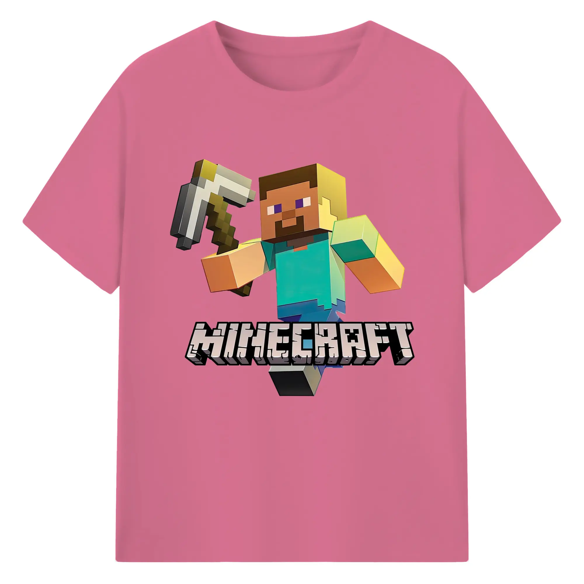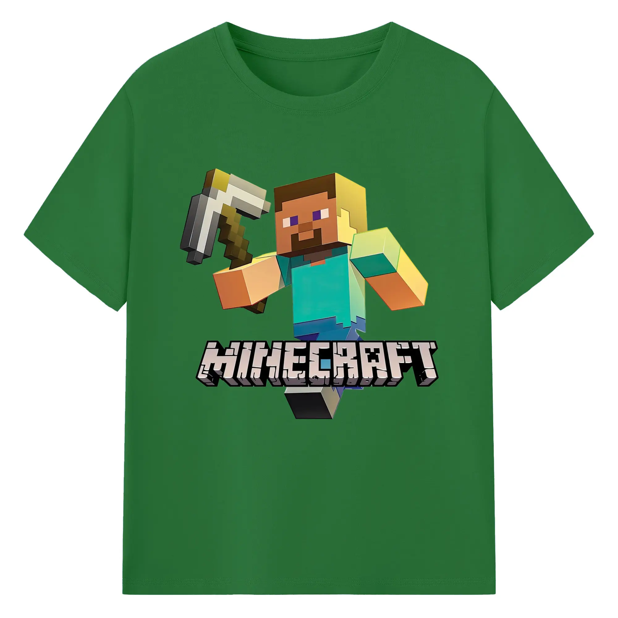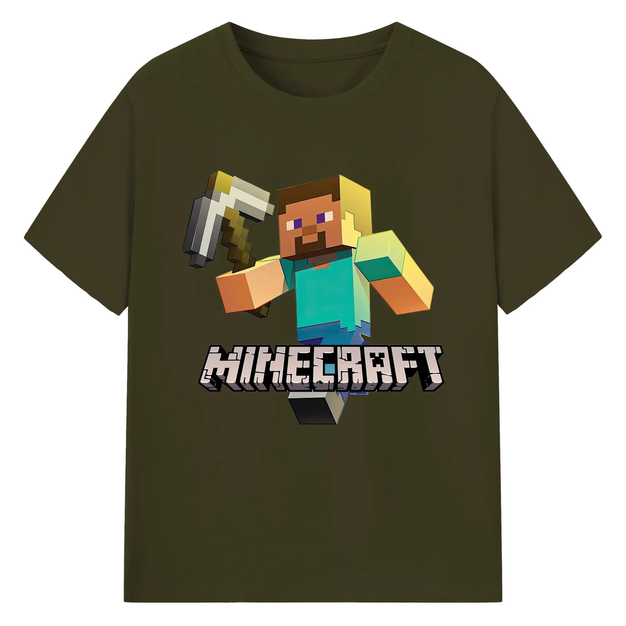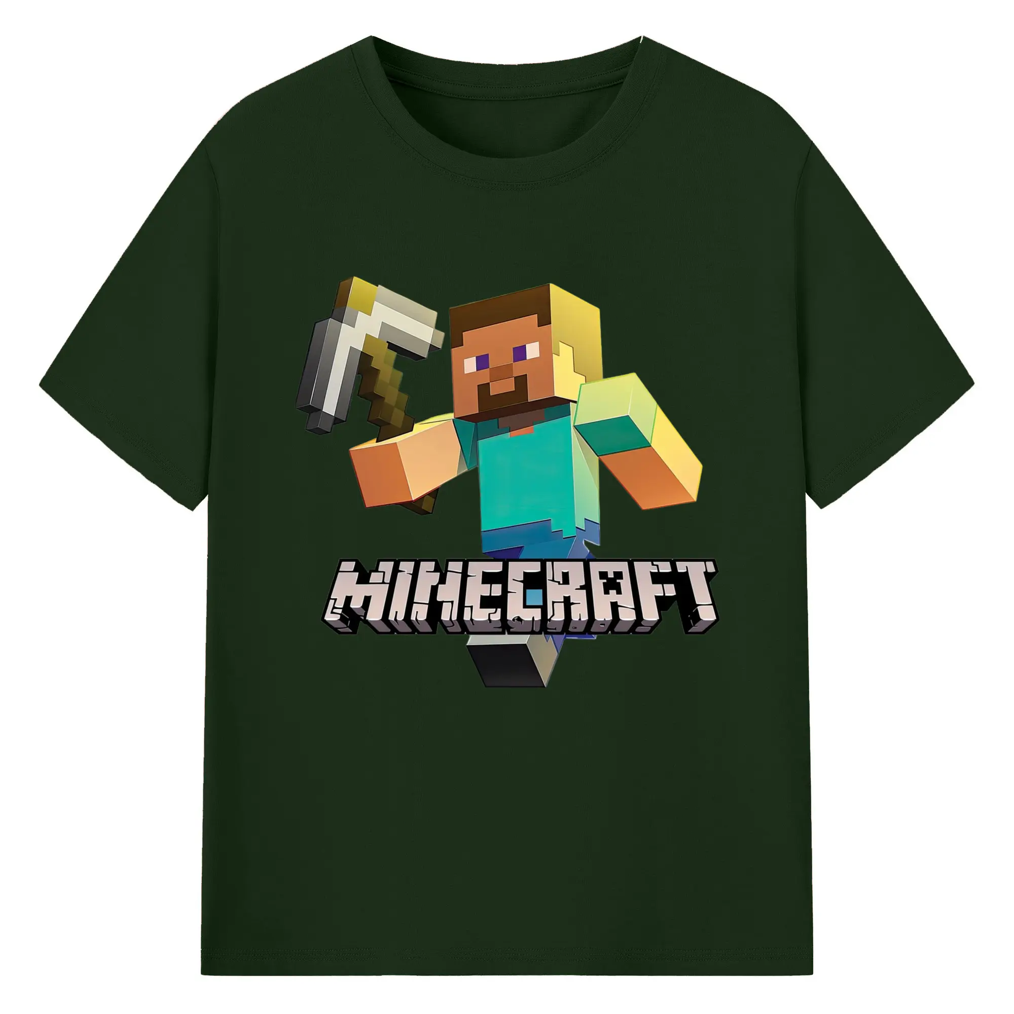 Minecraft steve graphic classic shirt - 180g Cotton T-Shirt With Front Heat Transfer Print – Soft, Lightweight, Fitted Design – Comfortable Casual Wear For Sports & Everyday Use