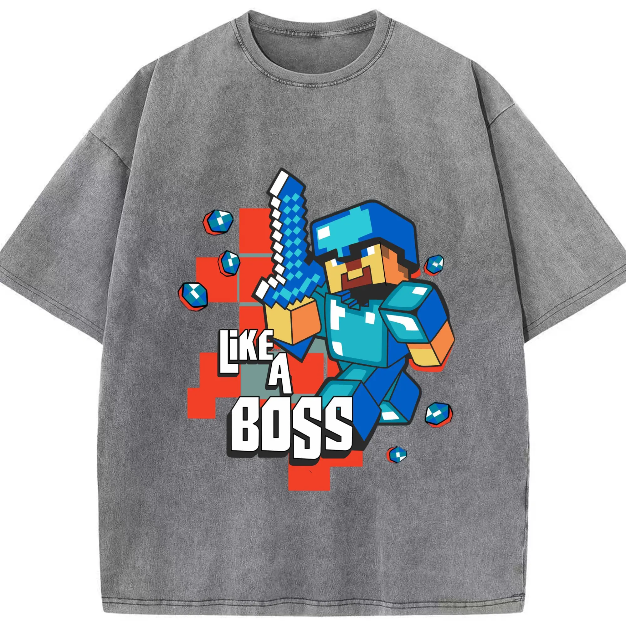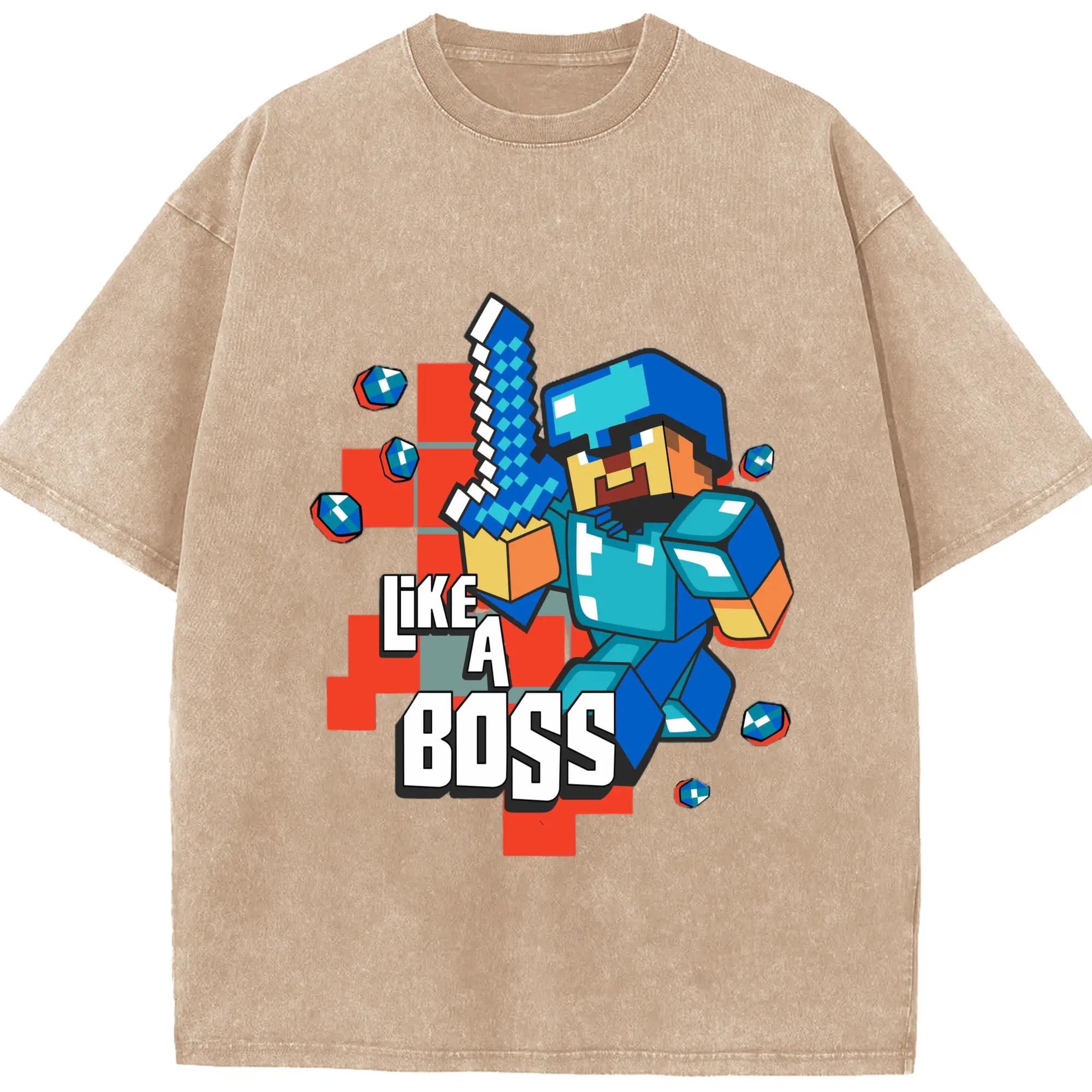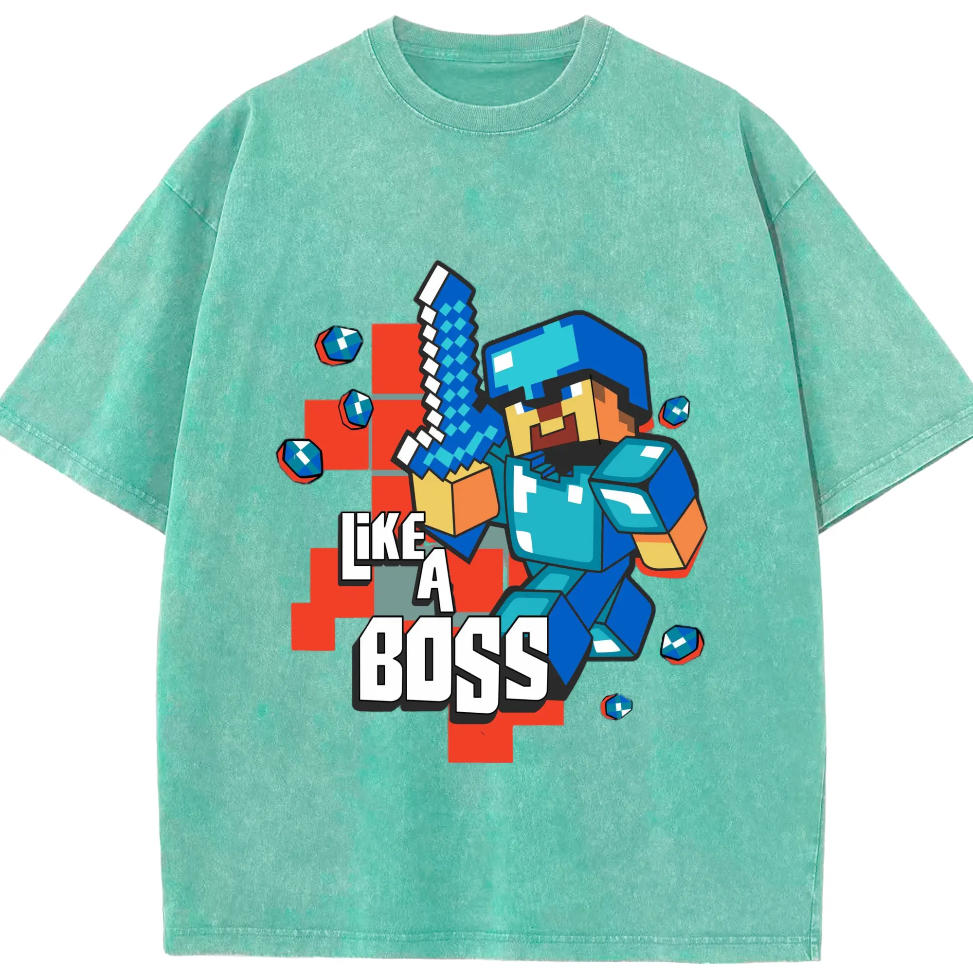 Minecraft steve graphic shirt - Washed Vintage Look 230g Cotton Oversized T-Shirt With Front Heat Transfer Print – Soft, Lightweight, Stylish Fit – Comfortable Casual Wear For Sports & Everyday Use