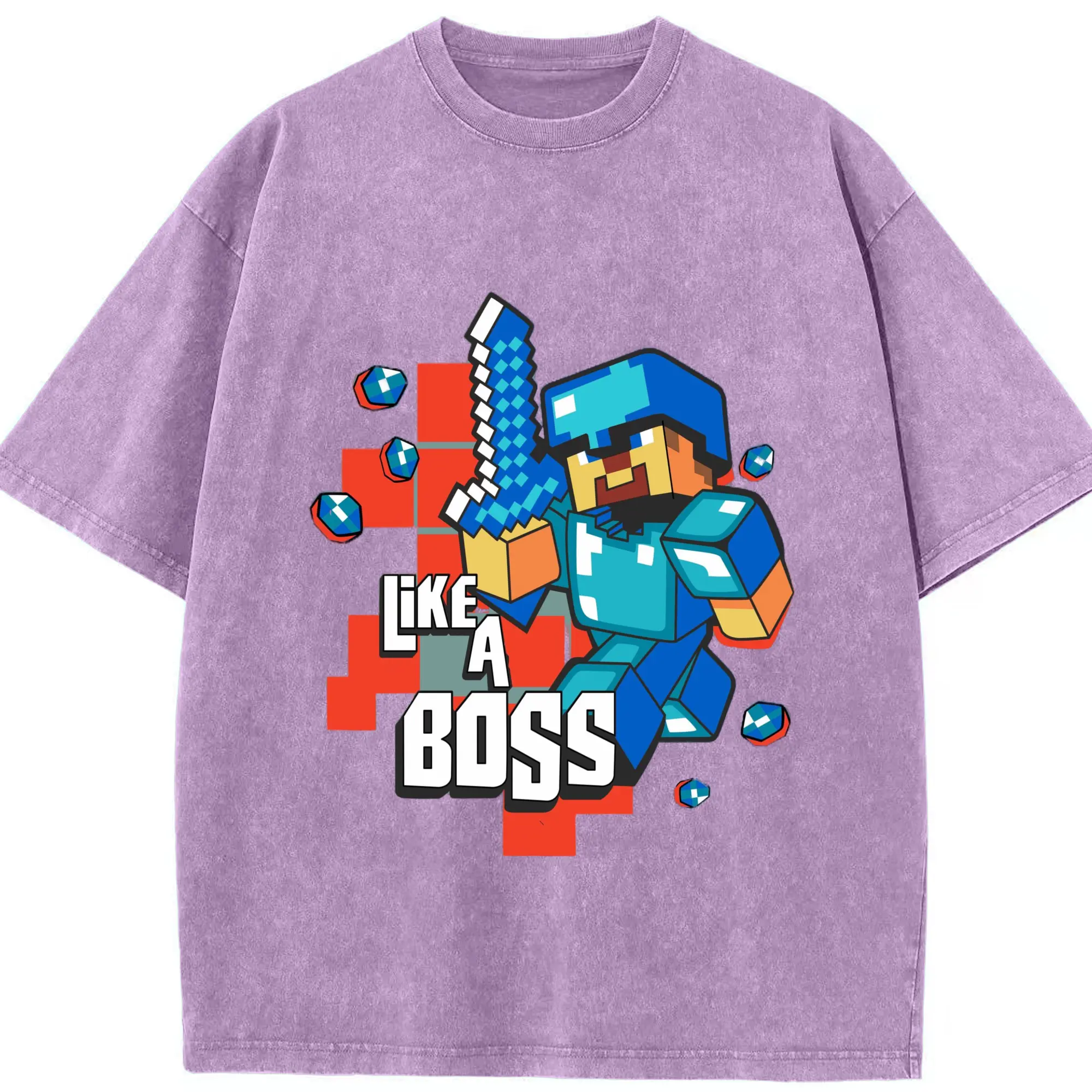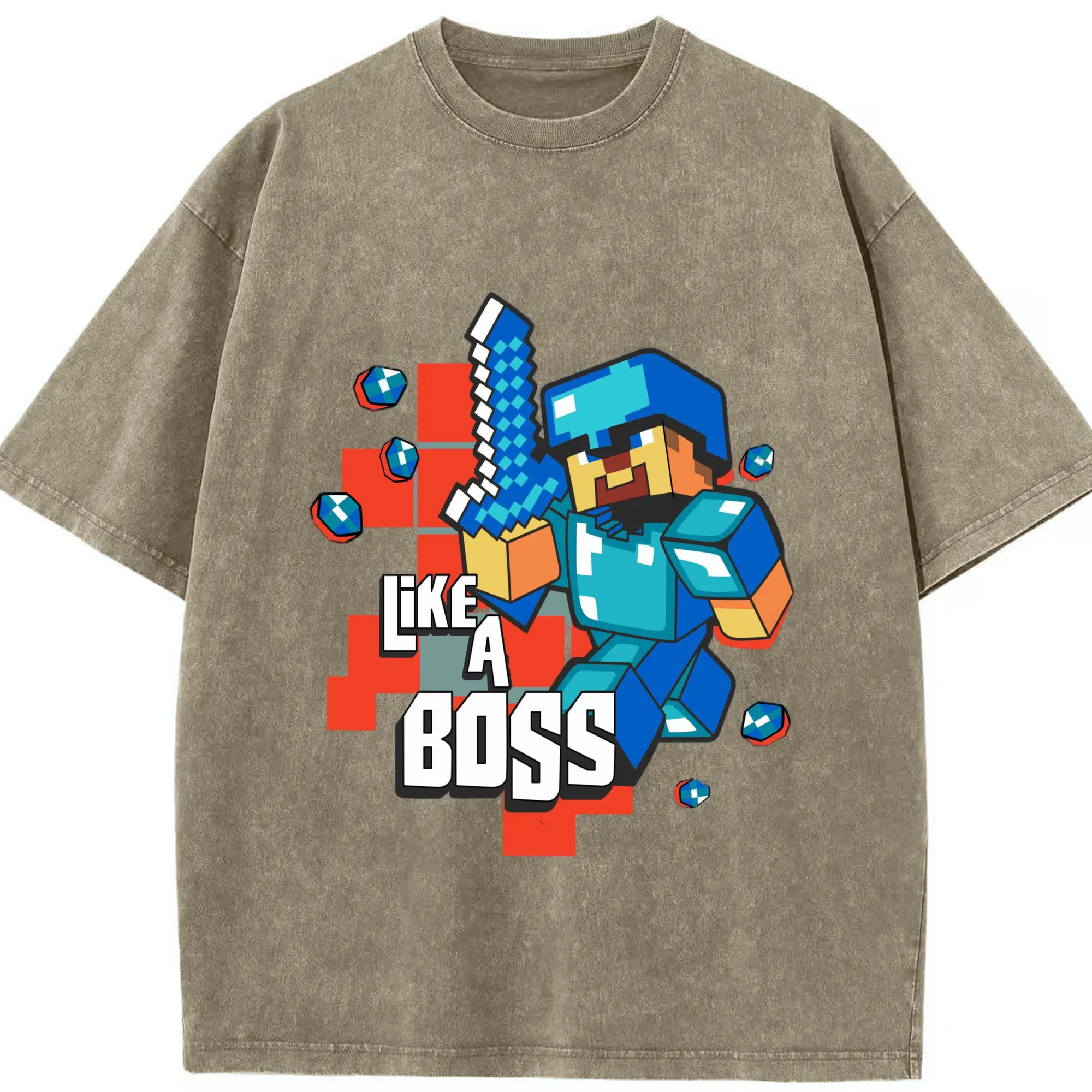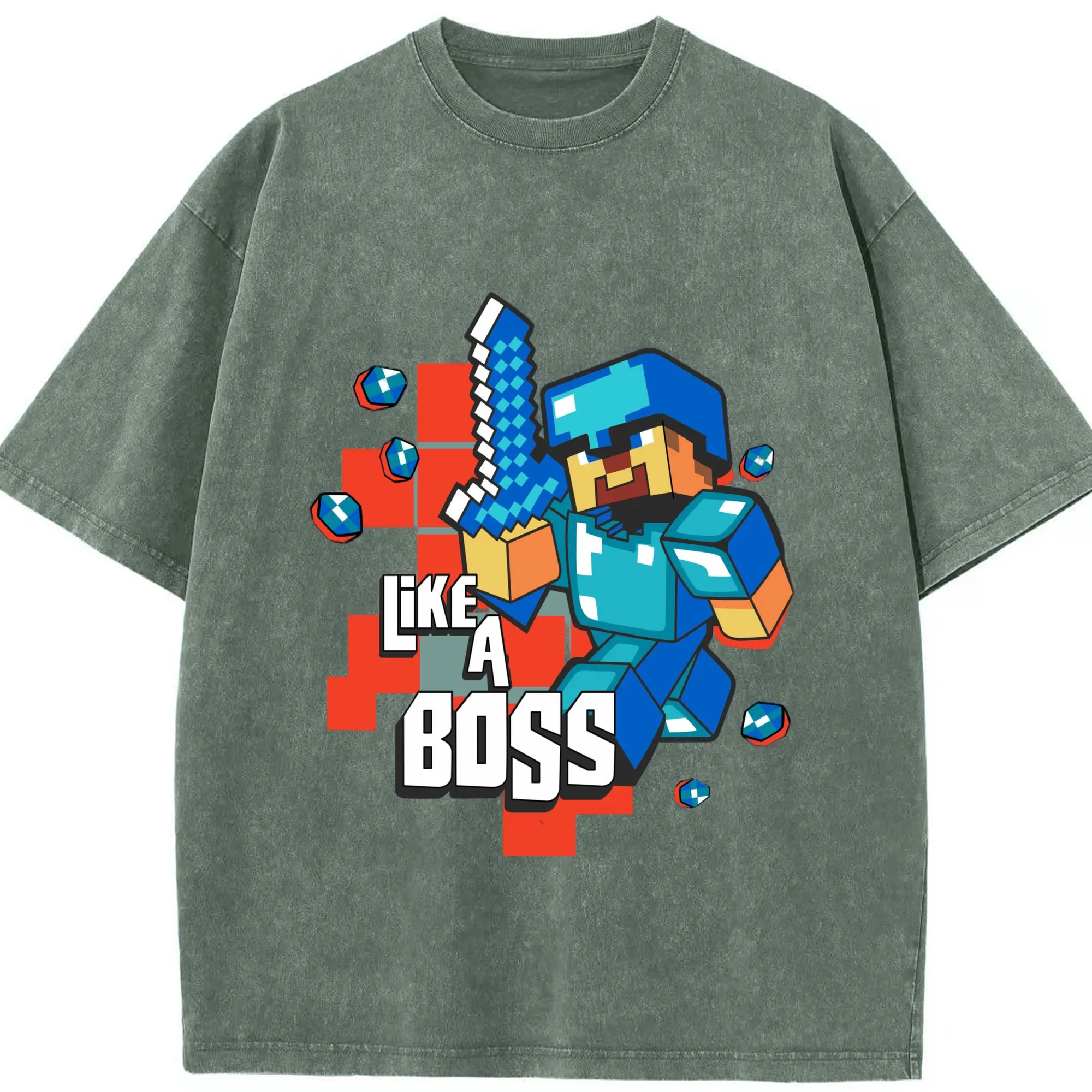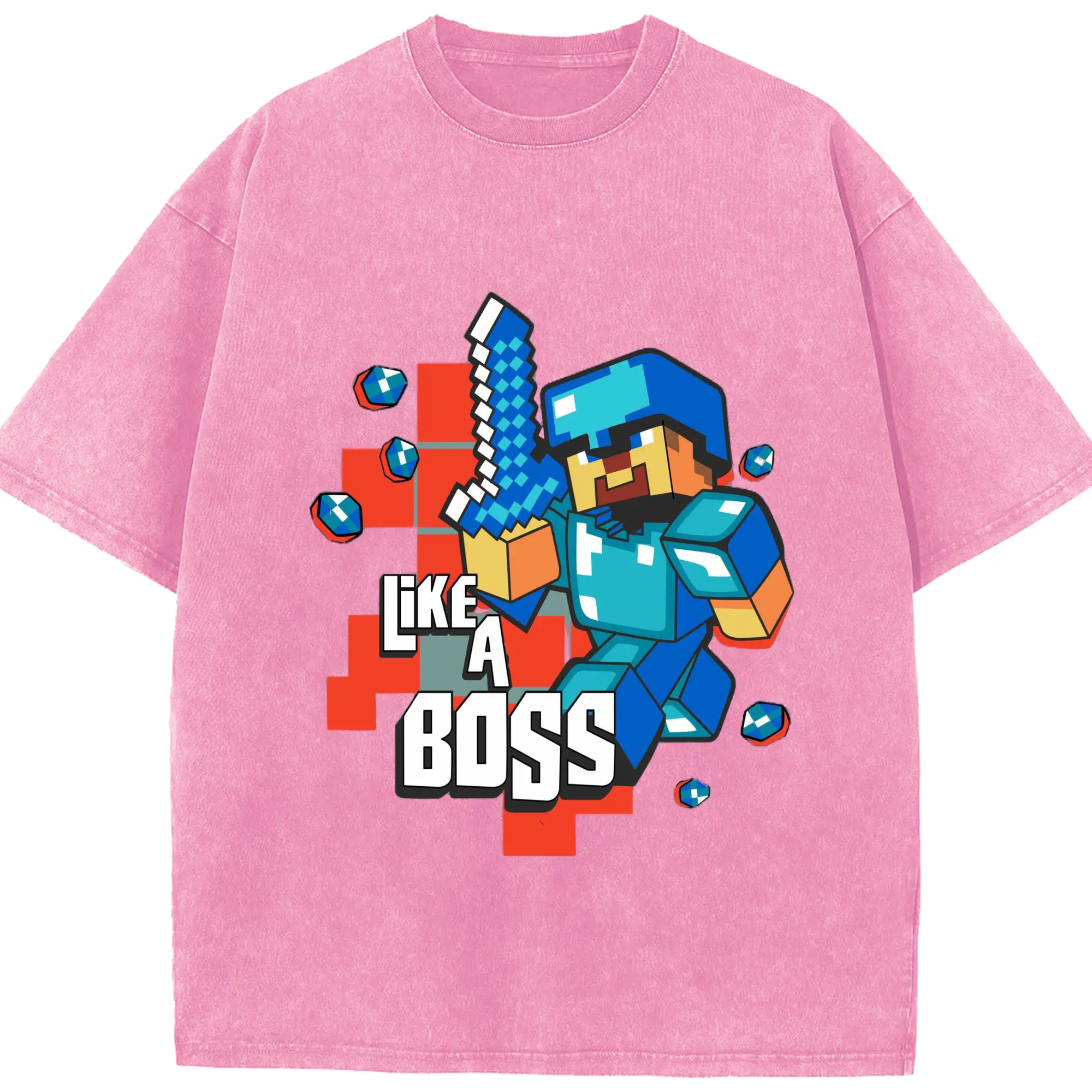 Minecraft steve graphic shirt - Washed Vintage Look 230g Cotton Oversized T-Shirt With Front Heat Transfer Print – Soft, Lightweight, Stylish Fit – Comfortable Casual Wear For Sports & Everyday Use