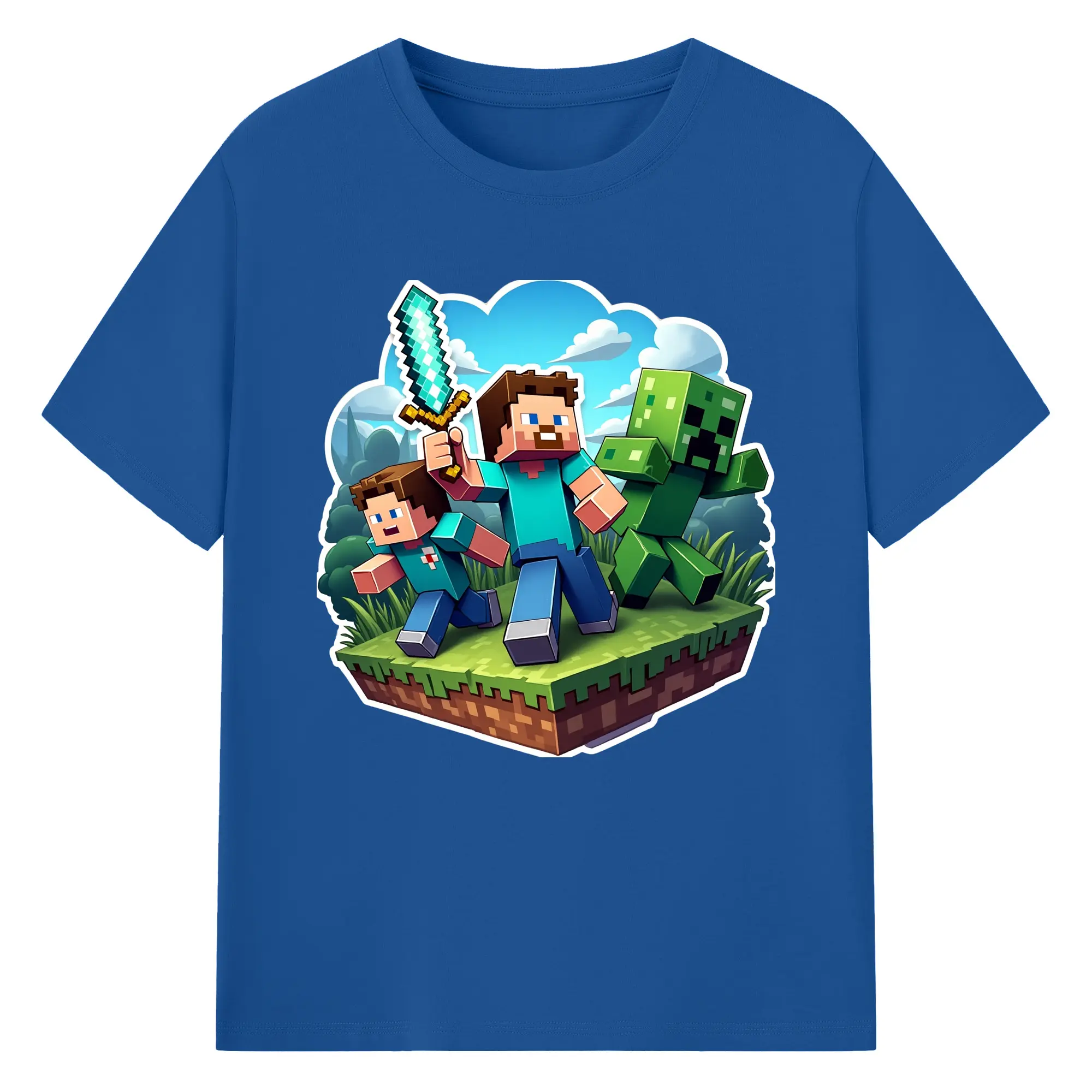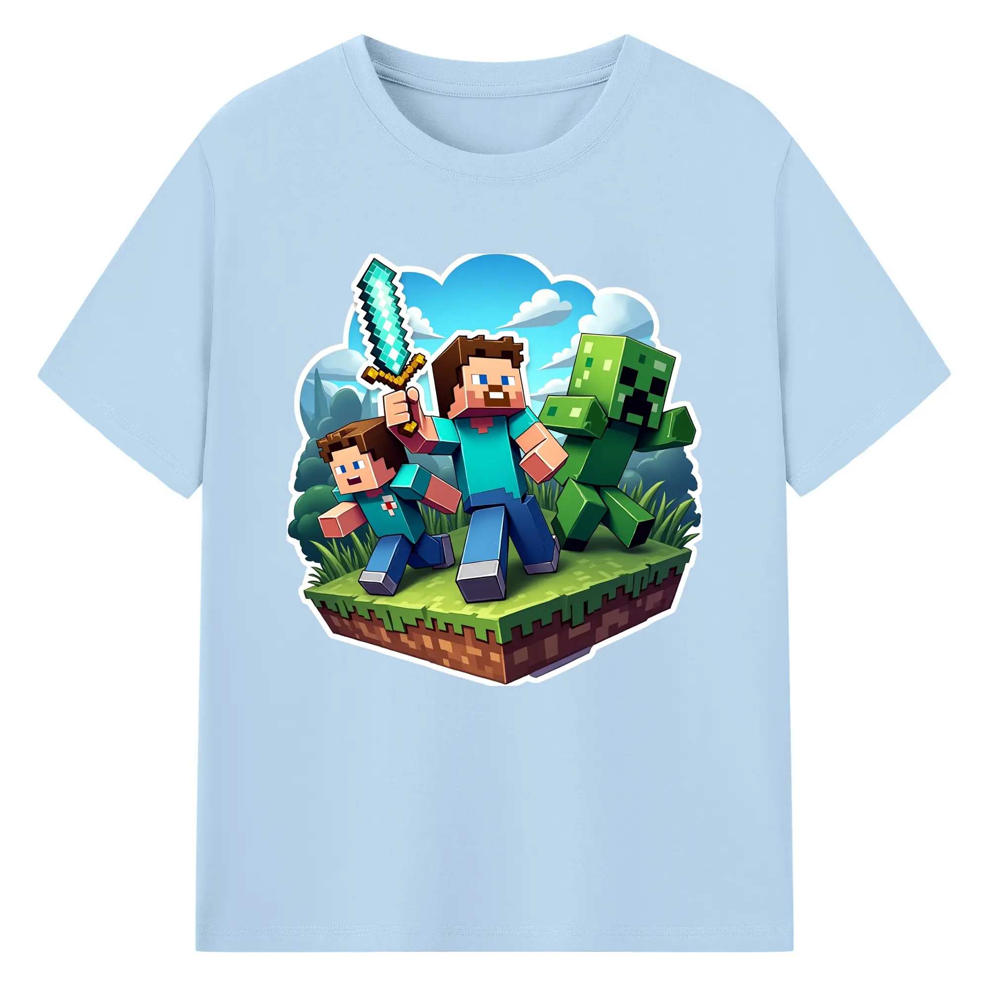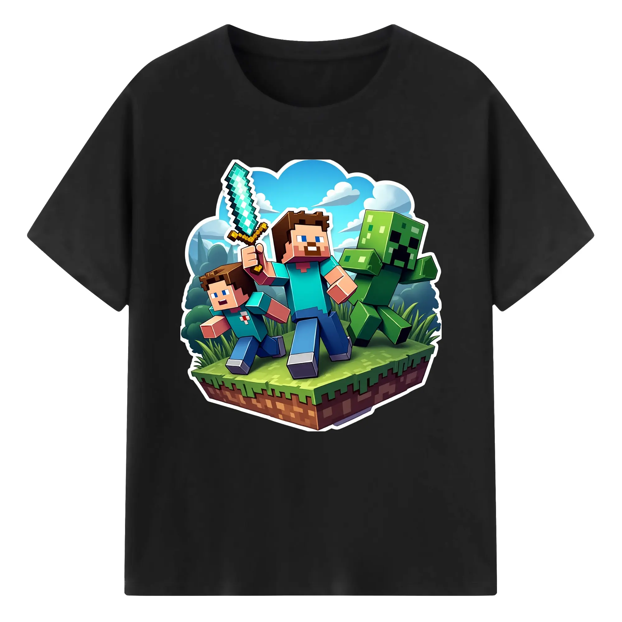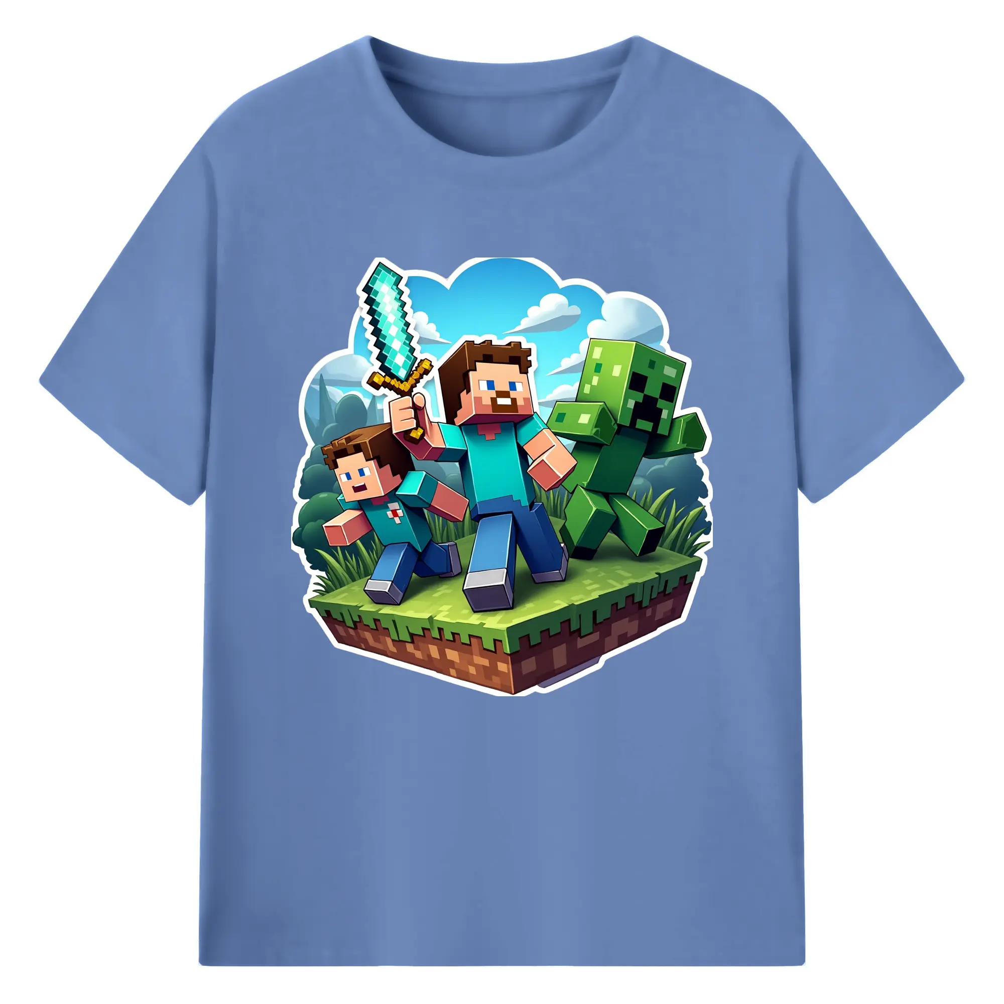 Minecraft steve shirt - 180g Cotton T-Shirt With Front Heat Transfer Print – Soft, Lightweight, Fitted Design – Comfortable Casual Wear For Sports & Everyday Use