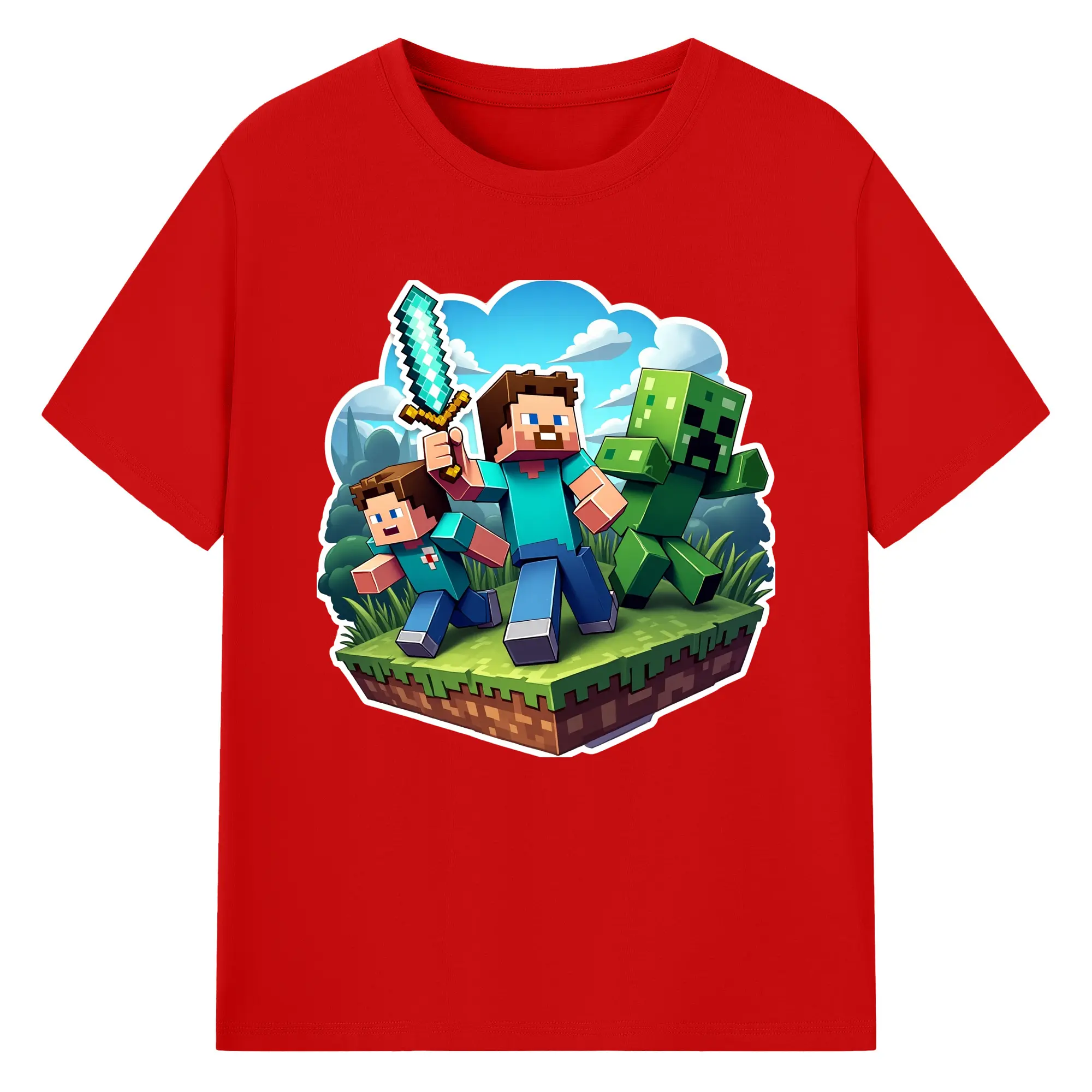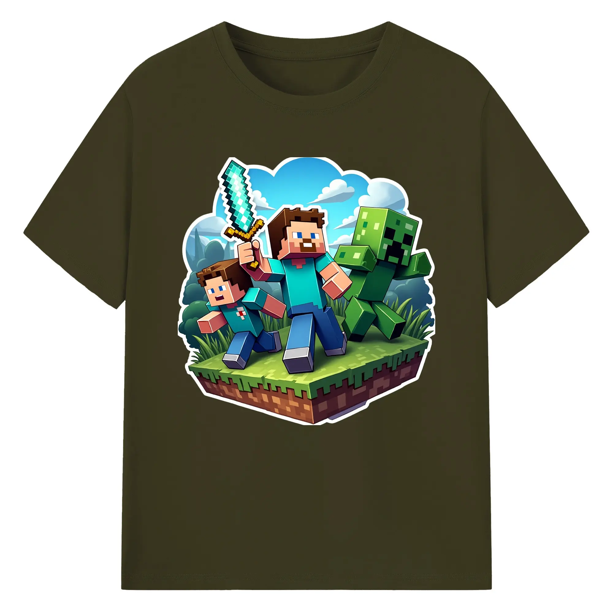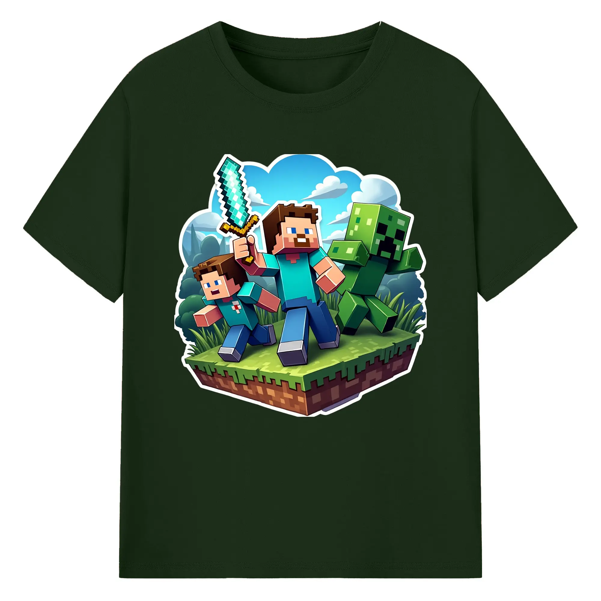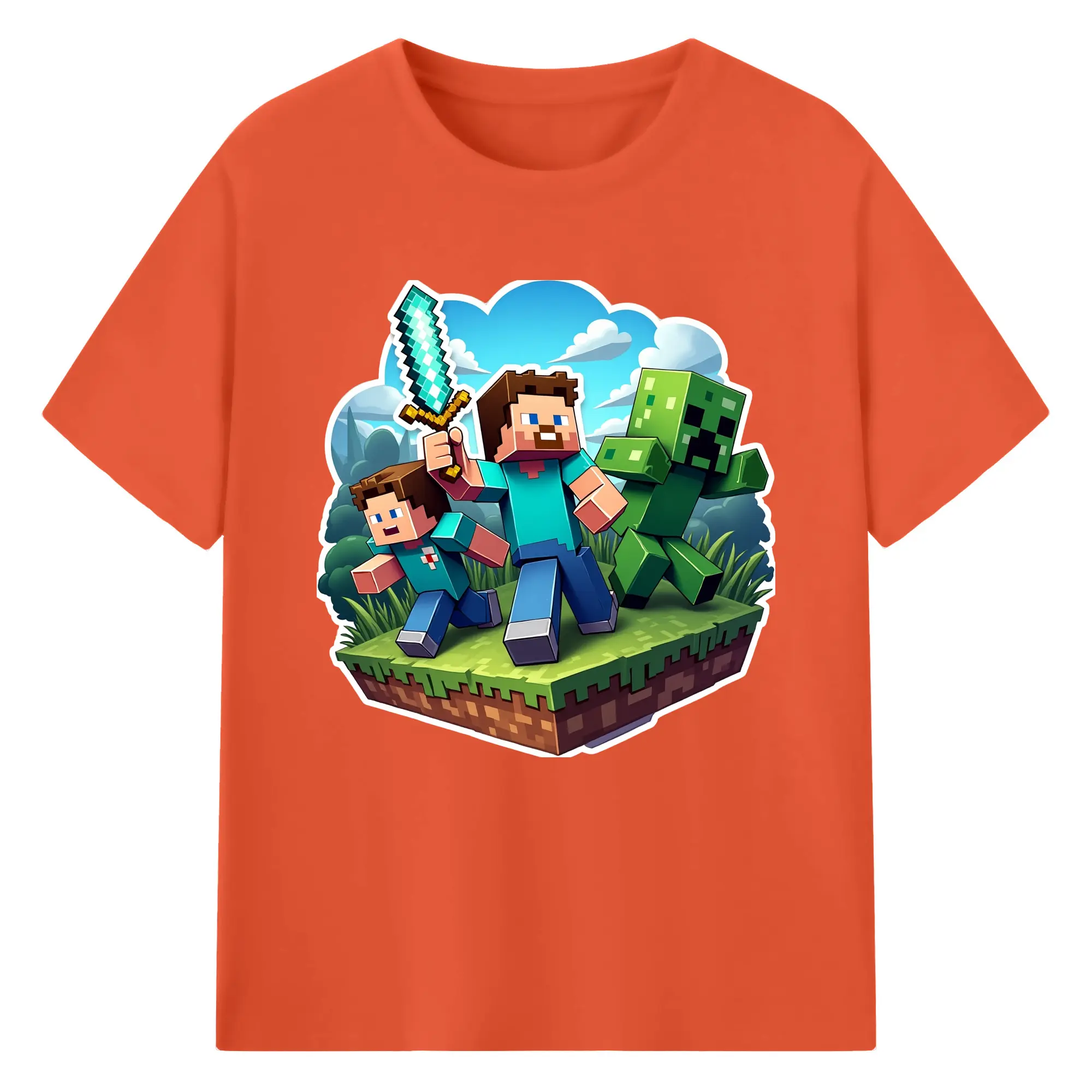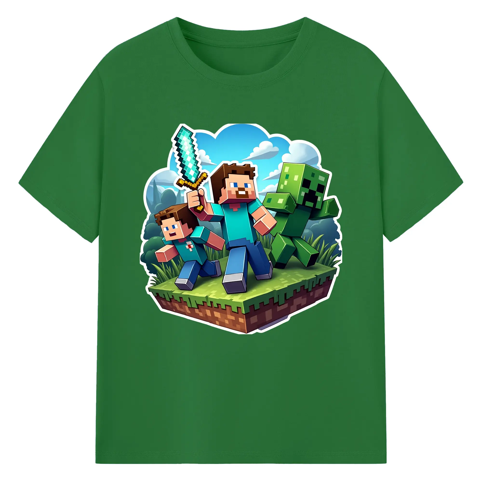 Minecraft steve shirt - 180g Cotton T-Shirt With Front Heat Transfer Print – Soft, Lightweight, Fitted Design – Comfortable Casual Wear For Sports & Everyday Use