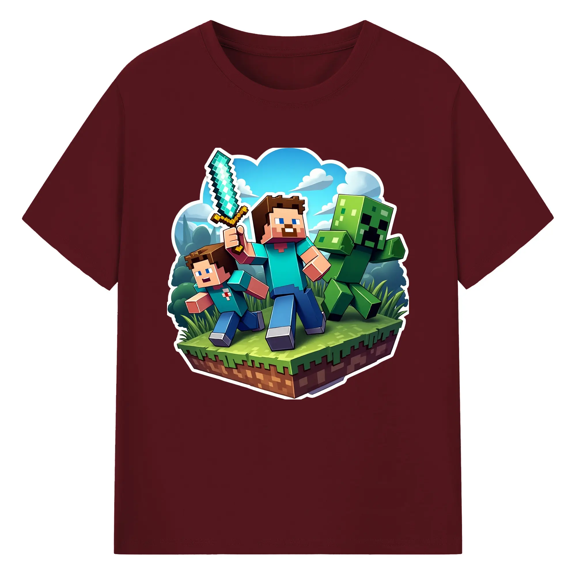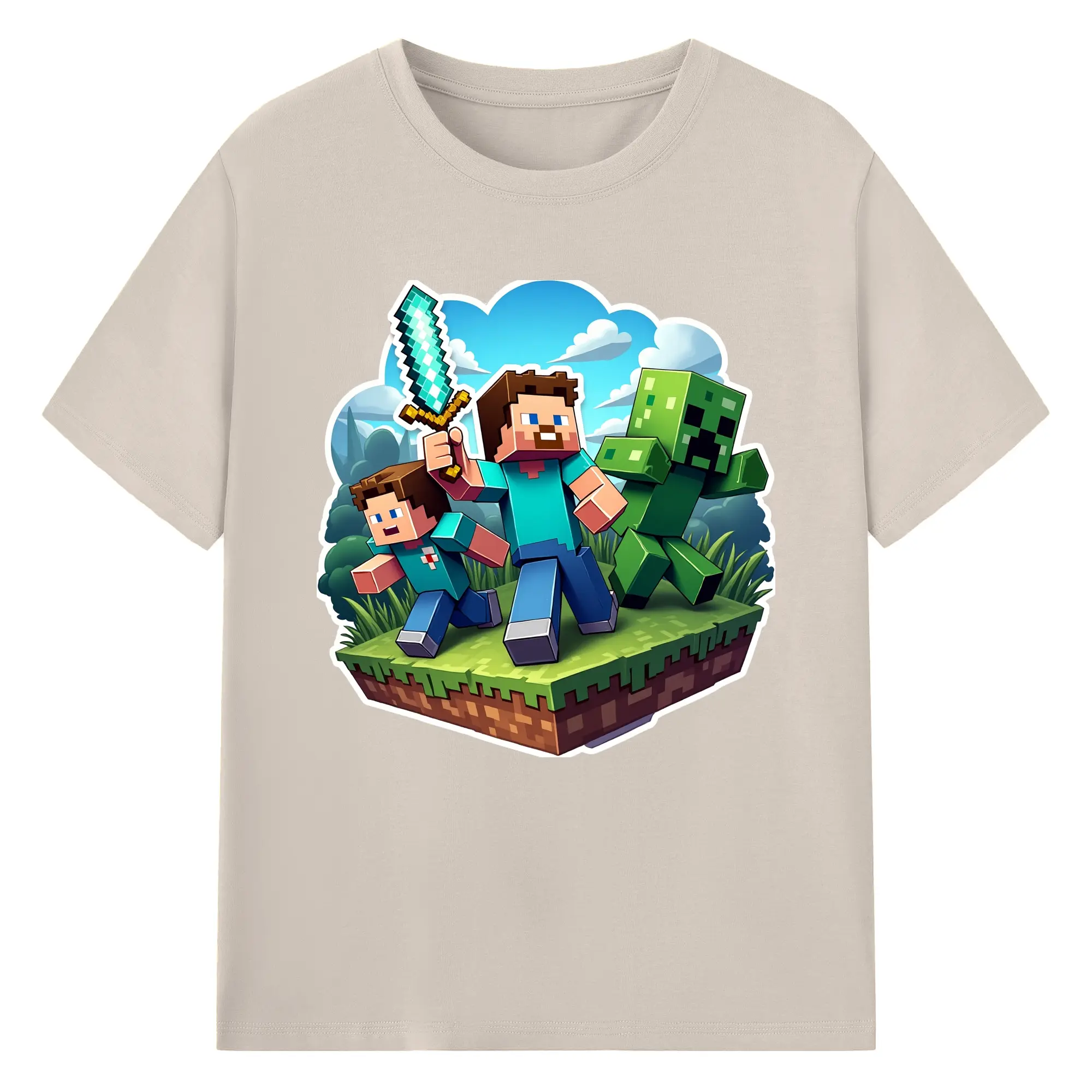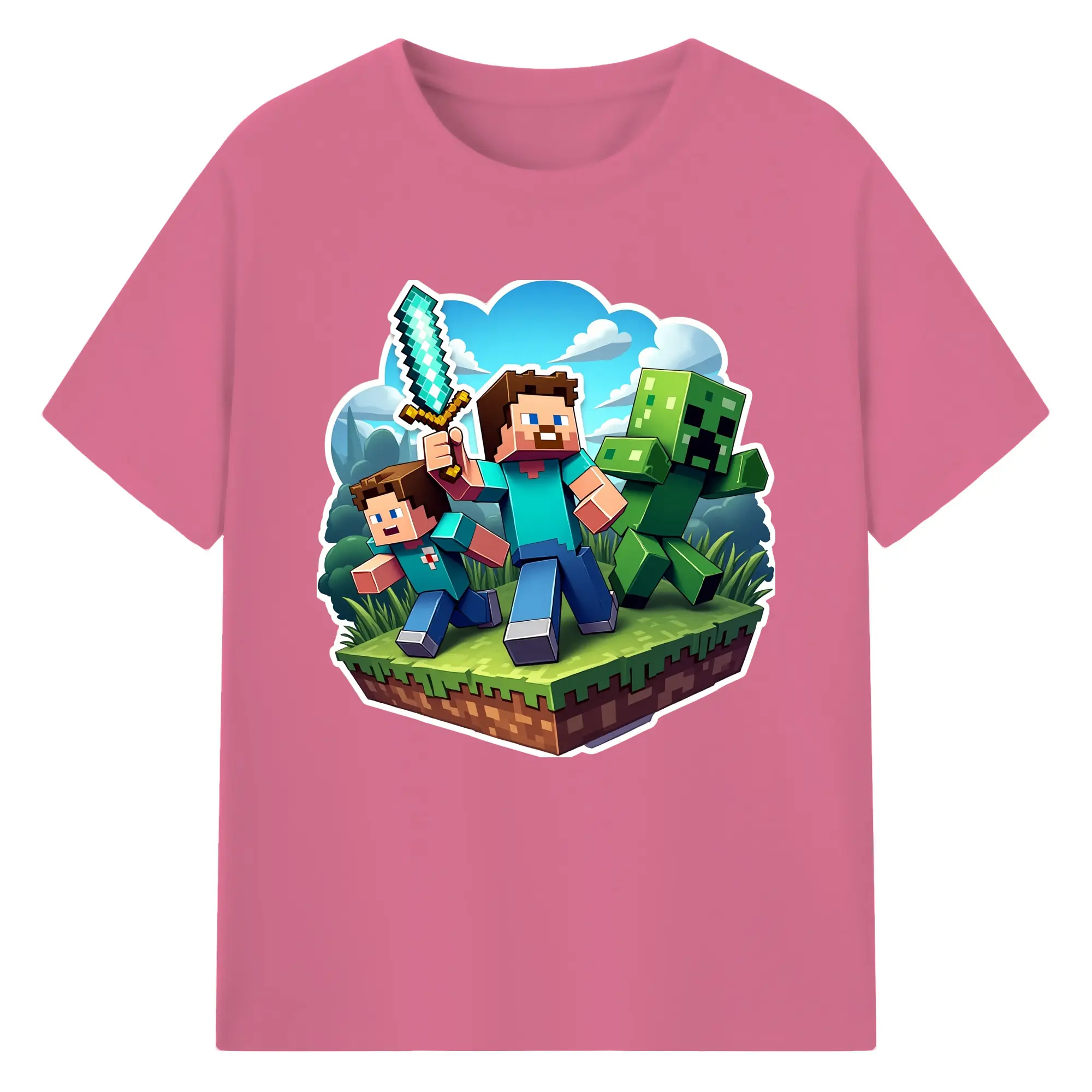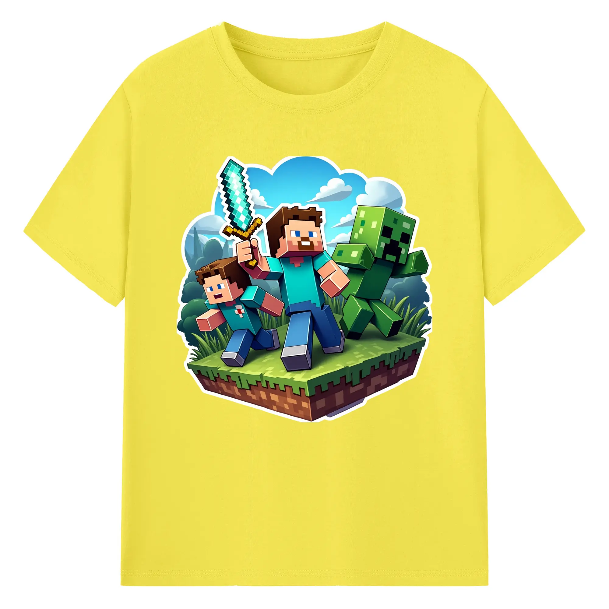 Minecraft steve shirt - 180g Cotton T-Shirt With Front Heat Transfer Print – Soft, Lightweight, Fitted Design – Comfortable Casual Wear For Sports & Everyday Use
