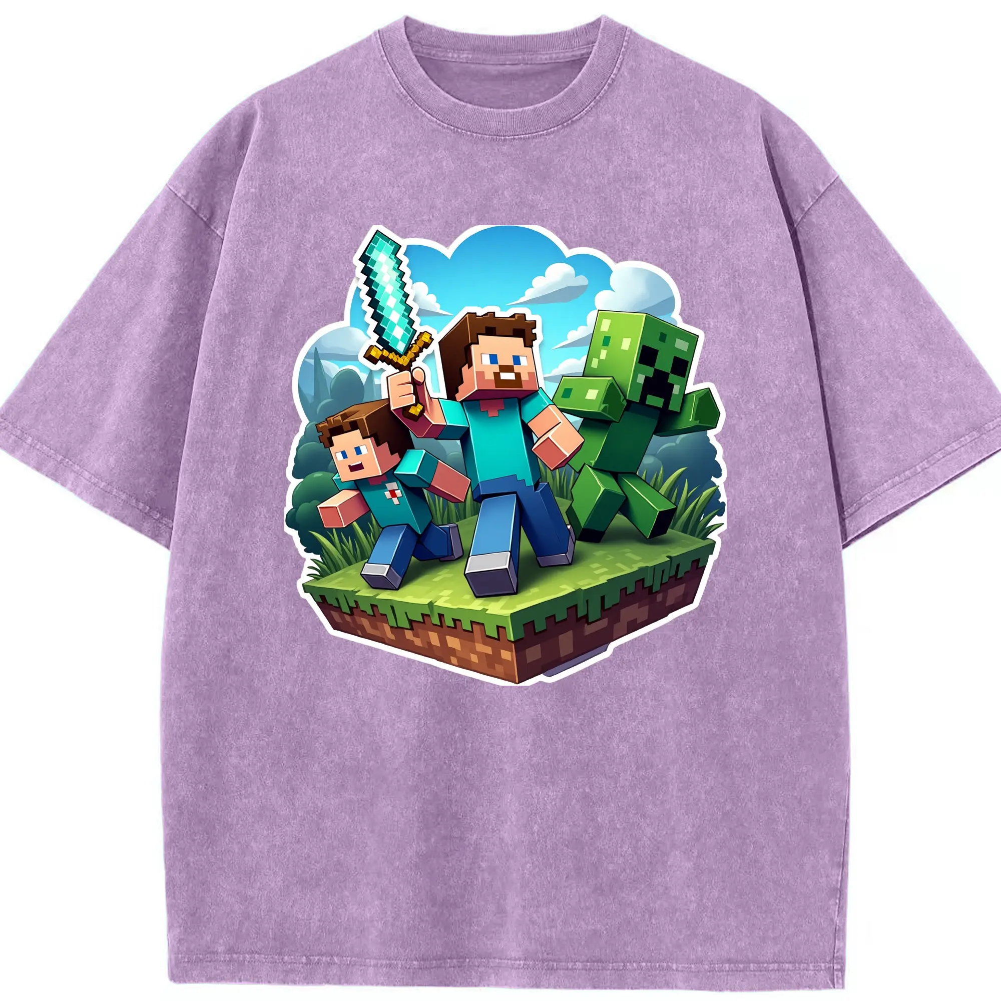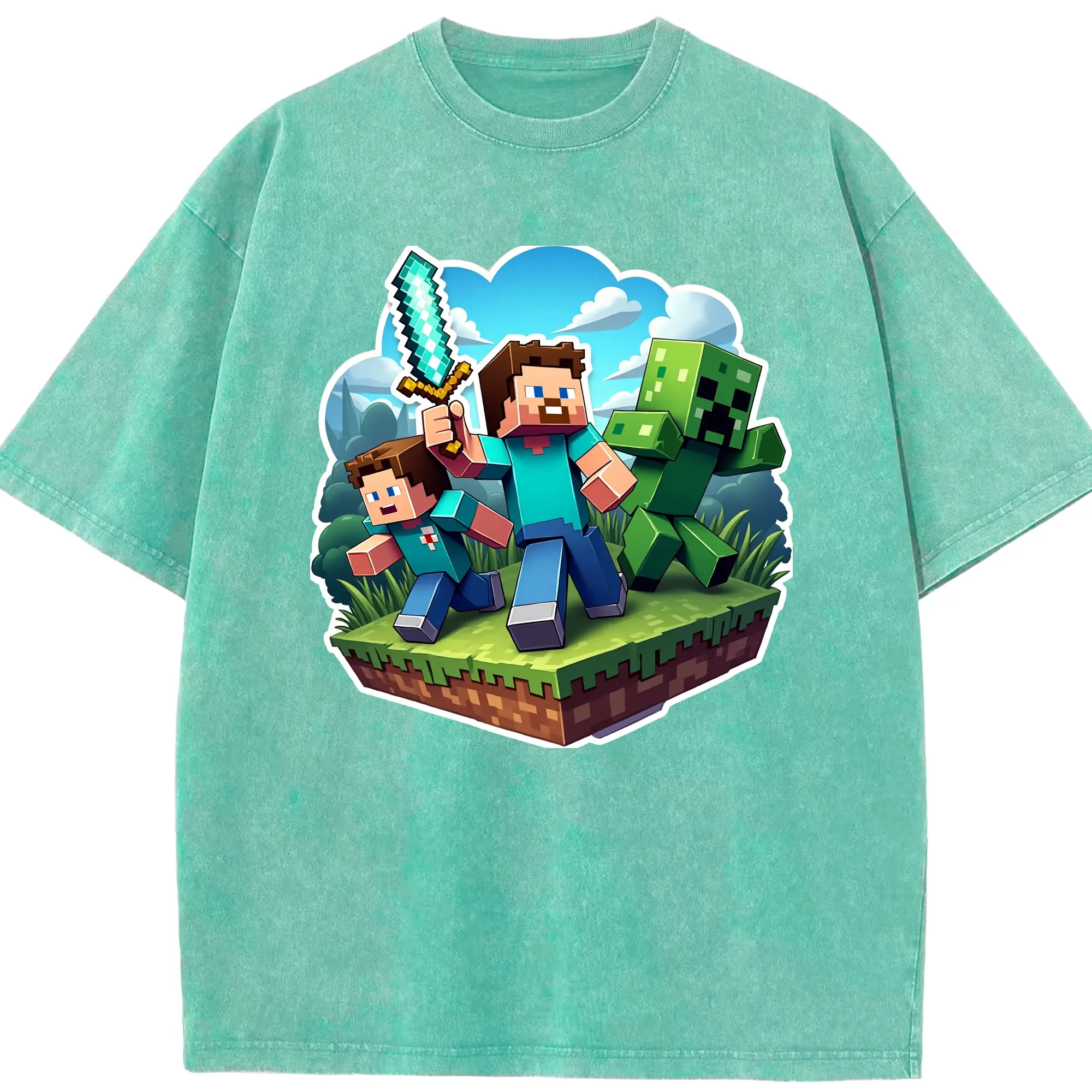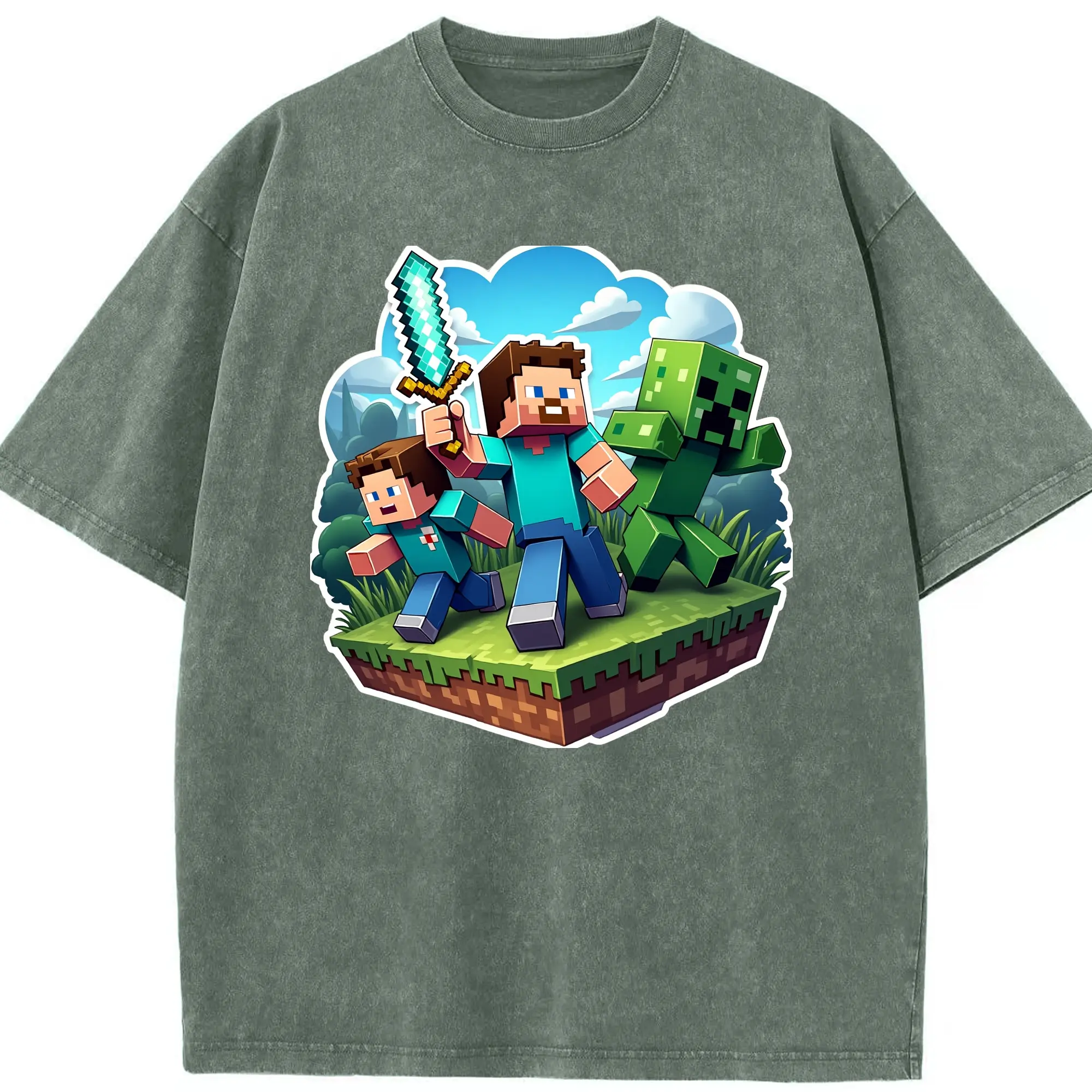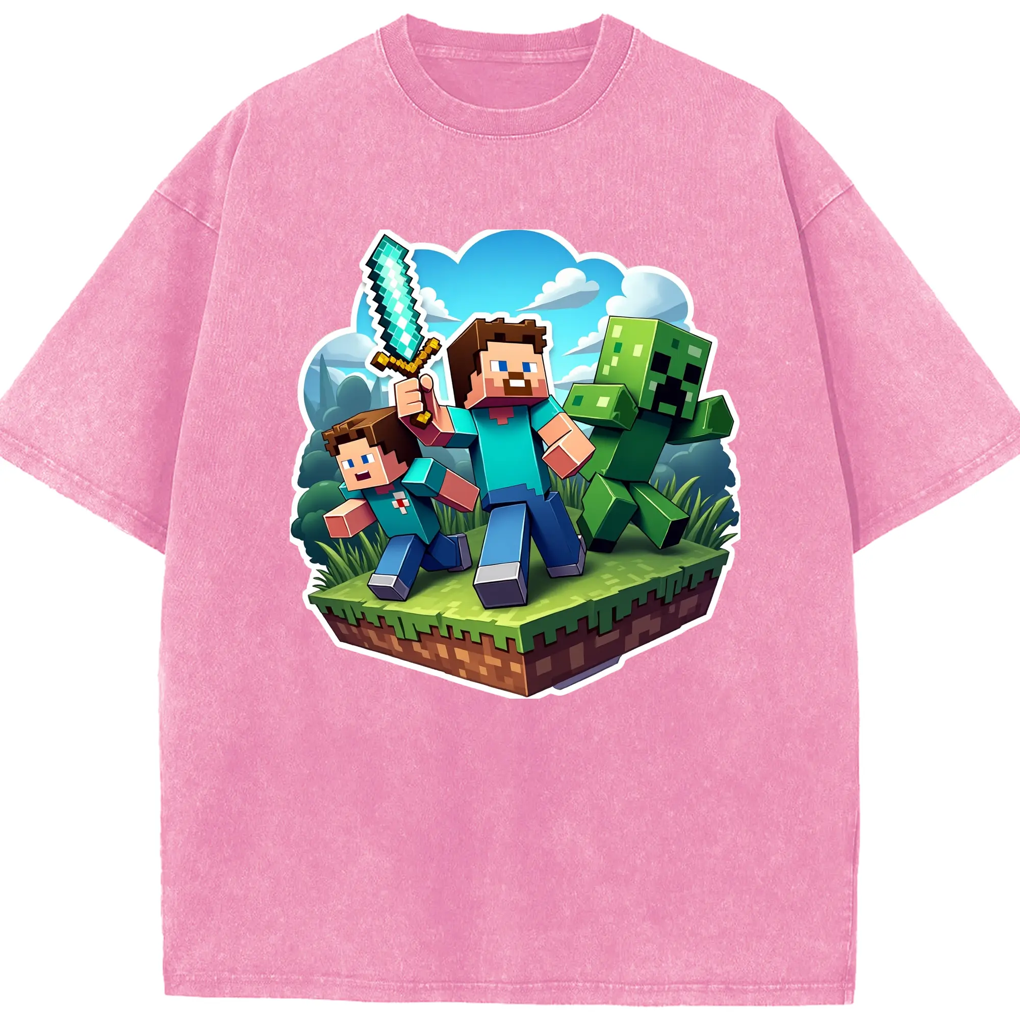Minecraft steve shirt - Washed Vintage Look 230g Cotton Oversized T-Shirt With Front Heat Transfer Print – Soft, Lightweight, Stylish Fit – Comfortable Casual Wear For Sports & Everyday Use
