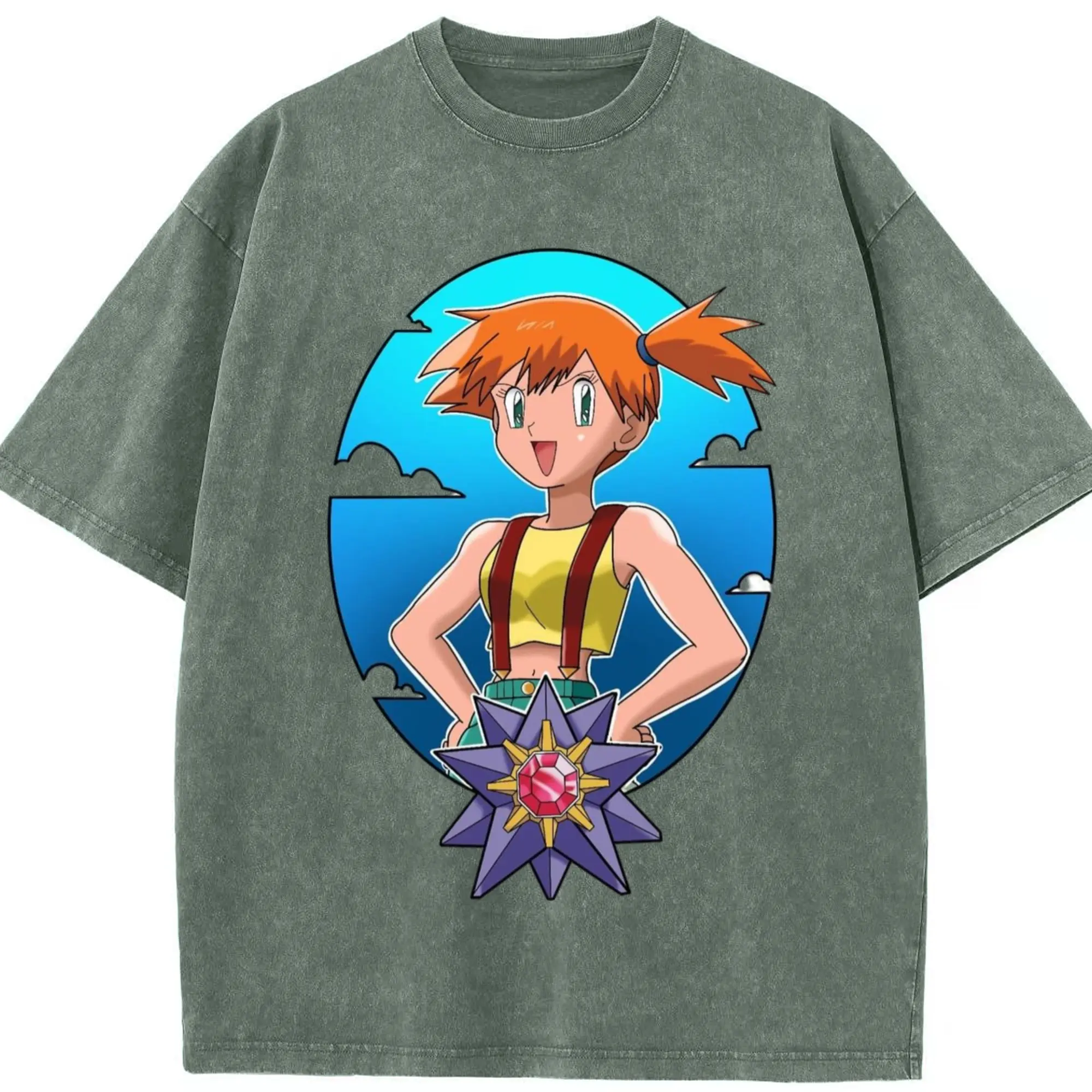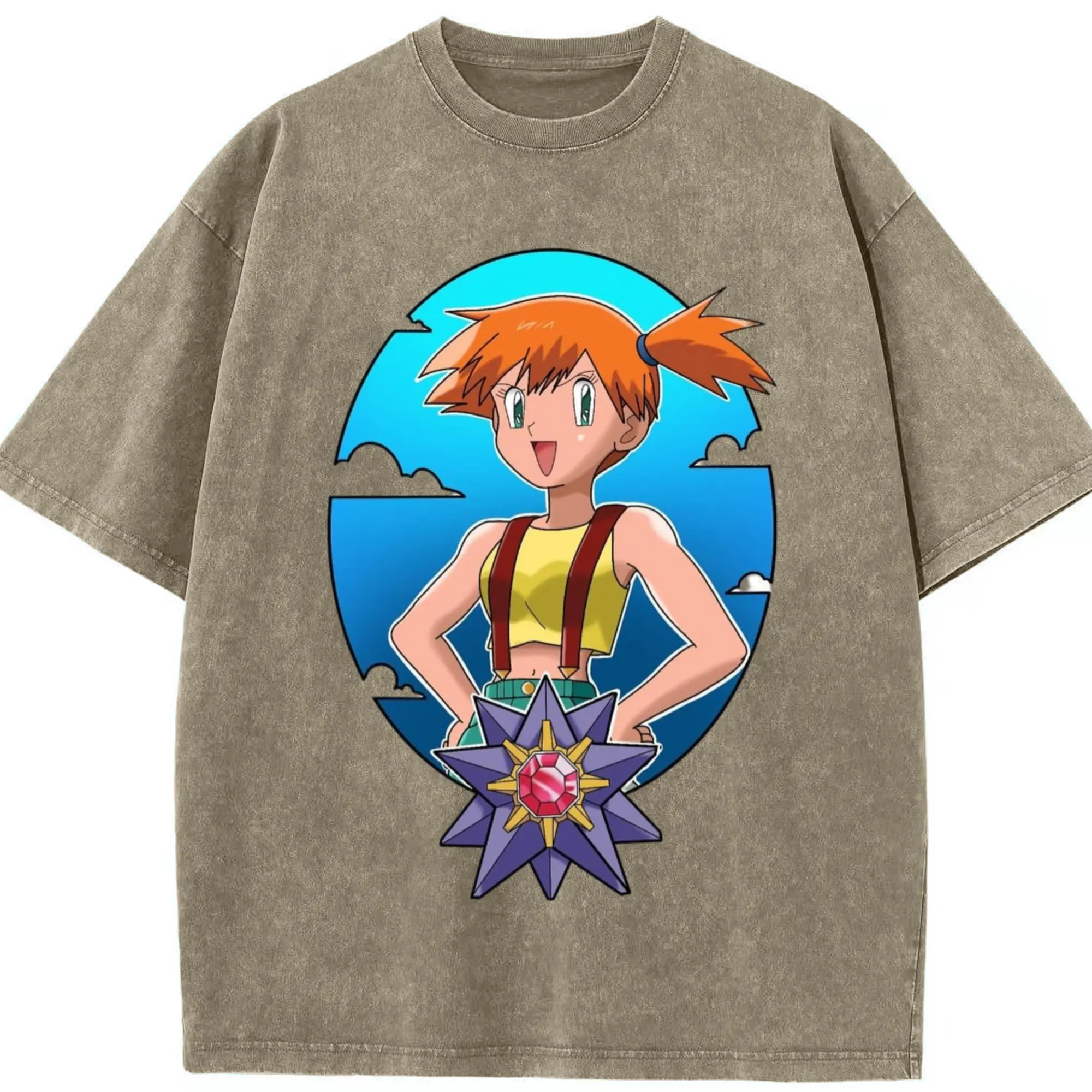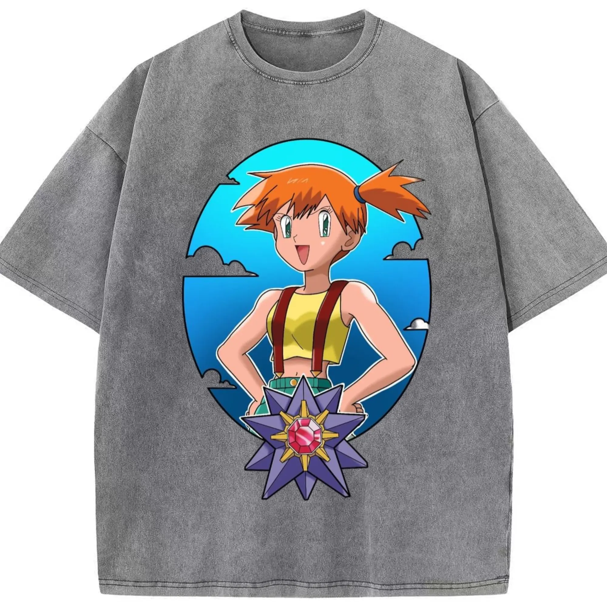 Misty pokemon graphic shirt​ - Washed Vintage Look 230g Cotton Oversized T-Shirt With Front Heat Transfer Print – Soft, Lightweight, Stylish Fit – Comfortable Casual Wear For Sports & Everyday Use