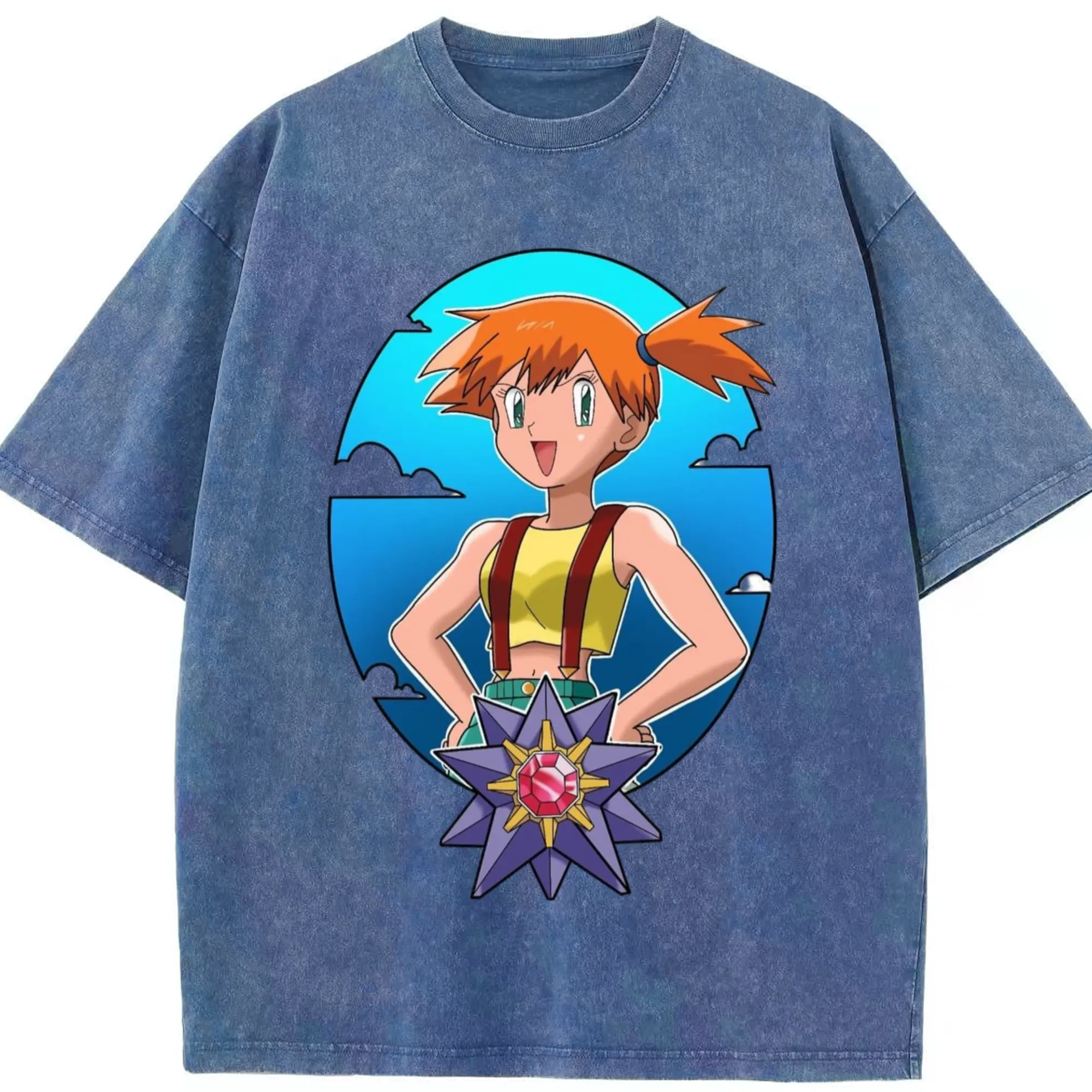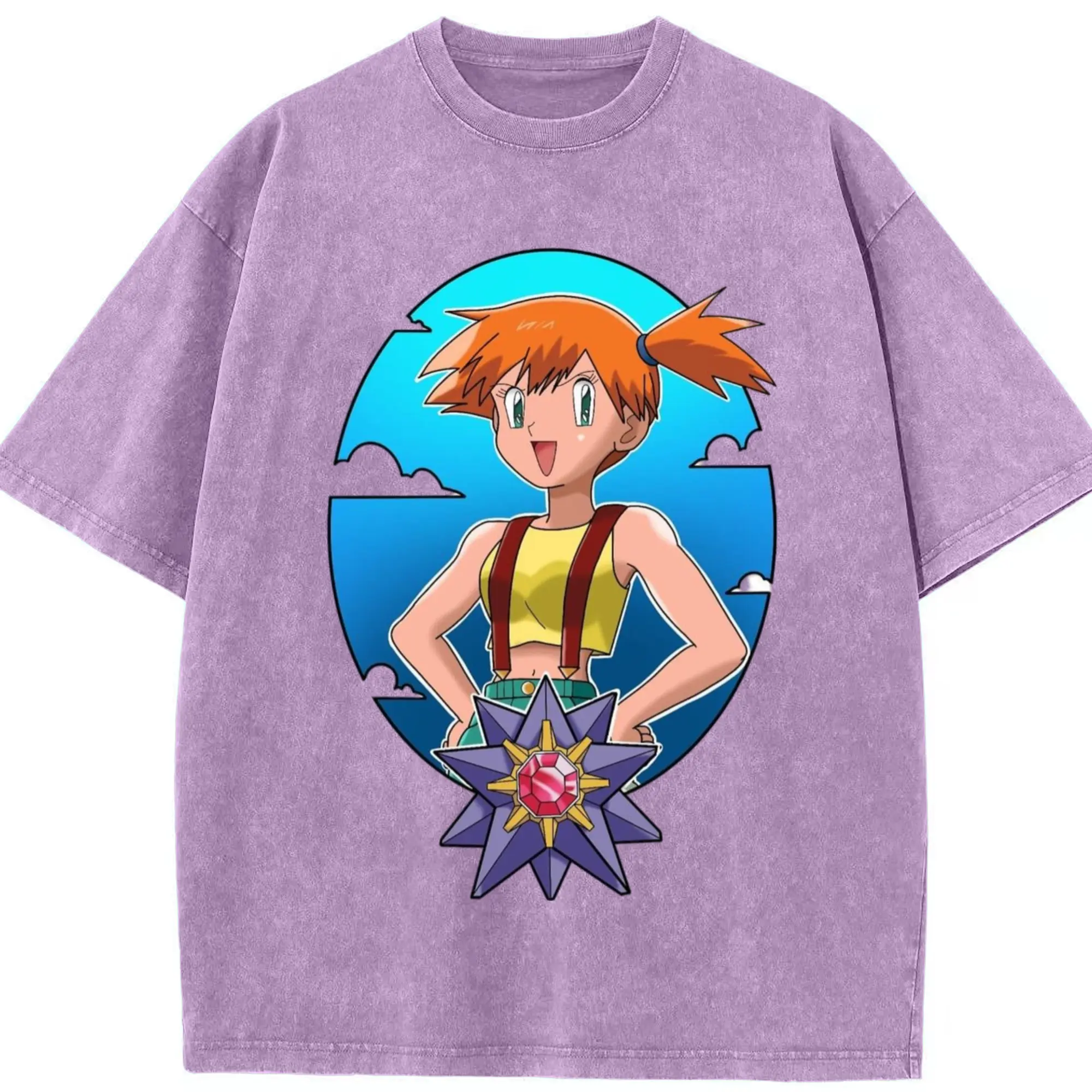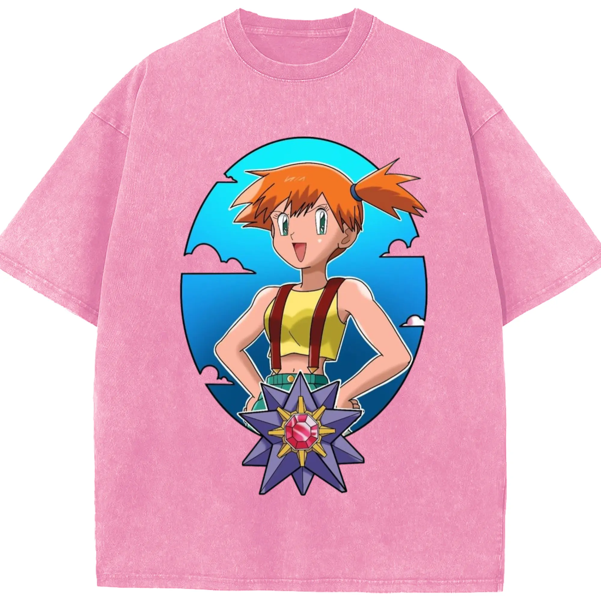 Misty pokemon graphic shirt​ - Washed Vintage Look 230g Cotton Oversized T-Shirt With Front Heat Transfer Print – Soft, Lightweight, Stylish Fit – Comfortable Casual Wear For Sports & Everyday Use