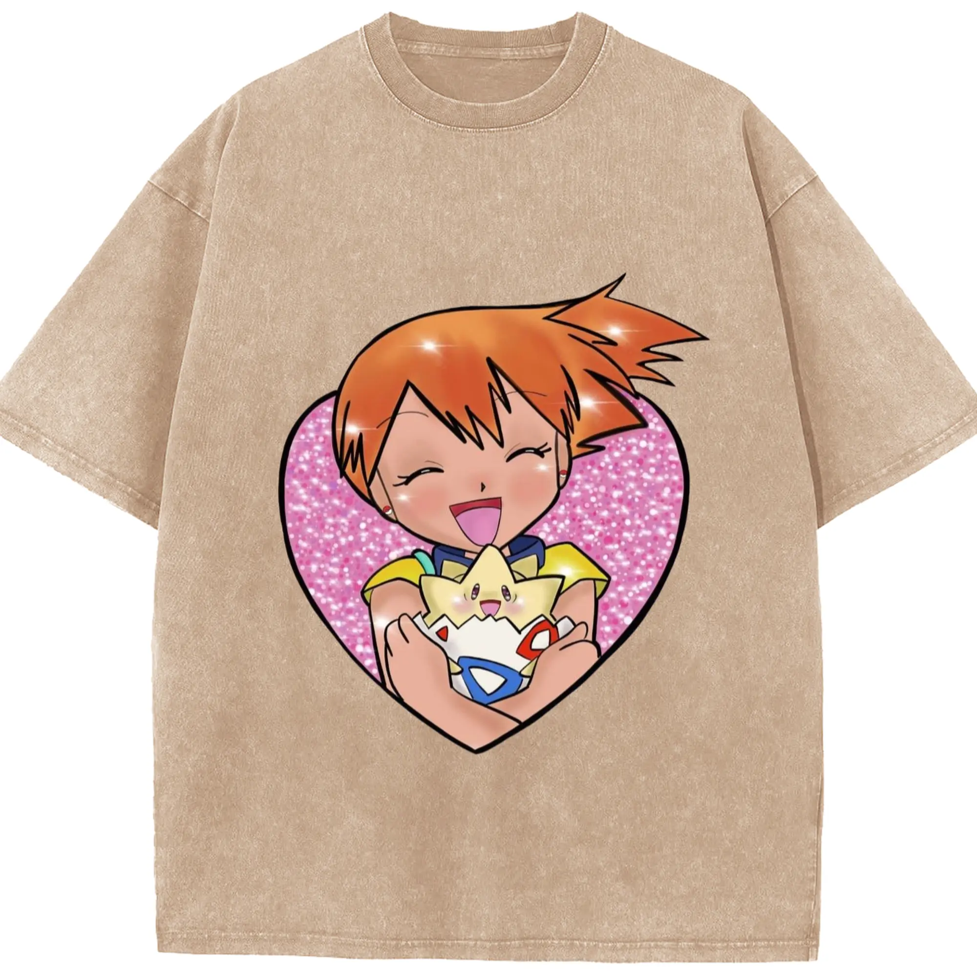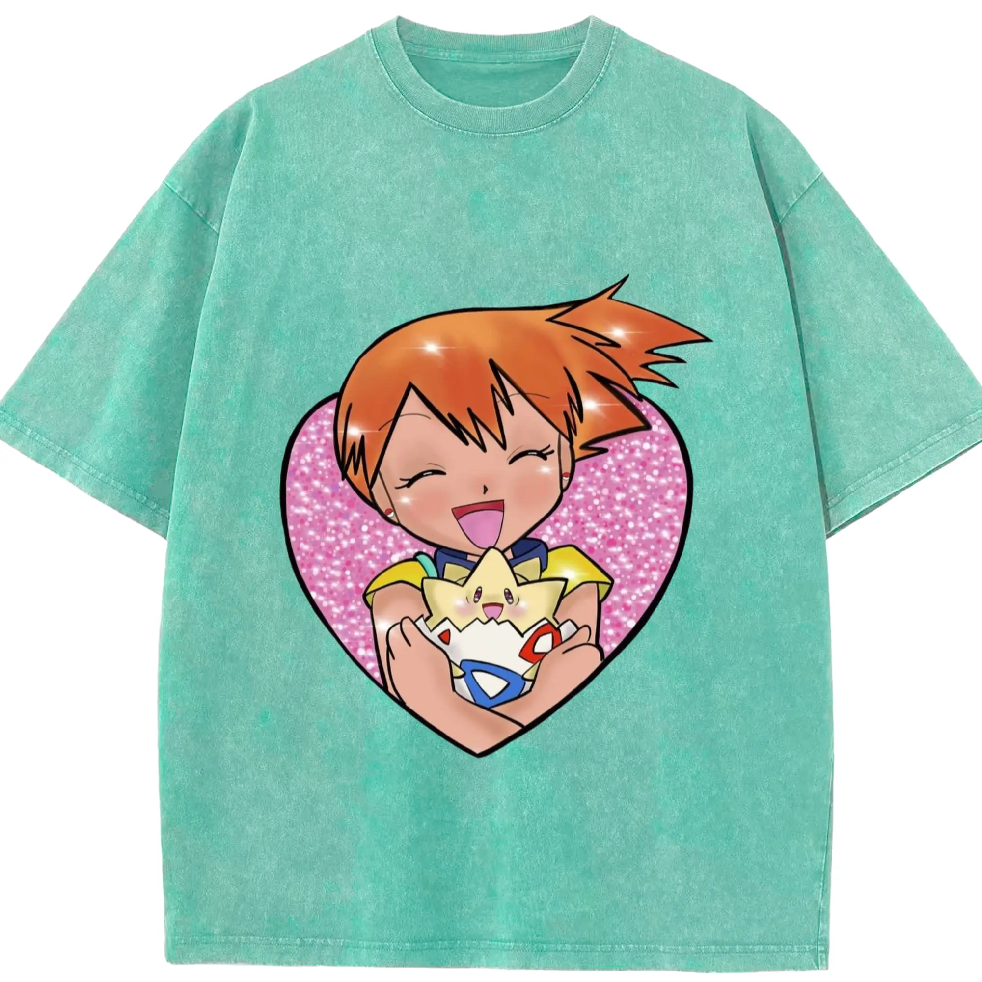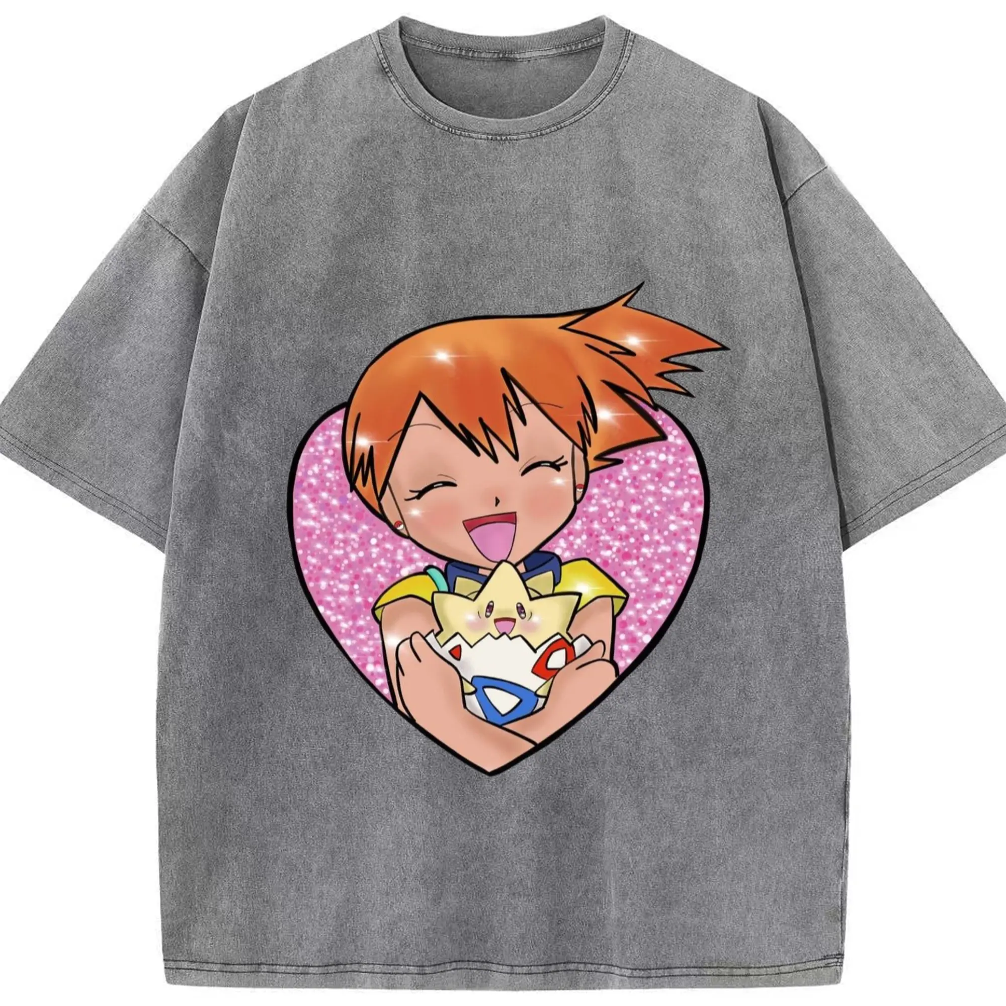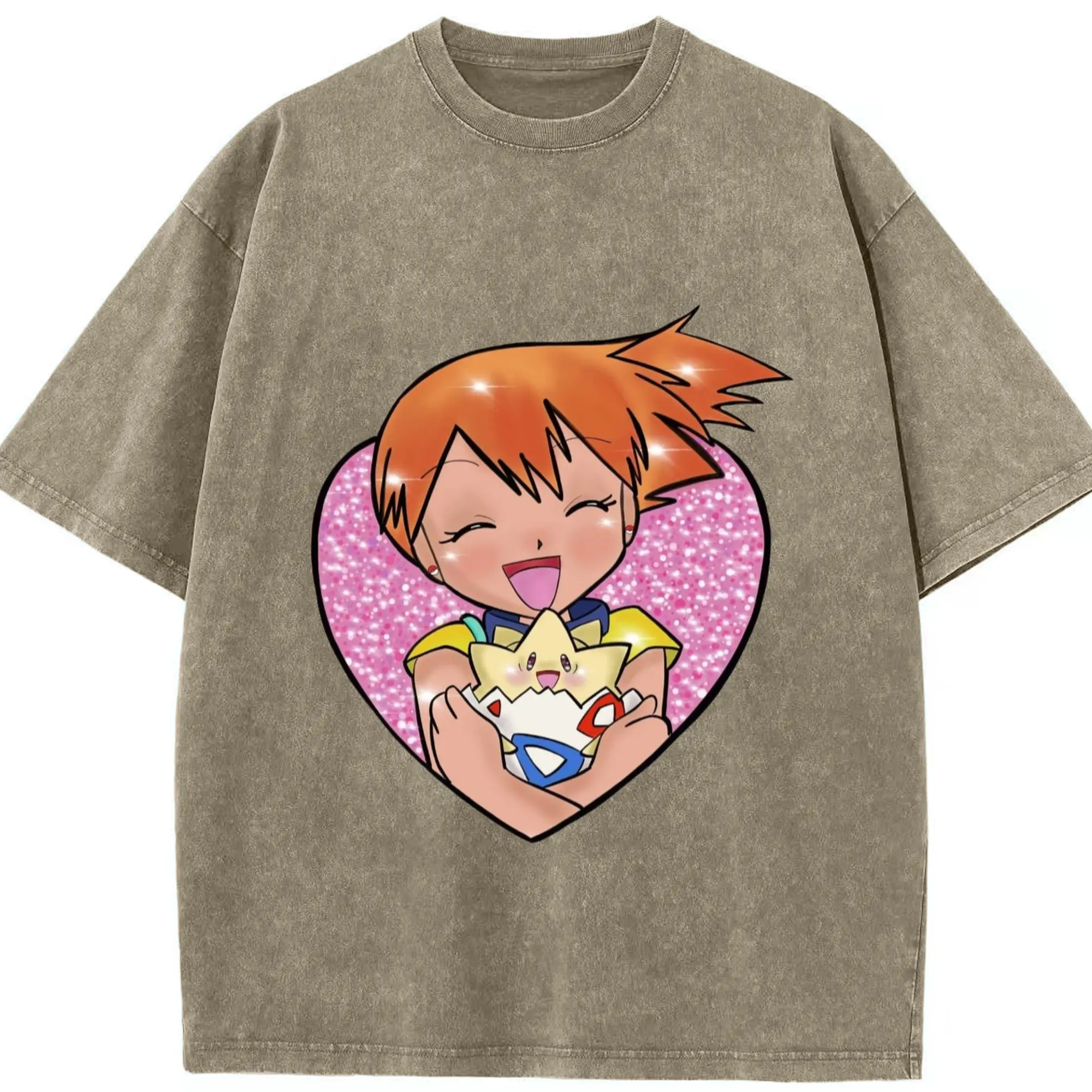 Misty Pokemon Tee - Washed Vintage Look 230g Cotton Oversized T-Shirt With Front Heat Transfer Print – Soft, Lightweight, Stylish Fit – Comfortable Casual Wear For Sports & Everyday Use
