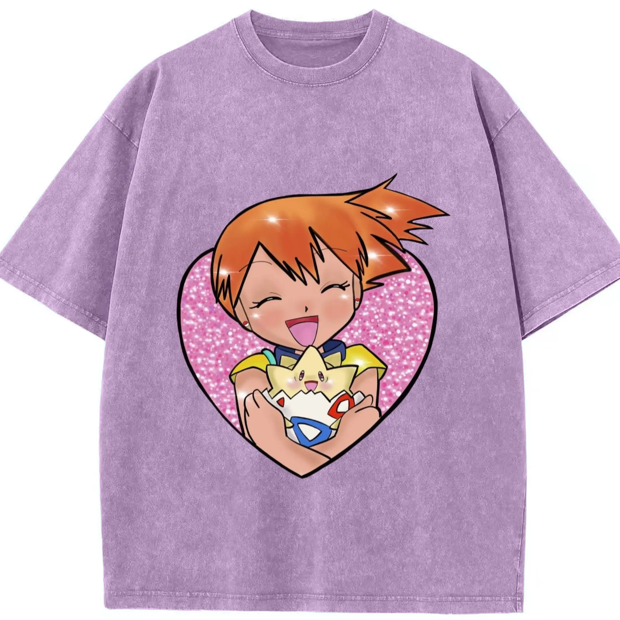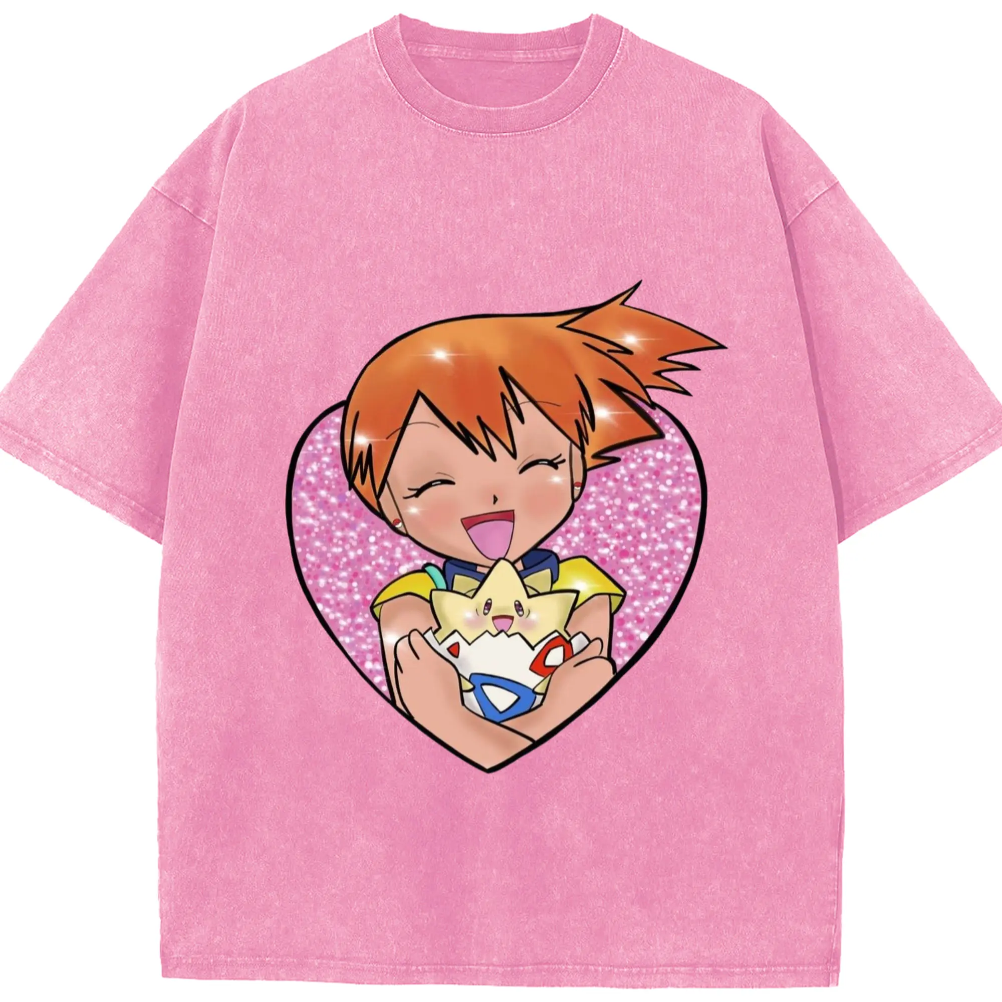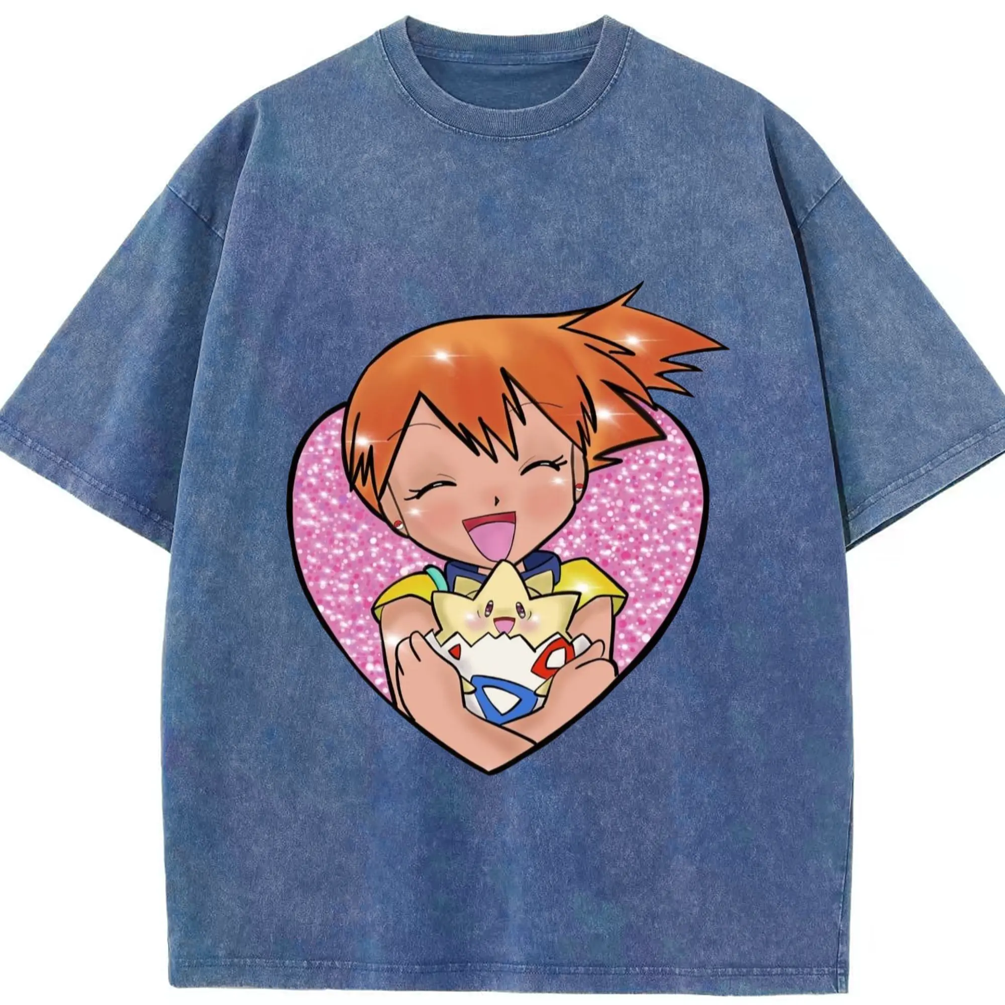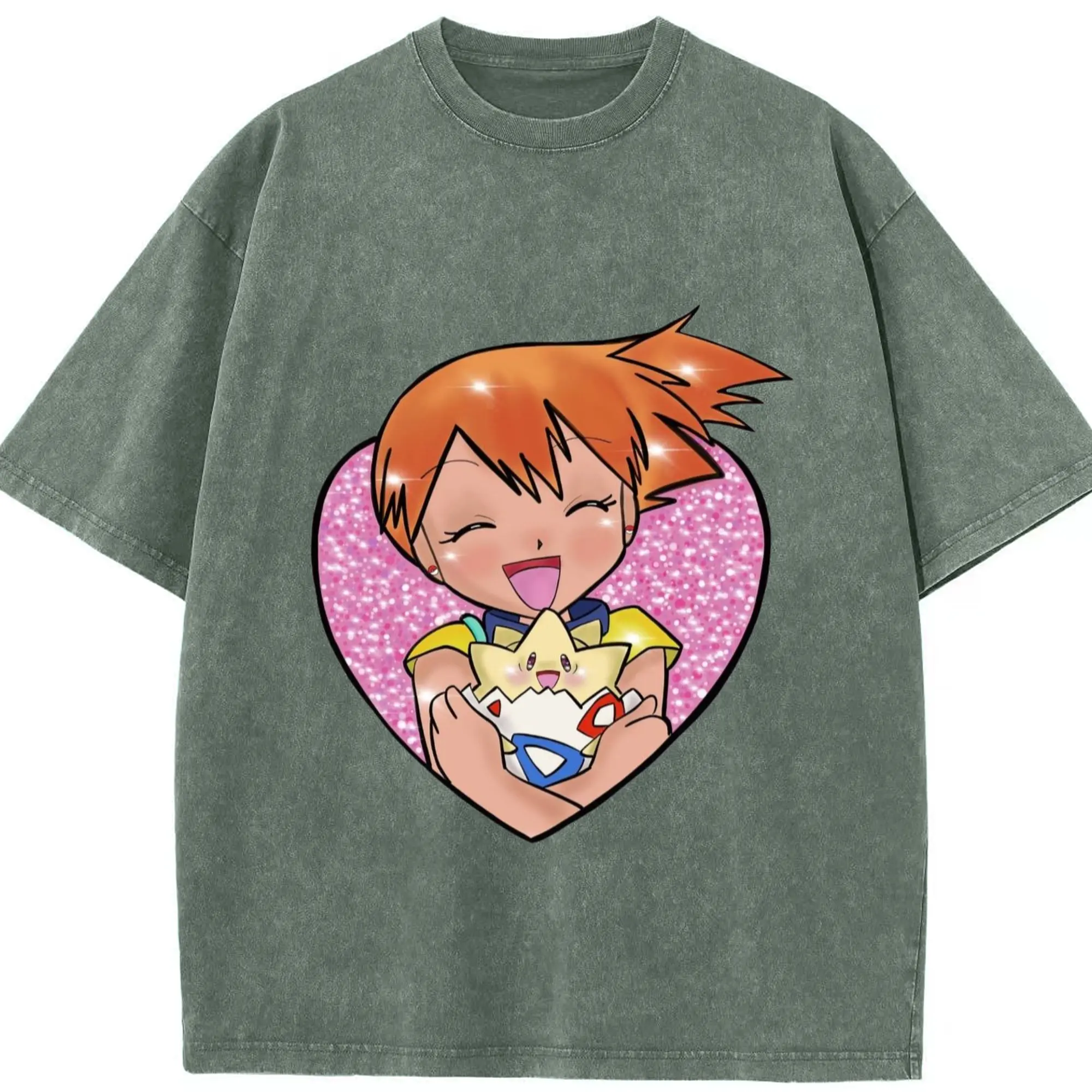 Misty Pokemon Tee - Washed Vintage Look 230g Cotton Oversized T-Shirt With Front Heat Transfer Print – Soft, Lightweight, Stylish Fit – Comfortable Casual Wear For Sports & Everyday Use