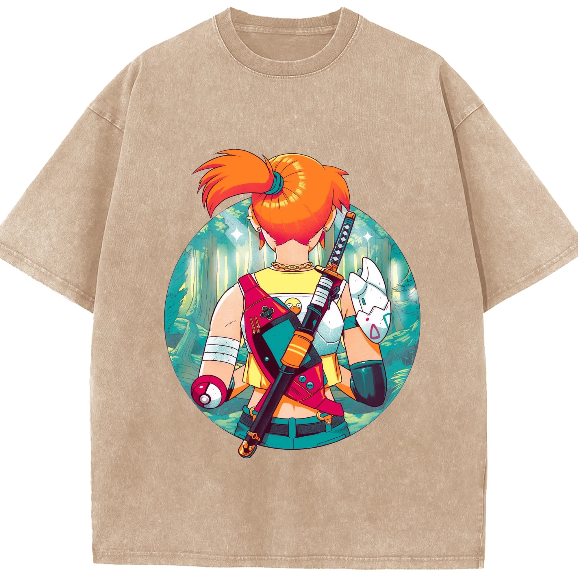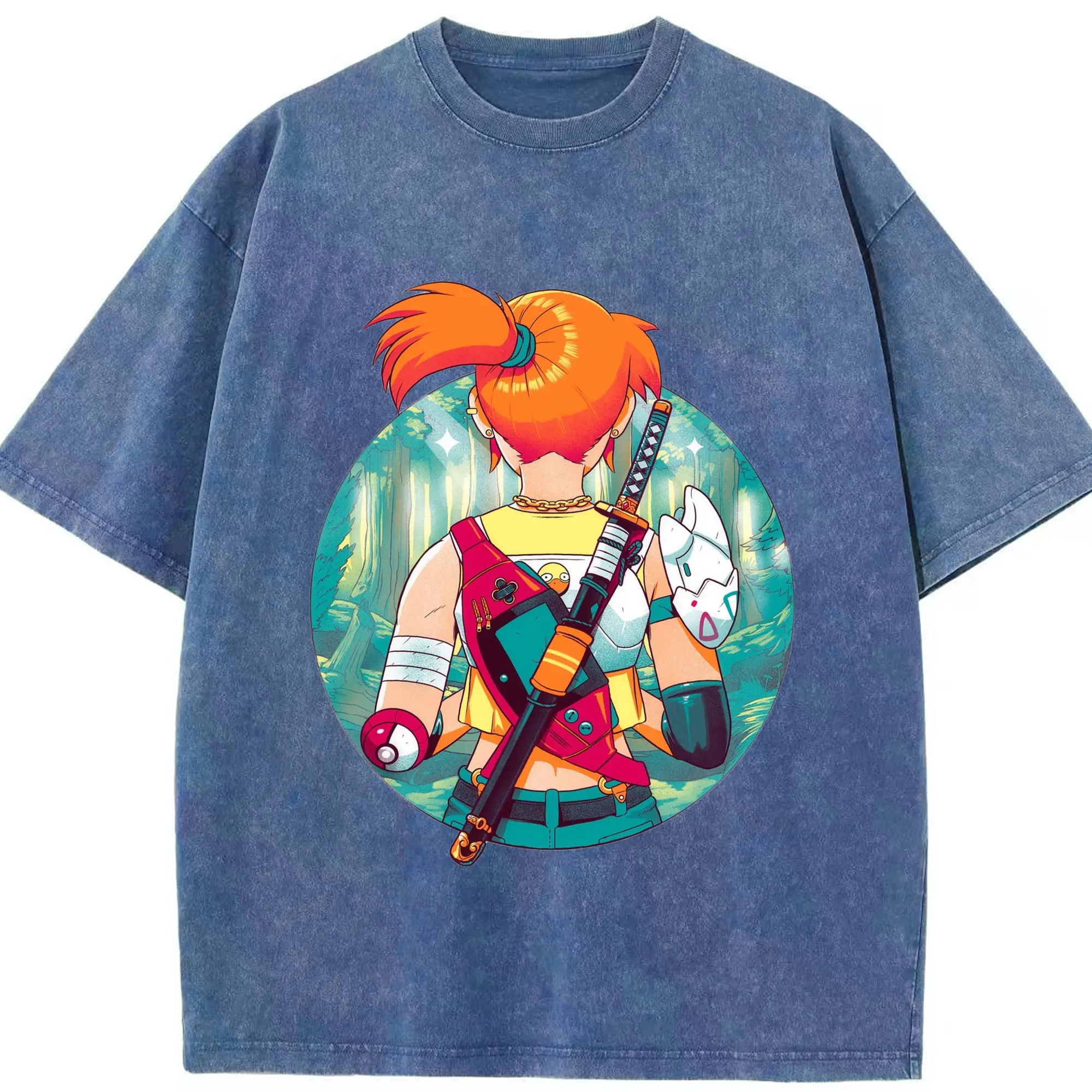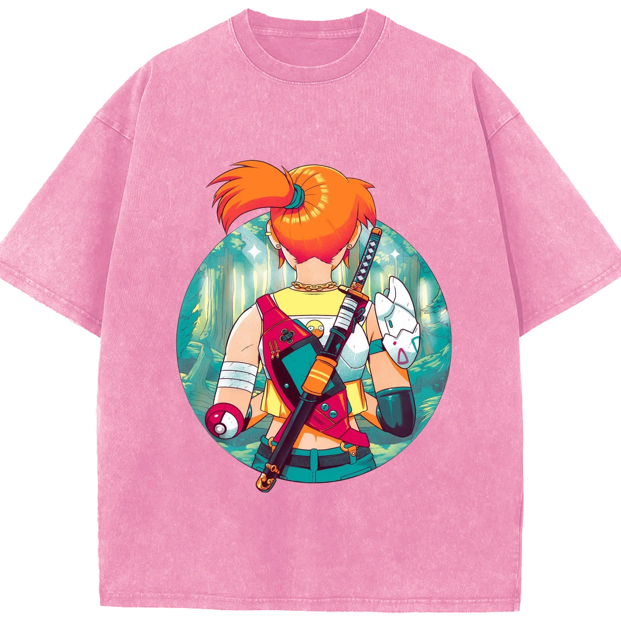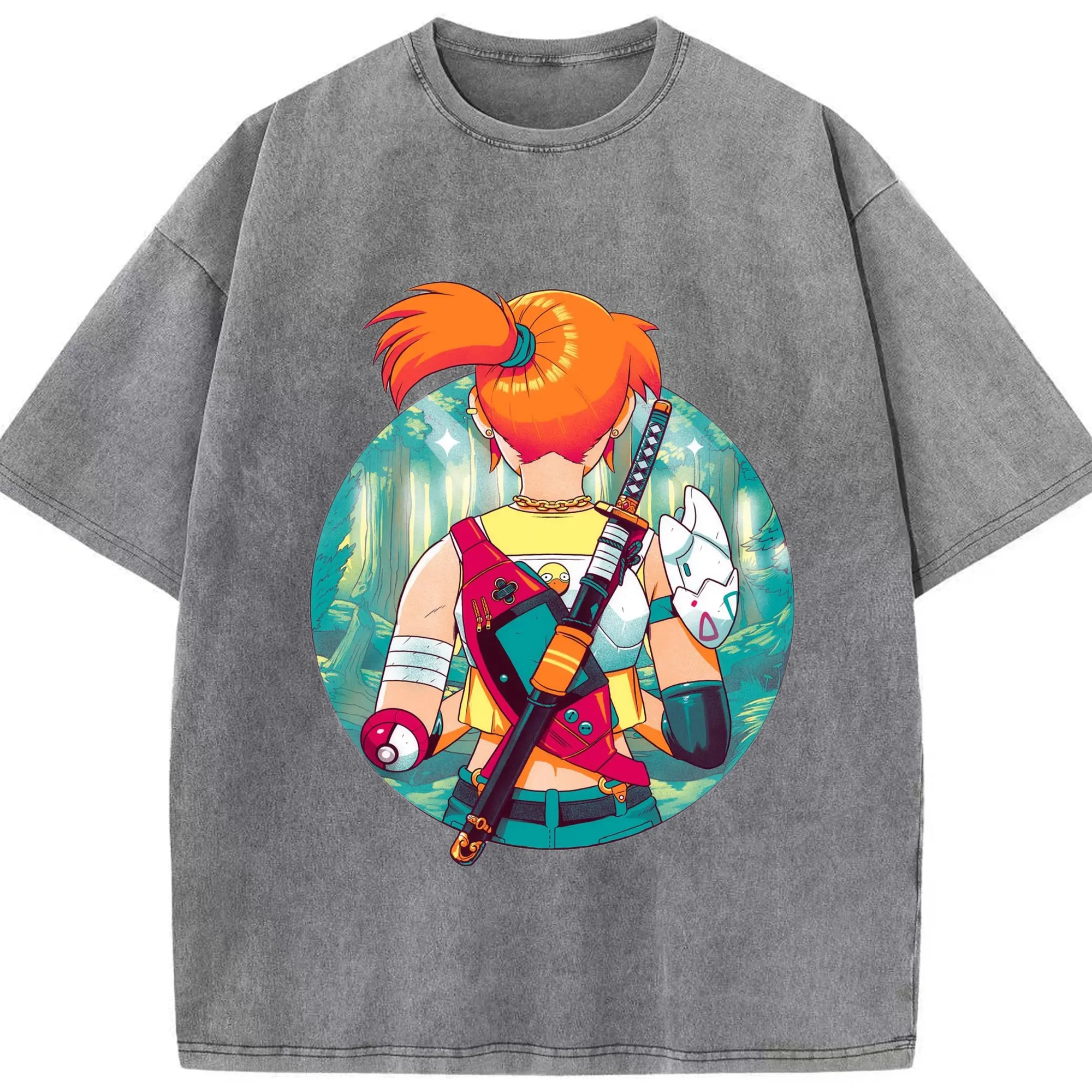 Misty Pokemon T-Shirts - Washed Vintage Look 230g Cotton Oversized T-Shirt With Front Heat Transfer Print – Soft, Lightweight, Stylish Fit – Comfortable Casual Wear For Sports & Everyday Use
