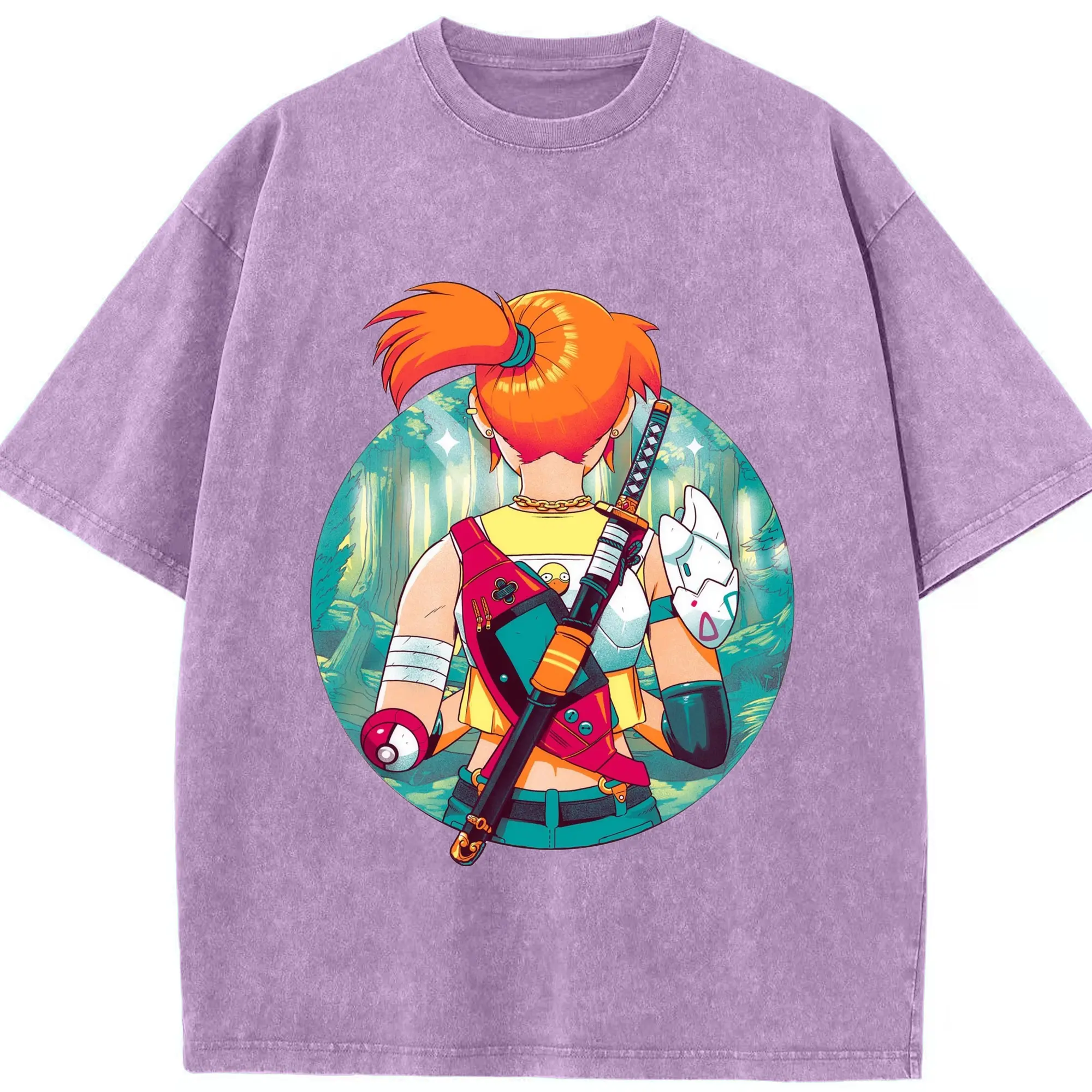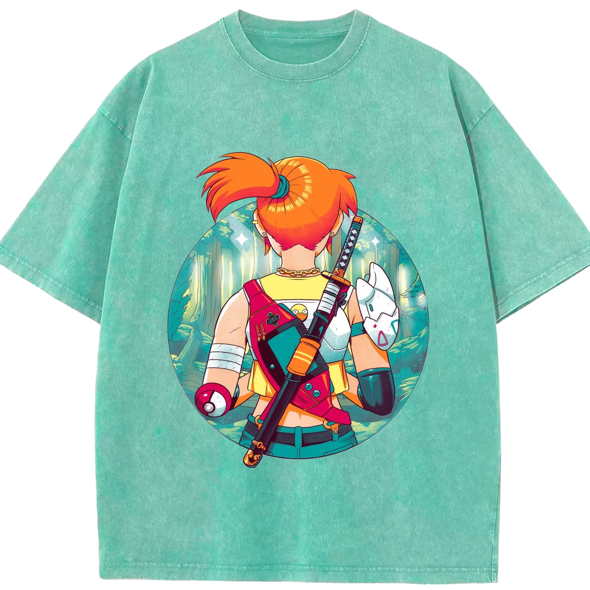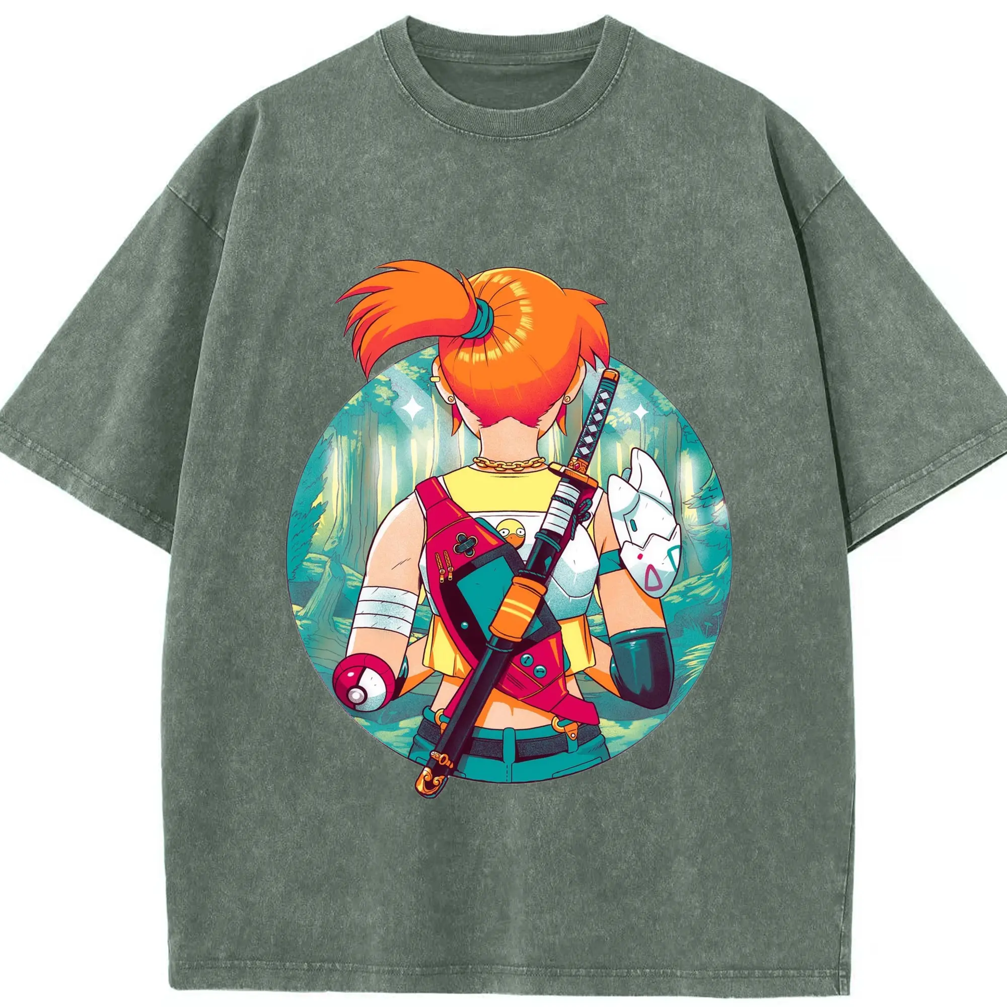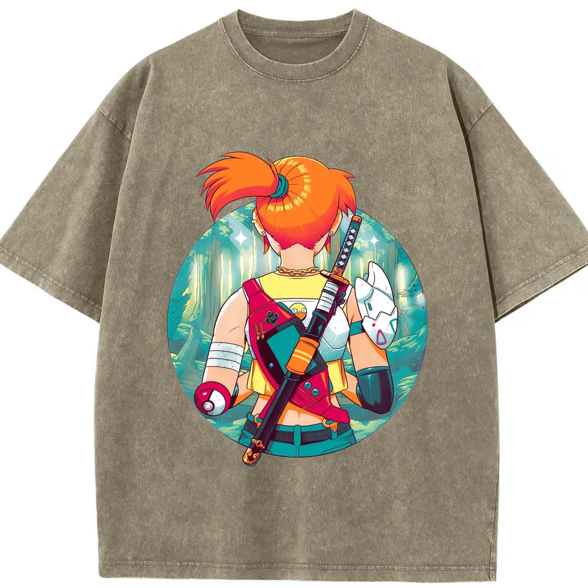 Misty Pokemon T-Shirts - Washed Vintage Look 230g Cotton Oversized T-Shirt With Front Heat Transfer Print – Soft, Lightweight, Stylish Fit – Comfortable Casual Wear For Sports & Everyday Use