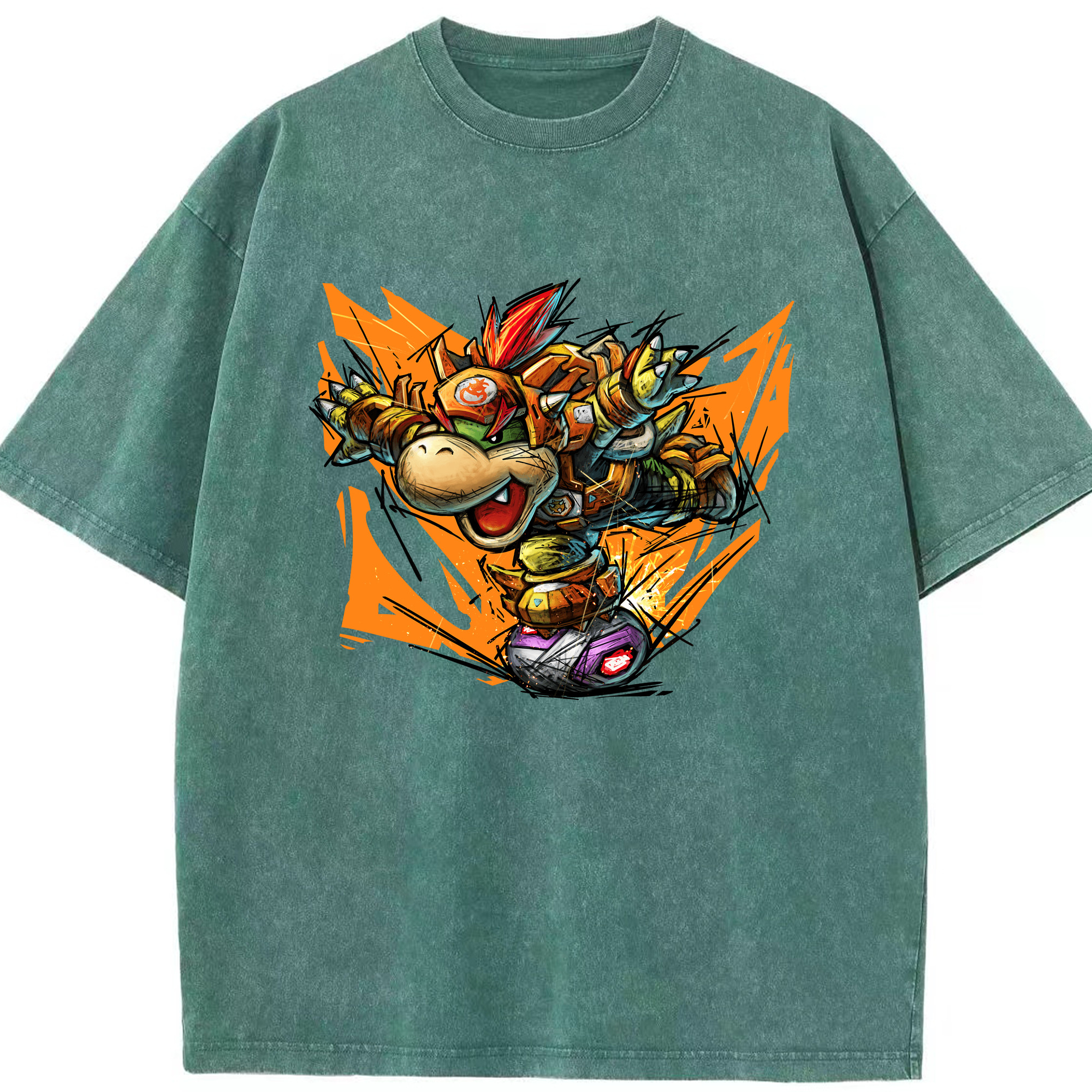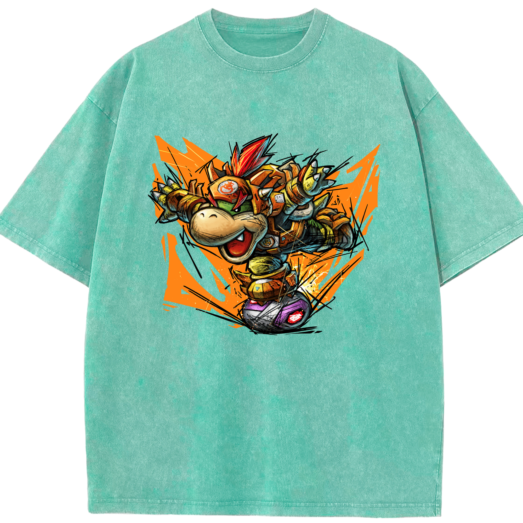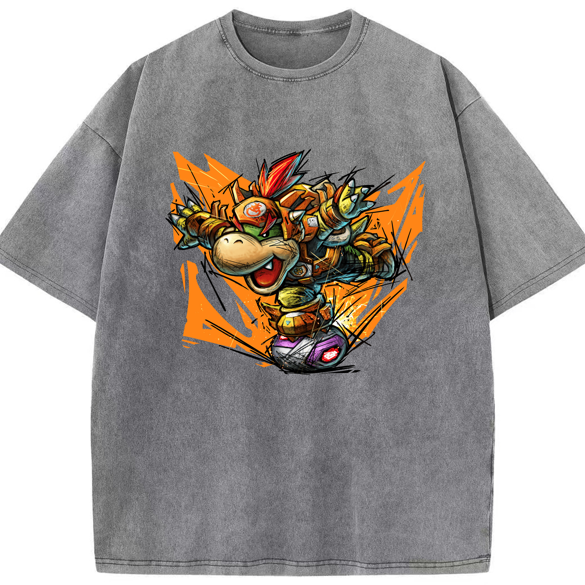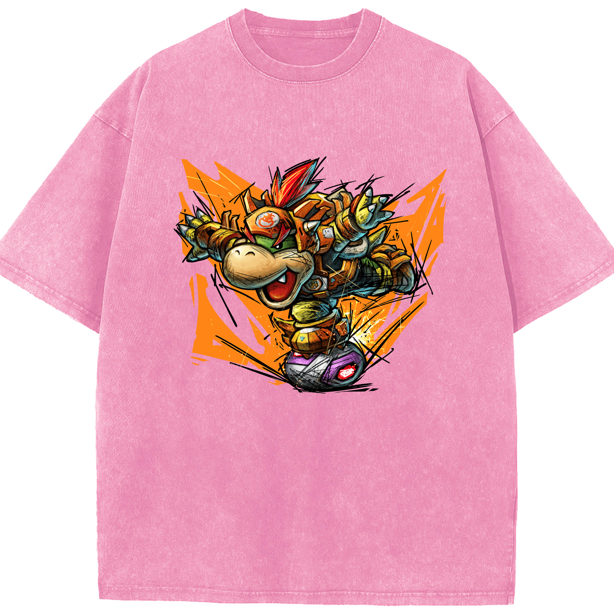 Nintendo Bowser Jr. 'shoot'Painted styleTee - Washed Vintage Look 230g Cotton Oversized T-Shirt With Front Heat Transfer Print – Soft, Lightweight, Stylish Fit – Comfortable Casual Wear For Sports & Everyday Use