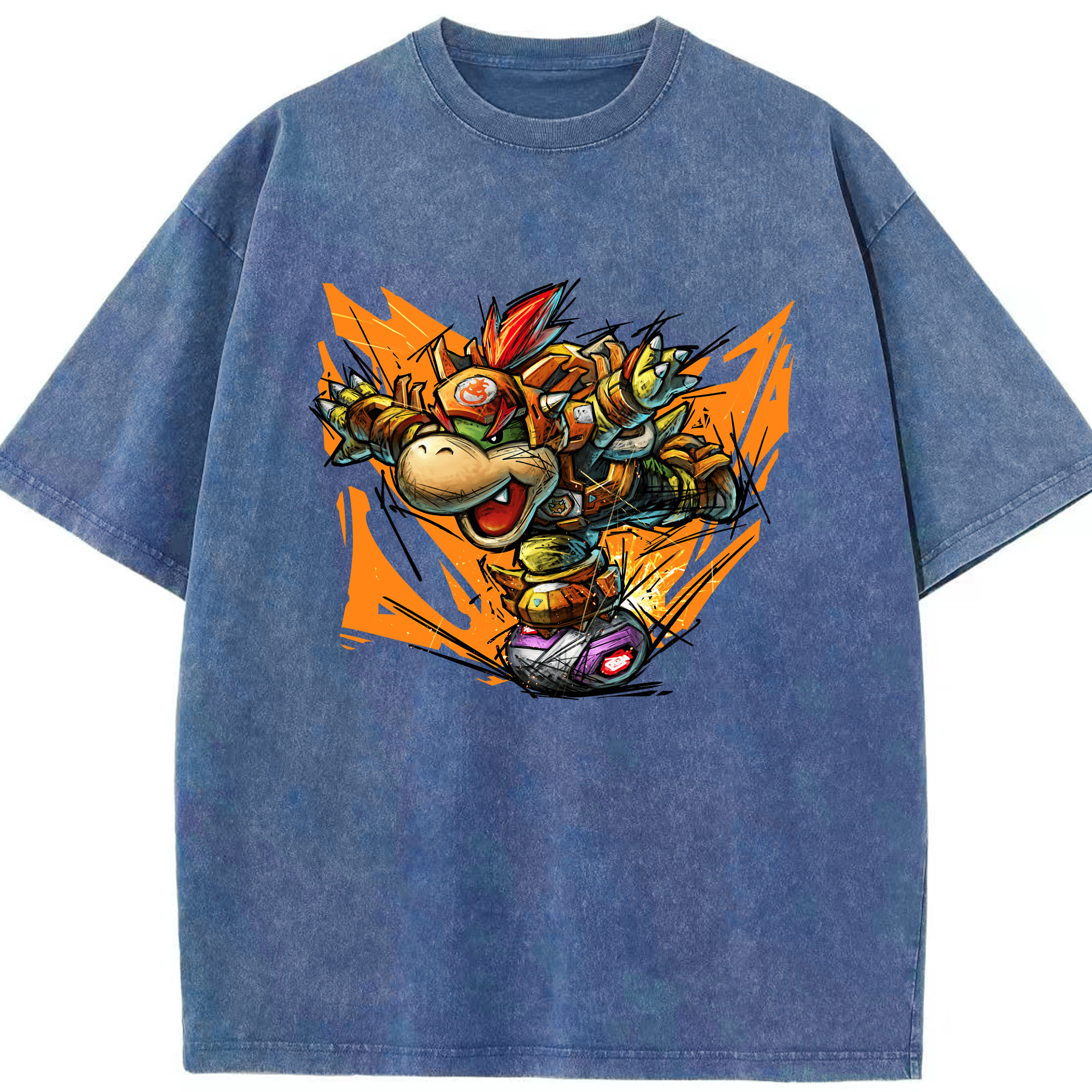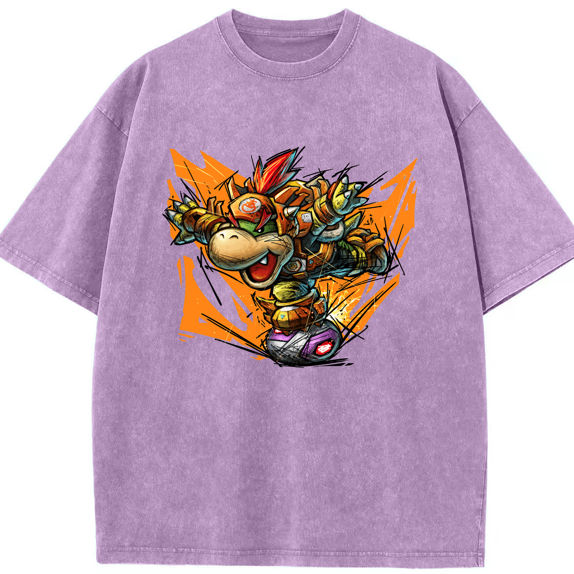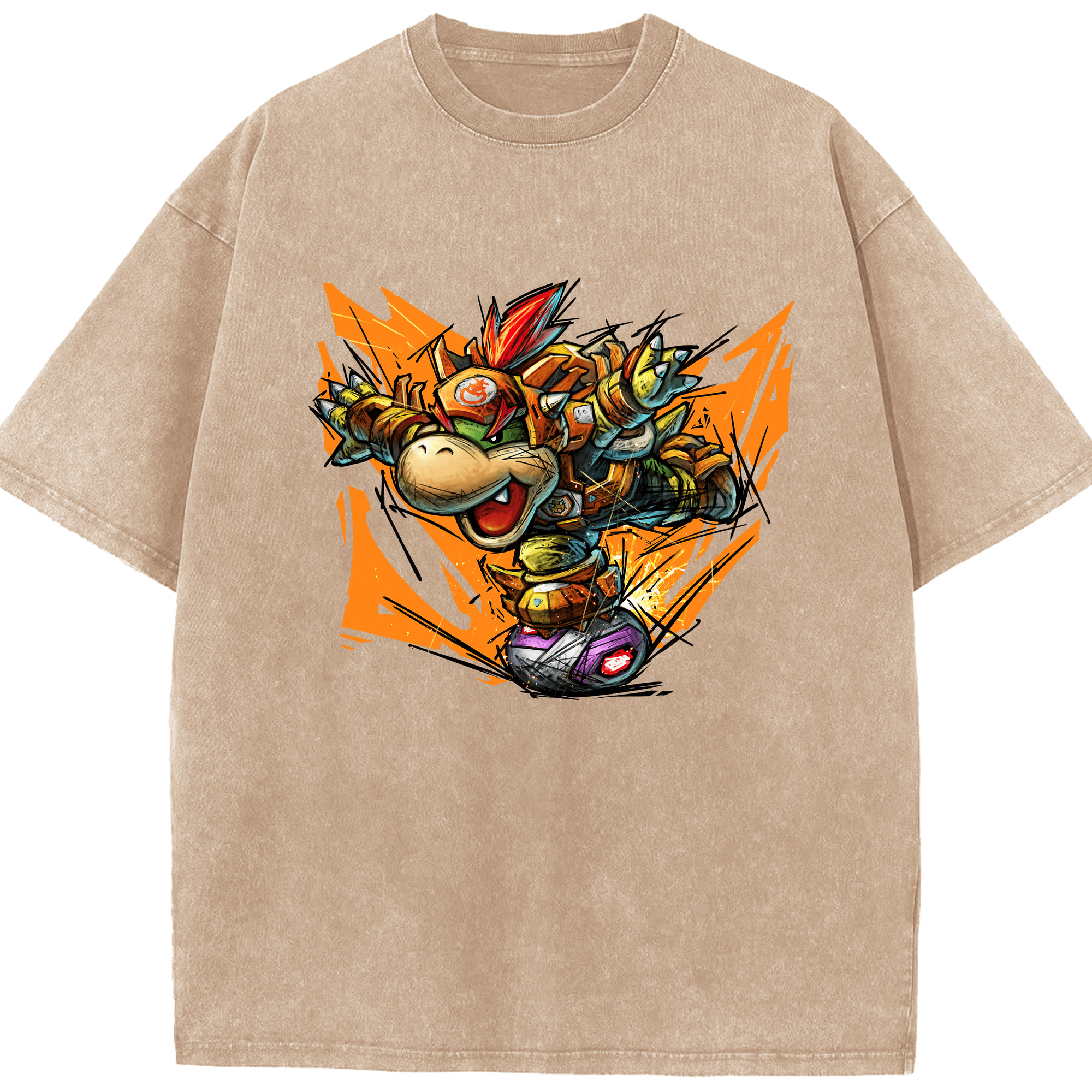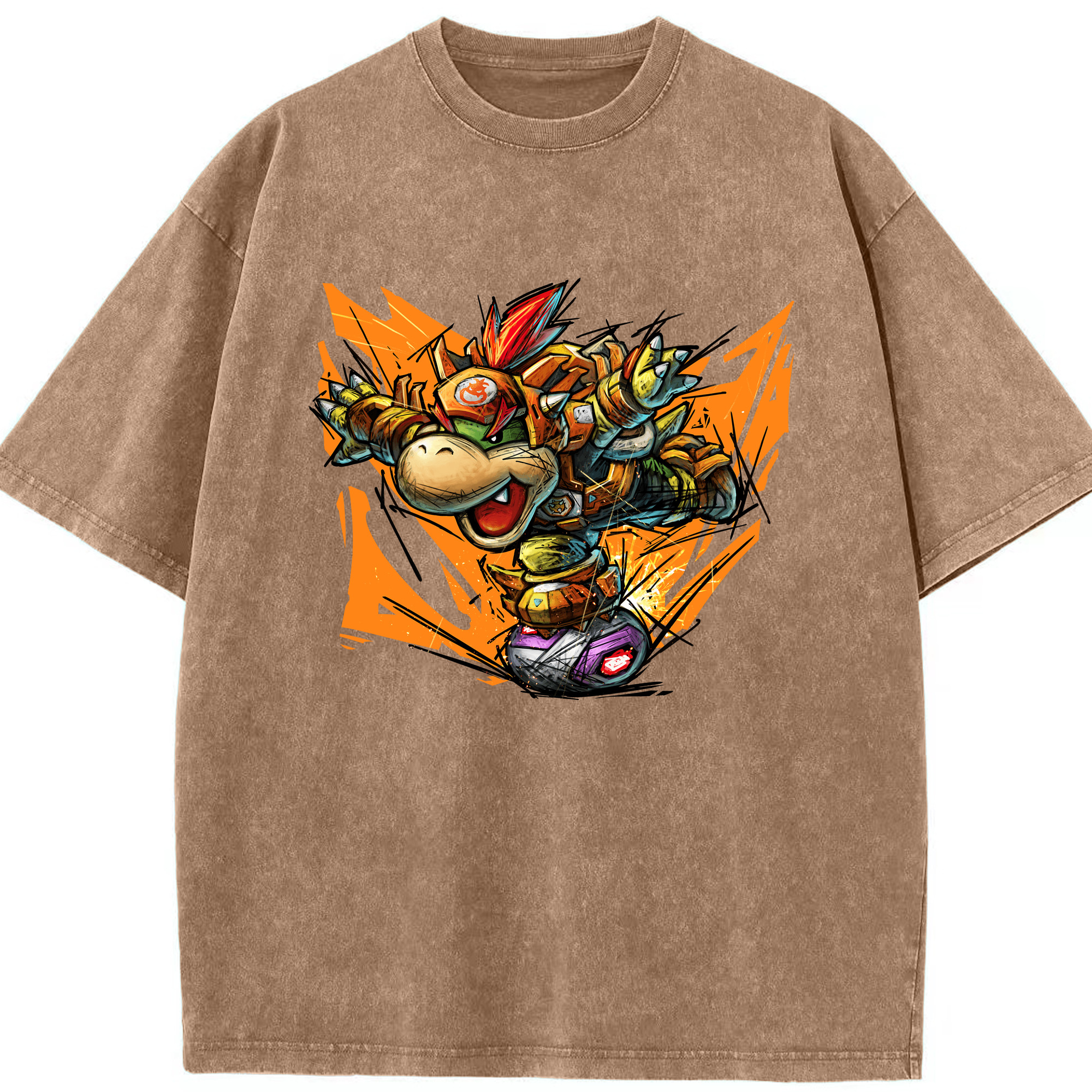 Nintendo Bowser Jr. 'shoot'Painted styleTee - Washed Vintage Look 230g Cotton Oversized T-Shirt With Front Heat Transfer Print – Soft, Lightweight, Stylish Fit – Comfortable Casual Wear For Sports & Everyday Use