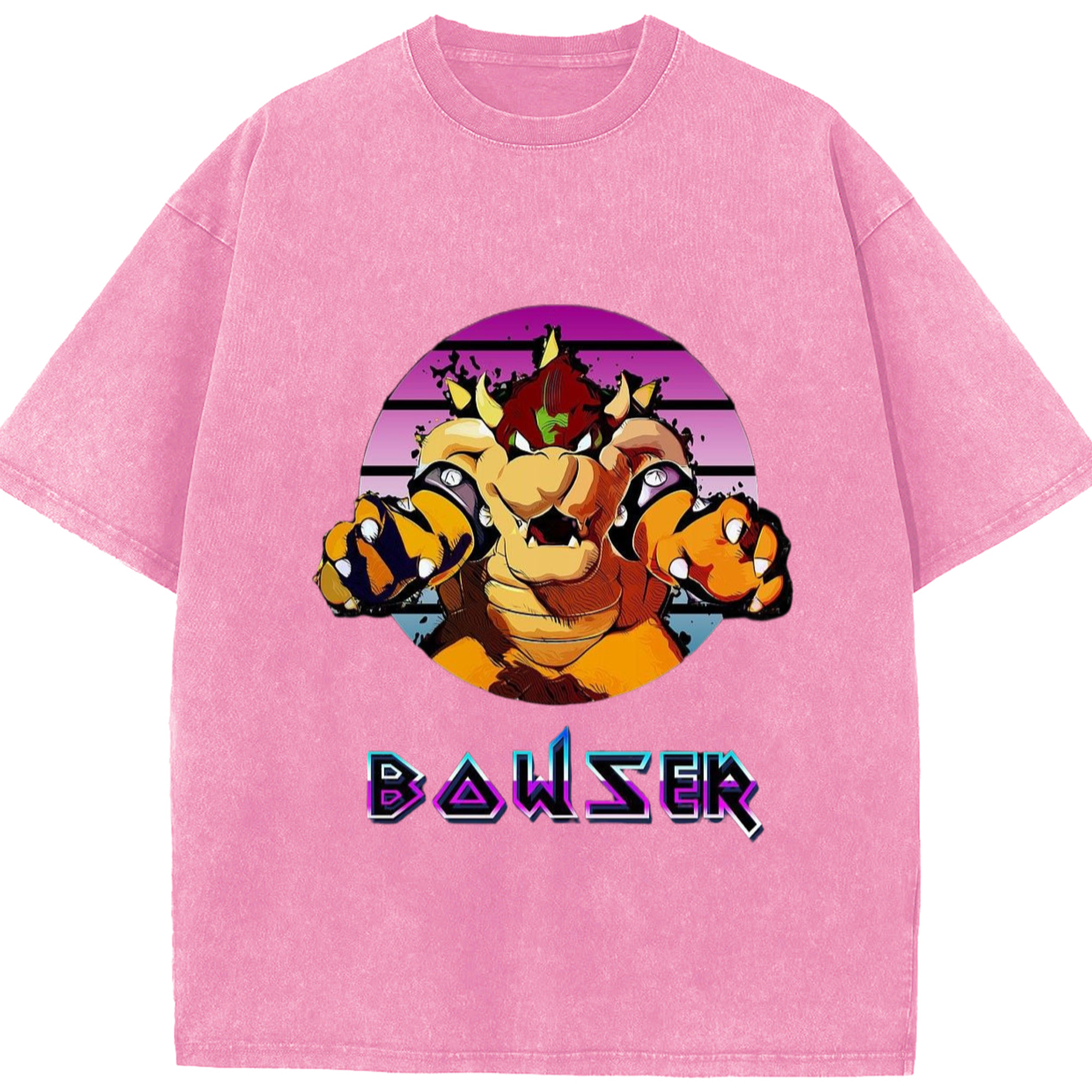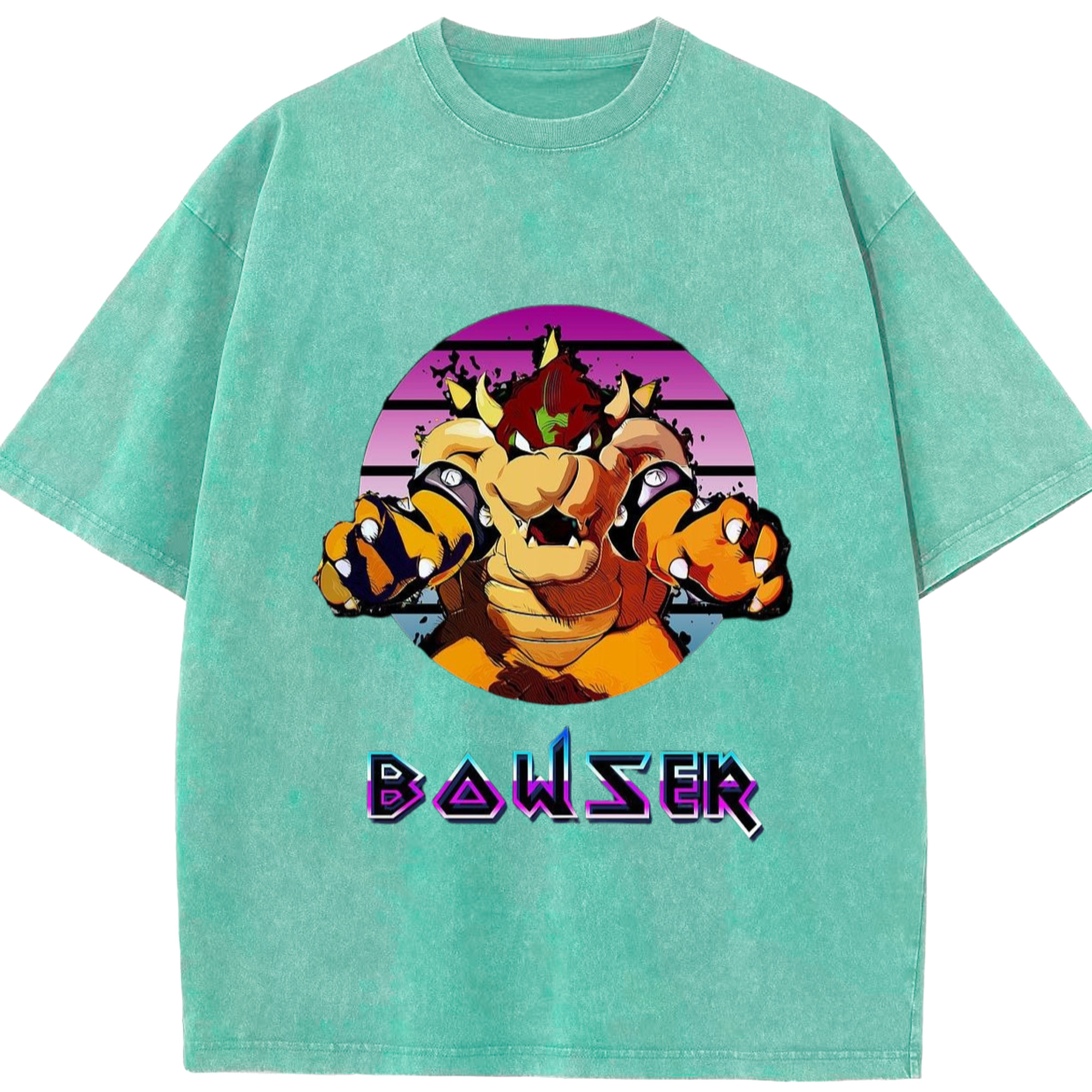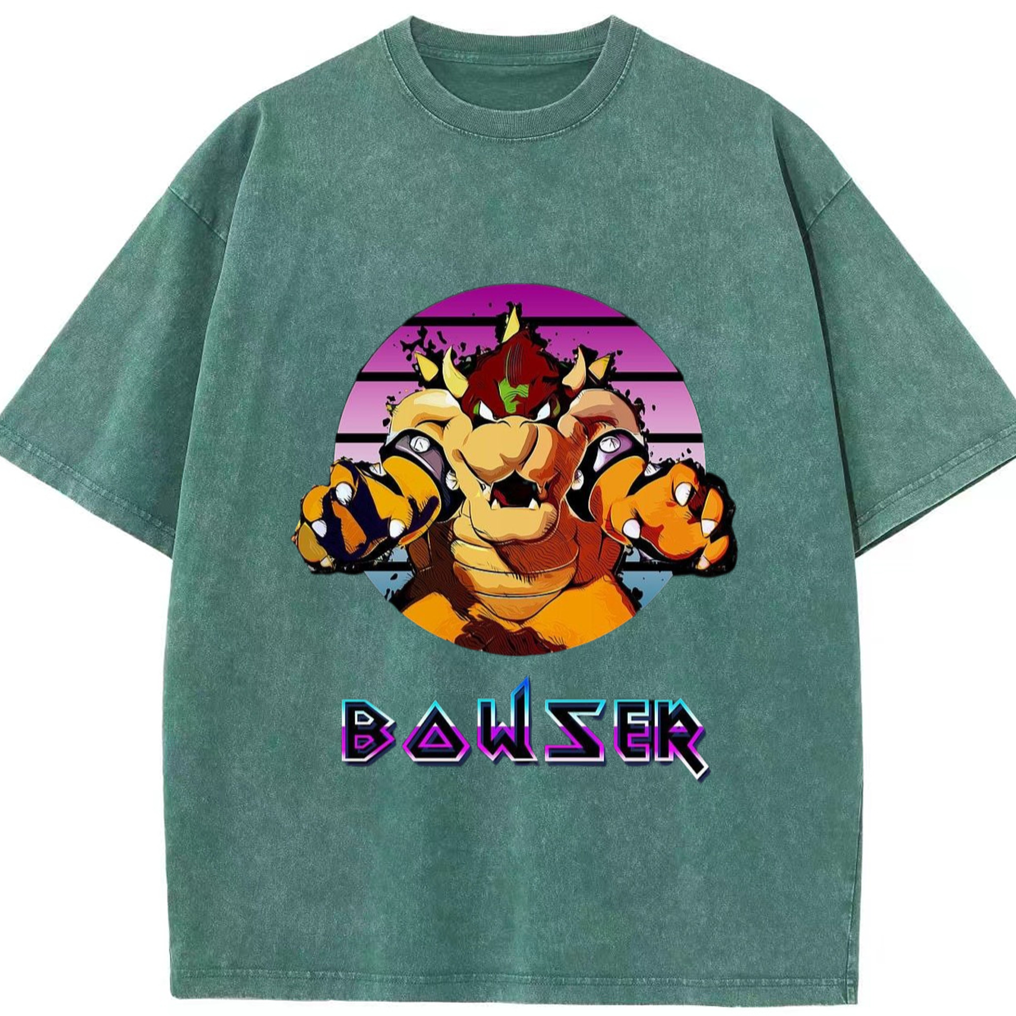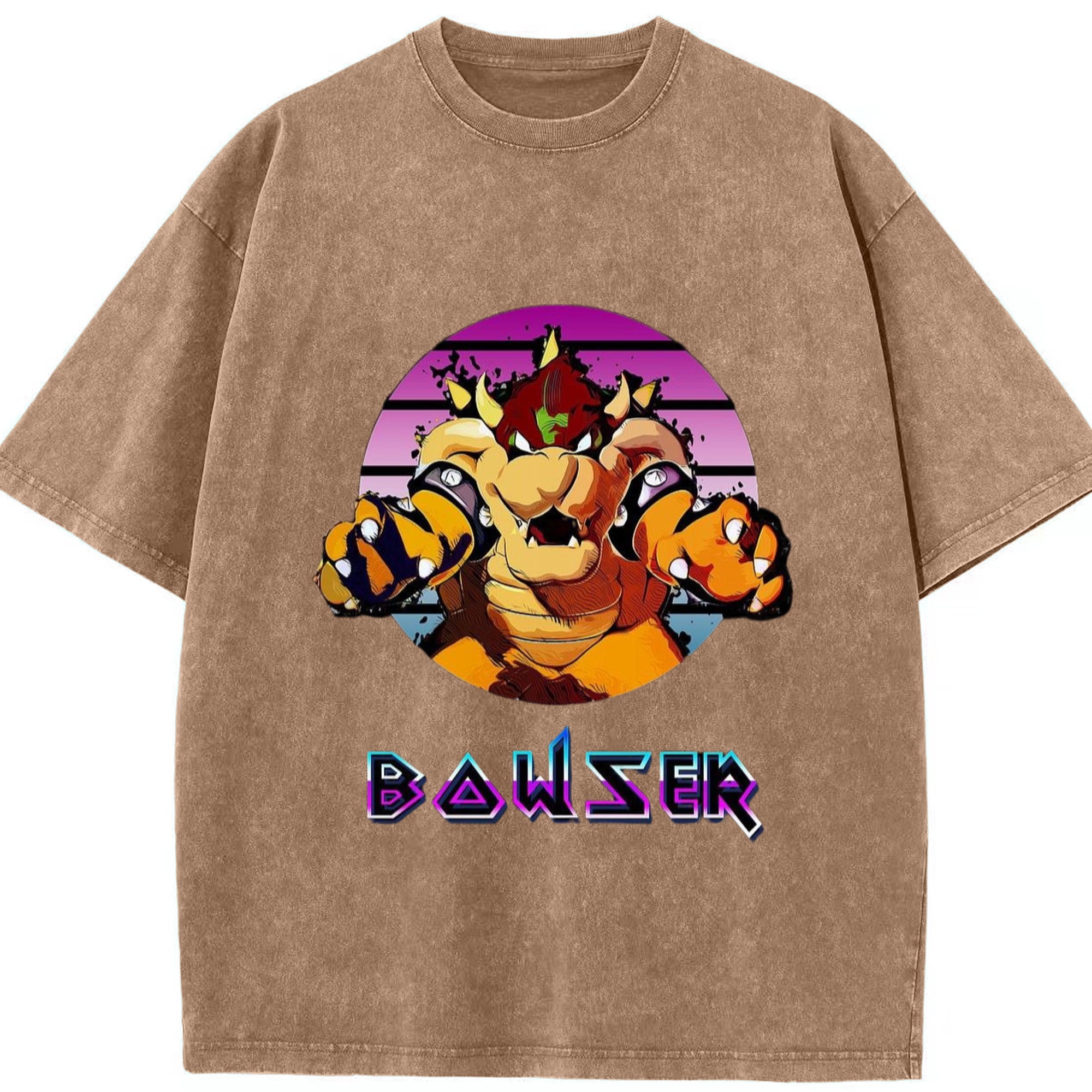 Nintendo Bowser king Painted style Tee - Washed Vintage Look 230g Cotton Oversized T-Shirt With Front Heat Transfer Print – Soft, Lightweight, Stylish Fit – Comfortable Casual Wear For Sports & Everyday Use