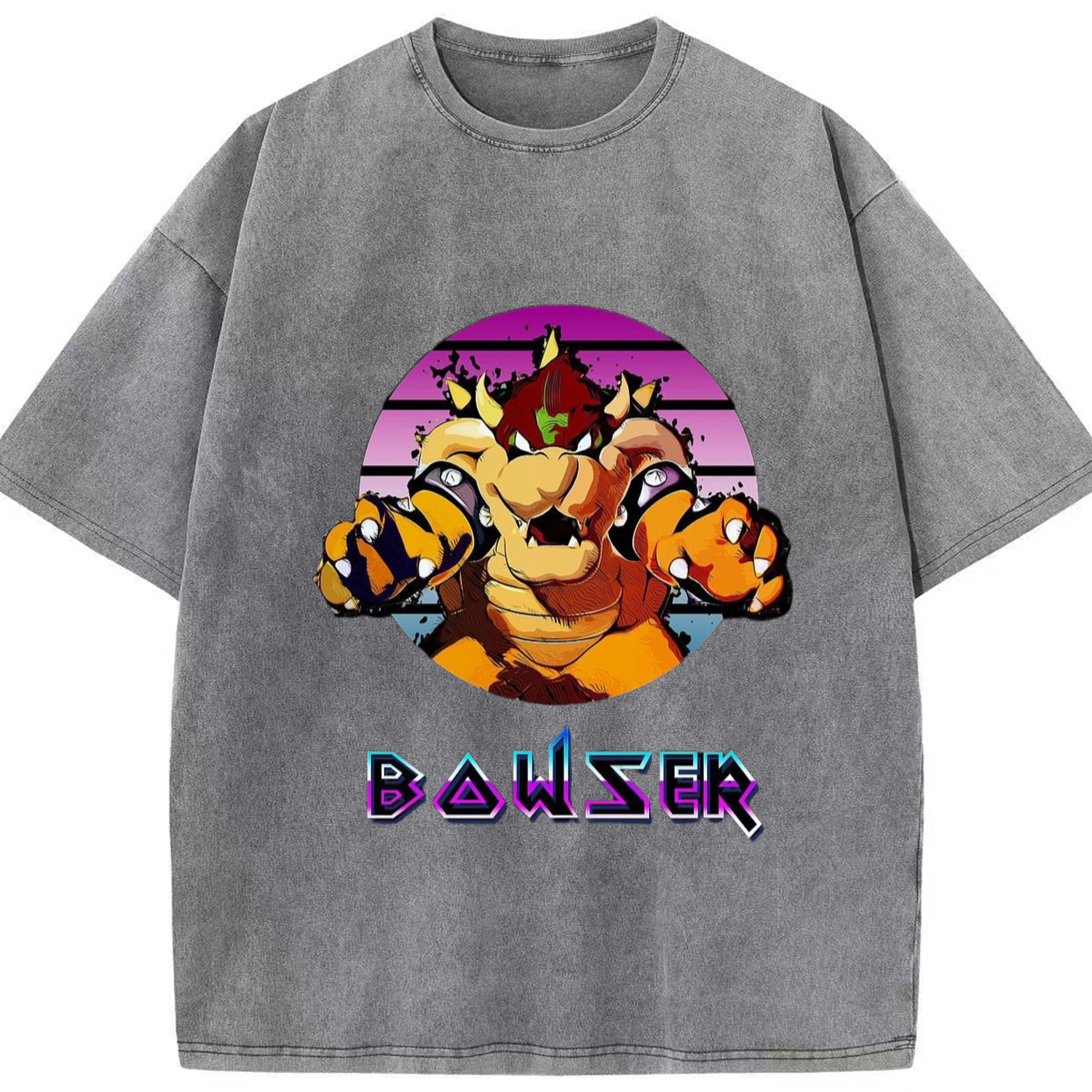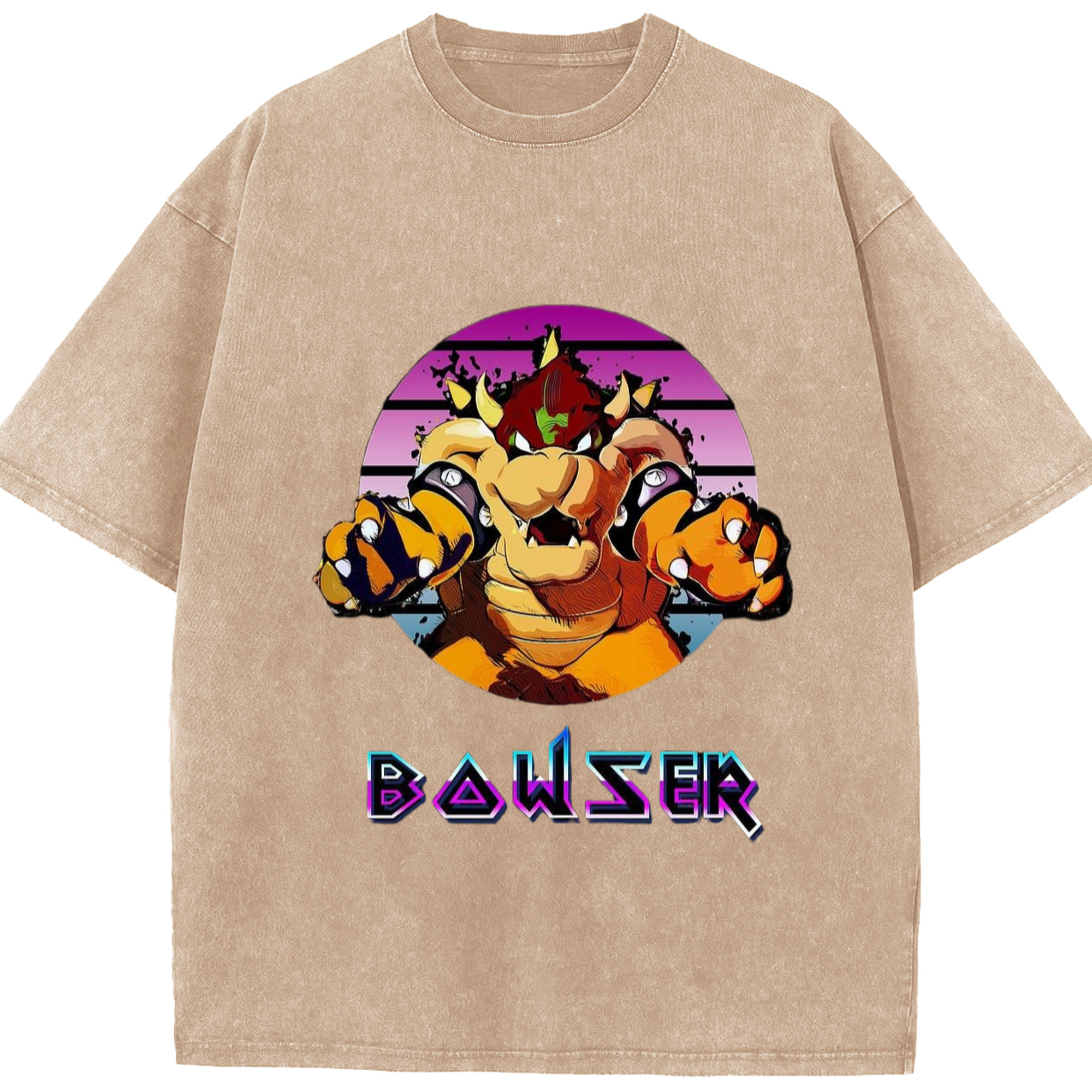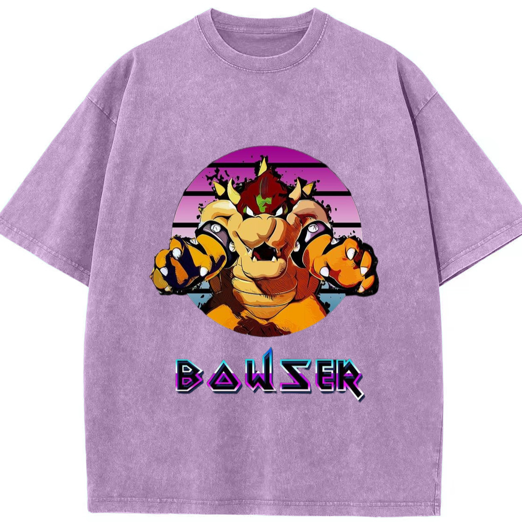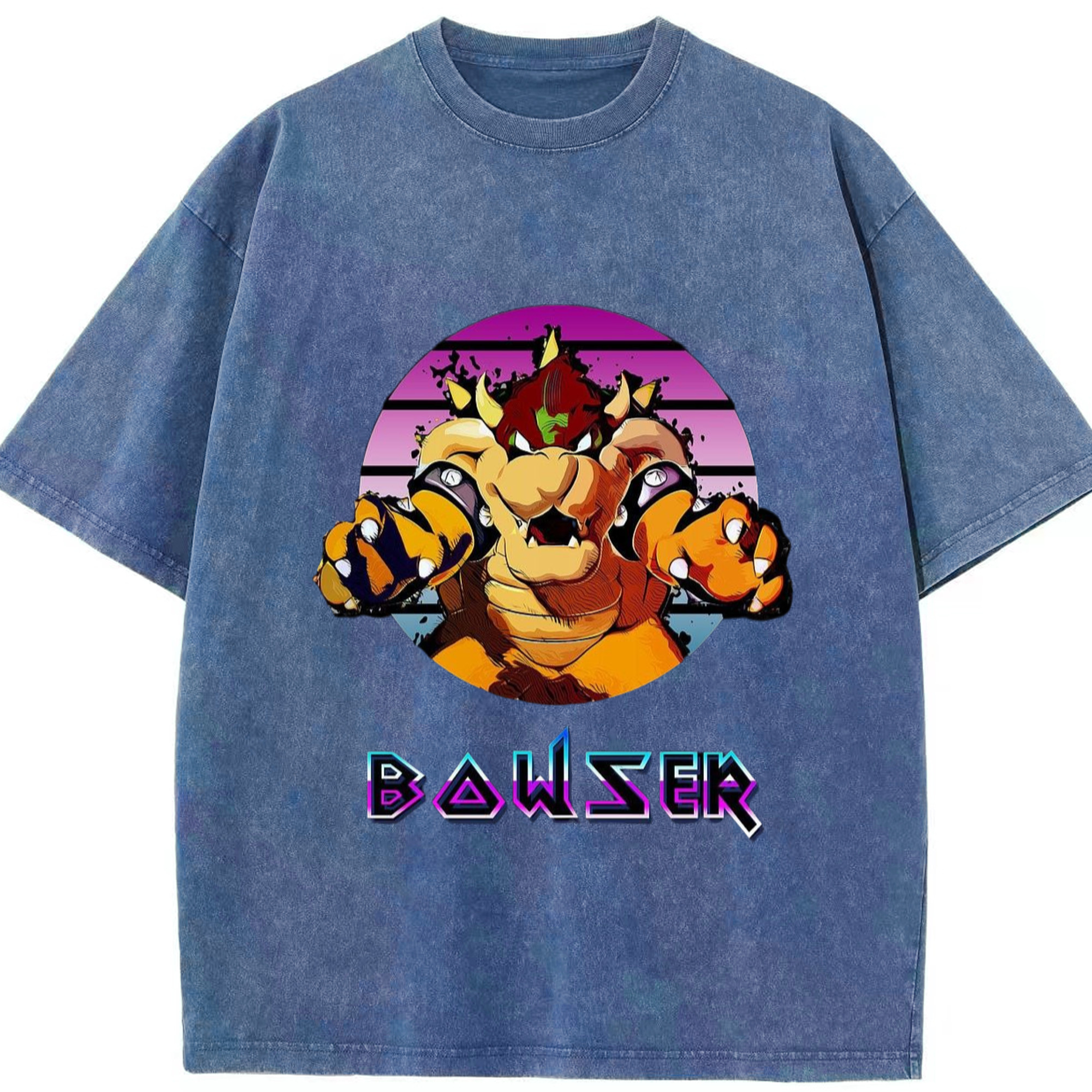 Nintendo Bowser king Painted style Tee - Washed Vintage Look 230g Cotton Oversized T-Shirt With Front Heat Transfer Print – Soft, Lightweight, Stylish Fit – Comfortable Casual Wear For Sports & Everyday Use