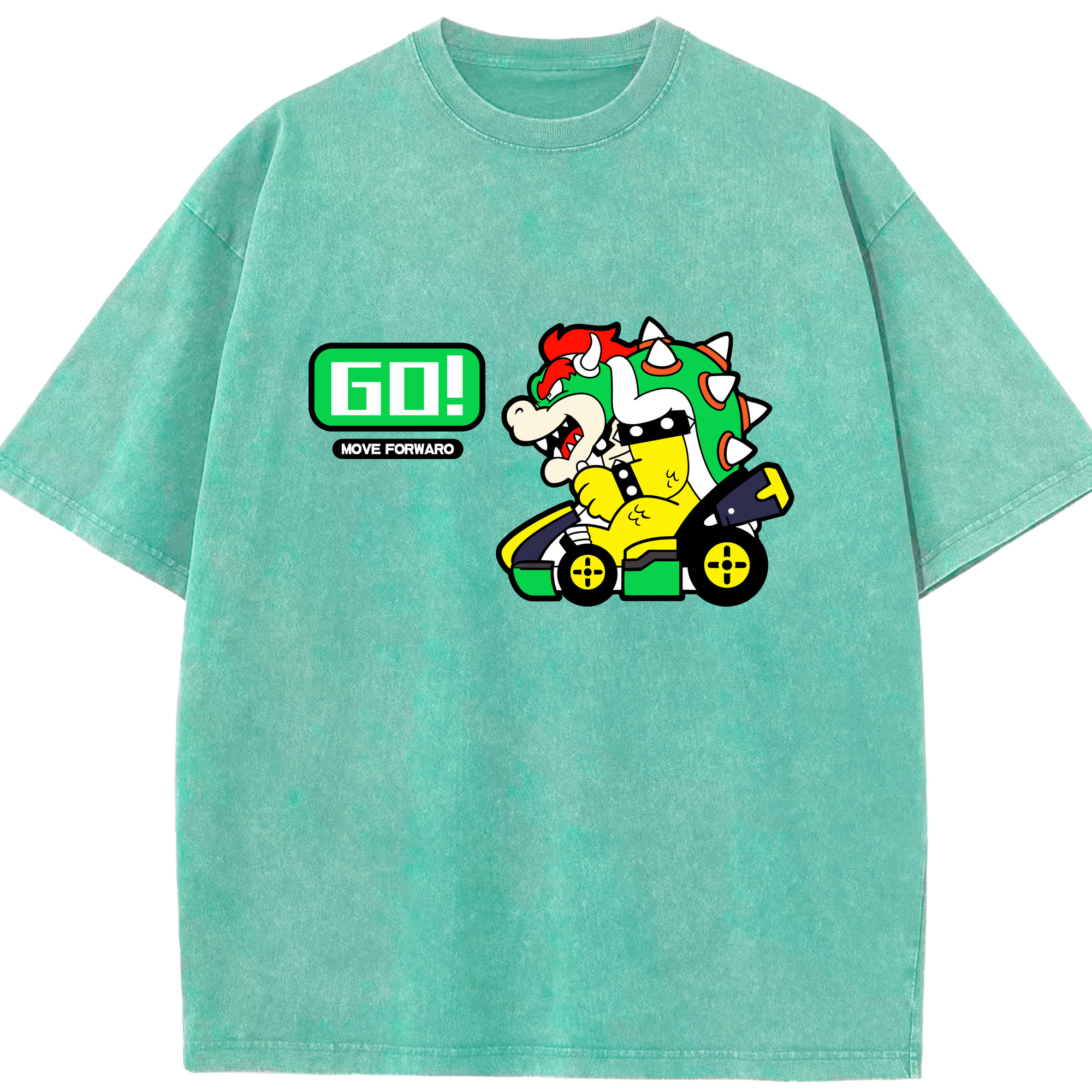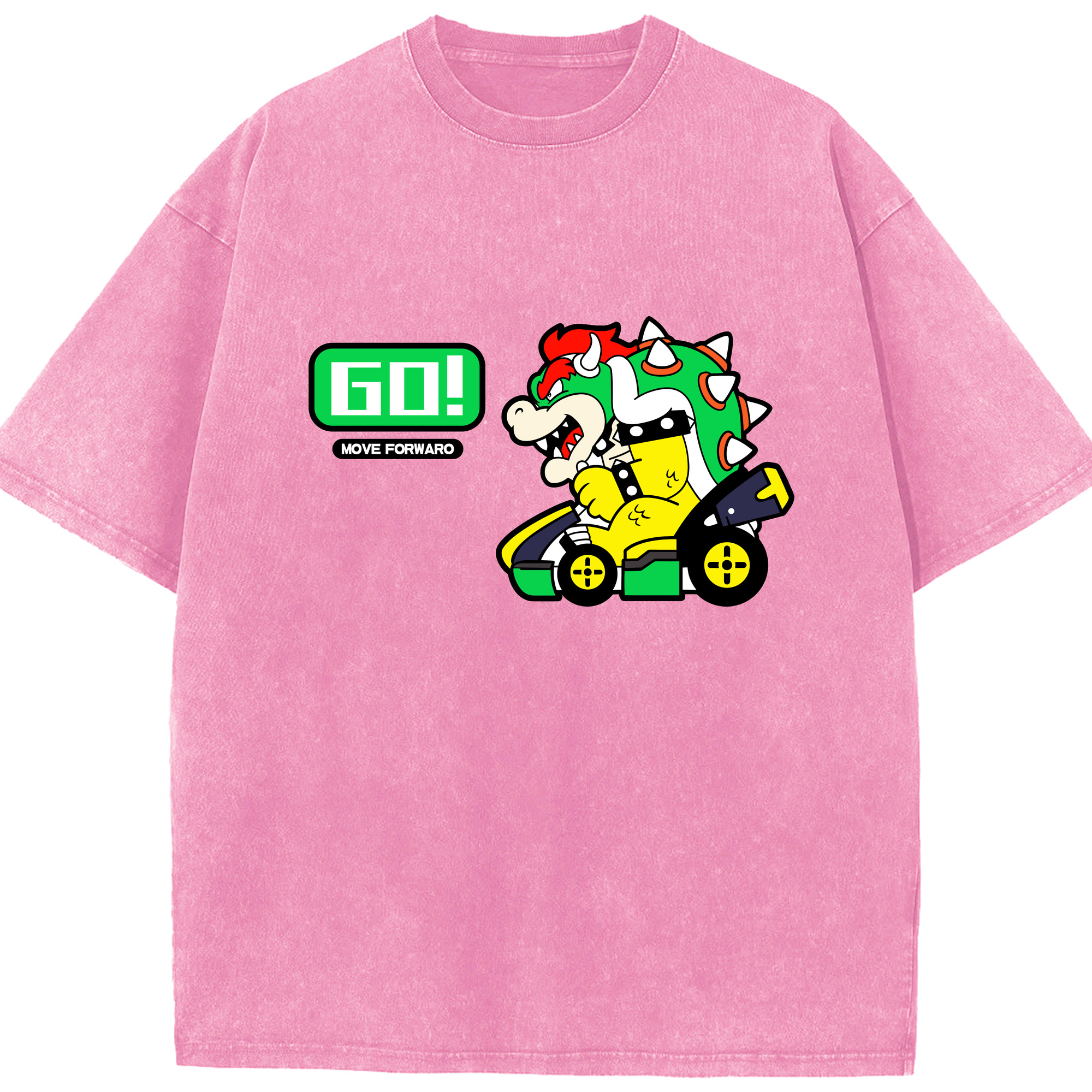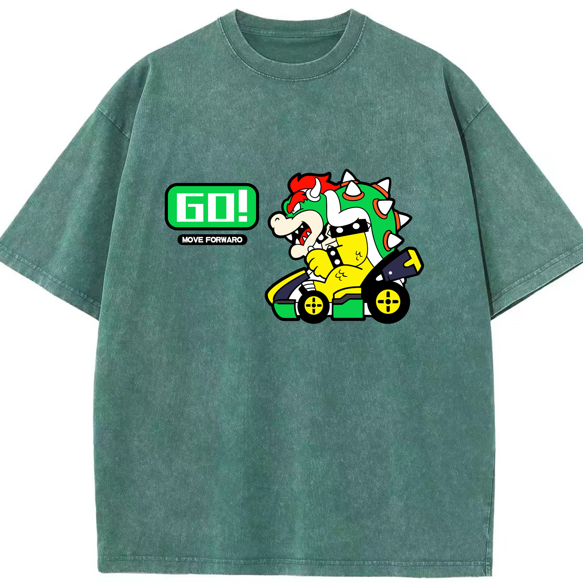 Nintendo King Koopa 'GO!'kart T-shirt - Washed Vintage Look 230g Cotton Oversized T-Shirt With Front Heat Transfer Print – Soft, Lightweight, Stylish Fit – Comfortable Casual Wear For Sports & Everyday Use