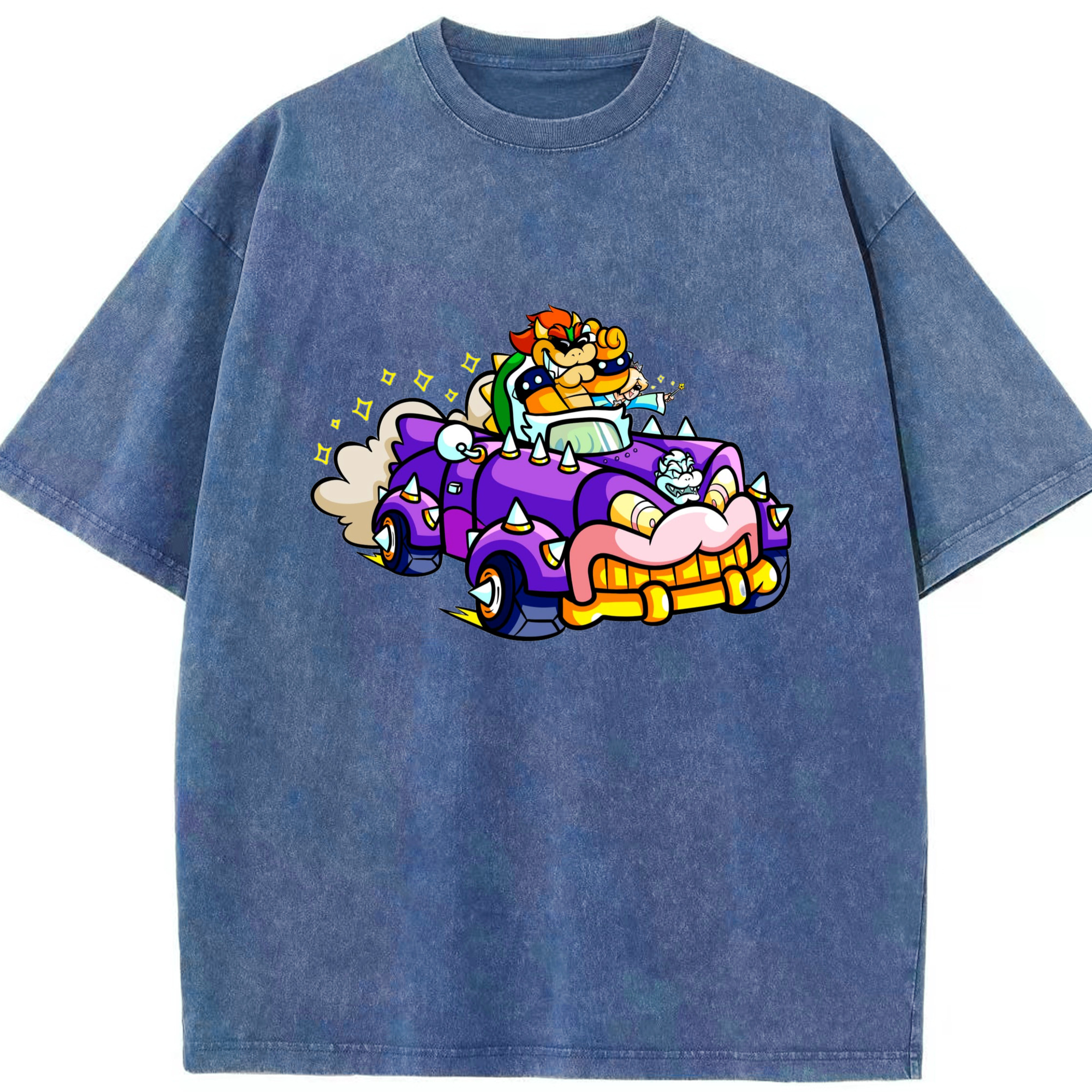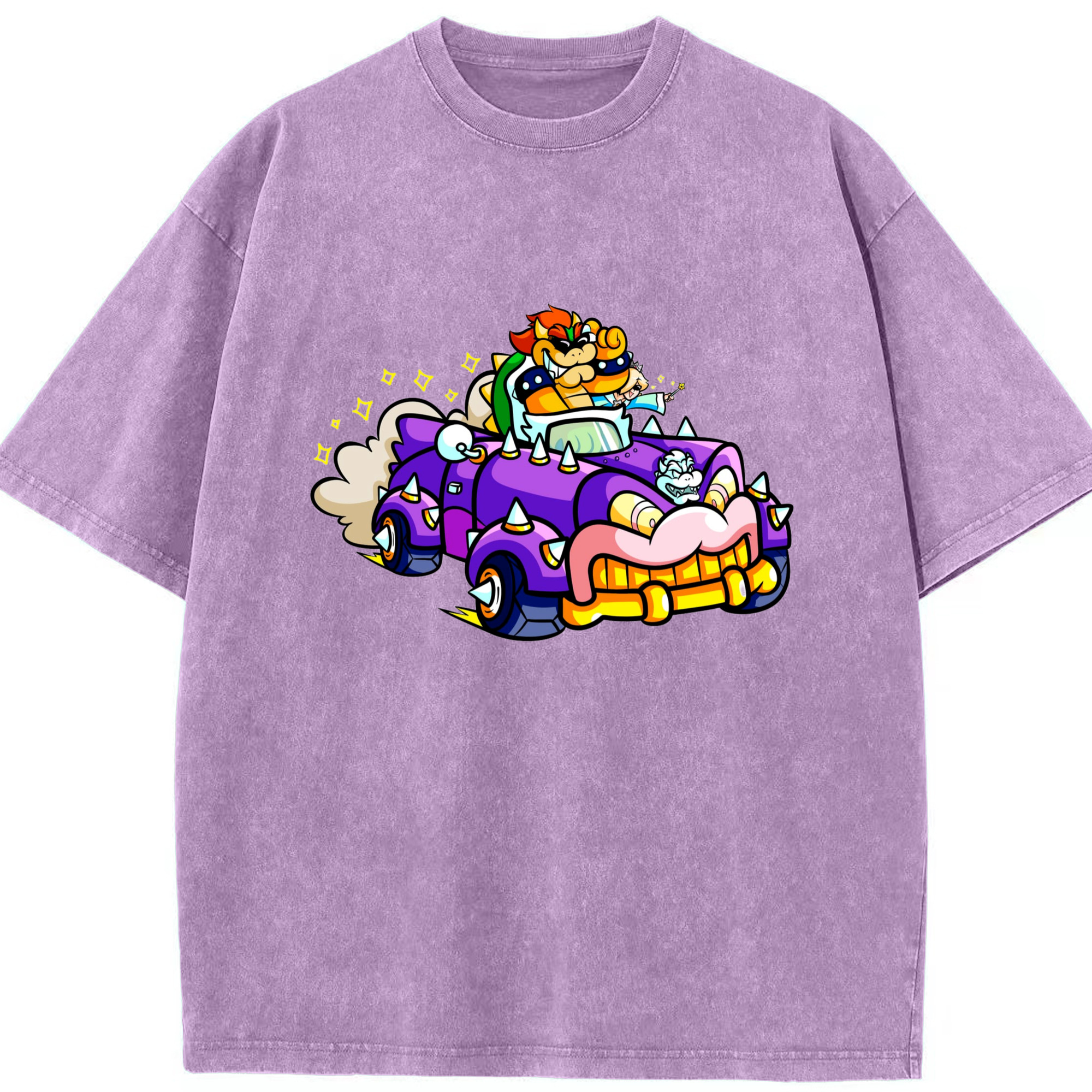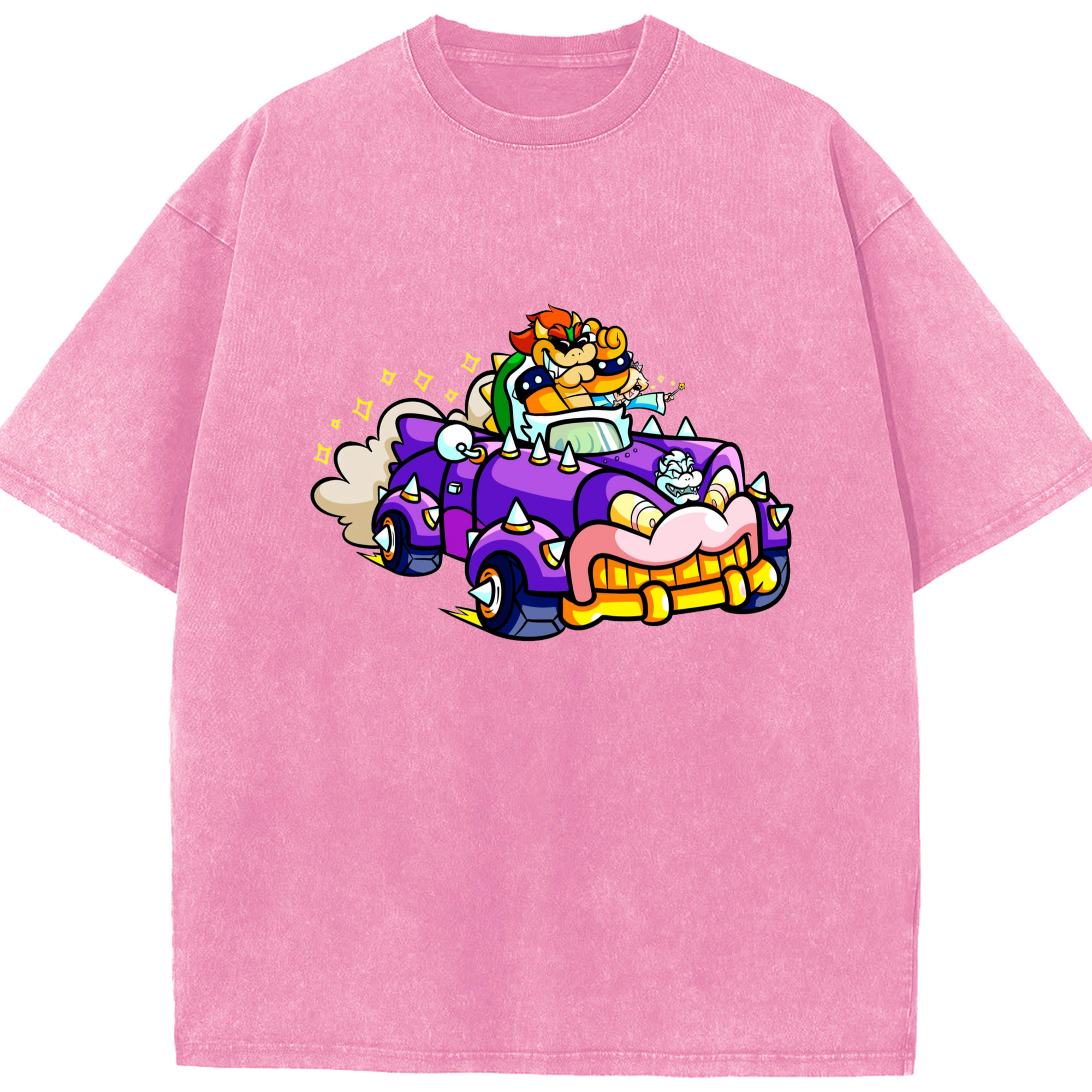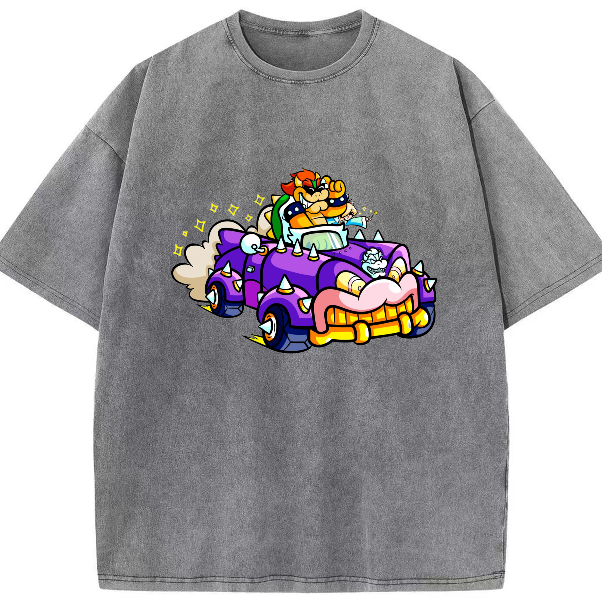 Nintendo King Koopa and rosalina kart T-shirt - Washed Vintage Look 230g Cotton Oversized T-Shirt With Front Heat Transfer Print – Soft, Lightweight, Stylish Fit – Comfortable Casual Wear For Sports & Everyday Use