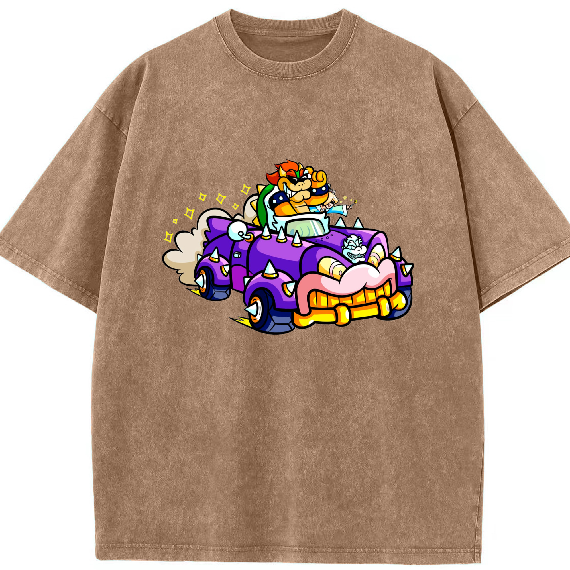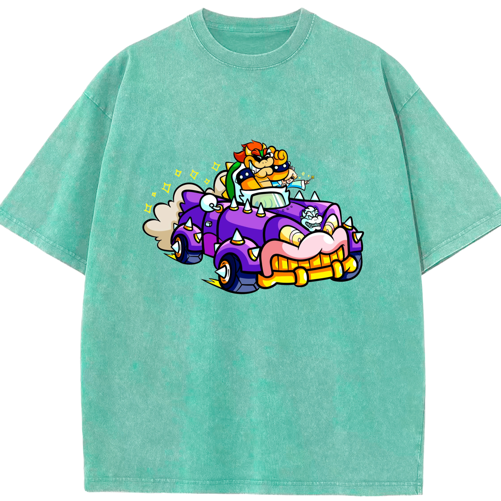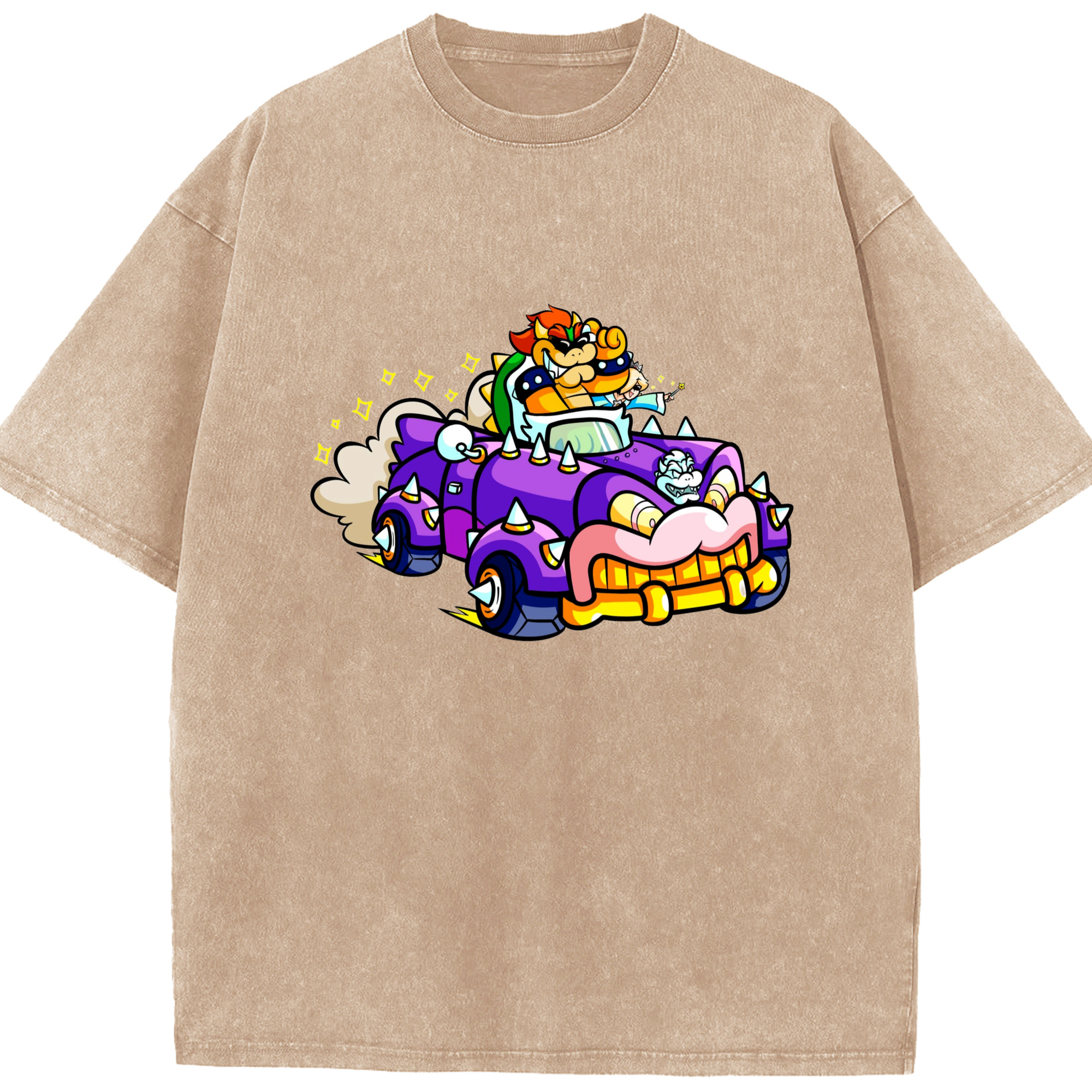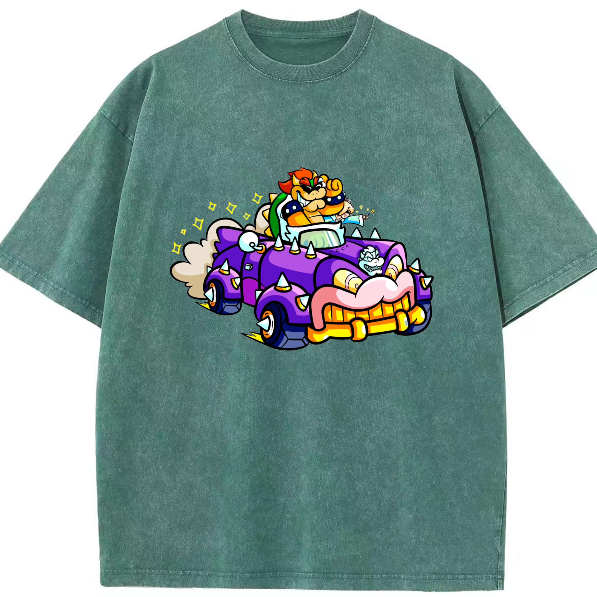 Nintendo King Koopa and rosalina kart T-shirt - Washed Vintage Look 230g Cotton Oversized T-Shirt With Front Heat Transfer Print – Soft, Lightweight, Stylish Fit – Comfortable Casual Wear For Sports & Everyday Use