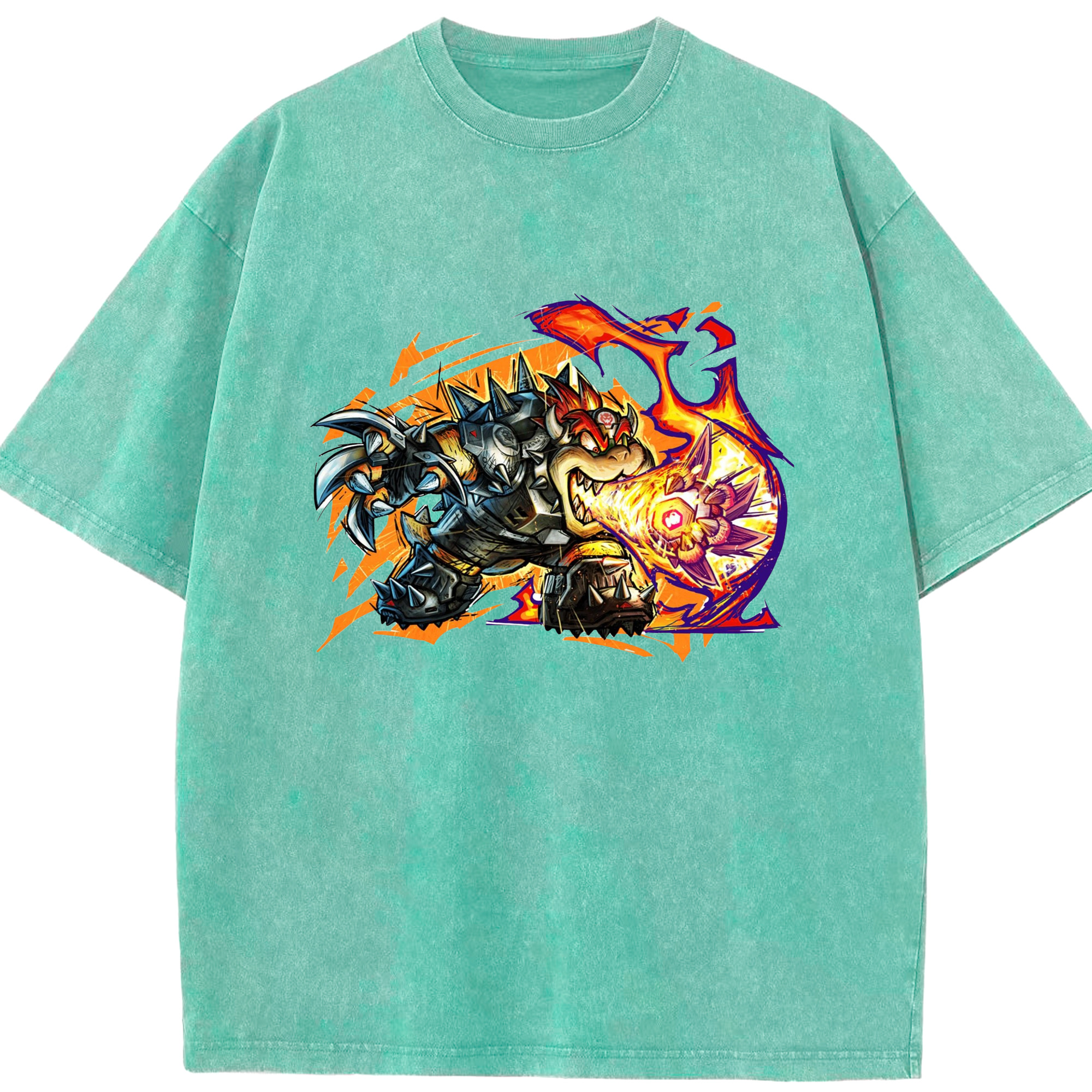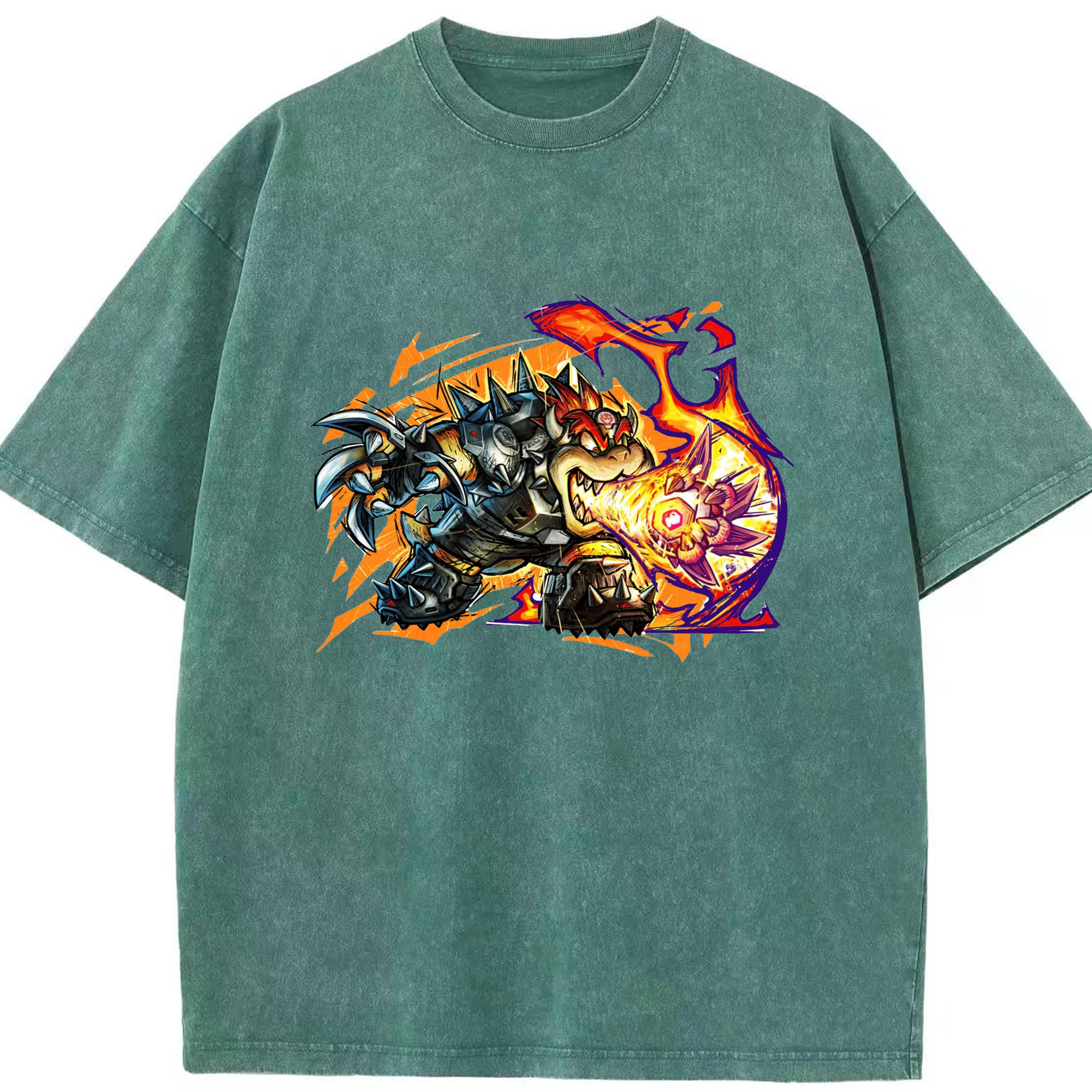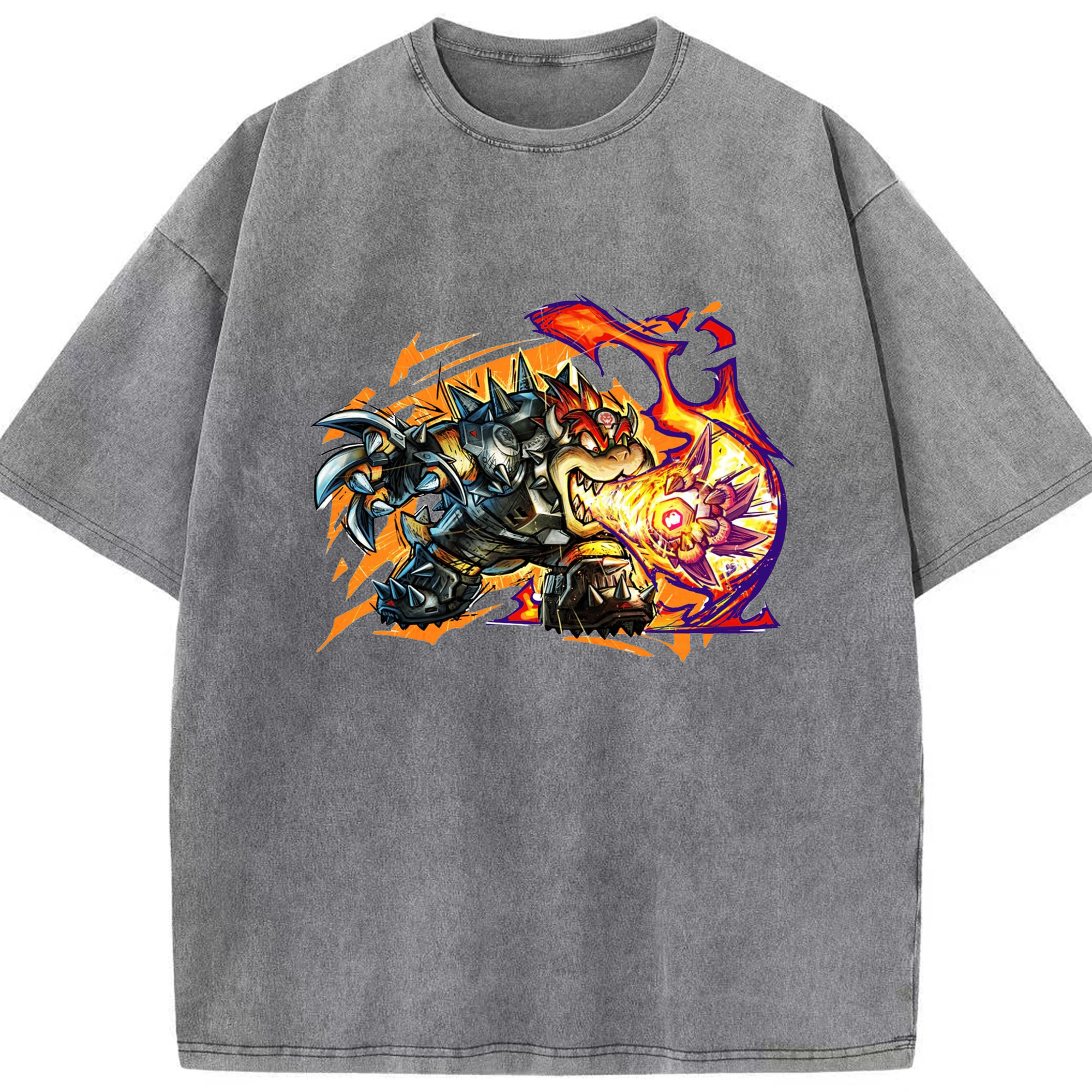Nintendo King Koopa football T-shirt - Washed Vintage Look 230g Cotton Oversized T-Shirt With Front Heat Transfer Print – Soft, Lightweight, Stylish Fit – Comfortable Casual Wear For Sports & Everyday Use