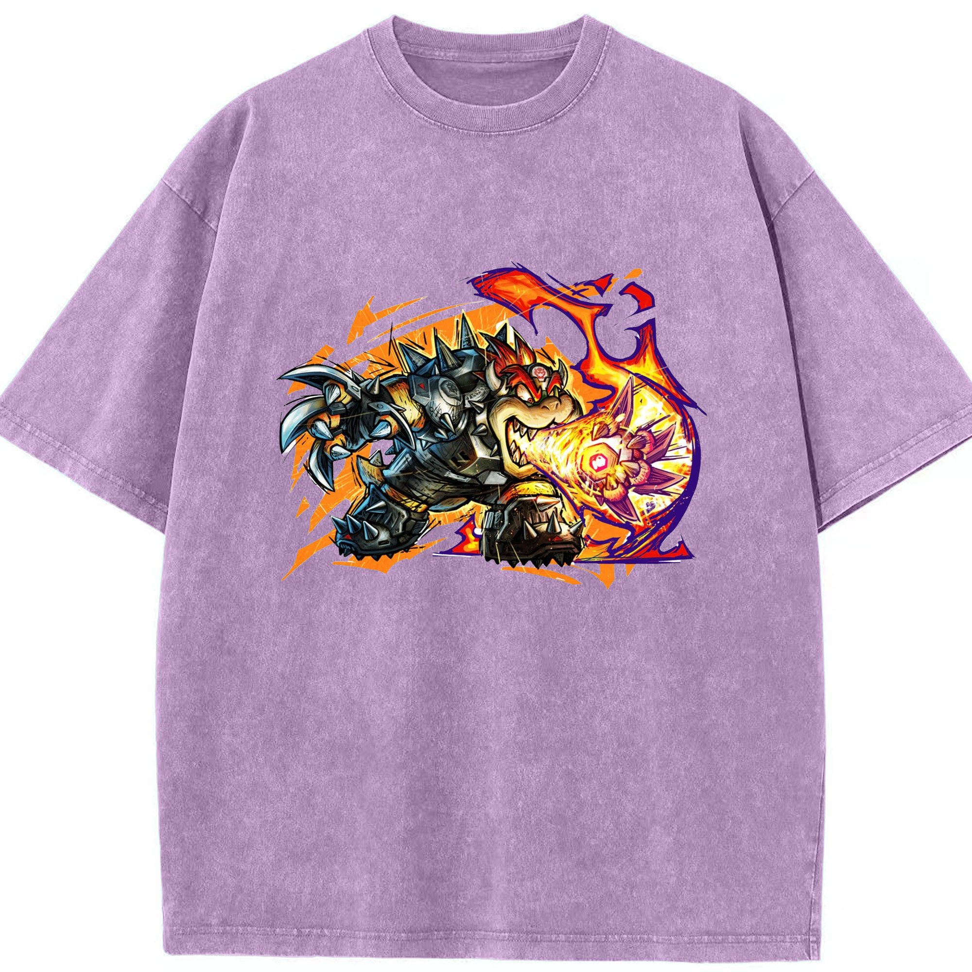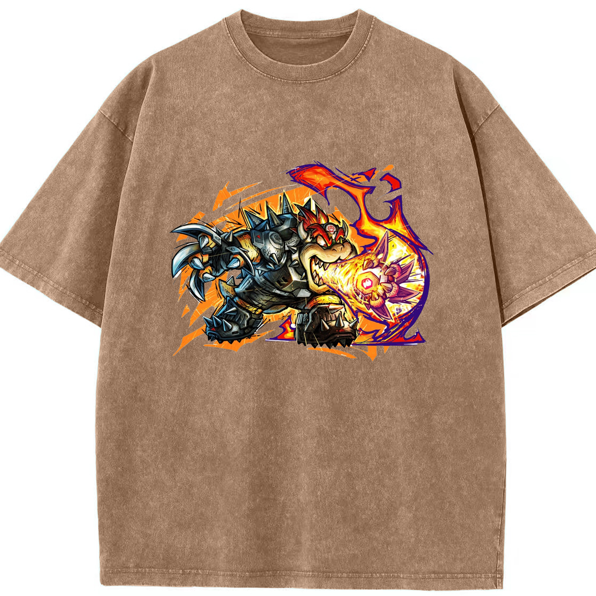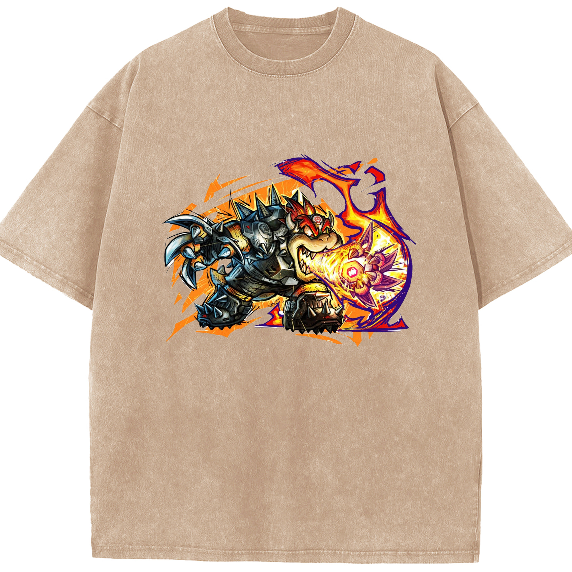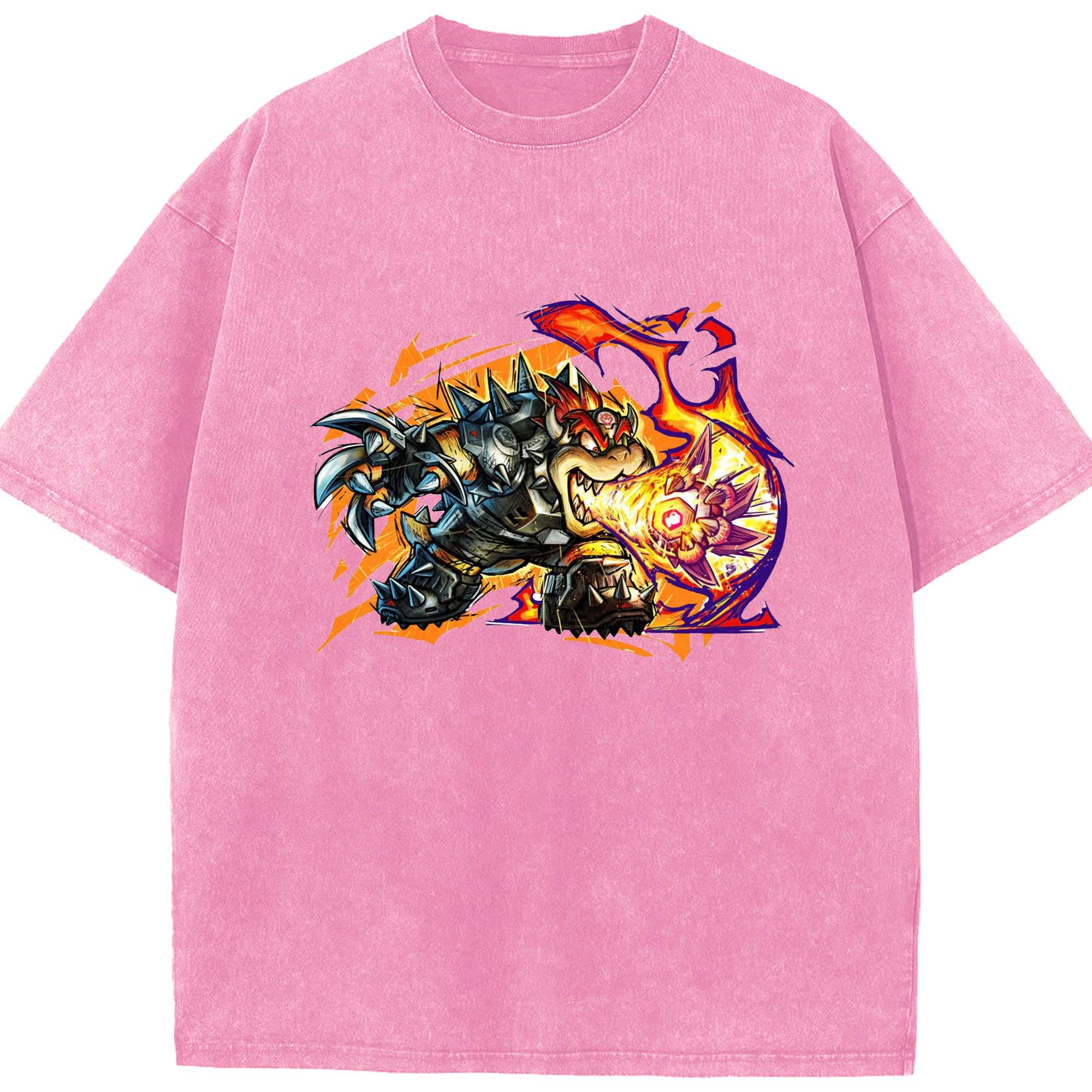 Nintendo King Koopa football T-shirt - Washed Vintage Look 230g Cotton Oversized T-Shirt With Front Heat Transfer Print – Soft, Lightweight, Stylish Fit – Comfortable Casual Wear For Sports & Everyday Use
