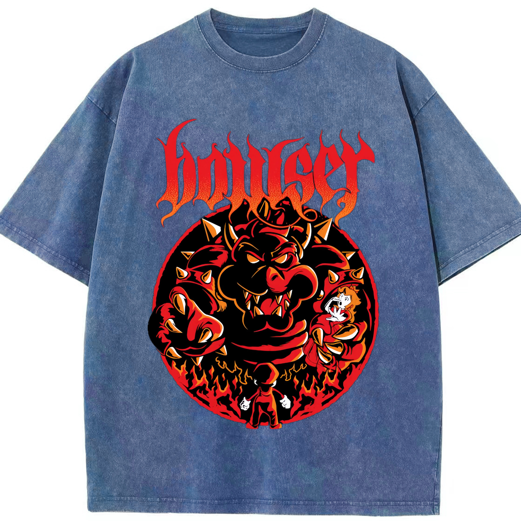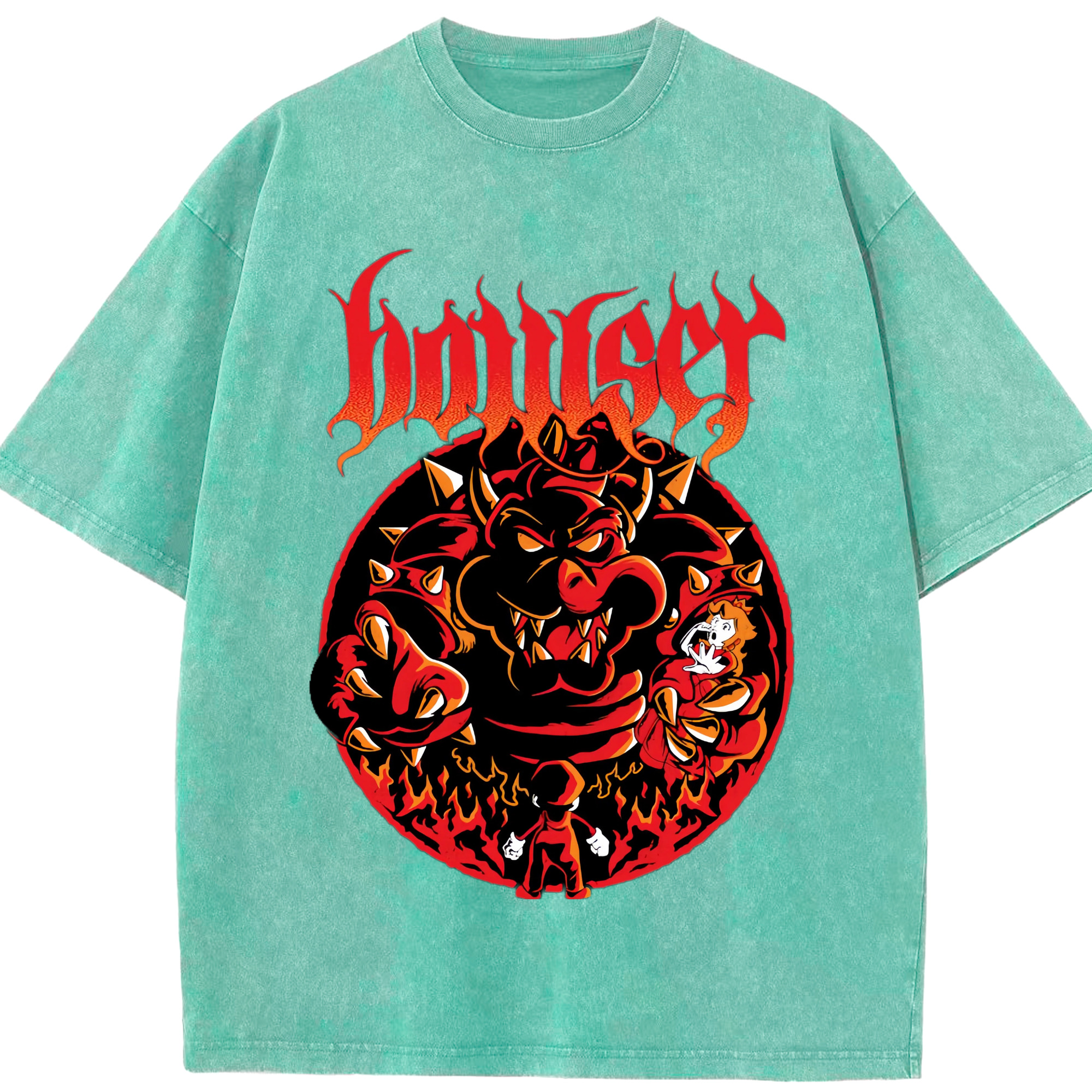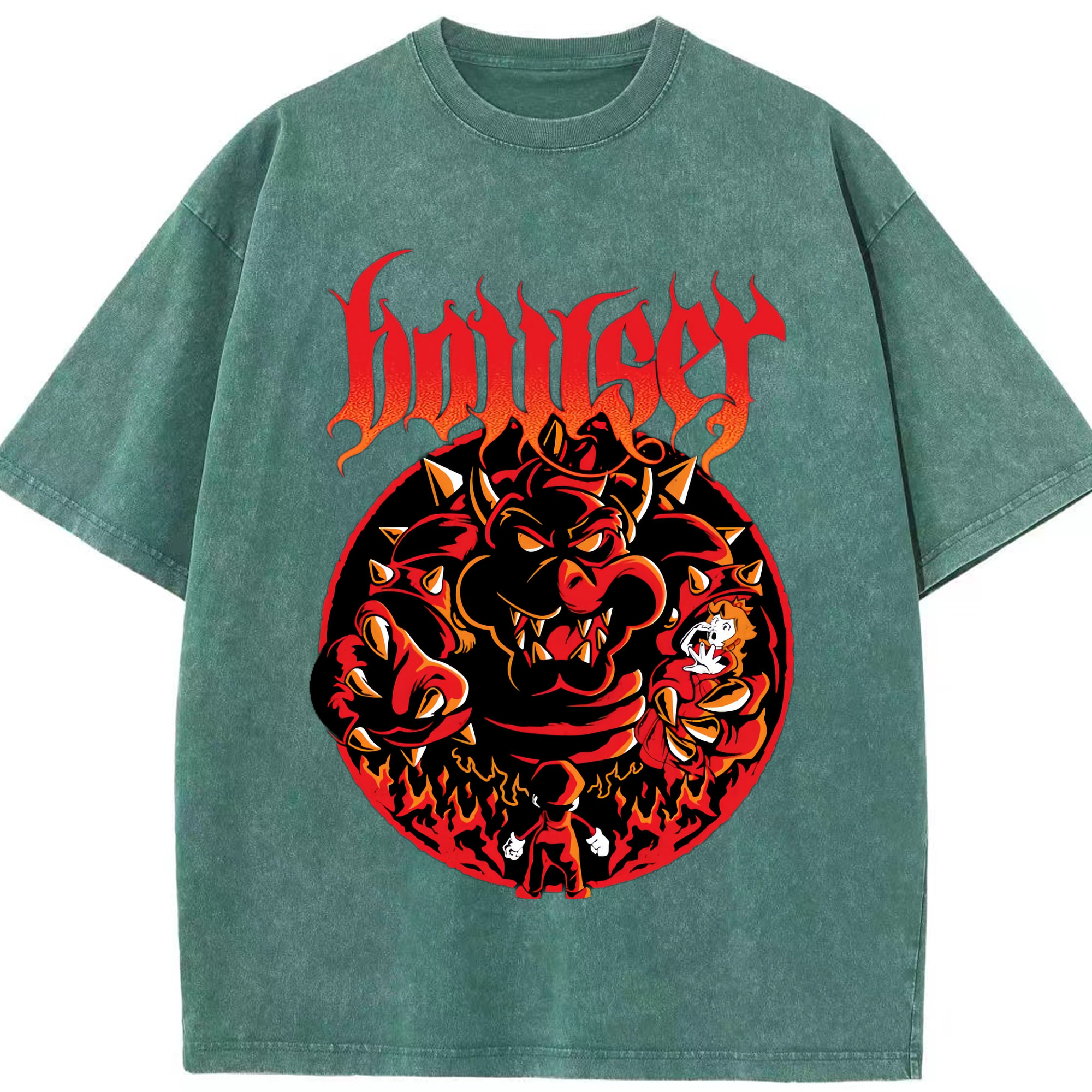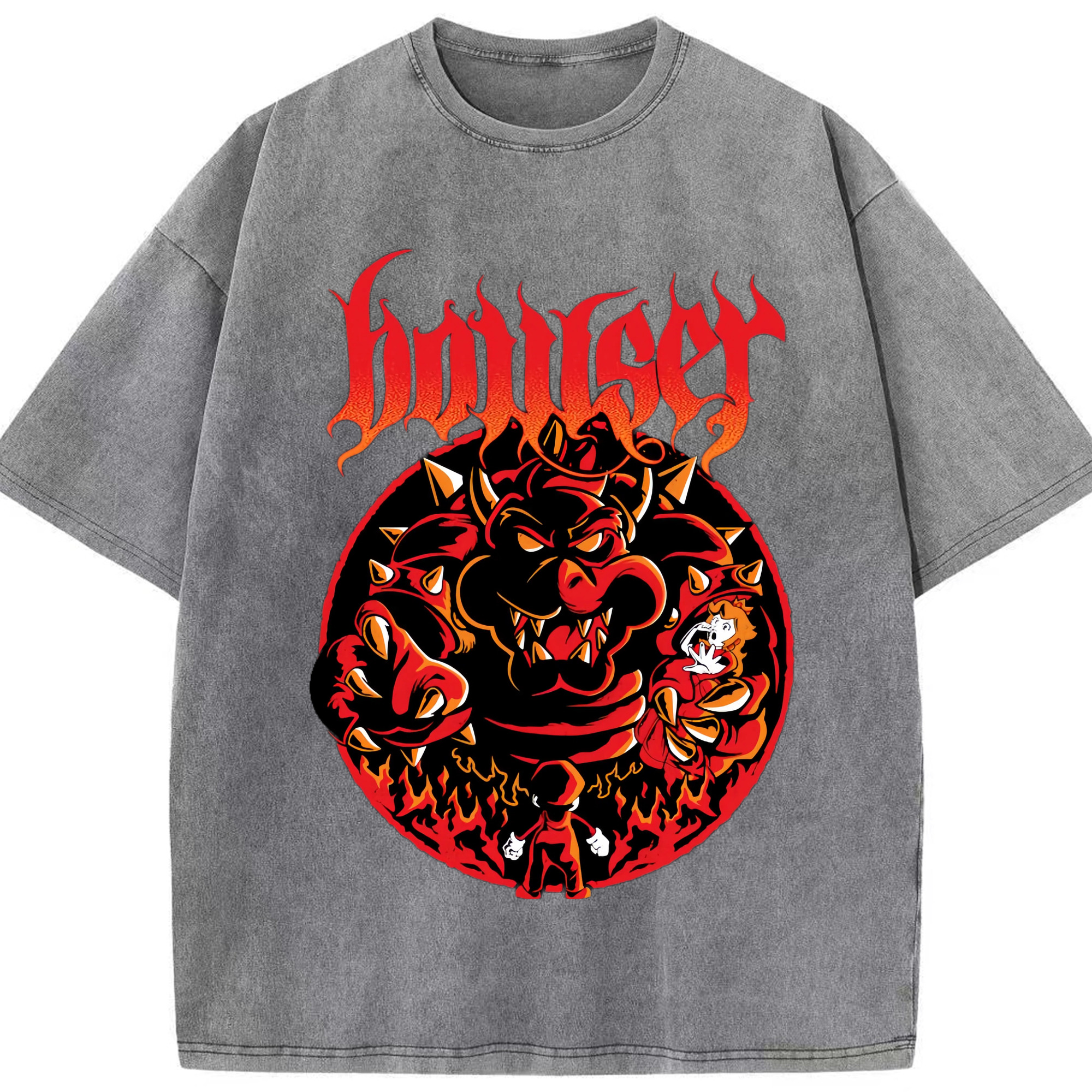 Nintendo King Koopa graphinc T-shirt - Washed Vintage Look 230g Cotton Oversized T-Shirt With Front Heat Transfer Print – Soft, Lightweight, Stylish Fit – Comfortable Casual Wear For Sports & Everyday Use