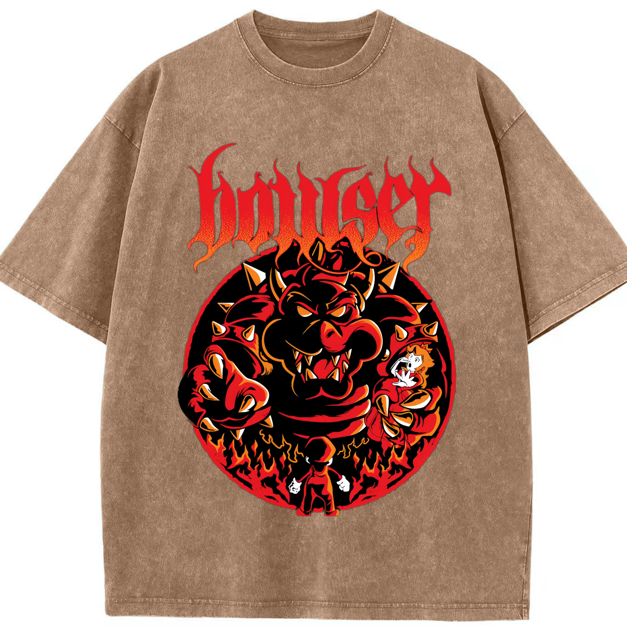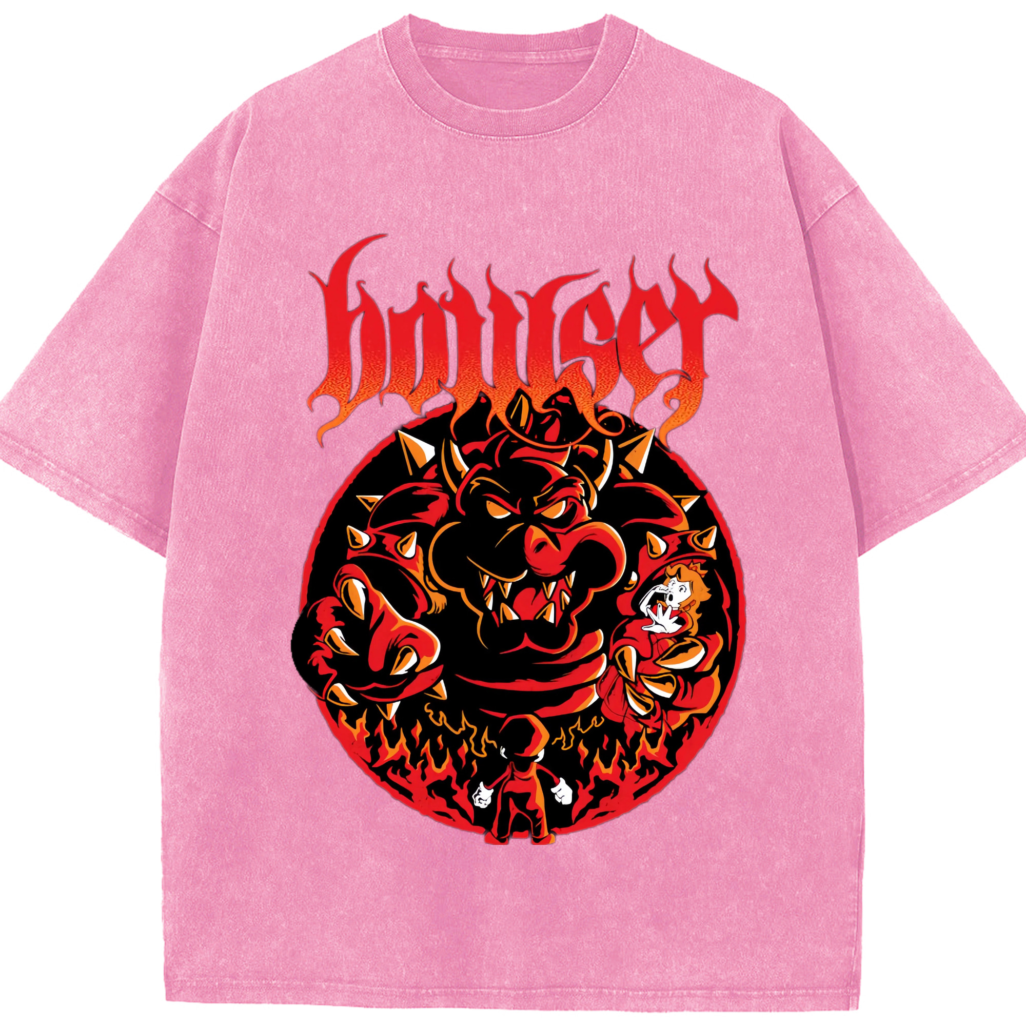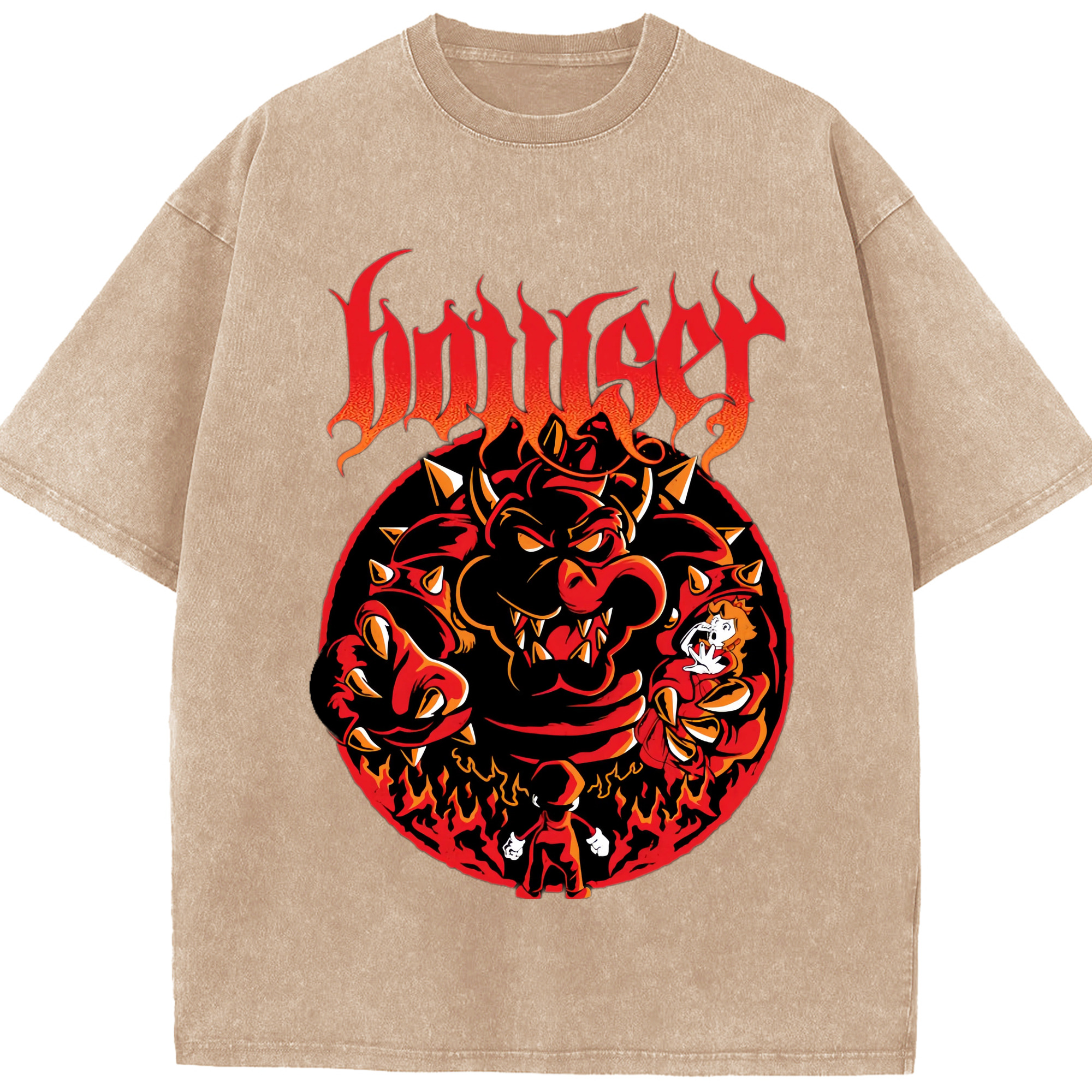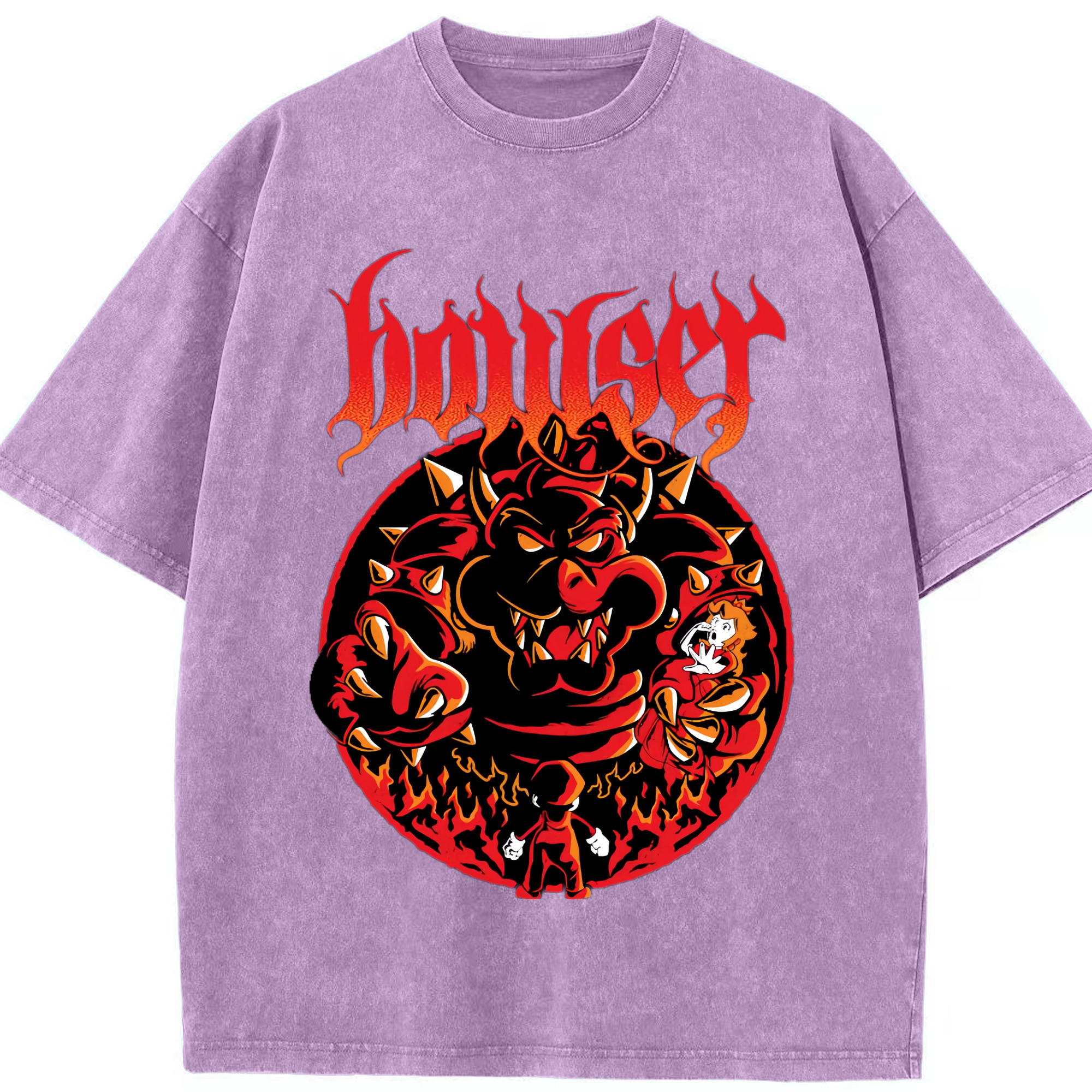 Nintendo King Koopa graphinc T-shirt - Washed Vintage Look 230g Cotton Oversized T-Shirt With Front Heat Transfer Print – Soft, Lightweight, Stylish Fit – Comfortable Casual Wear For Sports & Everyday Use
