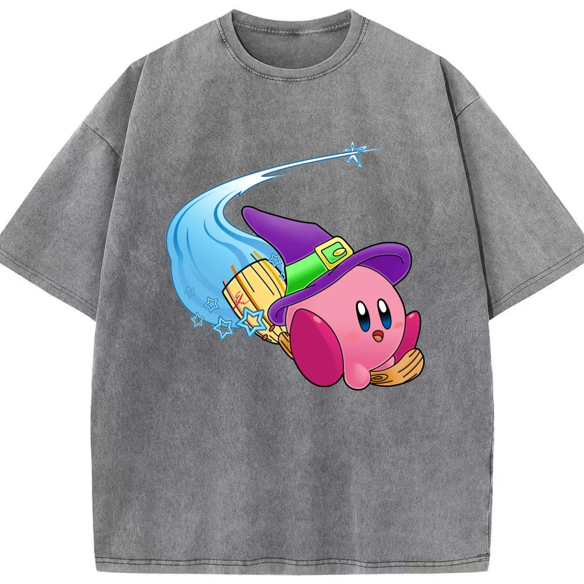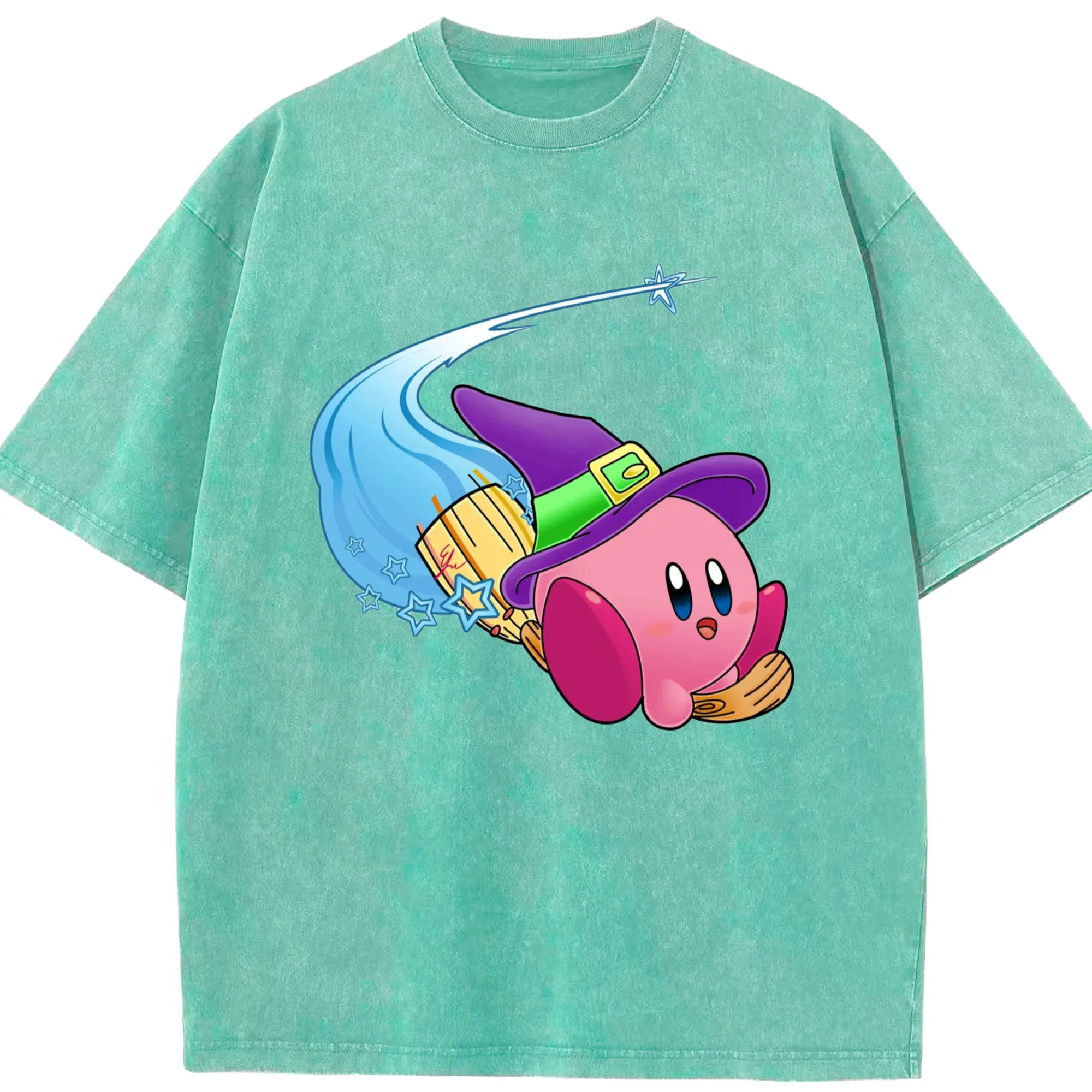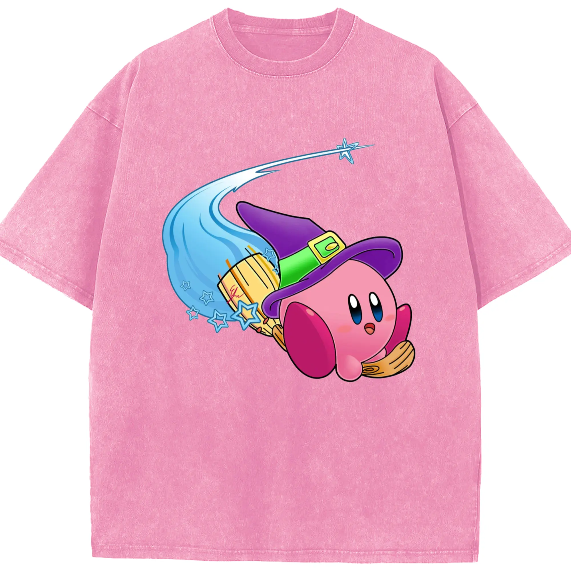 Nintendo kirby graphic t shirt​ - Washed Vintage Look 230g Cotton Oversized T-Shirt With Front Heat Transfer Print – Soft, Lightweight, Stylish Fit – Comfortable Casual Wear For Sports & Everyday Use